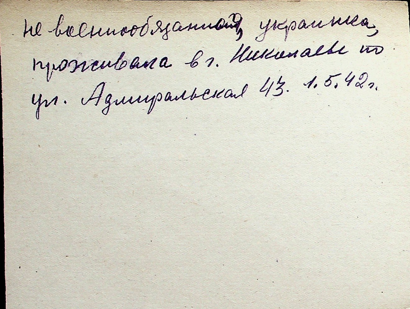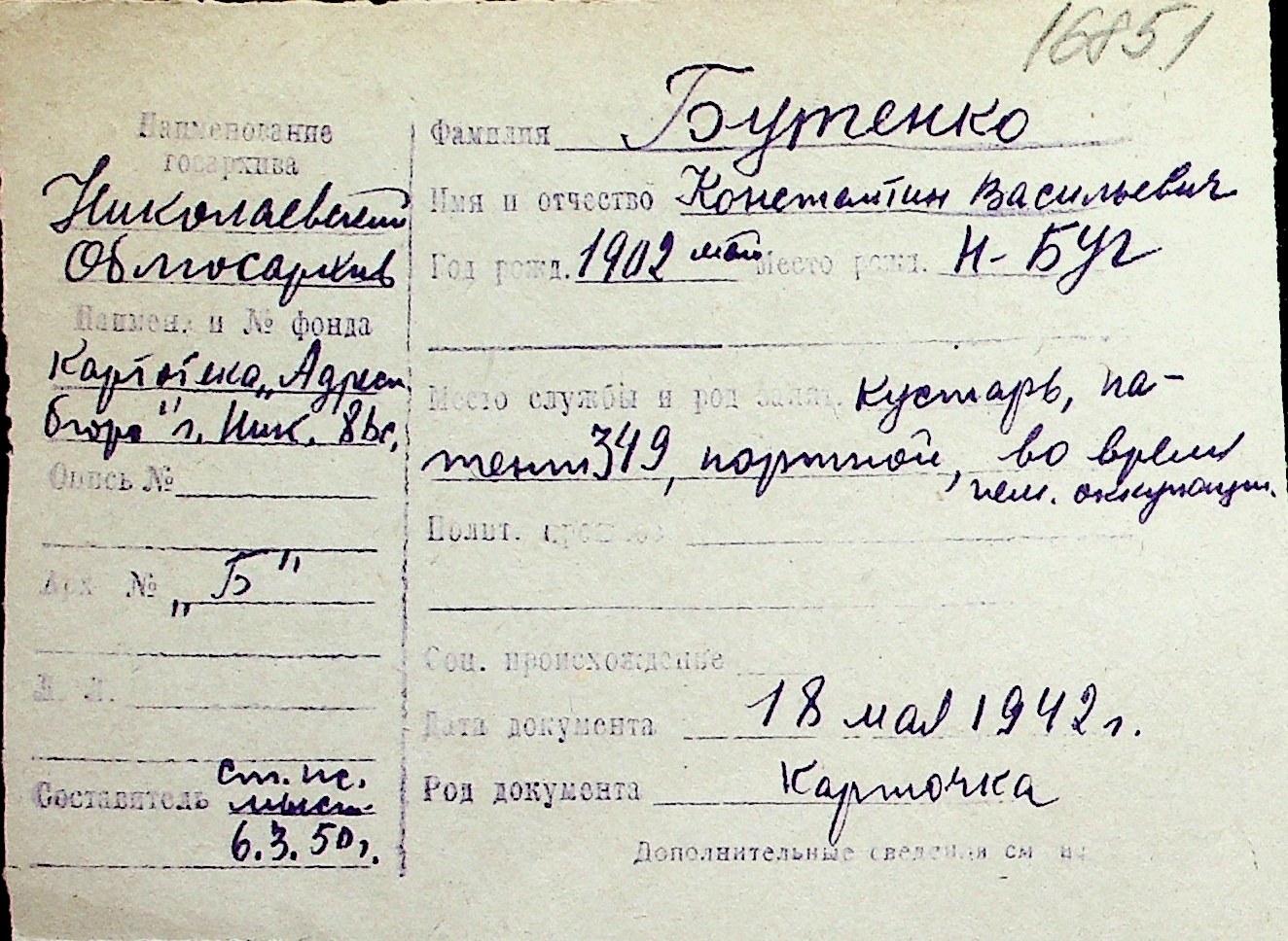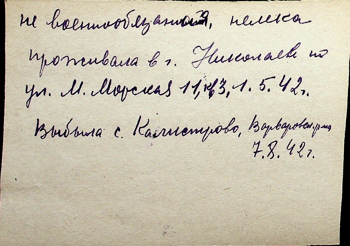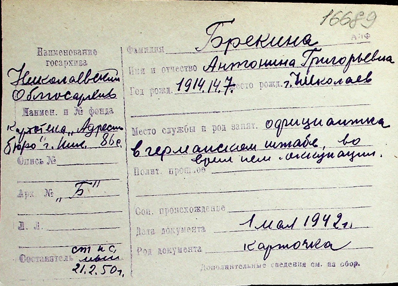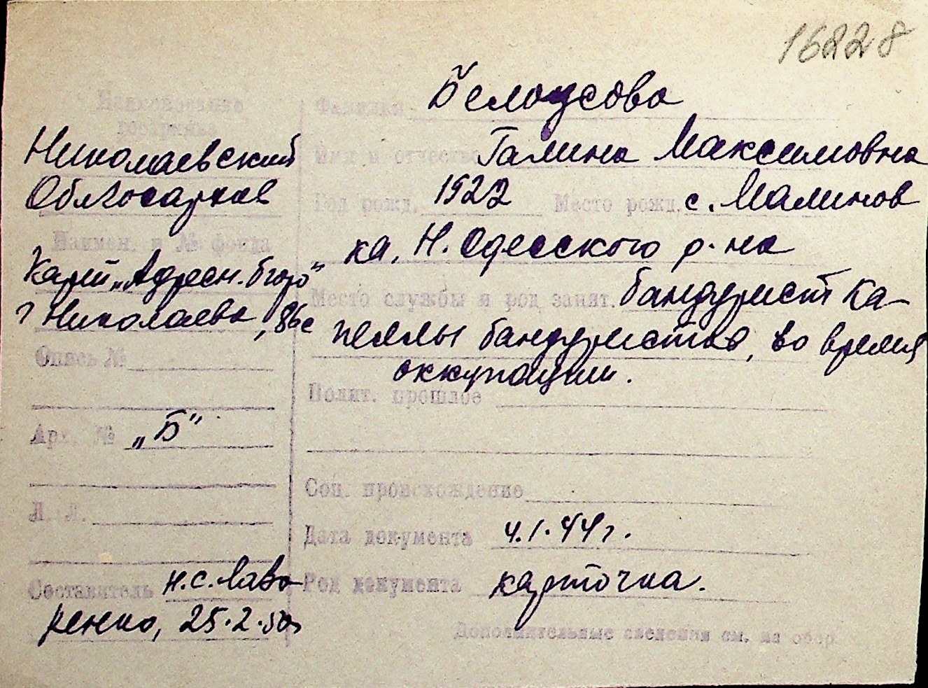 ◦ ◦ Перелік карток на осіб, які мешкали у м. Миколаїв у період окупації 1941–1944 років