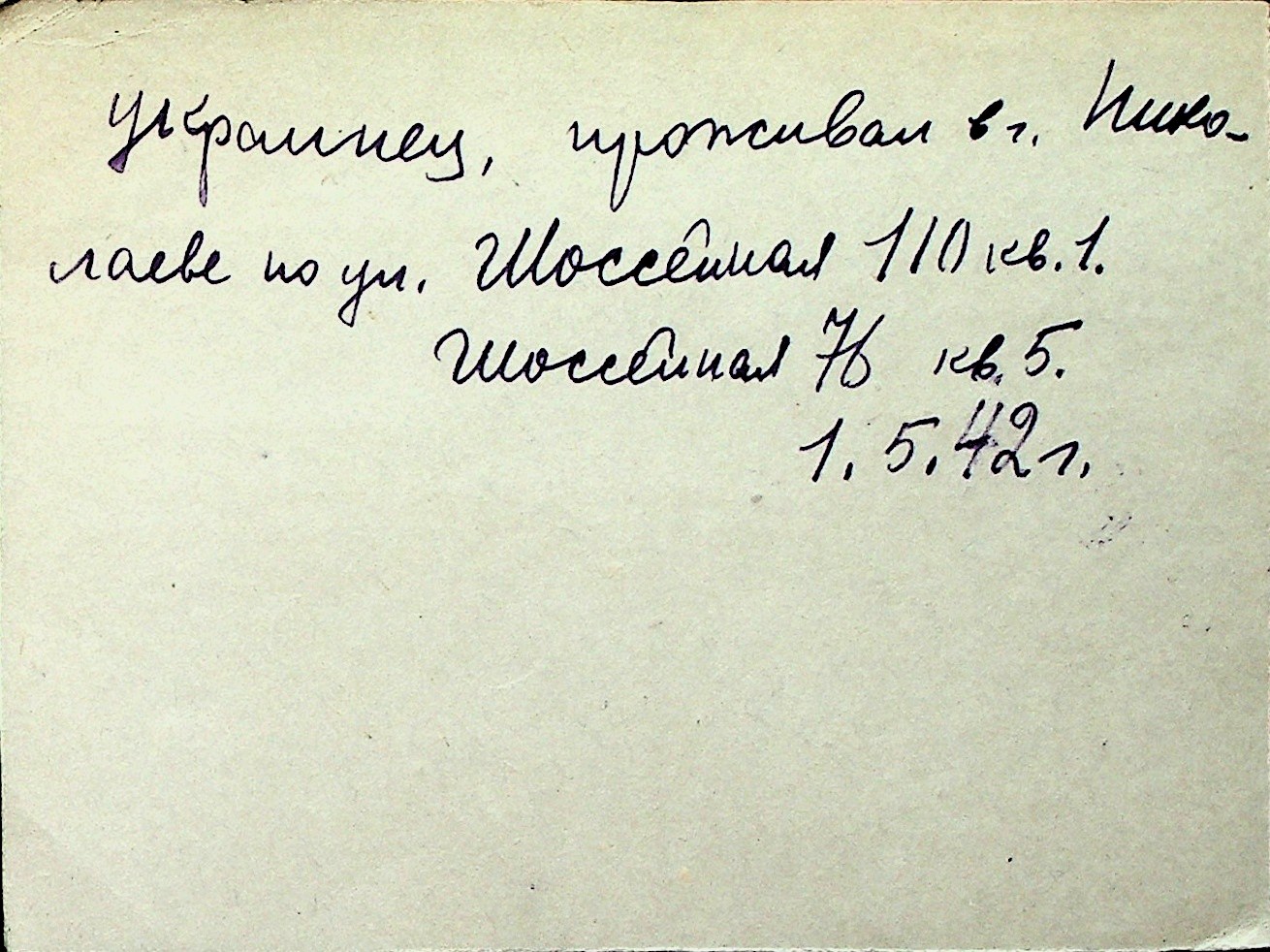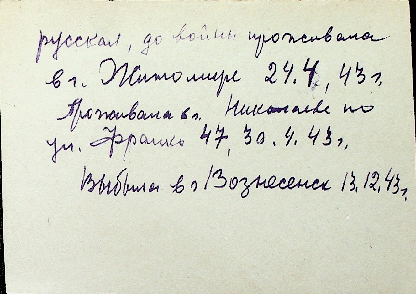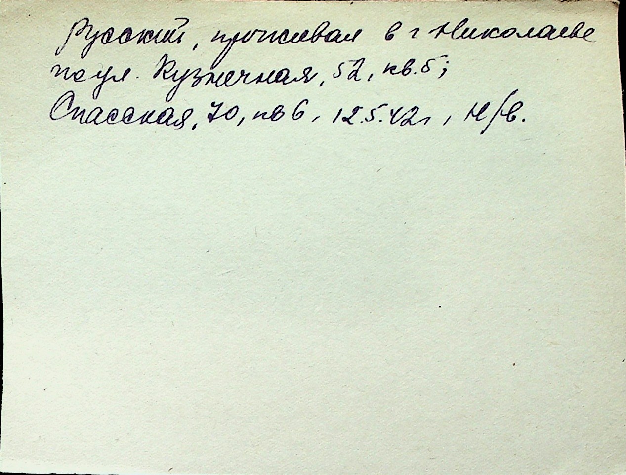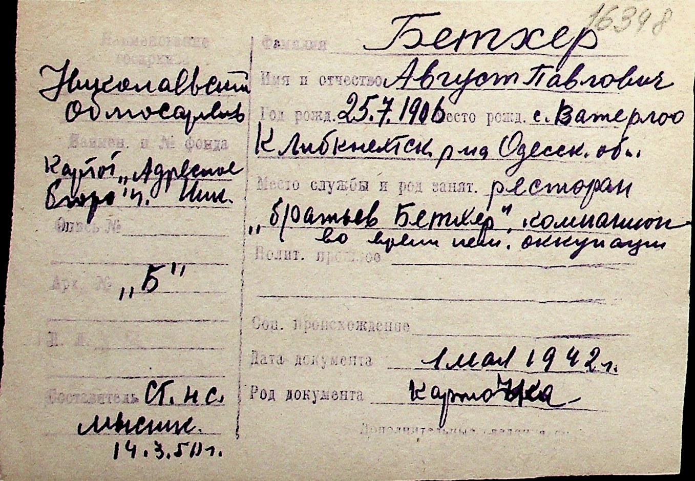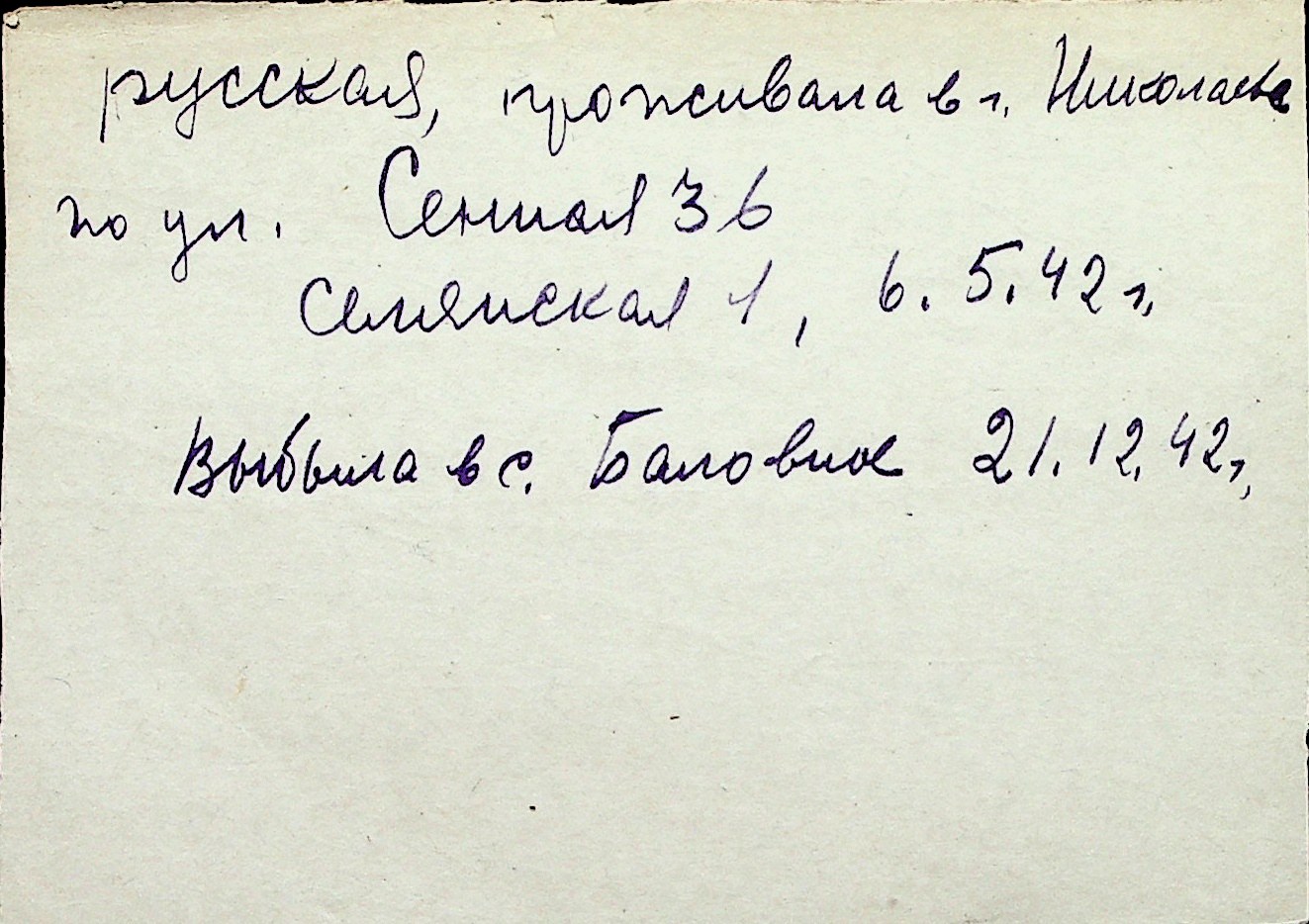 ◦ ◦ Перелік карток на осіб, які мешкали у м. Миколаїв у період окупації 1941–1944 років
