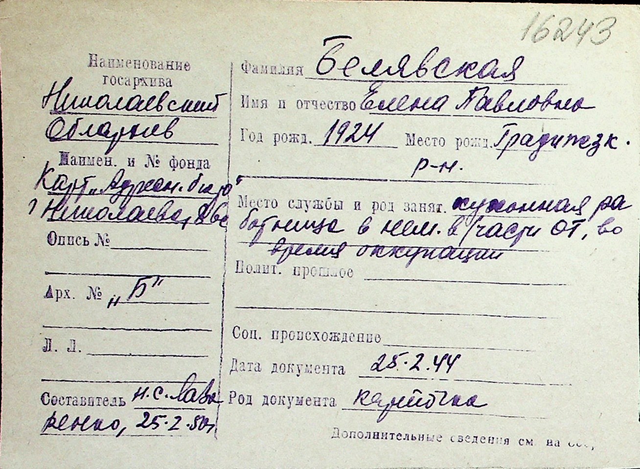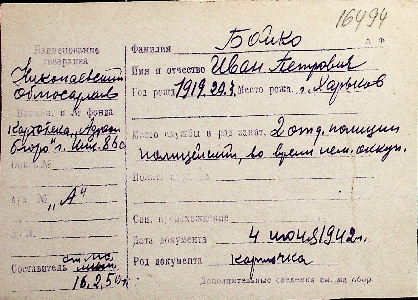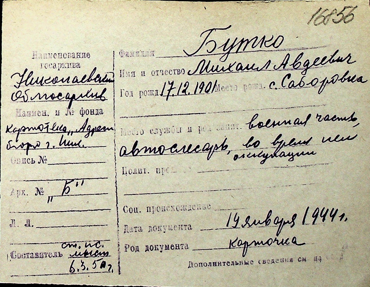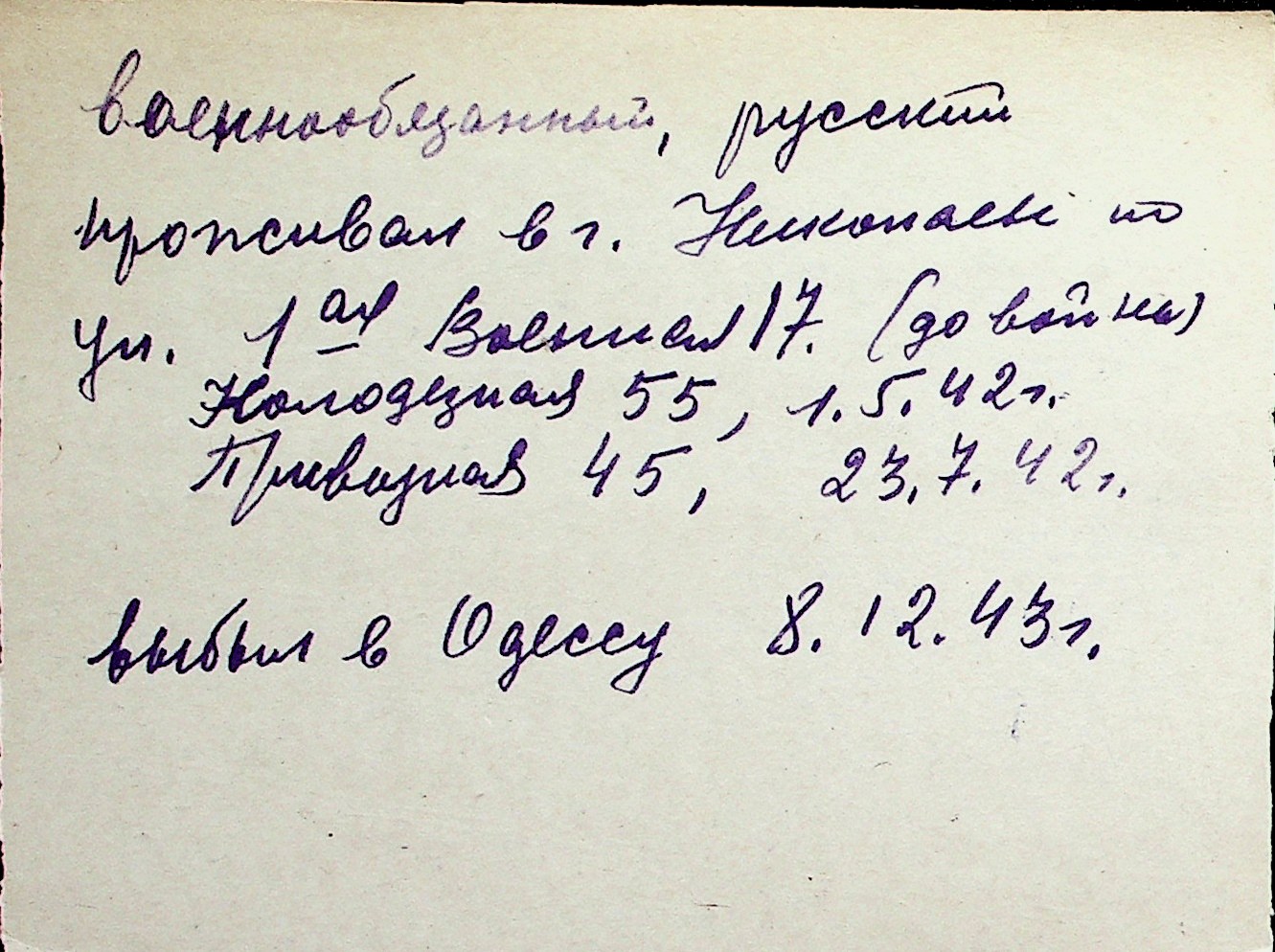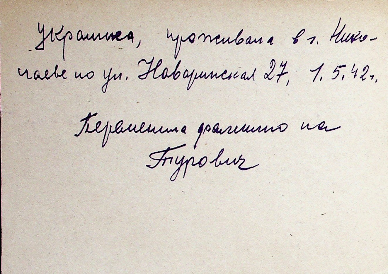 ◦ ◦ Перелік карток на осіб, які мешкали у м. Миколаїв у період окупації 1941–1944 років