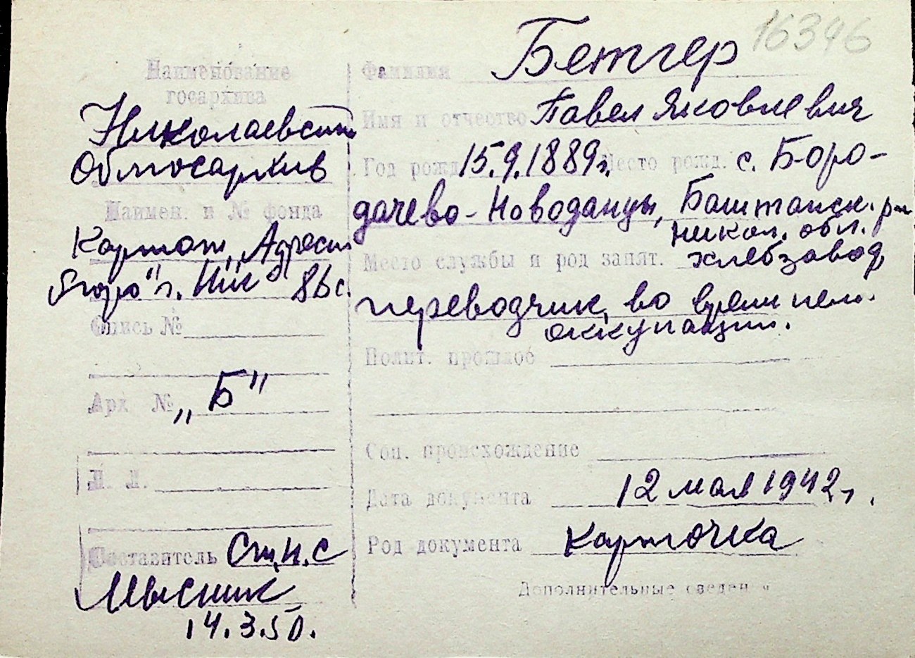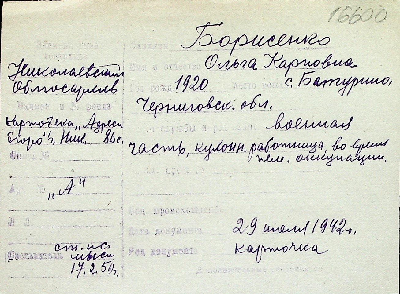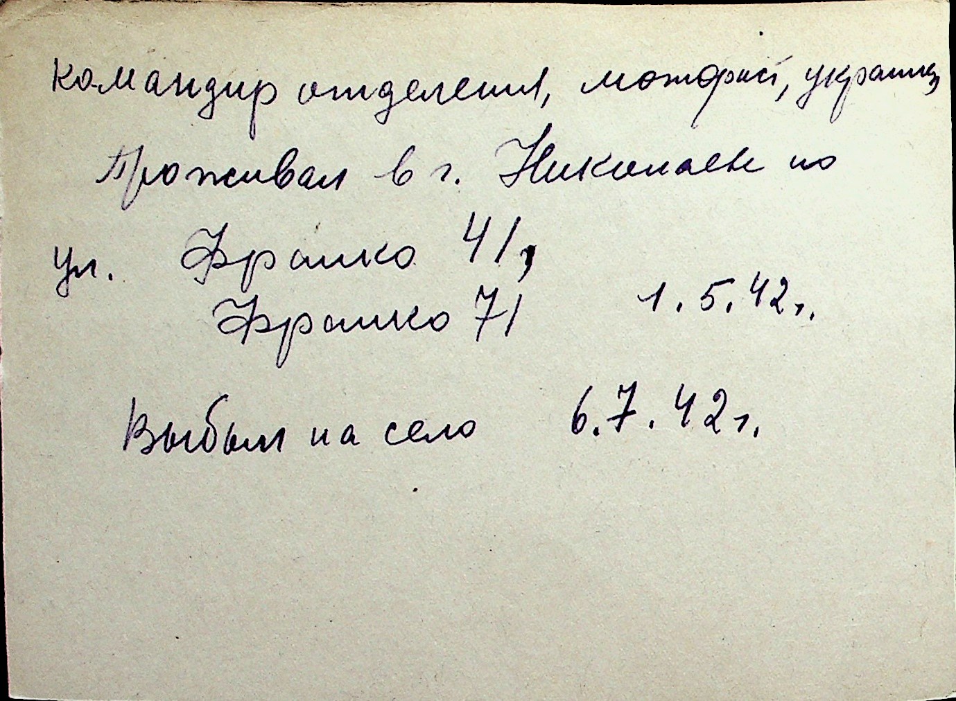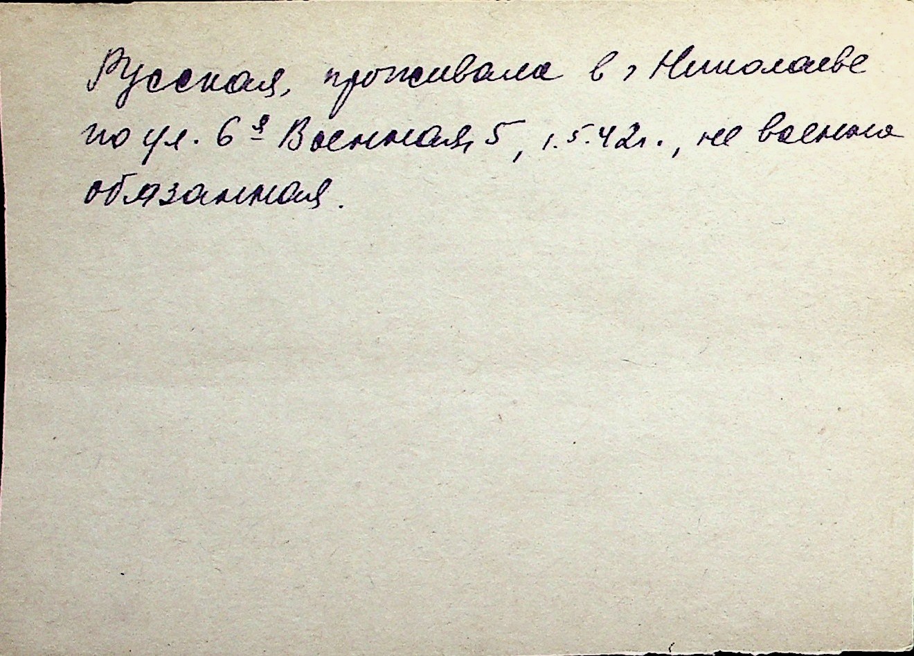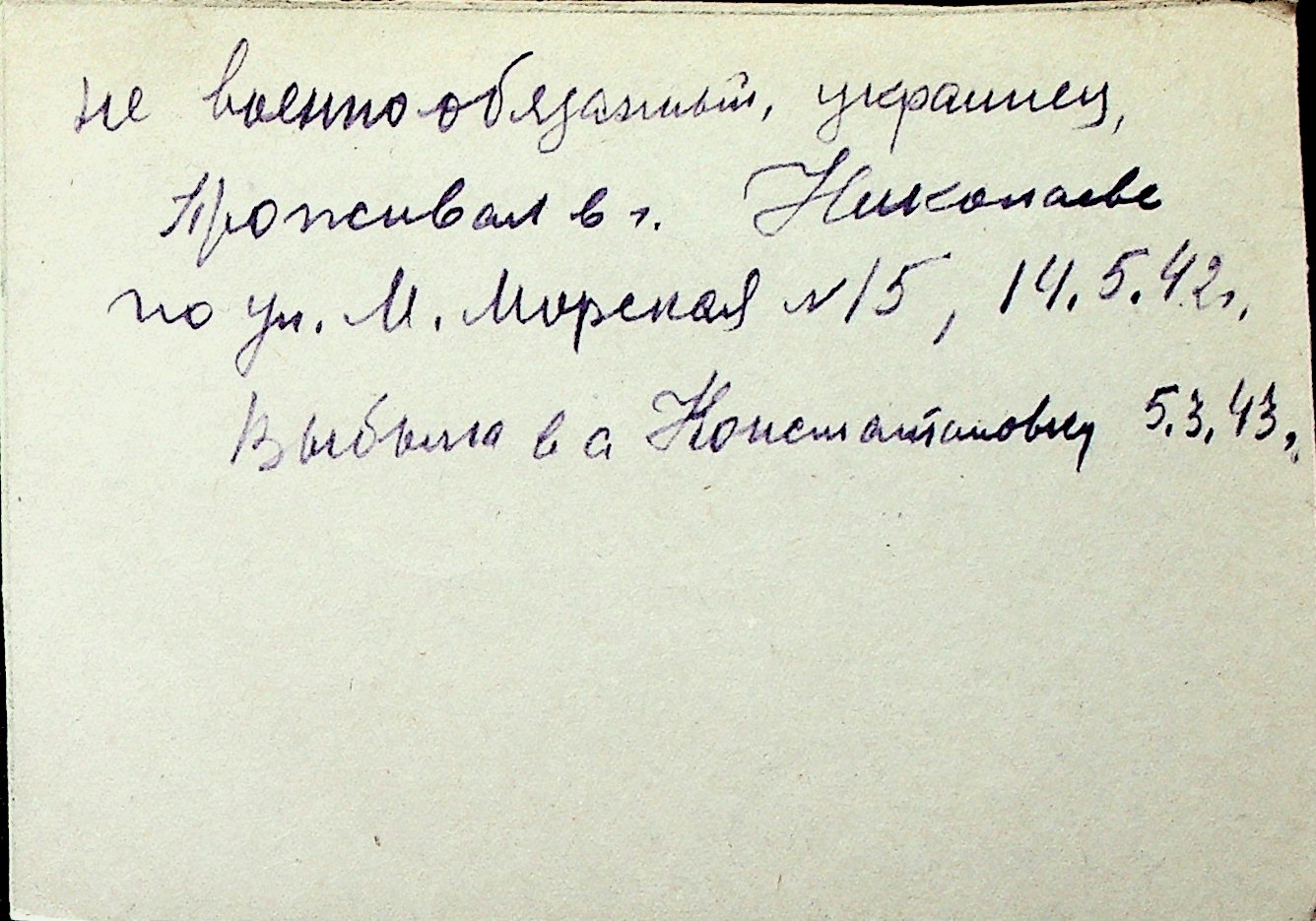 ◦ ◦ Перелік карток на осіб, які мешкали у м. Миколаїв у період окупації 1941–1944 років