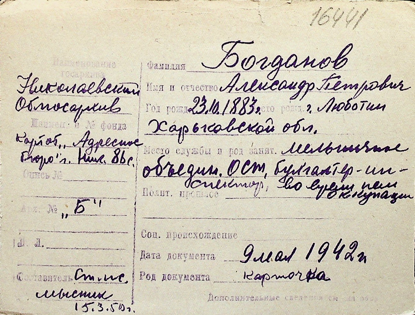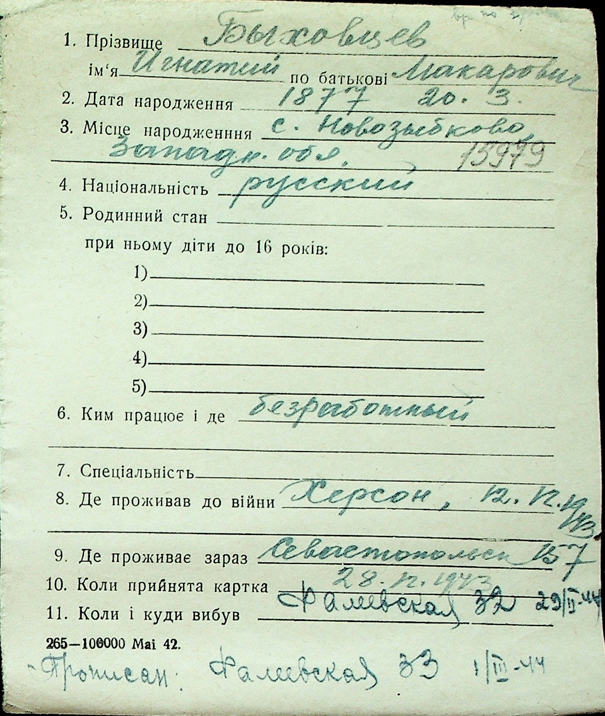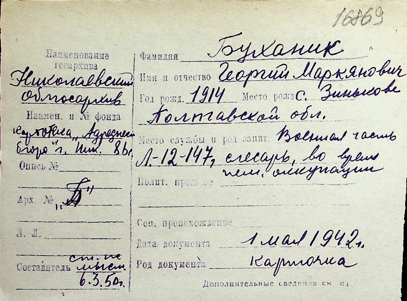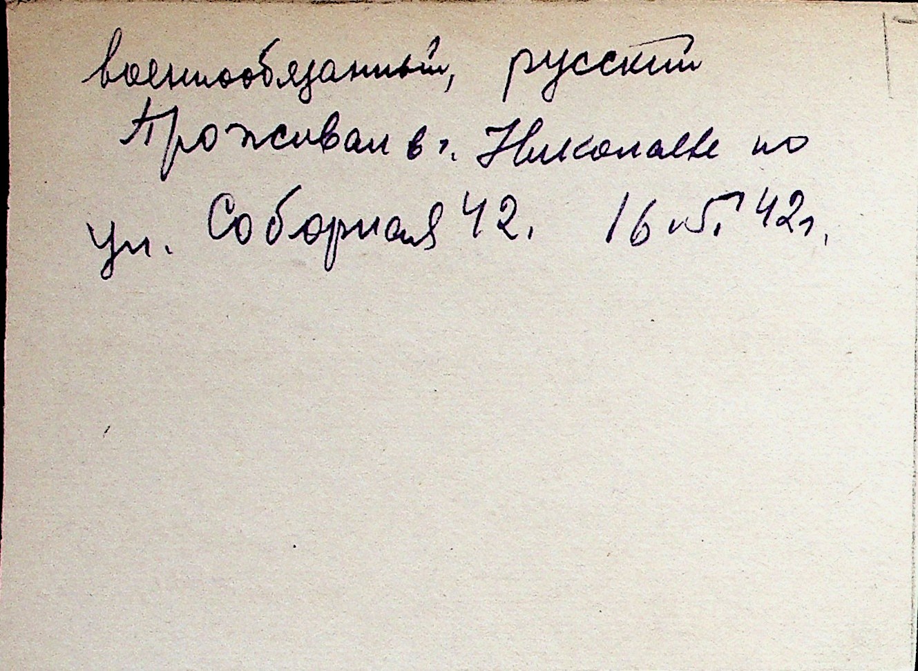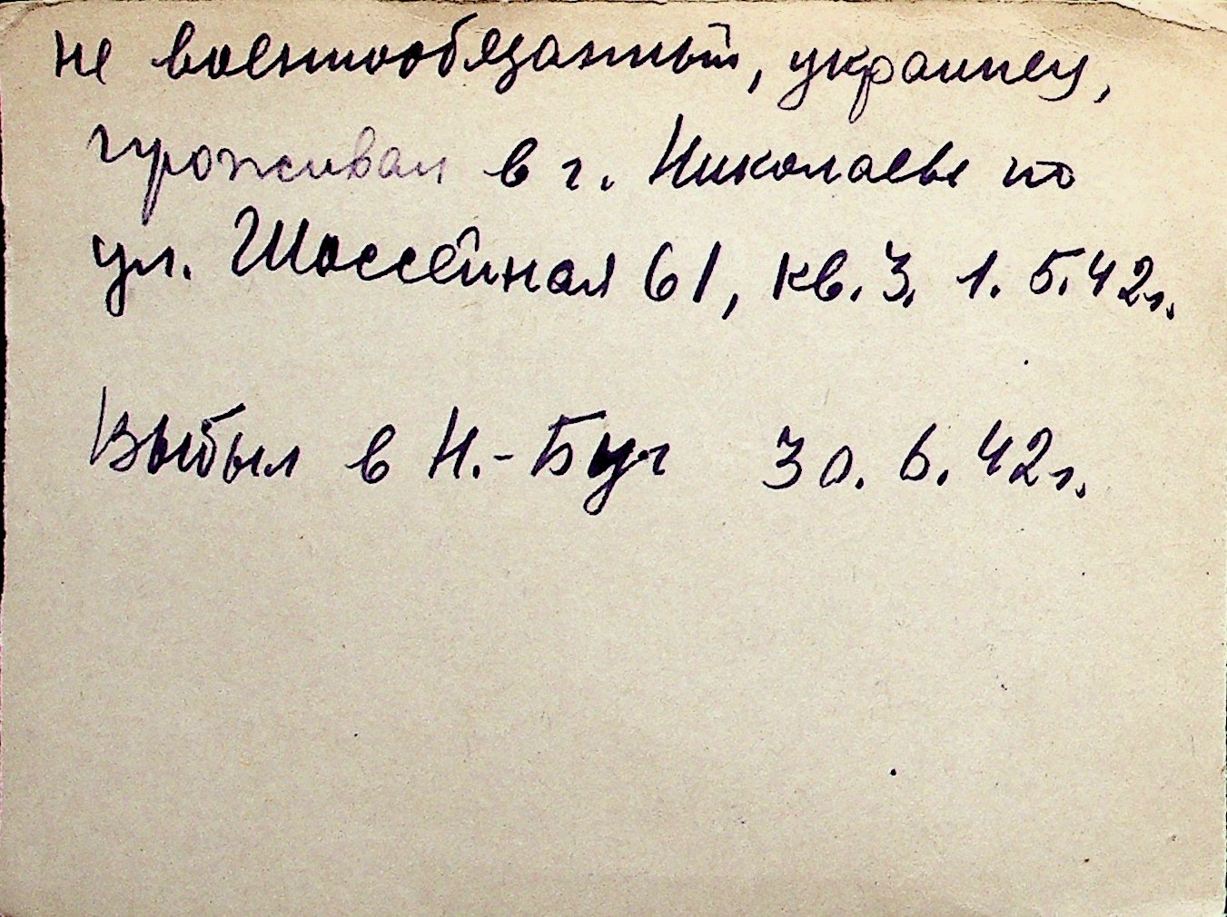 ◦ ◦ Перелік карток на осіб, які мешкали у м. Миколаїв у період окупації 1941–1944 років