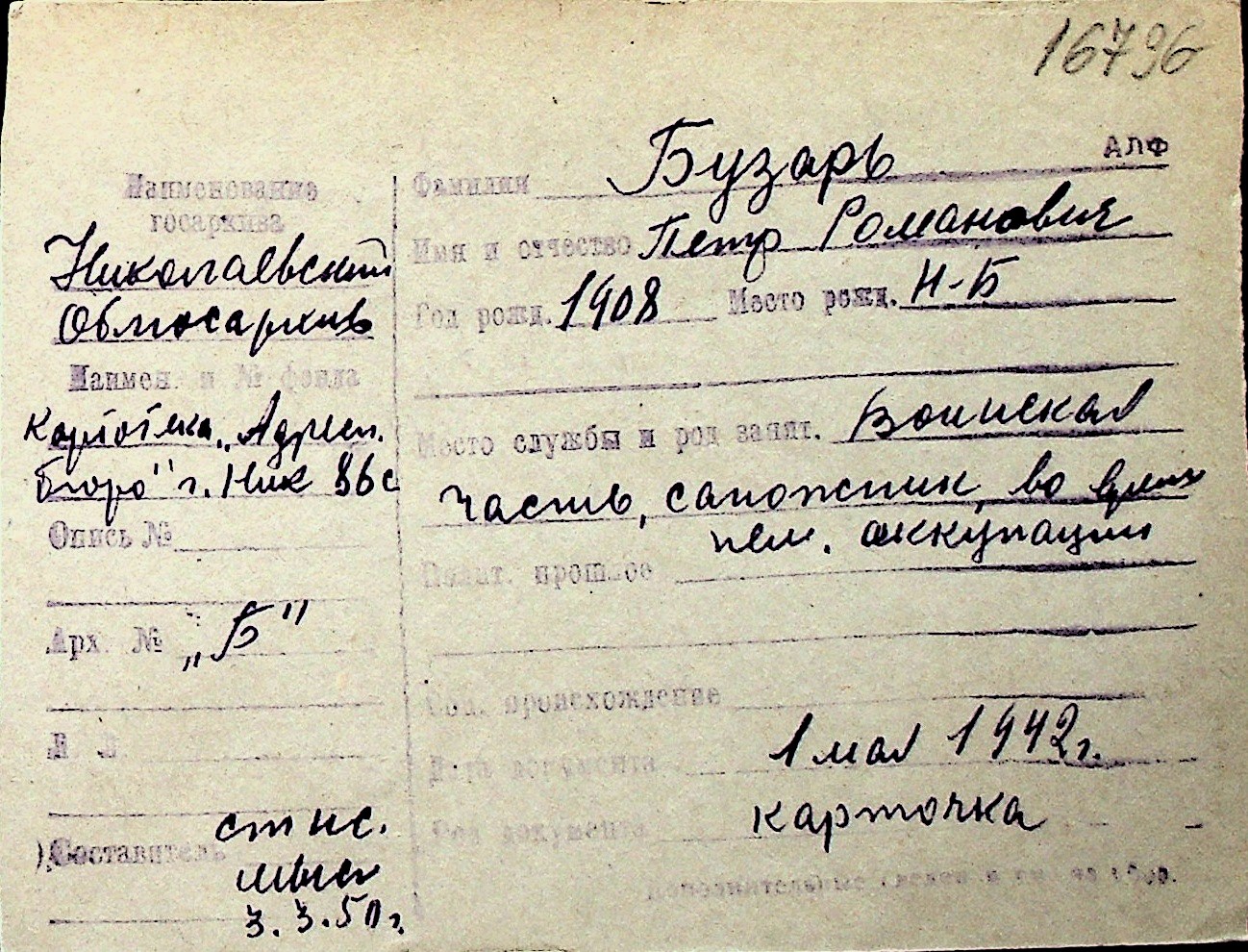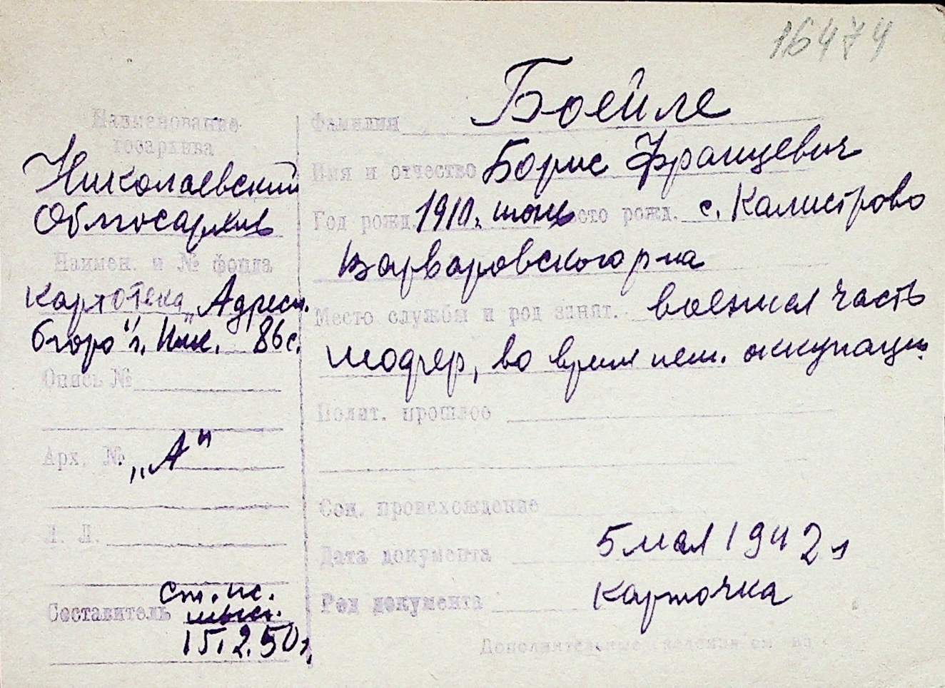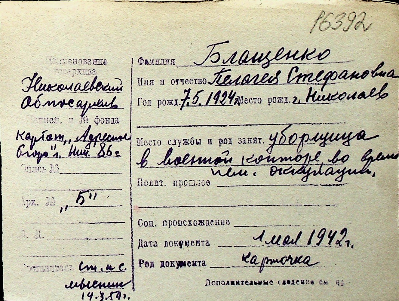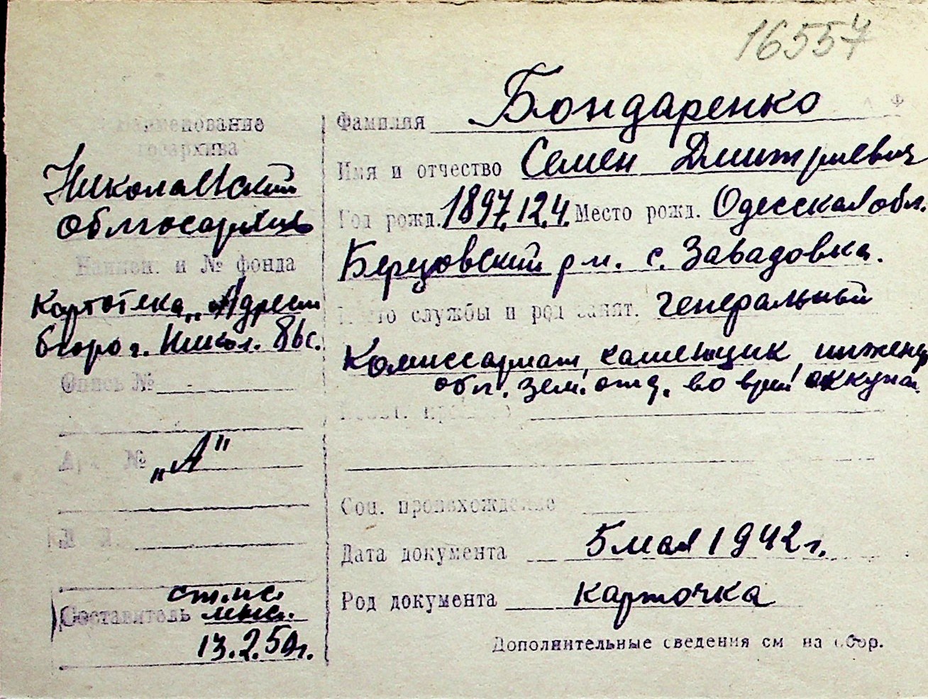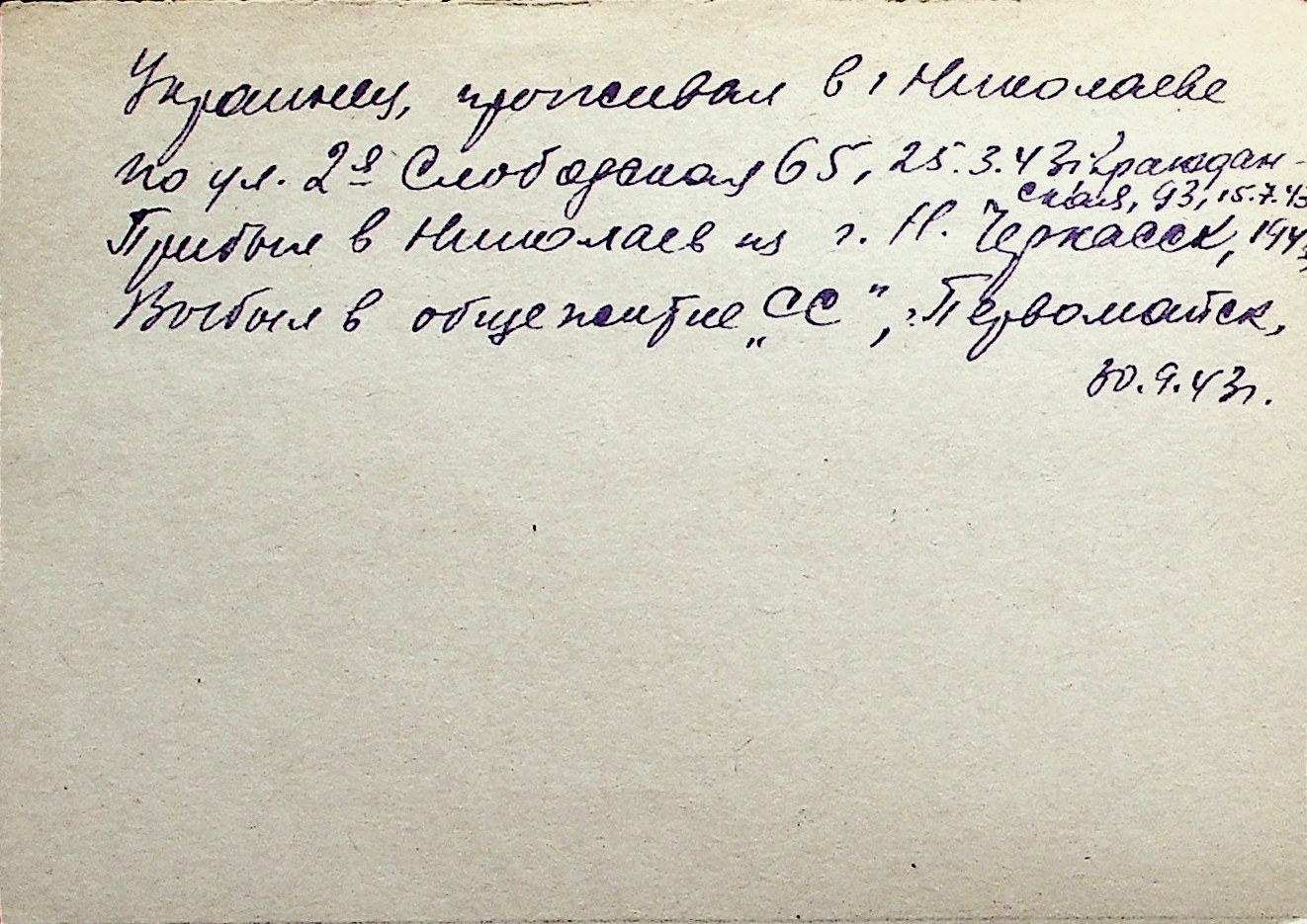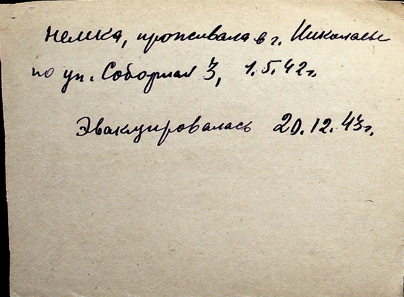 ◦ ◦ Перелік карток на осіб, які мешкали у м. Миколаїв у період окупації 1941–1944 років