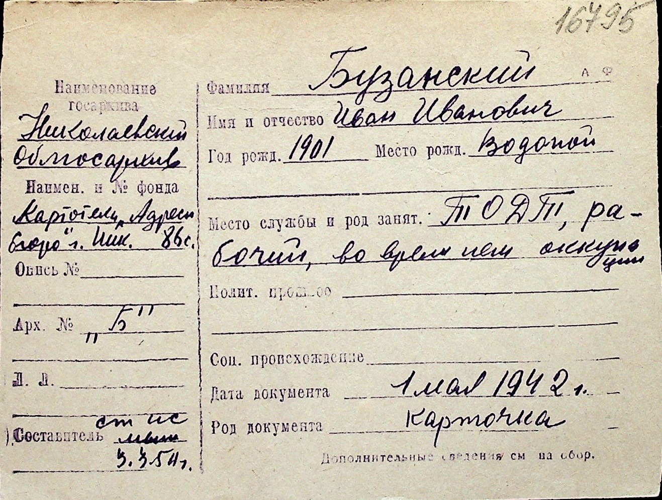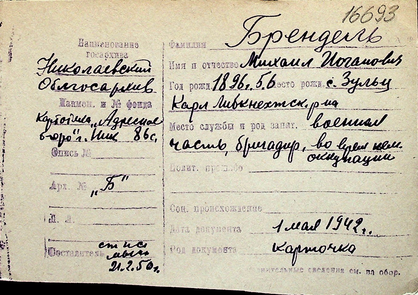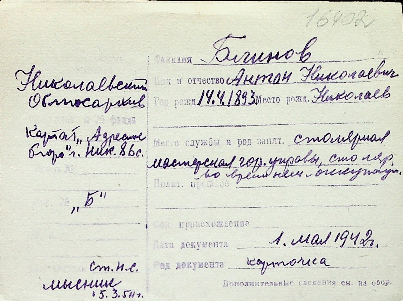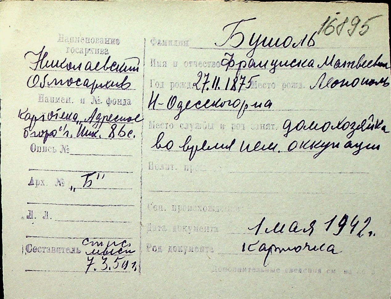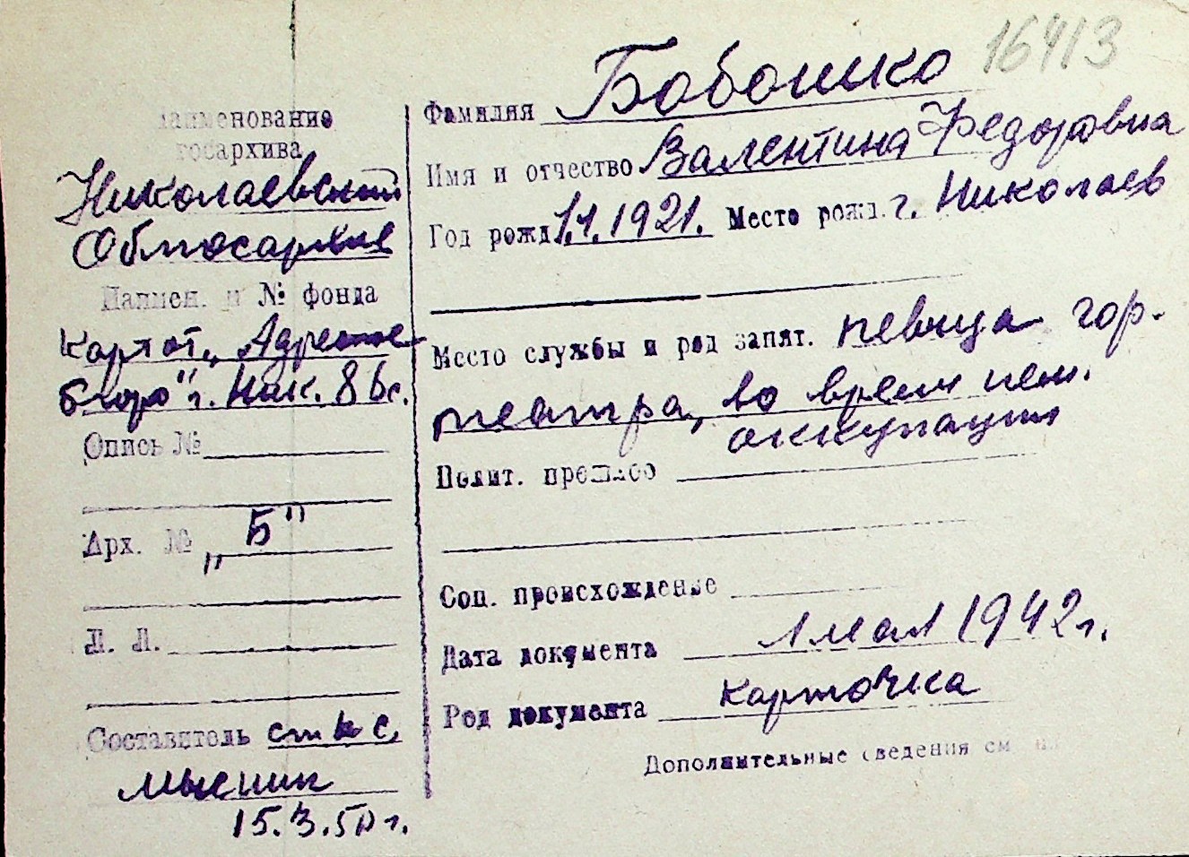 ◦ ◦ Перелік карток на осіб, які мешкали у м. Миколаїв у період окупації 1941–1944 років