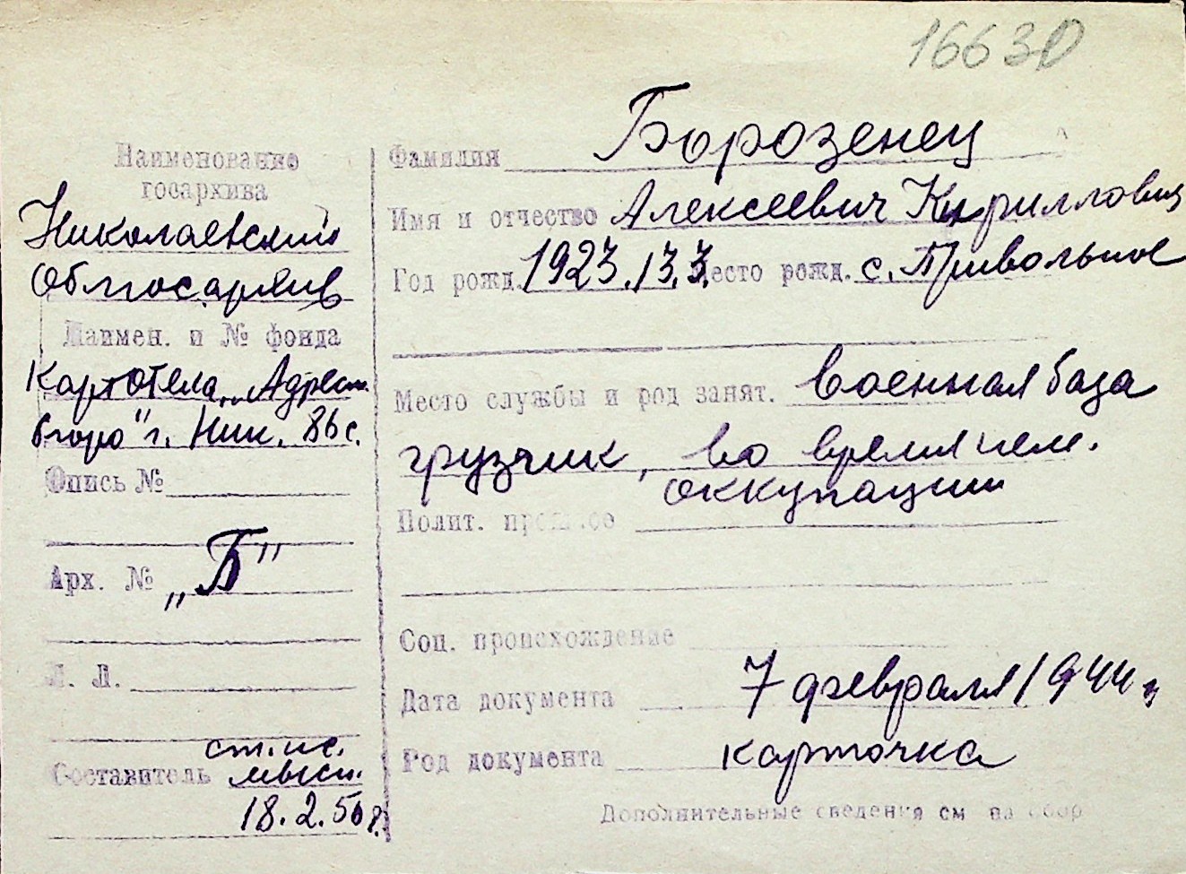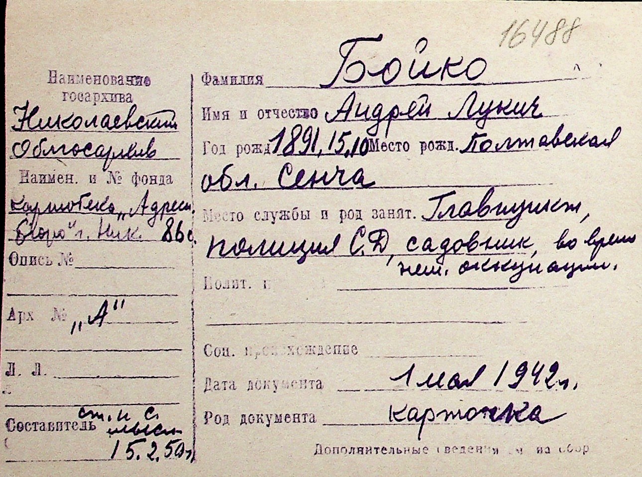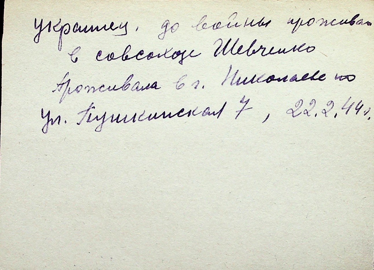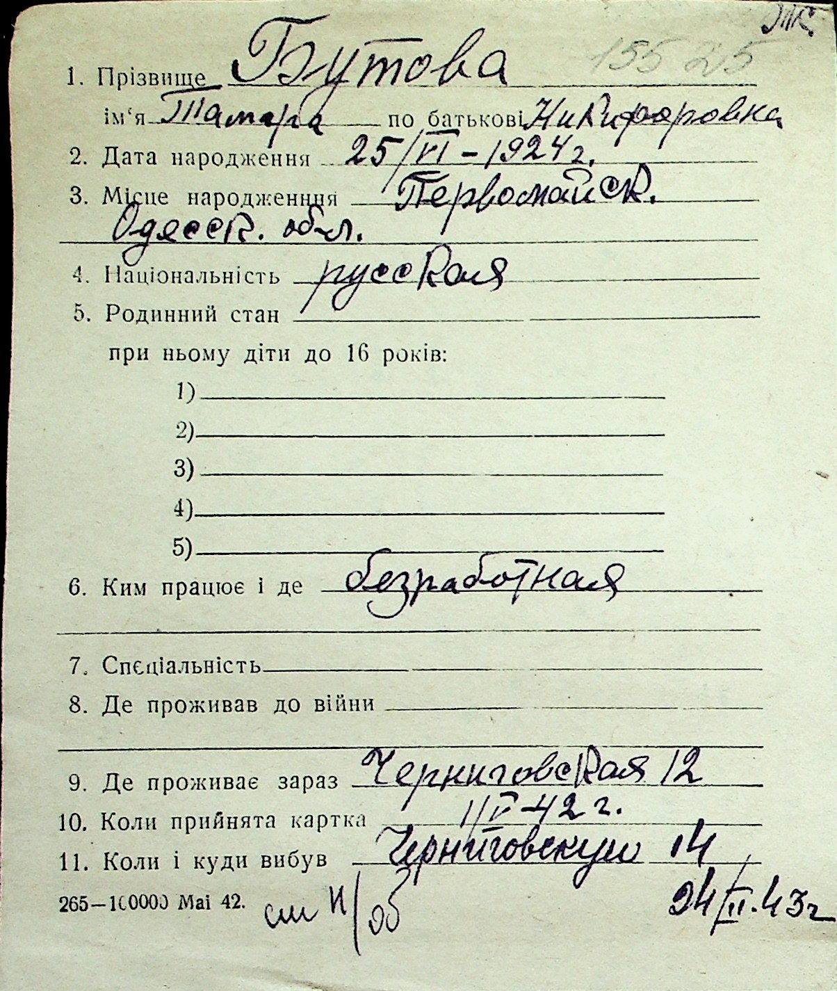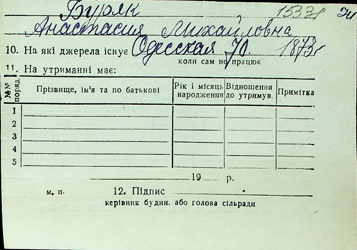 ◦ ◦ Перелік карток на осіб, які мешкали у м. Миколаїв у період окупації 1941–1944 років