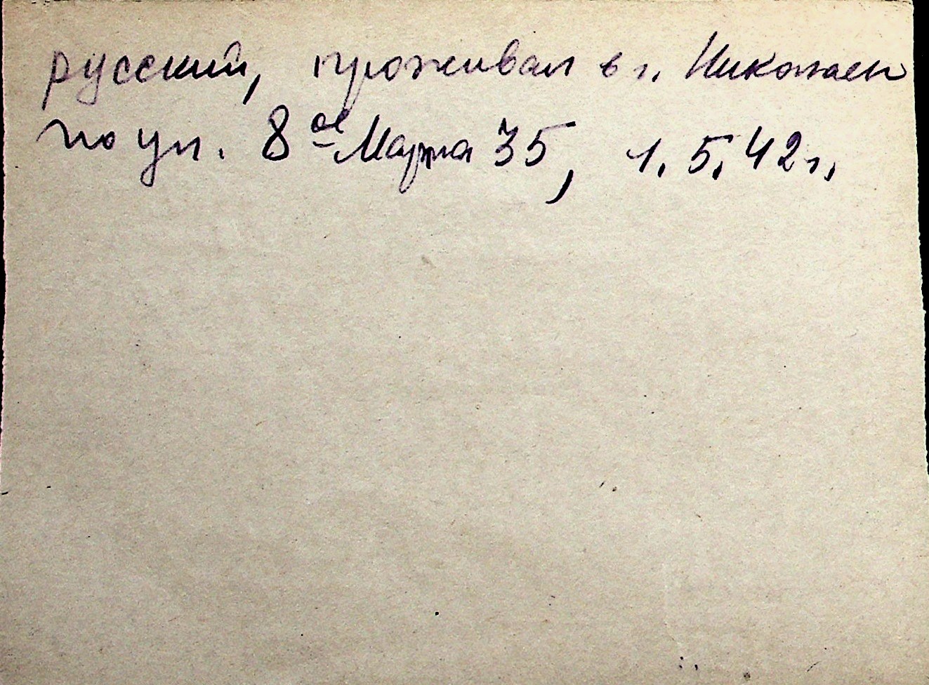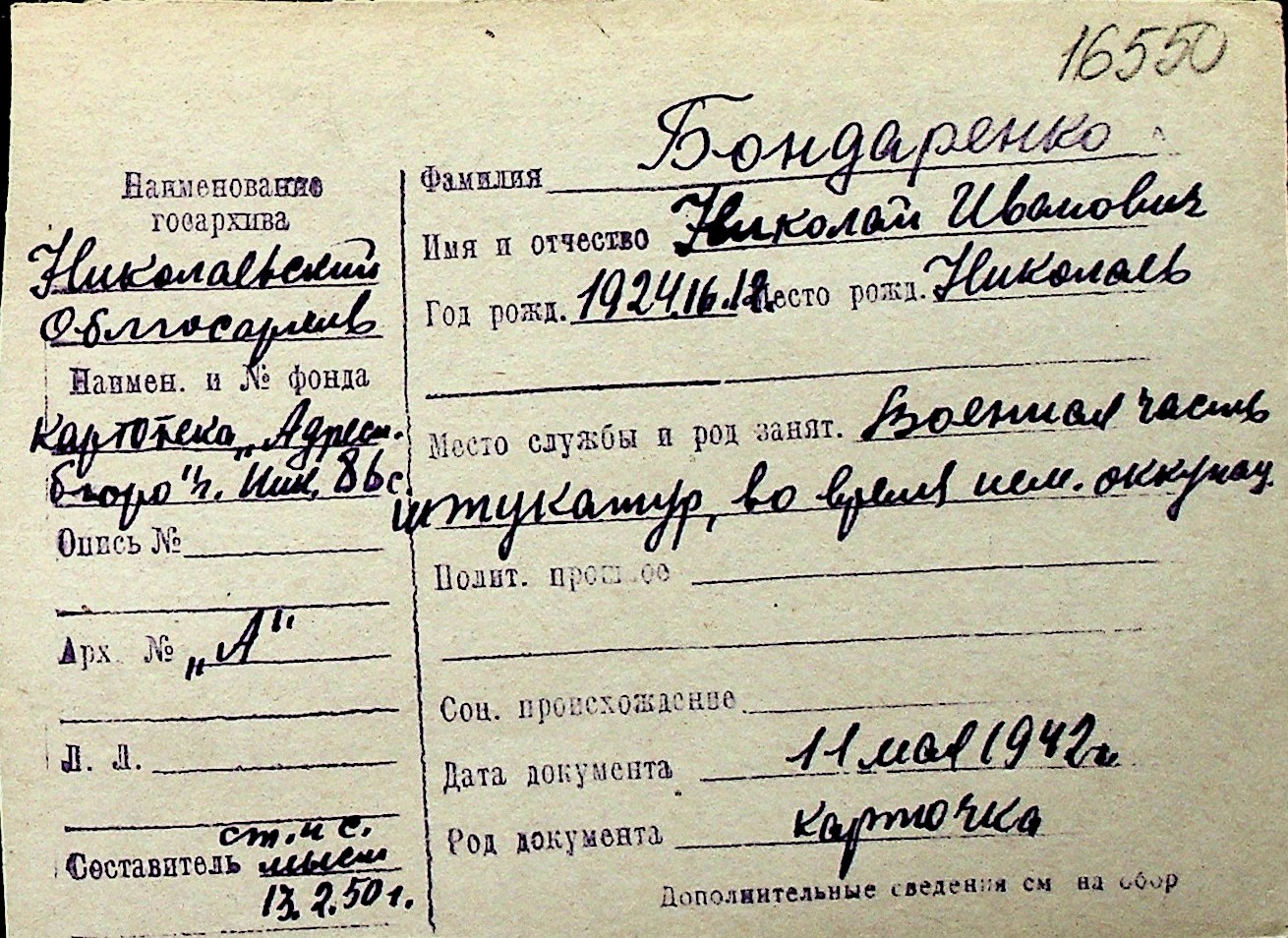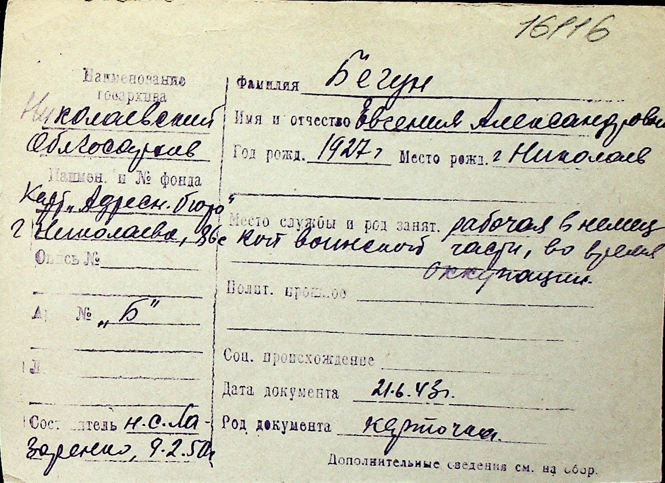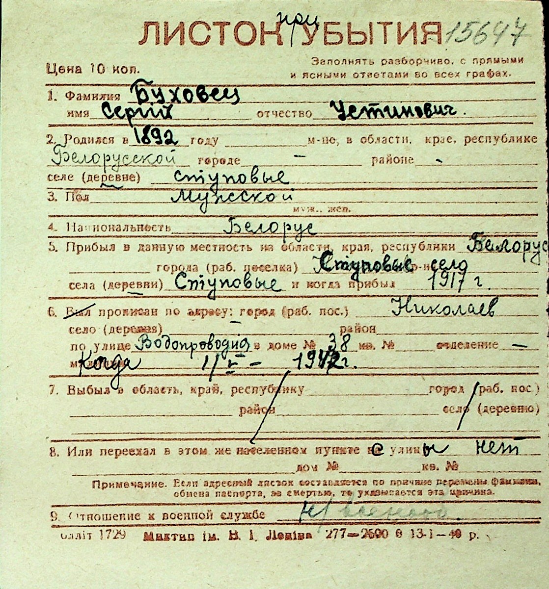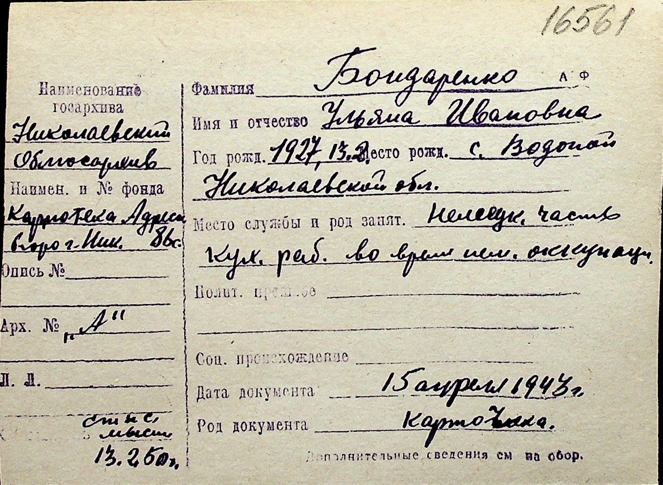 ◦ ◦ Перелік карток на осіб, які мешкали у м. Миколаїв у період окупації 1941–1944 років