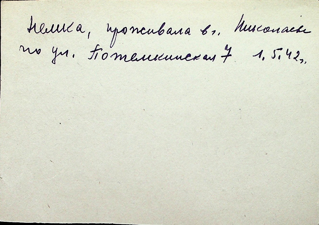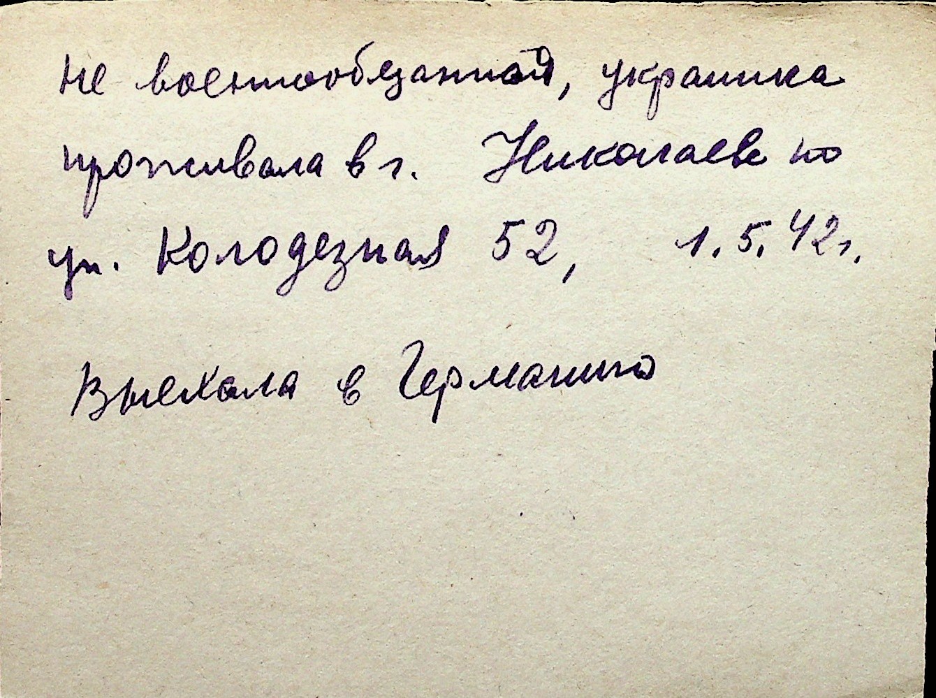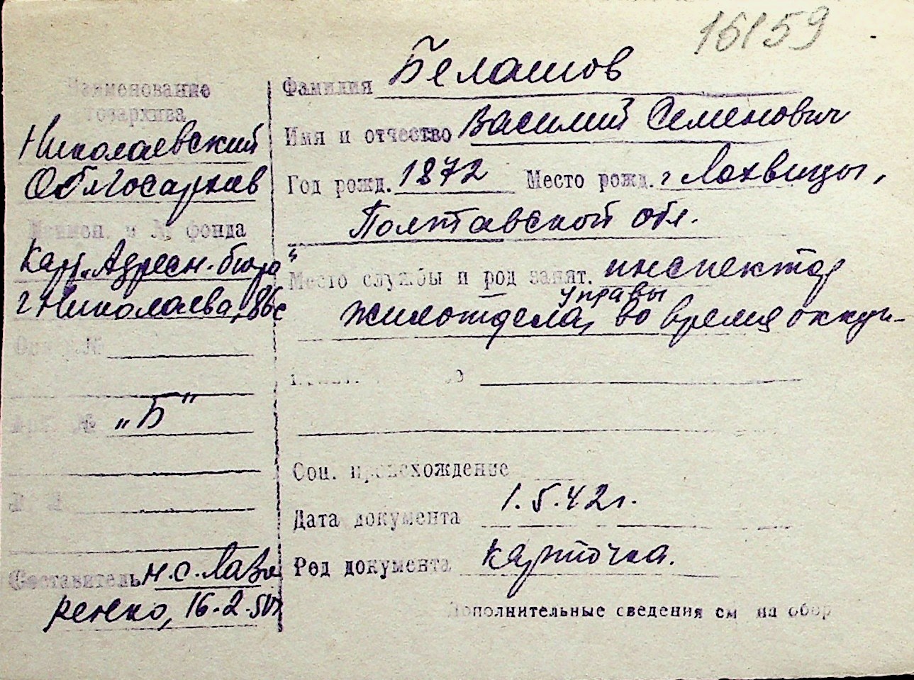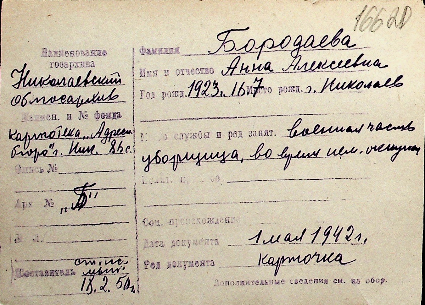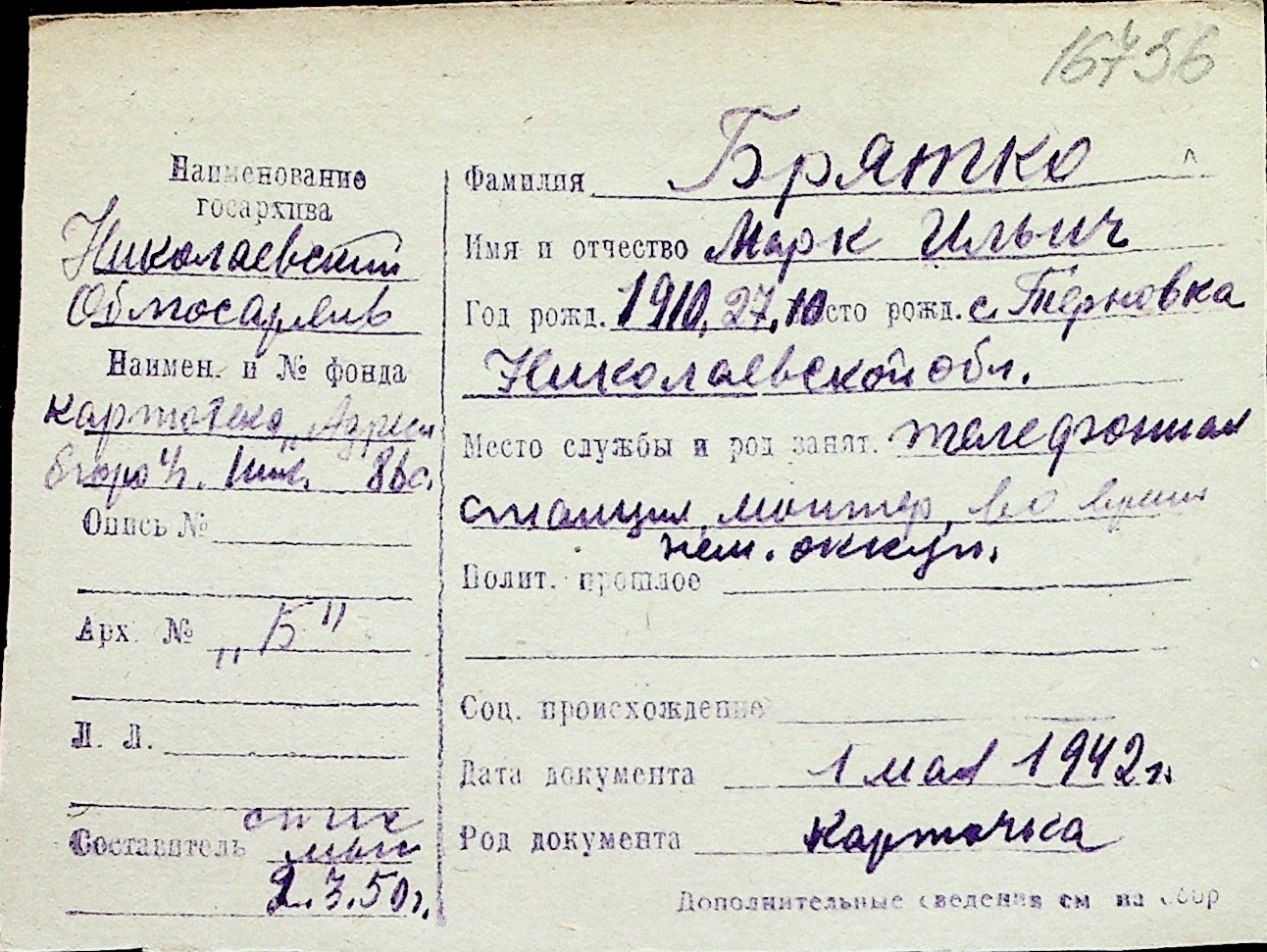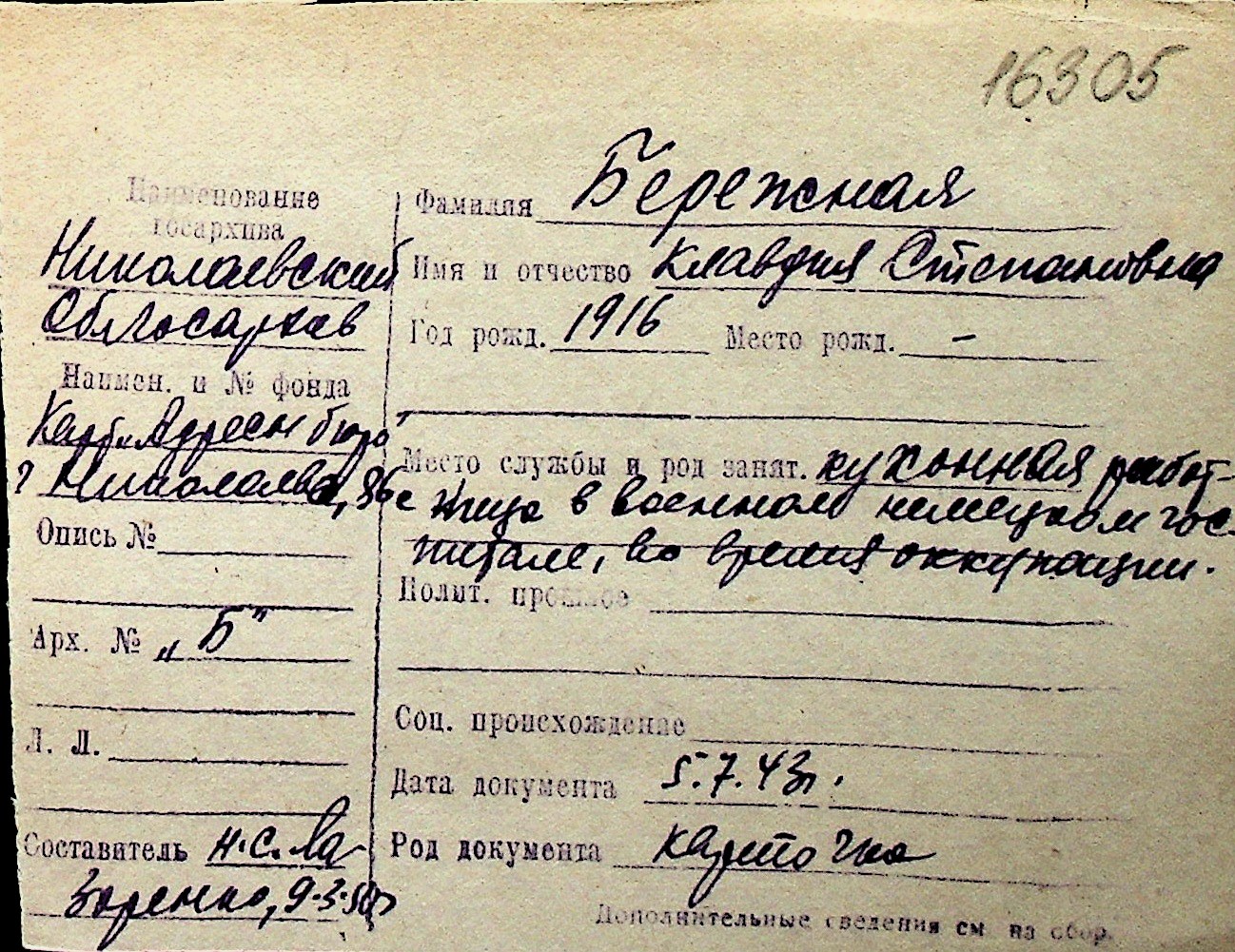 ◦ ◦ Перелік карток на осіб, які мешкали у м. Миколаїв у період окупації 1941–1944 років