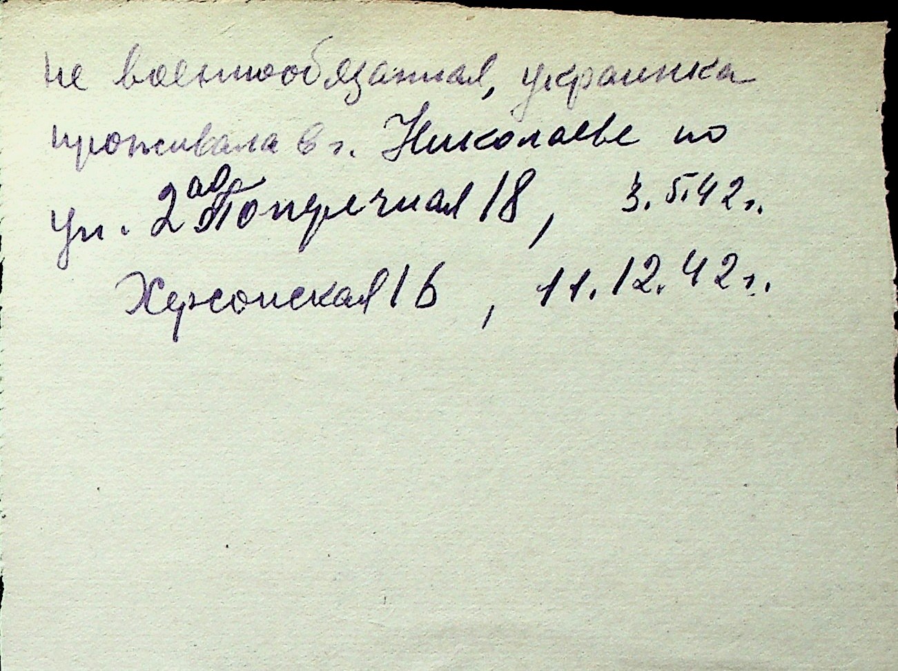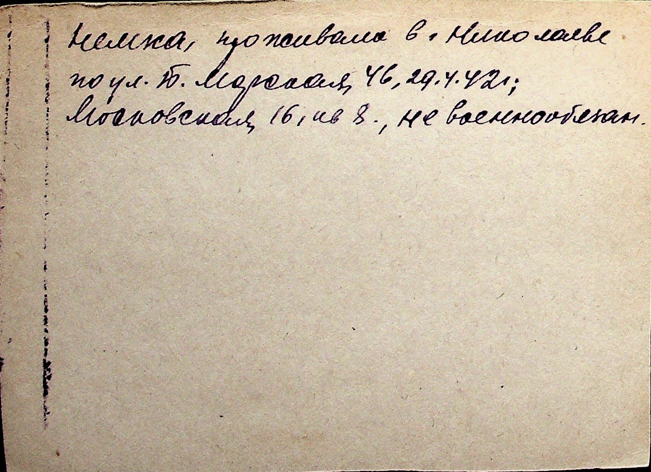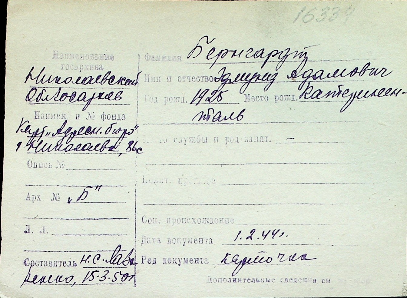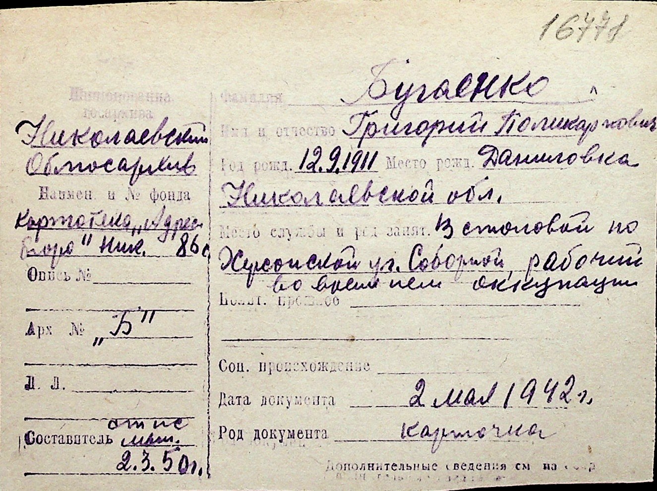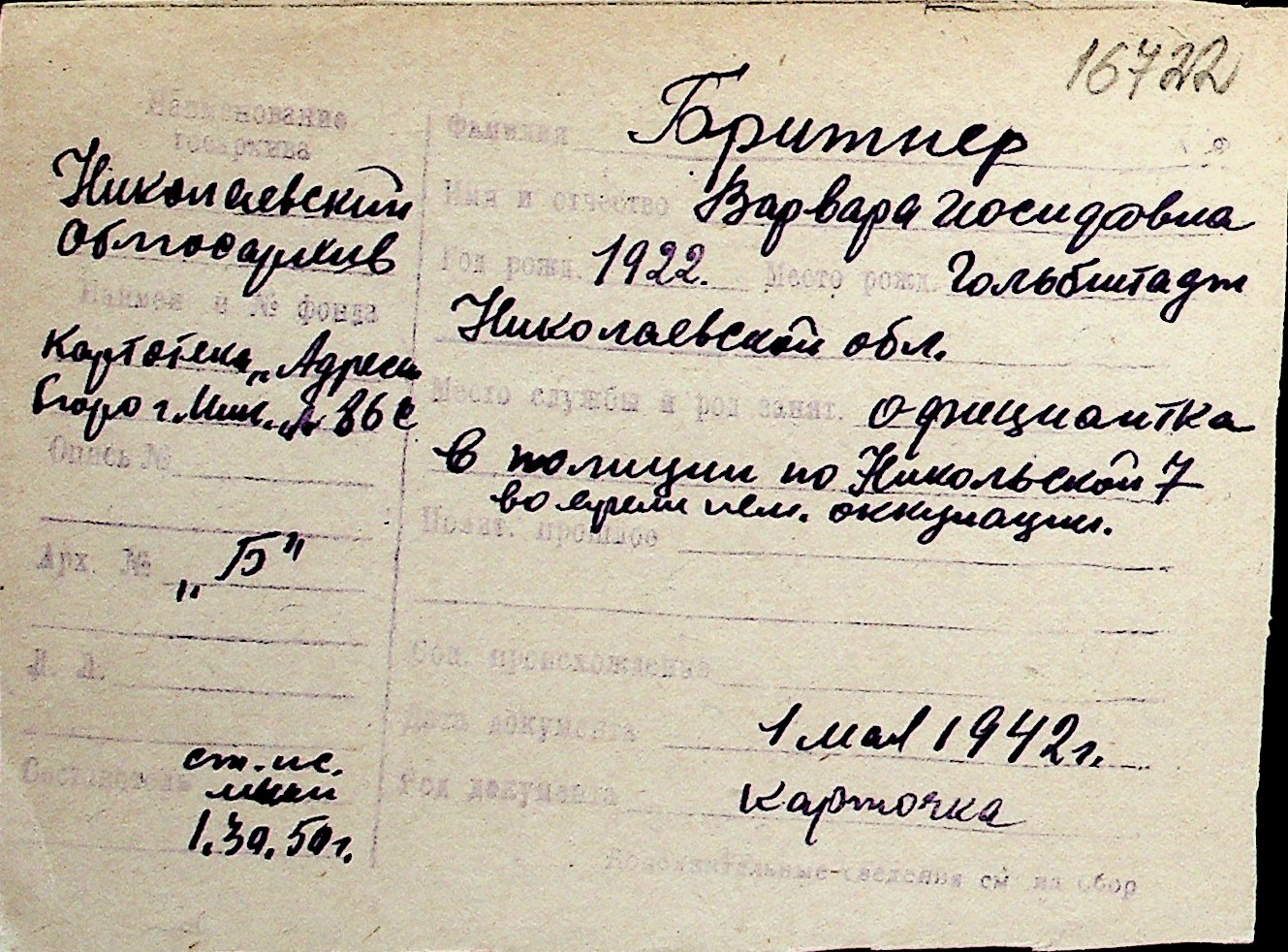 ◦ ◦ Перелік карток на осіб, які мешкали у м. Миколаїв у період окупації 1941–1944 років