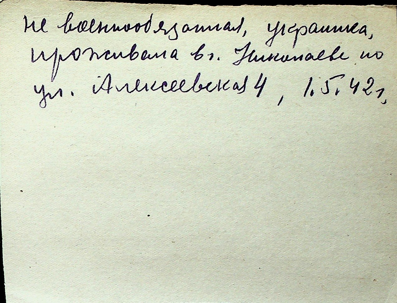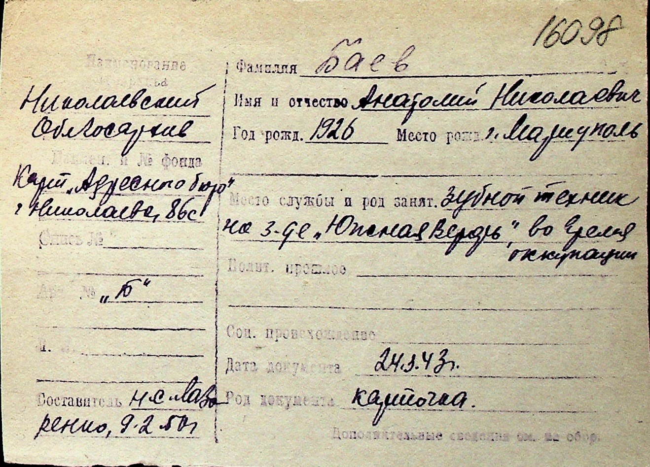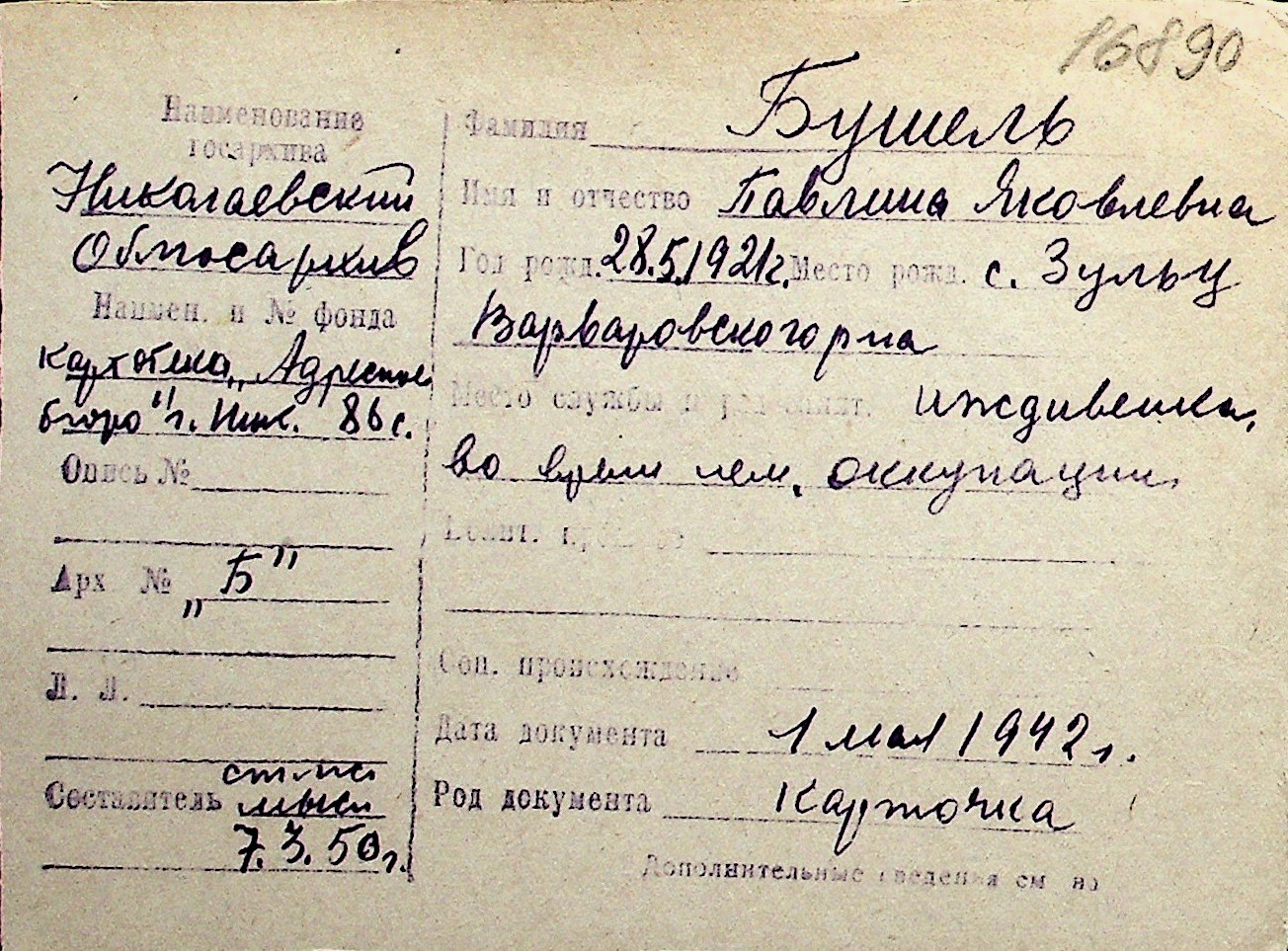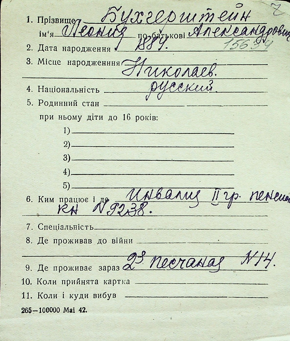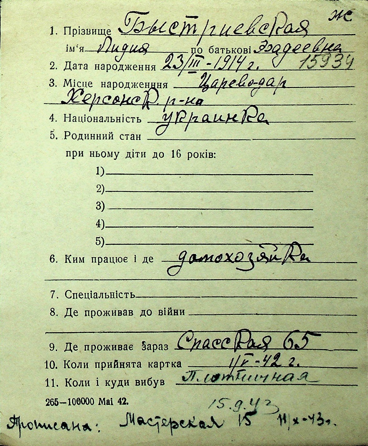 ◦ ◦ Перелік карток на осіб, які мешкали у м. Миколаїв у період окупації 1941–1944 років