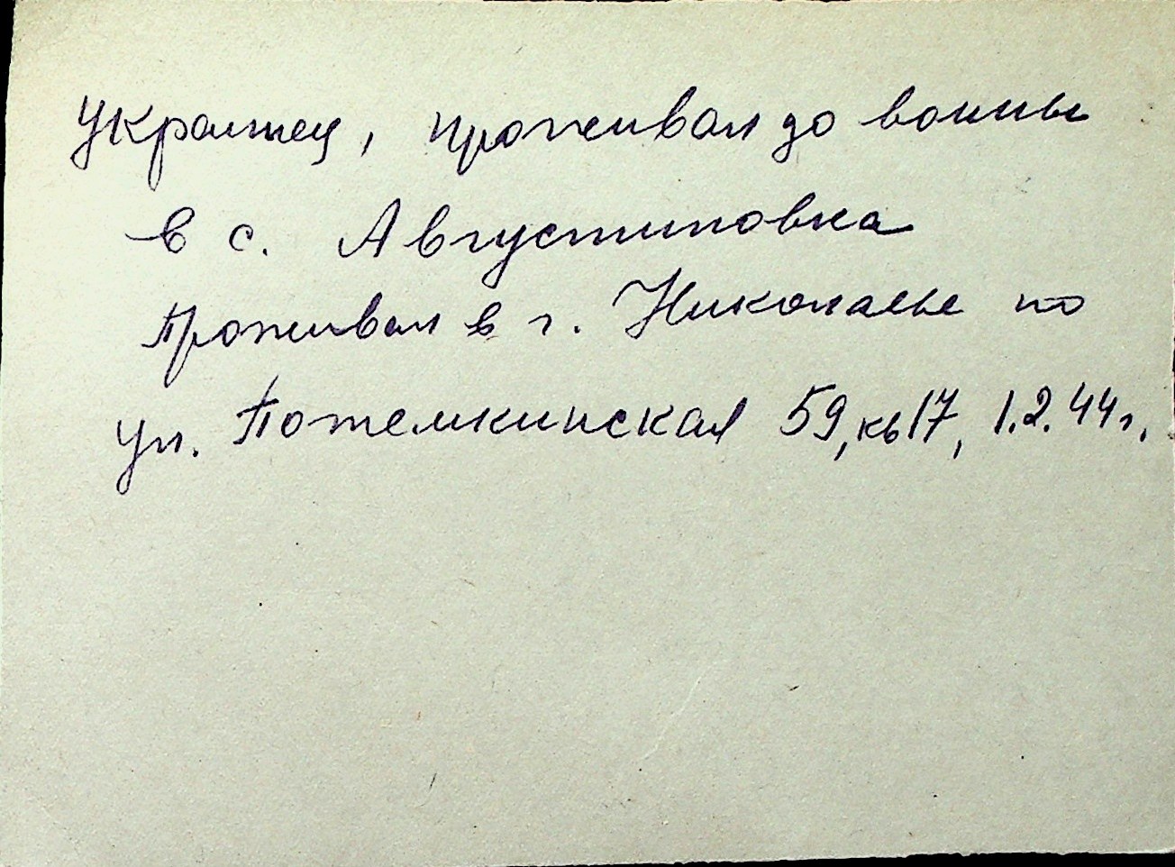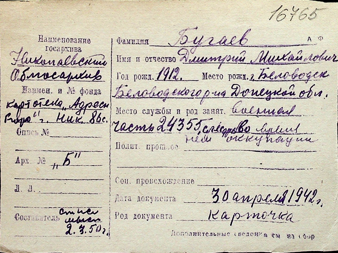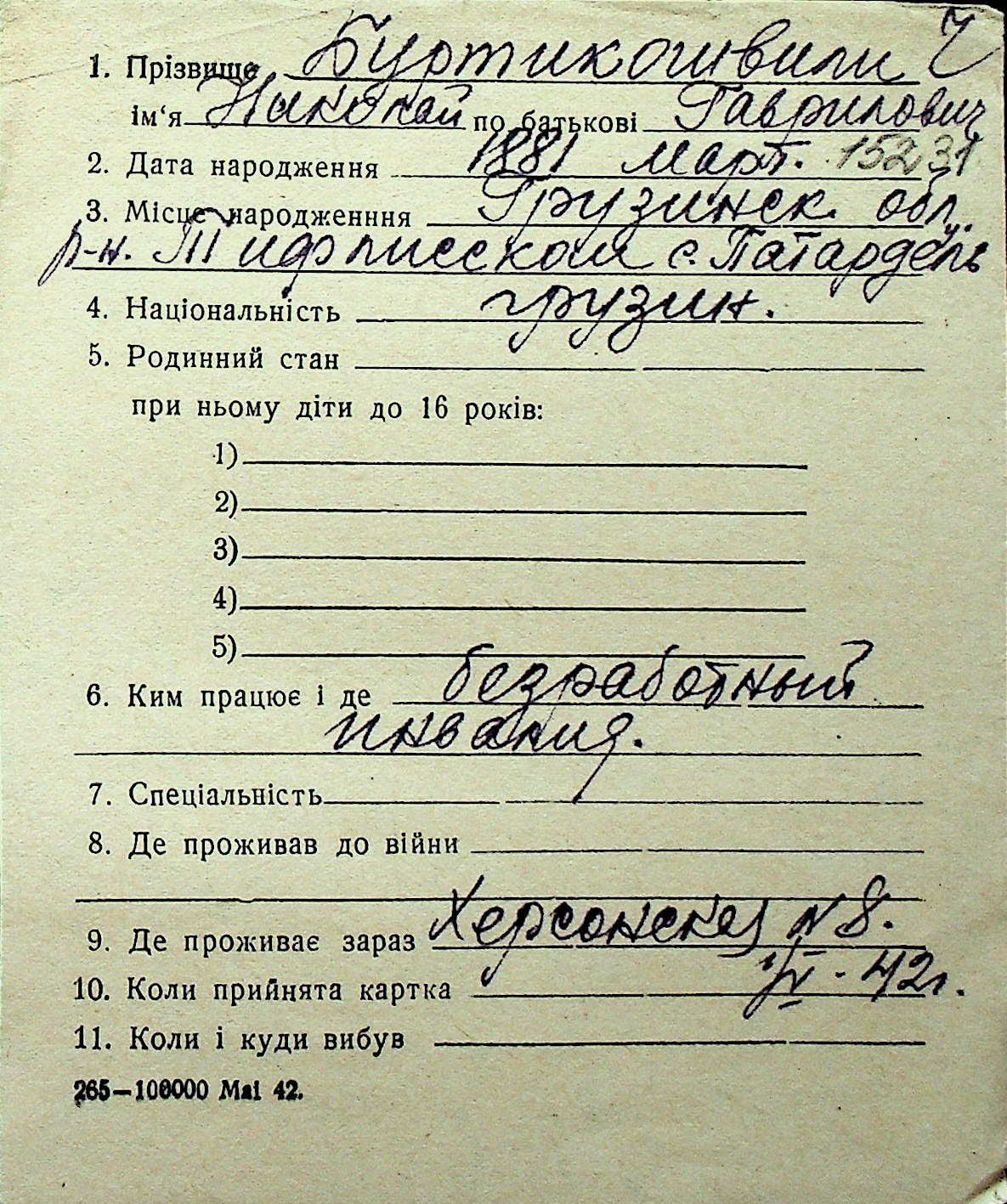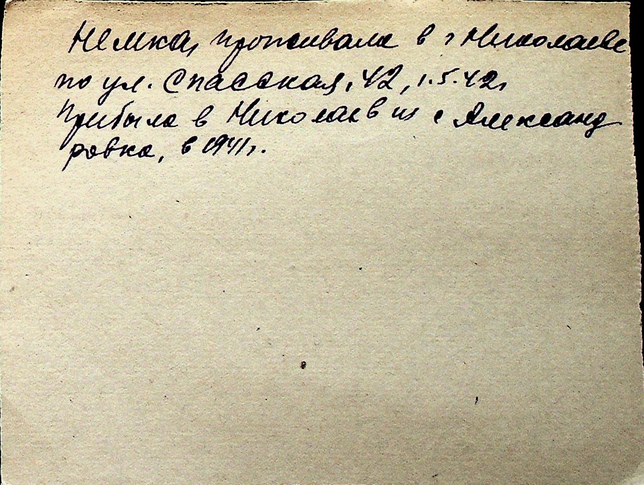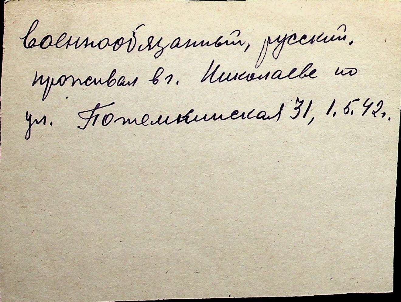 ◦ ◦ Перелік карток на осіб, які мешкали у м. Миколаїв у період окупації 1941–1944 років
