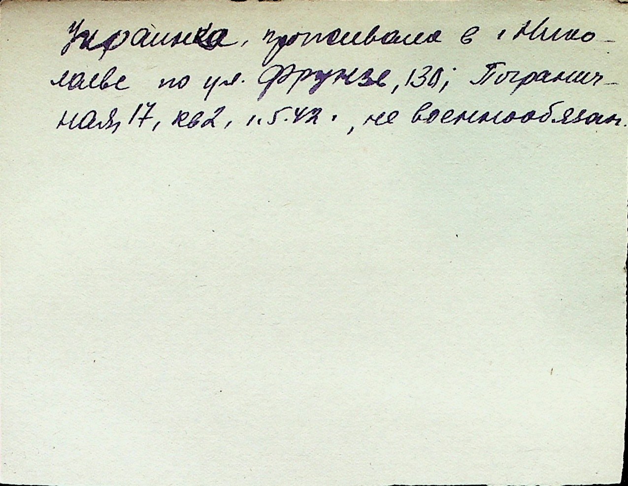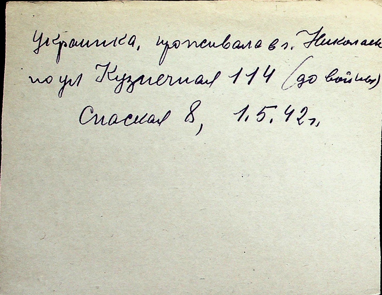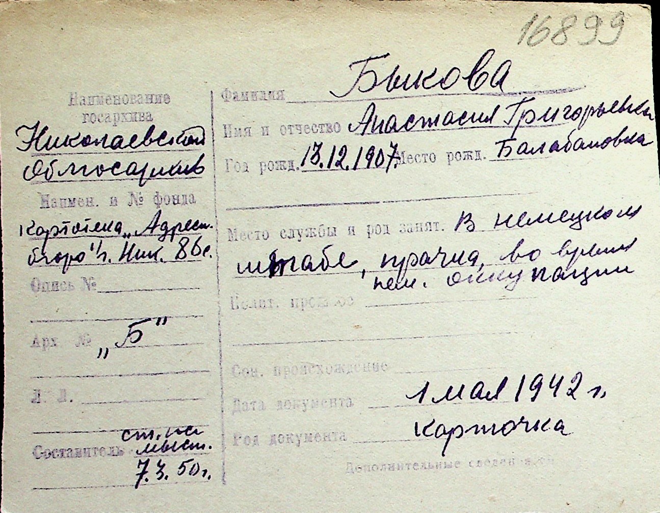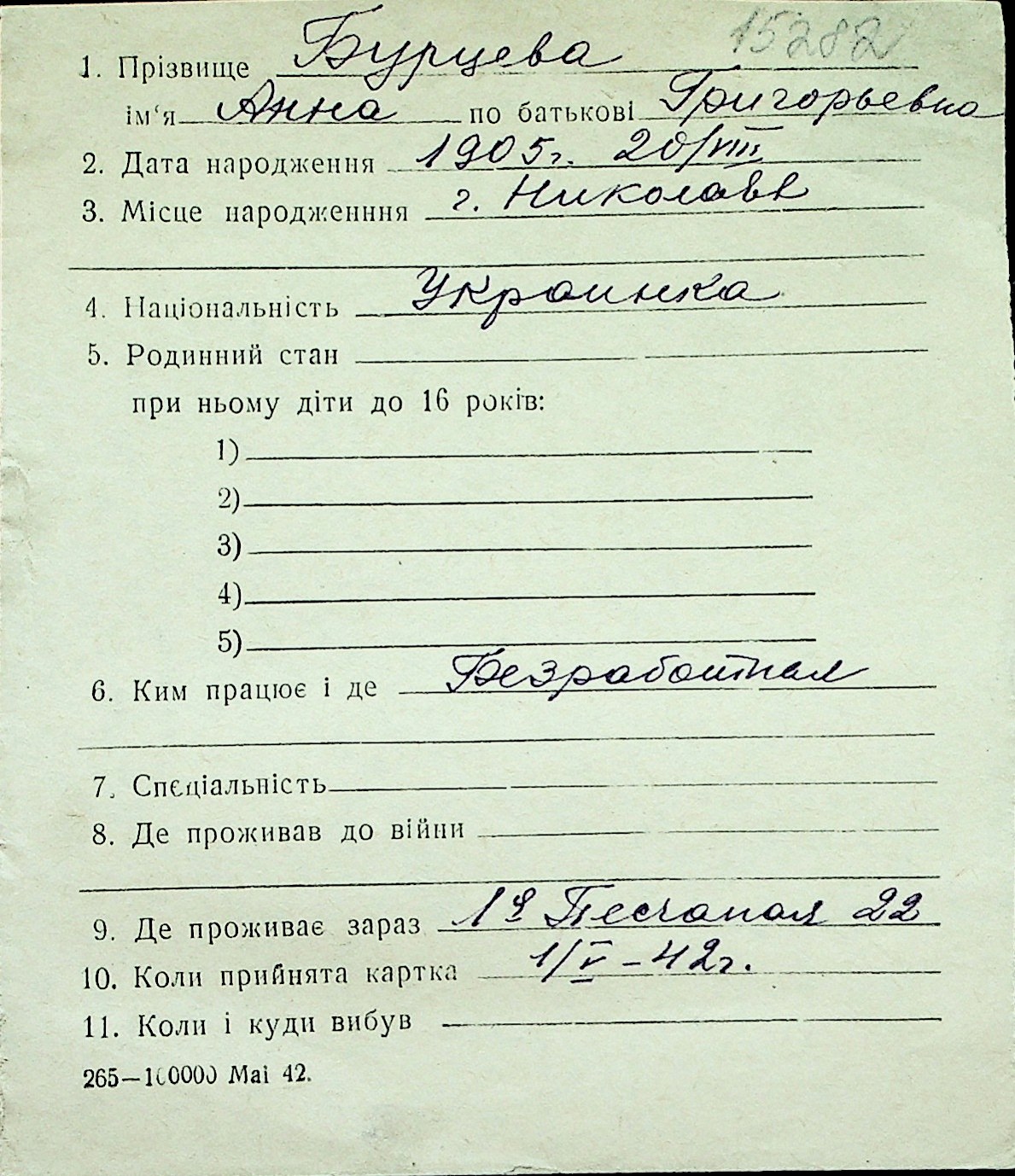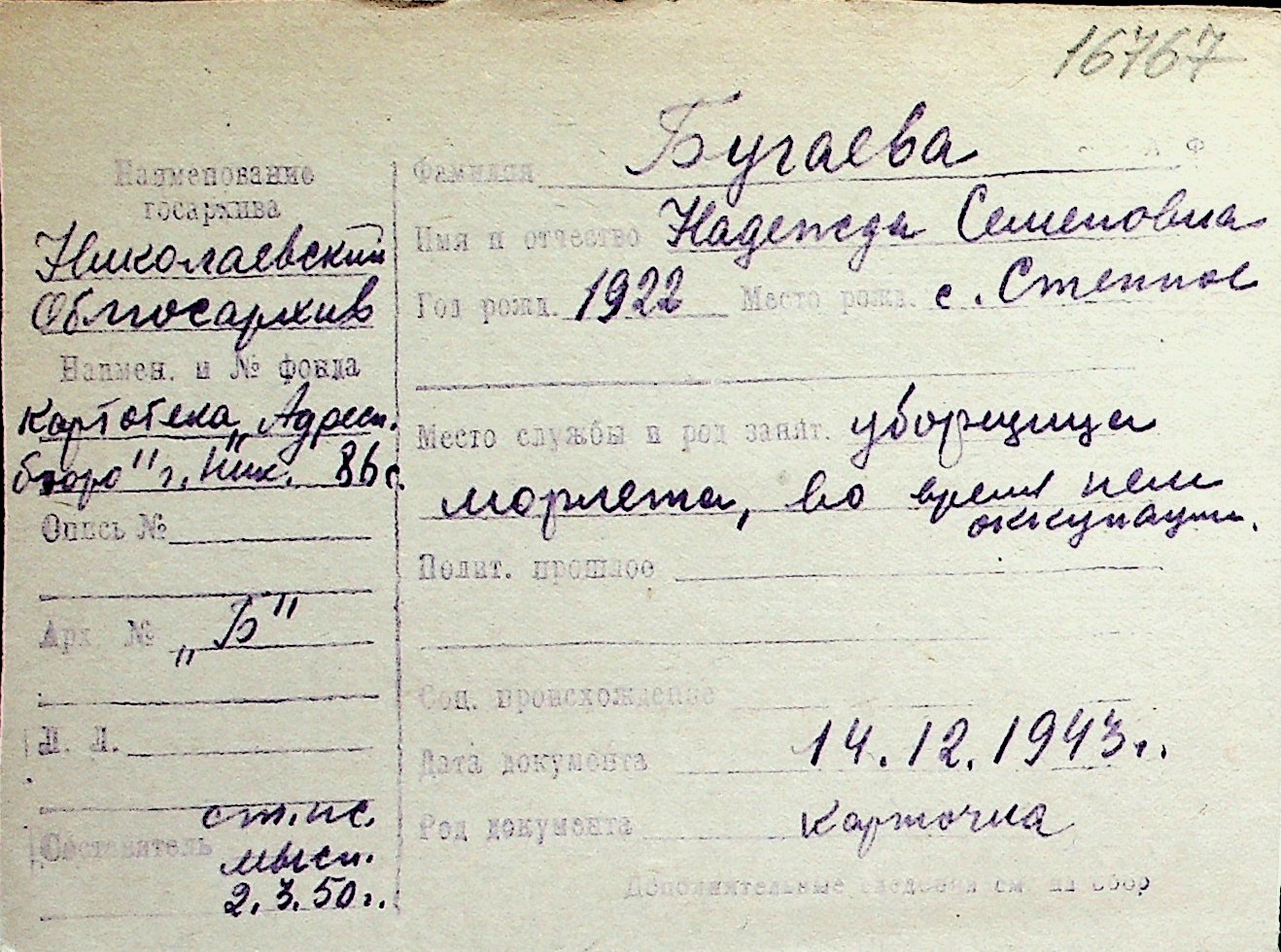 ◦ ◦ Перелік карток на осіб, які мешкали у м. Миколаїв у період окупації 1941–1944 років