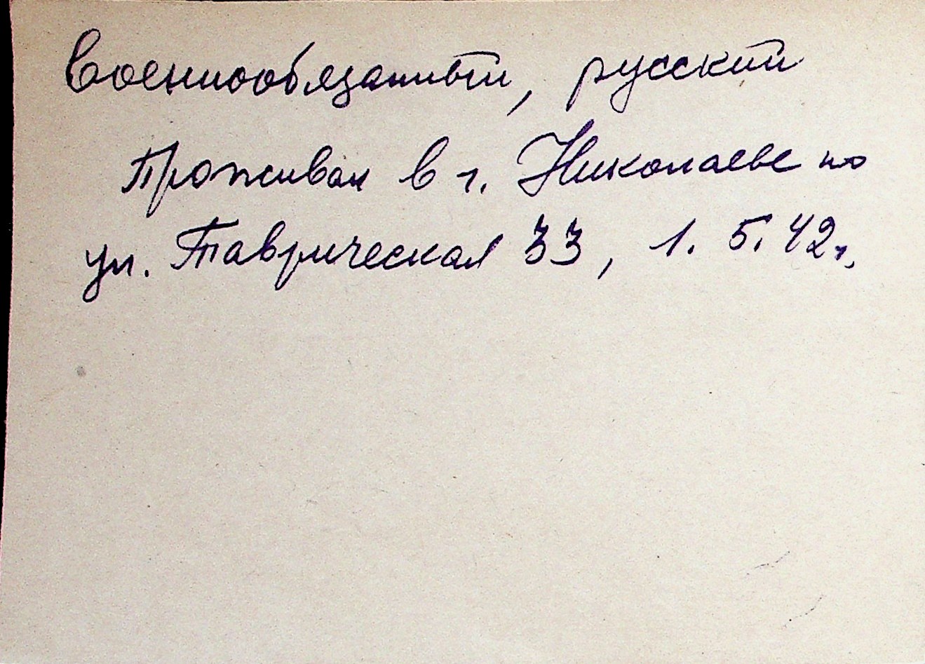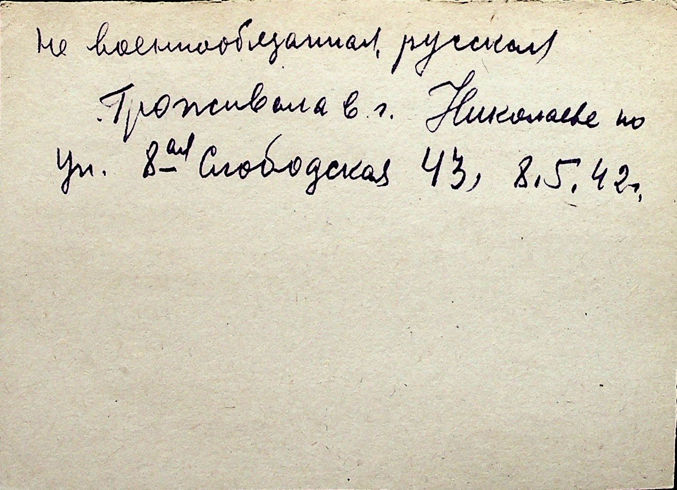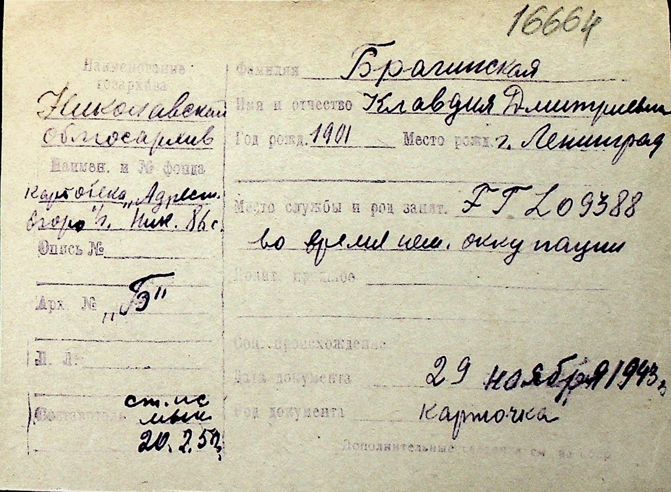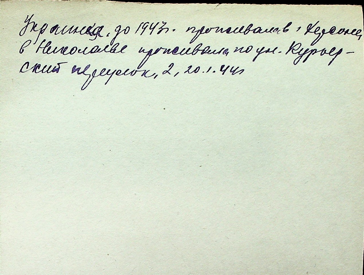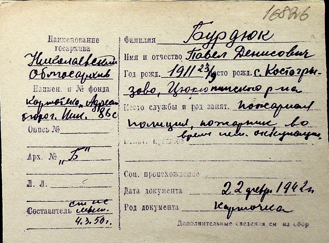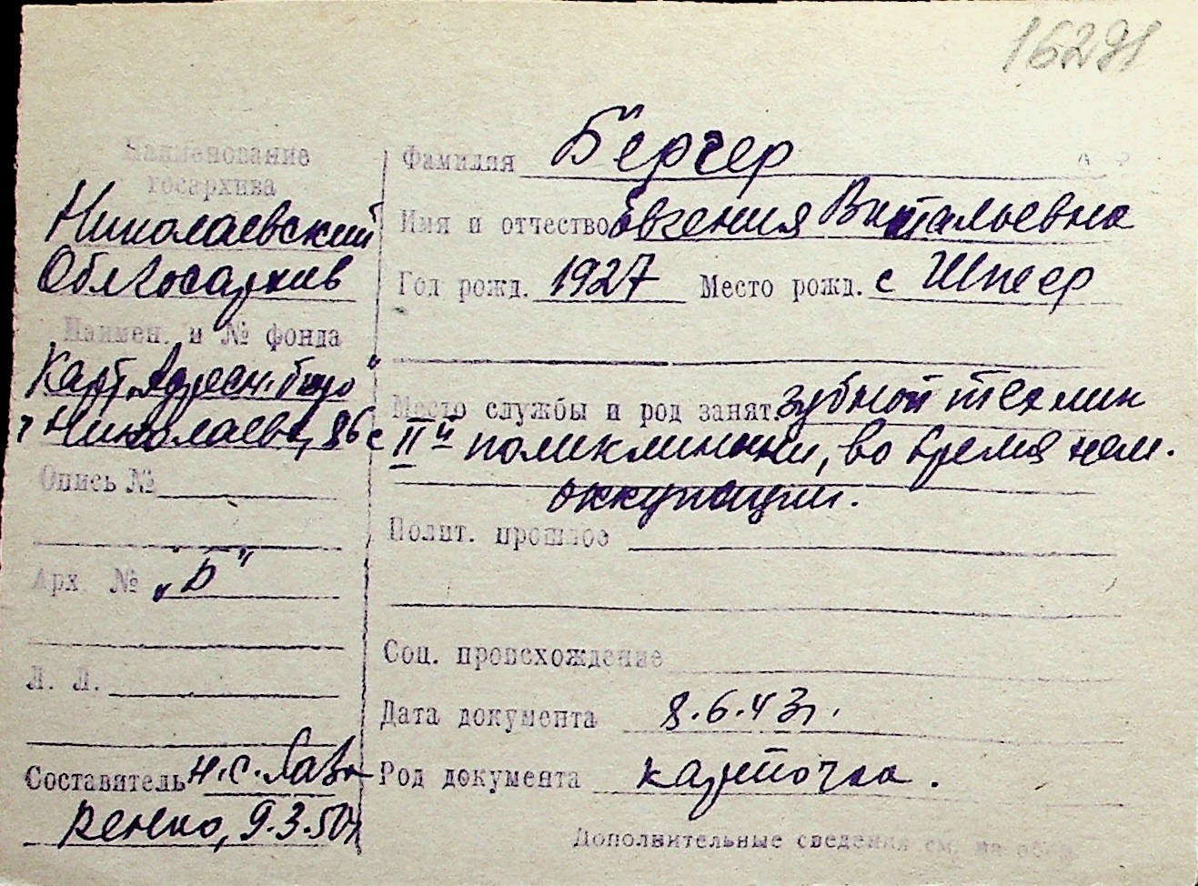 ◦ ◦ Перелік карток на осіб, які мешкали у м. Миколаїв у період окупації 1941–1944 років