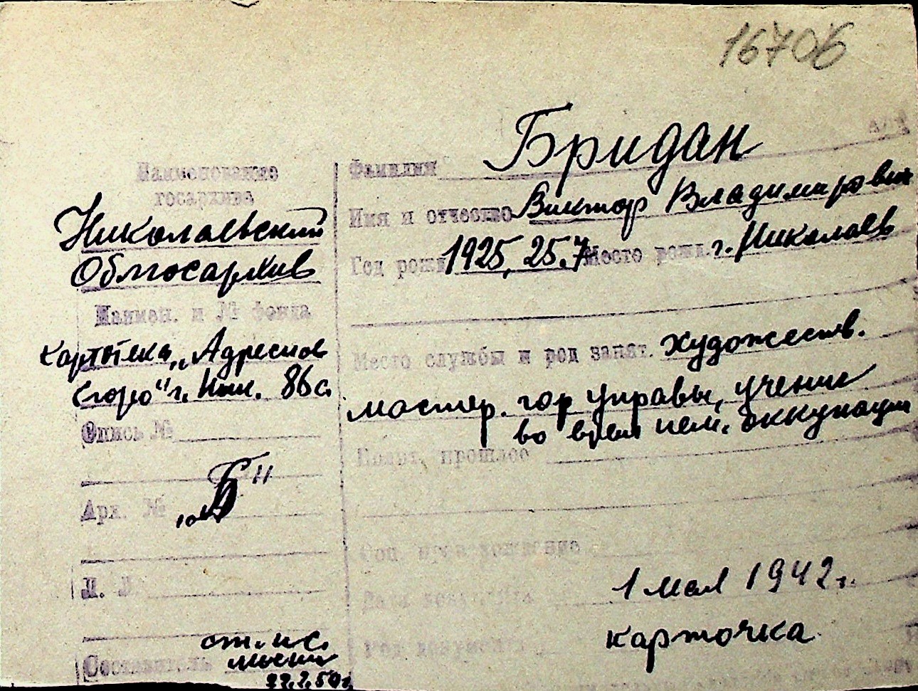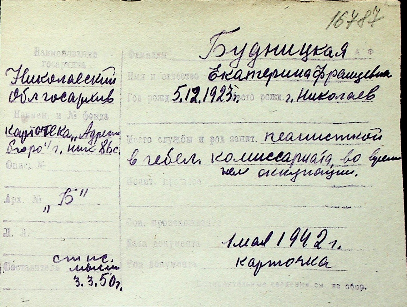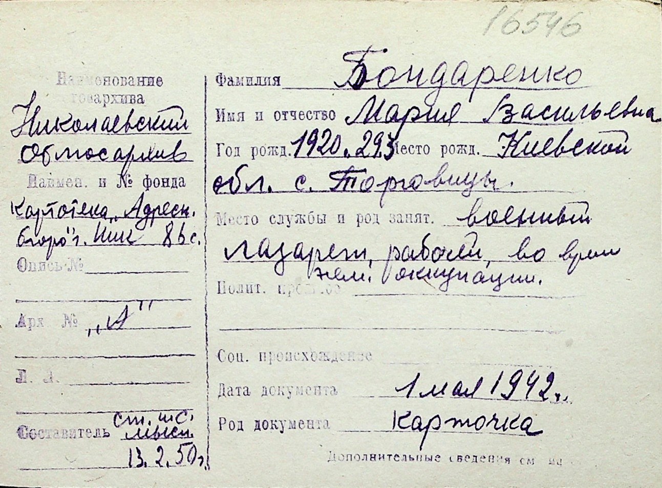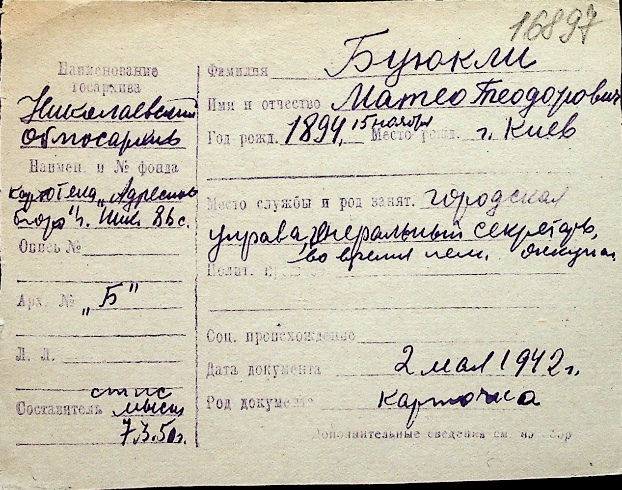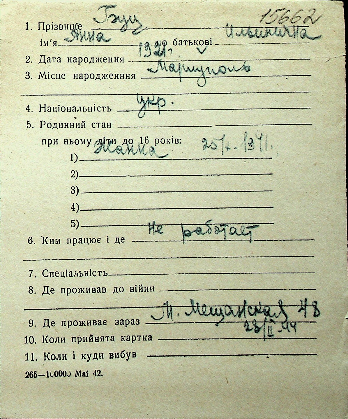 ◦ ◦ Перелік карток на осіб, які мешкали у м. Миколаїв у період окупації 1941–1944 років