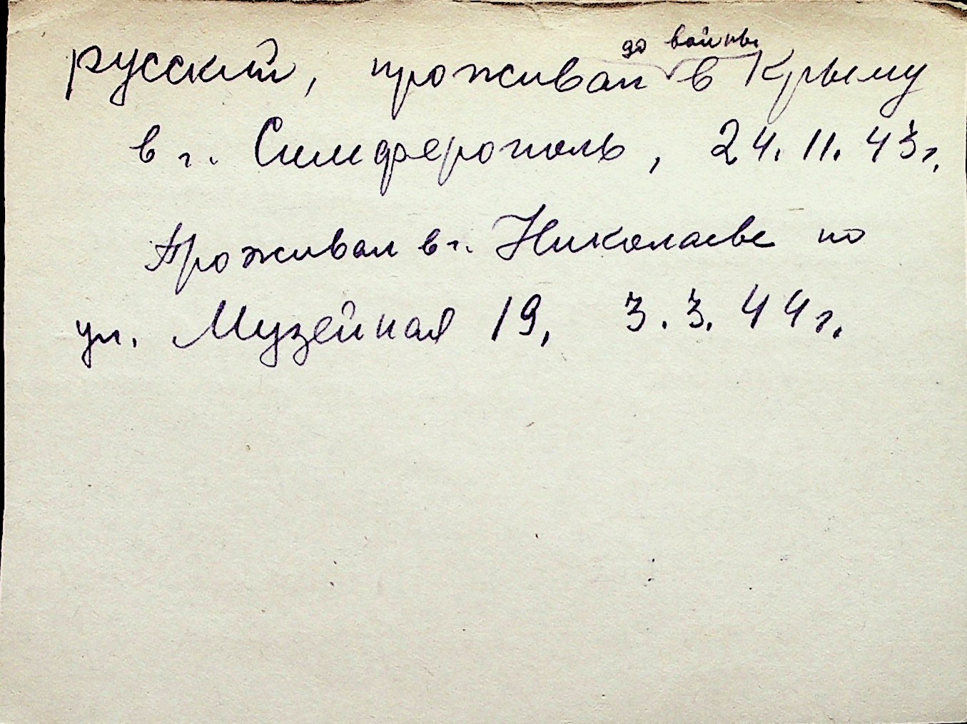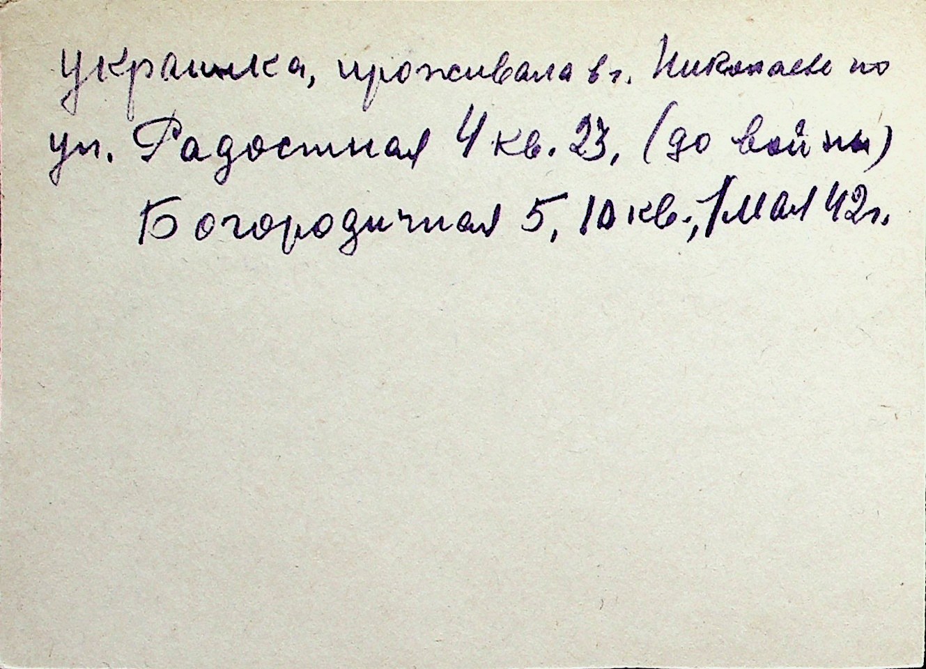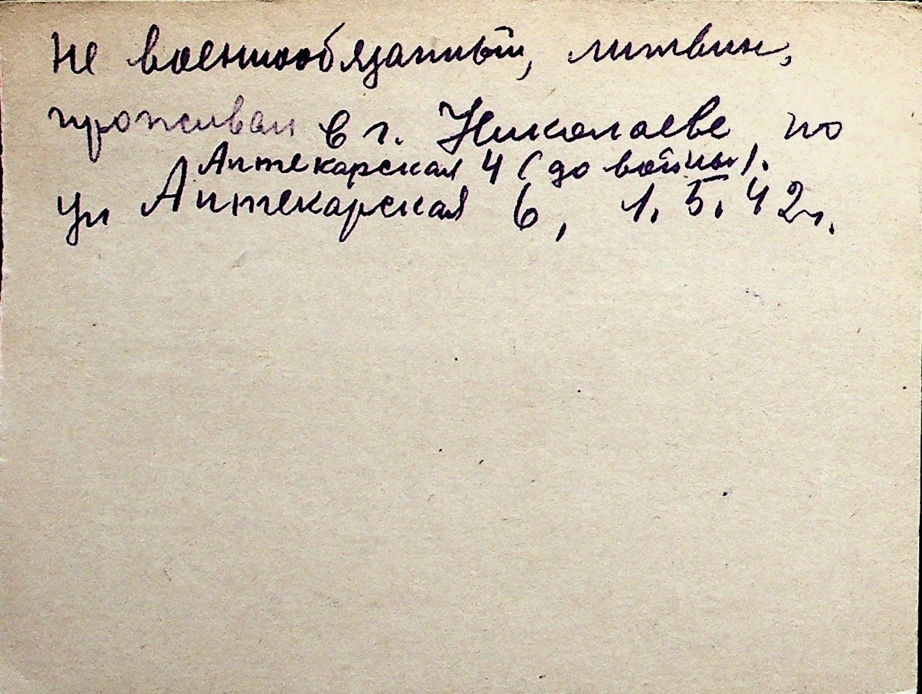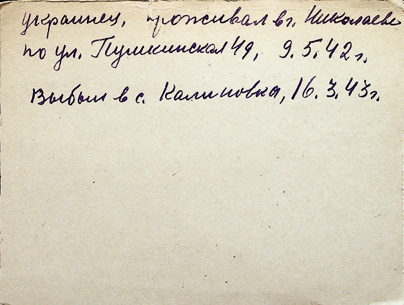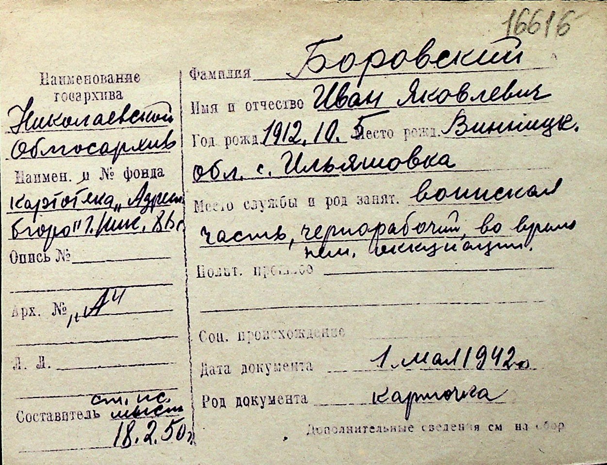 ◦ ◦ Перелік карток на осіб, які мешкали у м. Миколаїв у період окупації 1941–1944 років