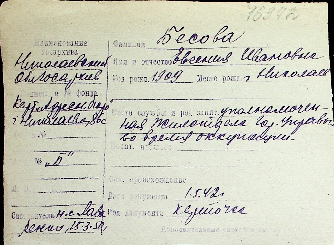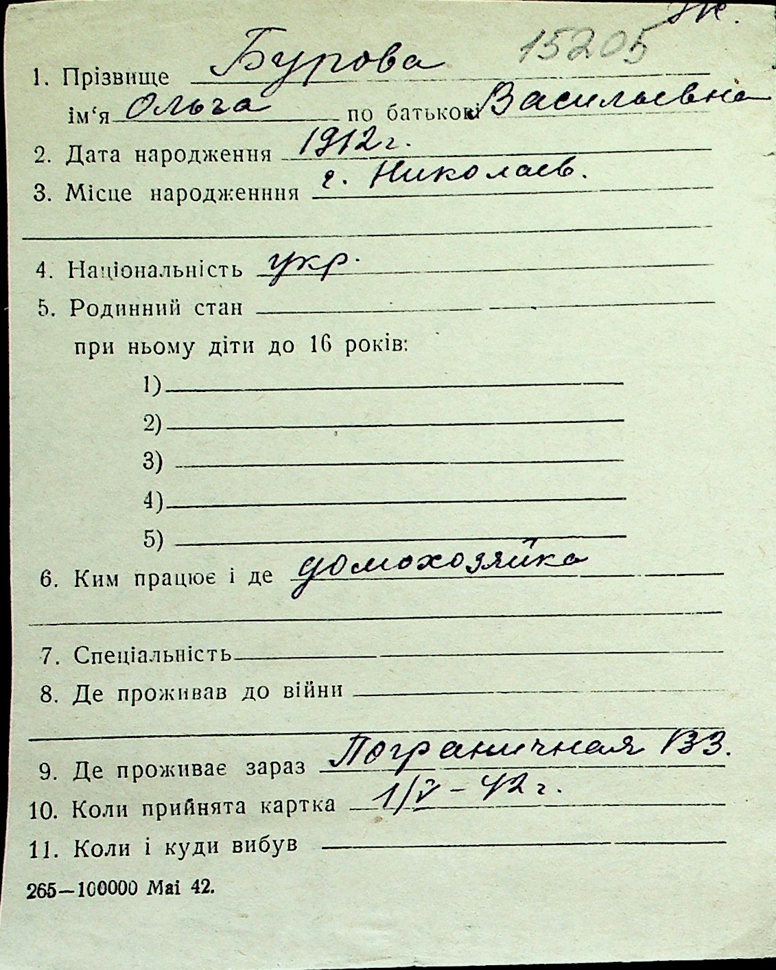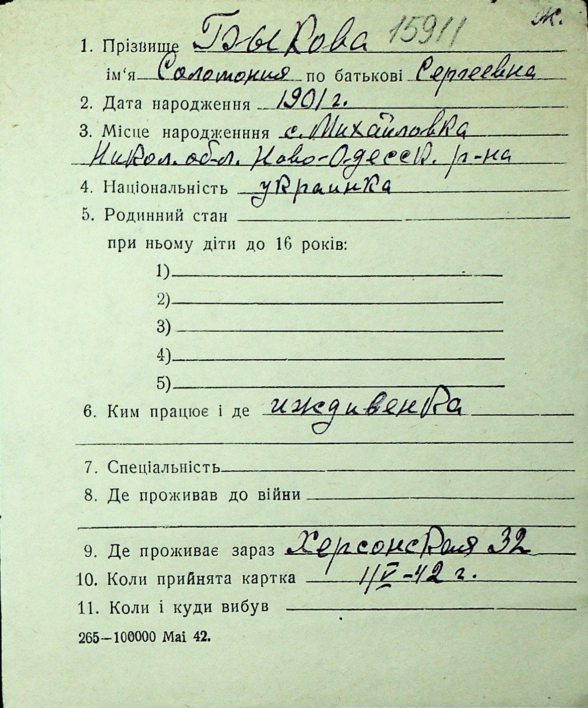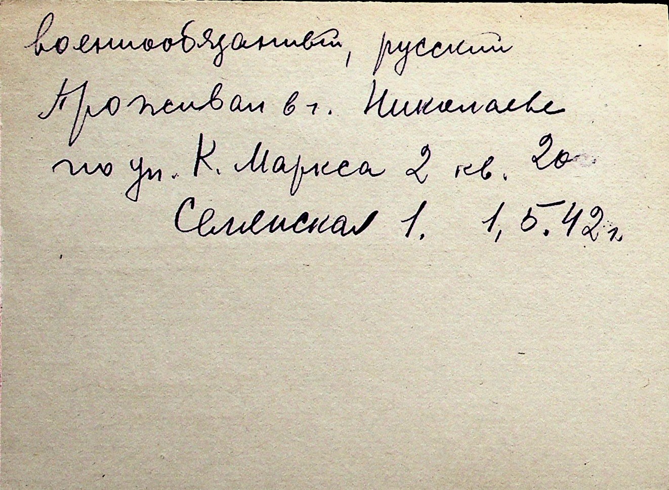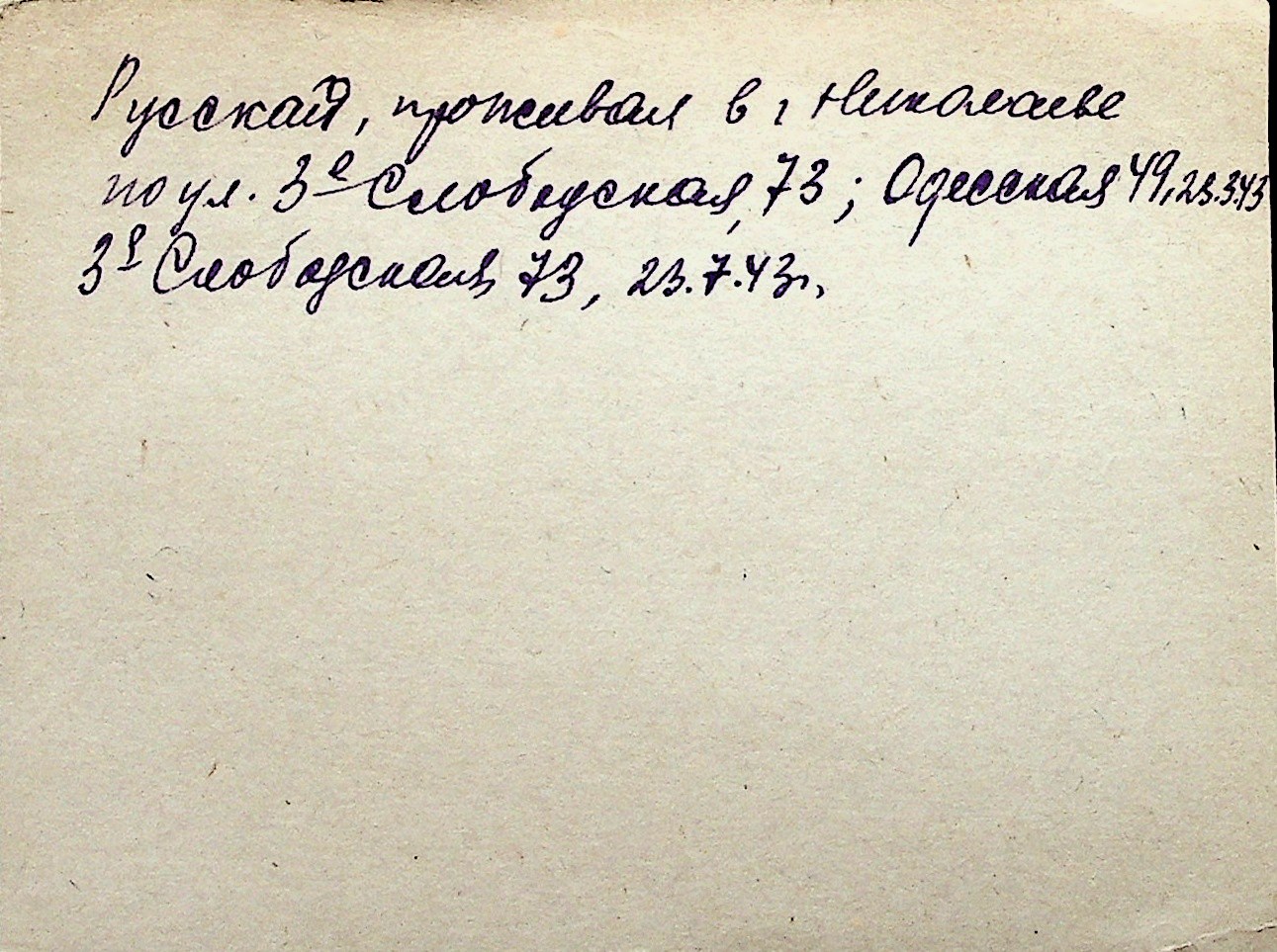 ◦ ◦ Перелік карток на осіб, які мешкали у м. Миколаїв у період окупації 1941–1944 років