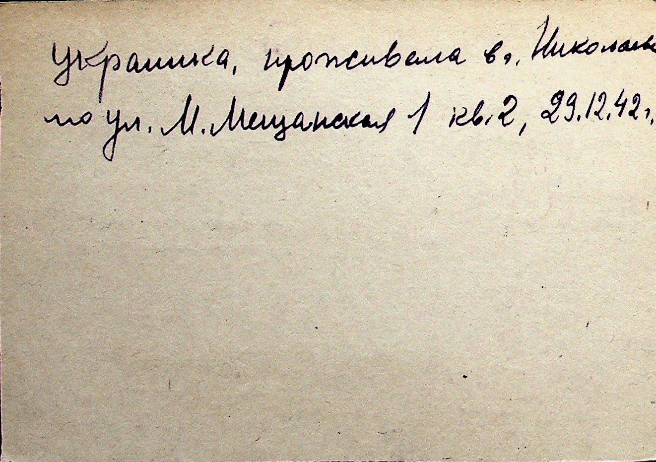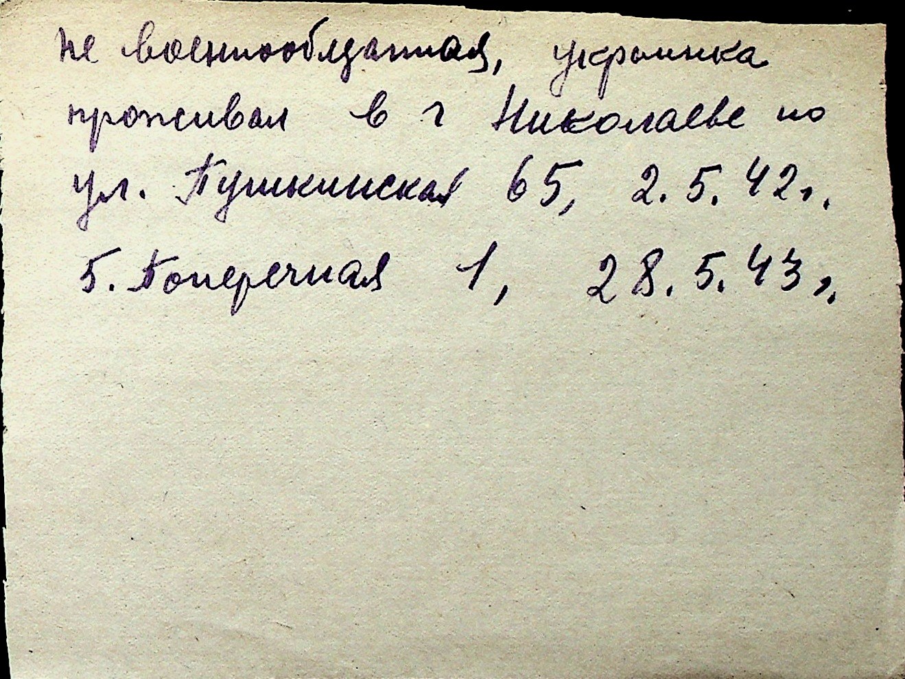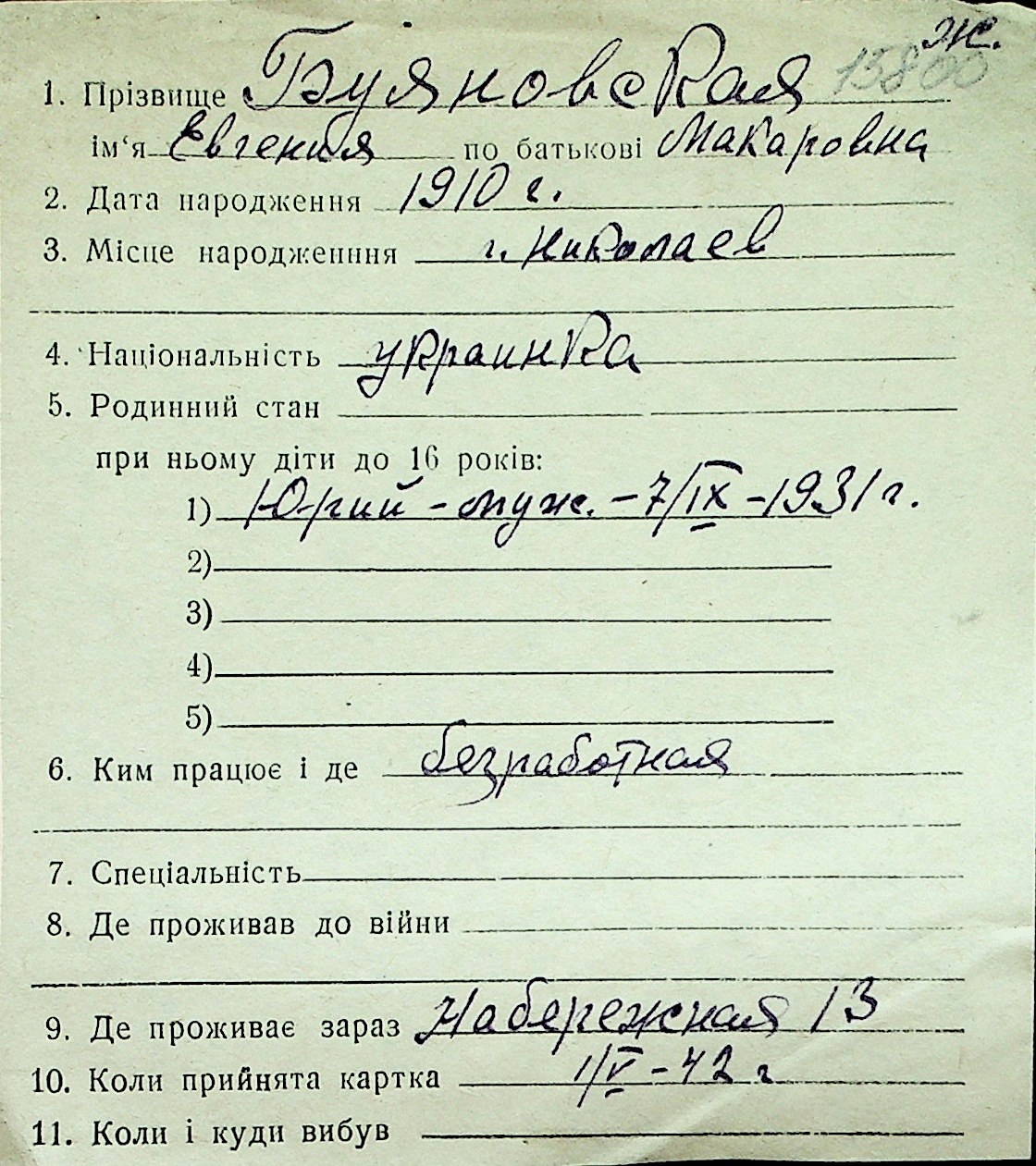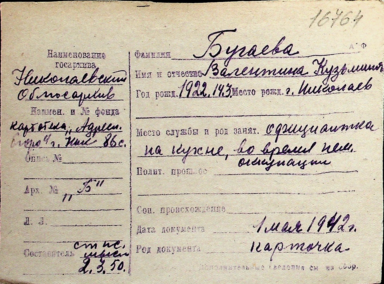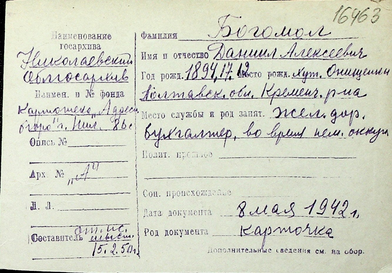 ◦ ◦ Перелік карток на осіб, які мешкали у м. Миколаїв у період окупації 1941–1944 років