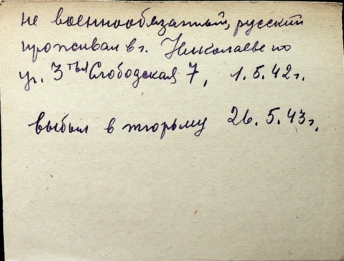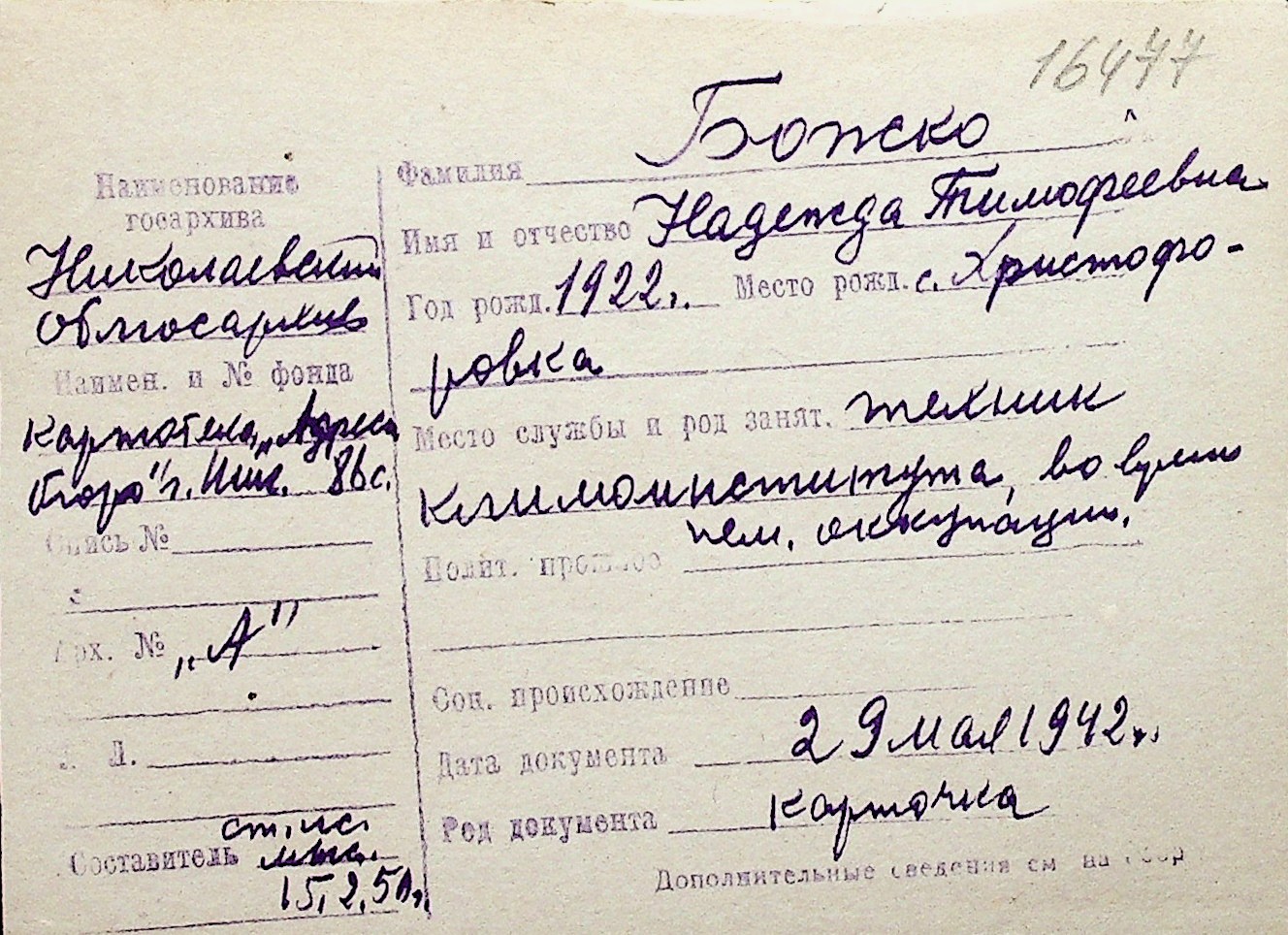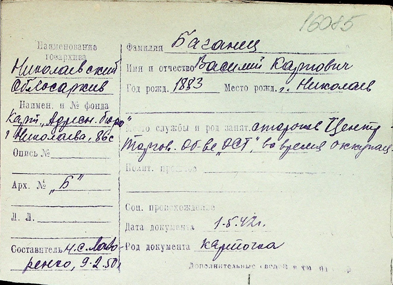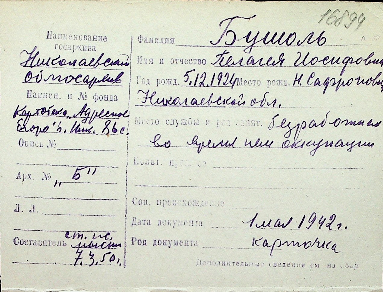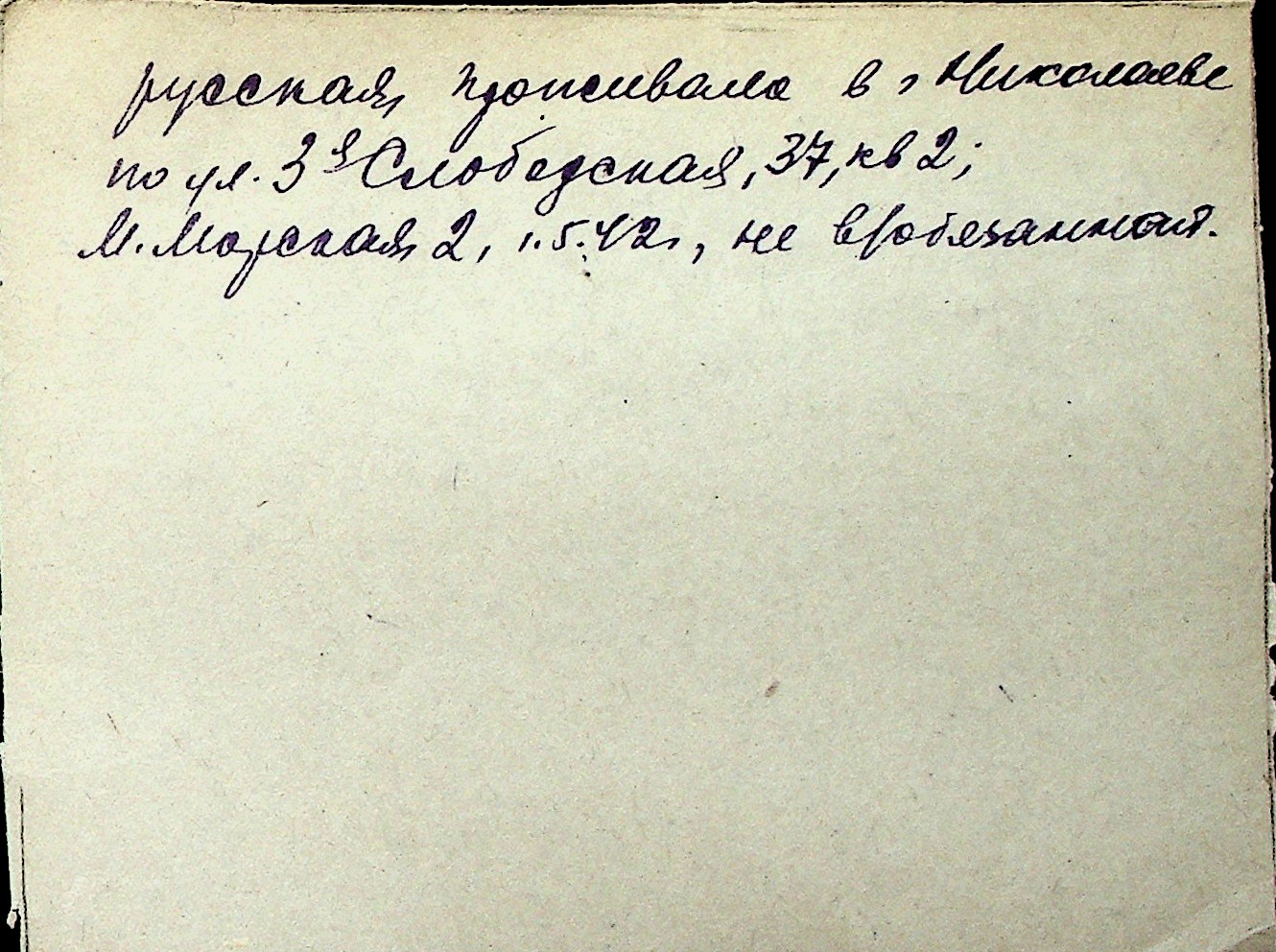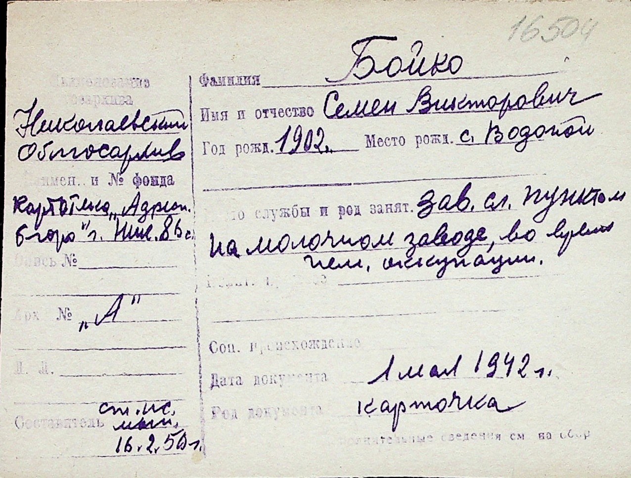◦ ◦ Перелік карток на осіб, які мешкали у м. Миколаїв у період окупації 1941–1944 років