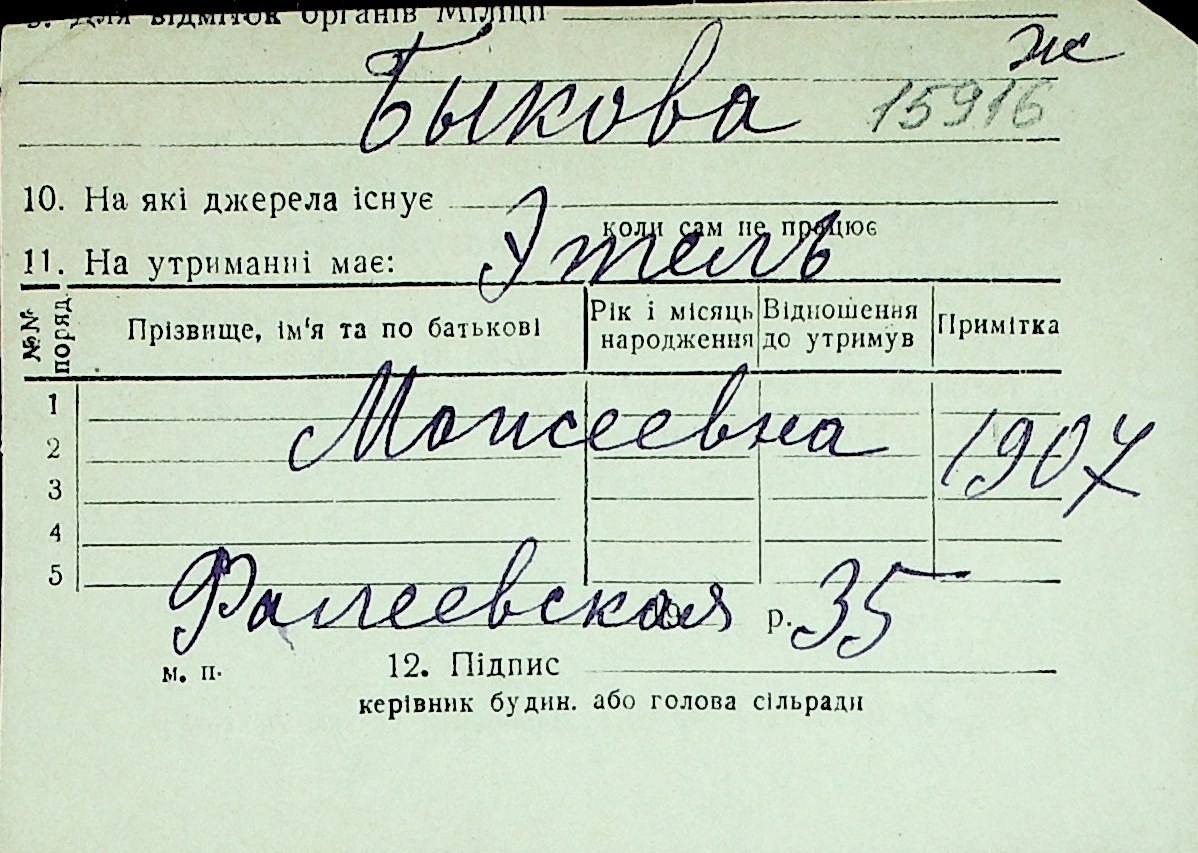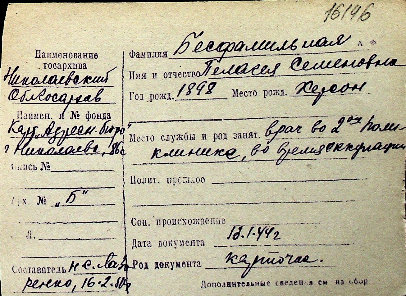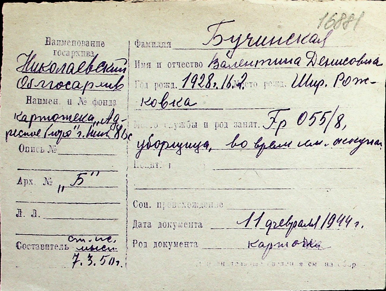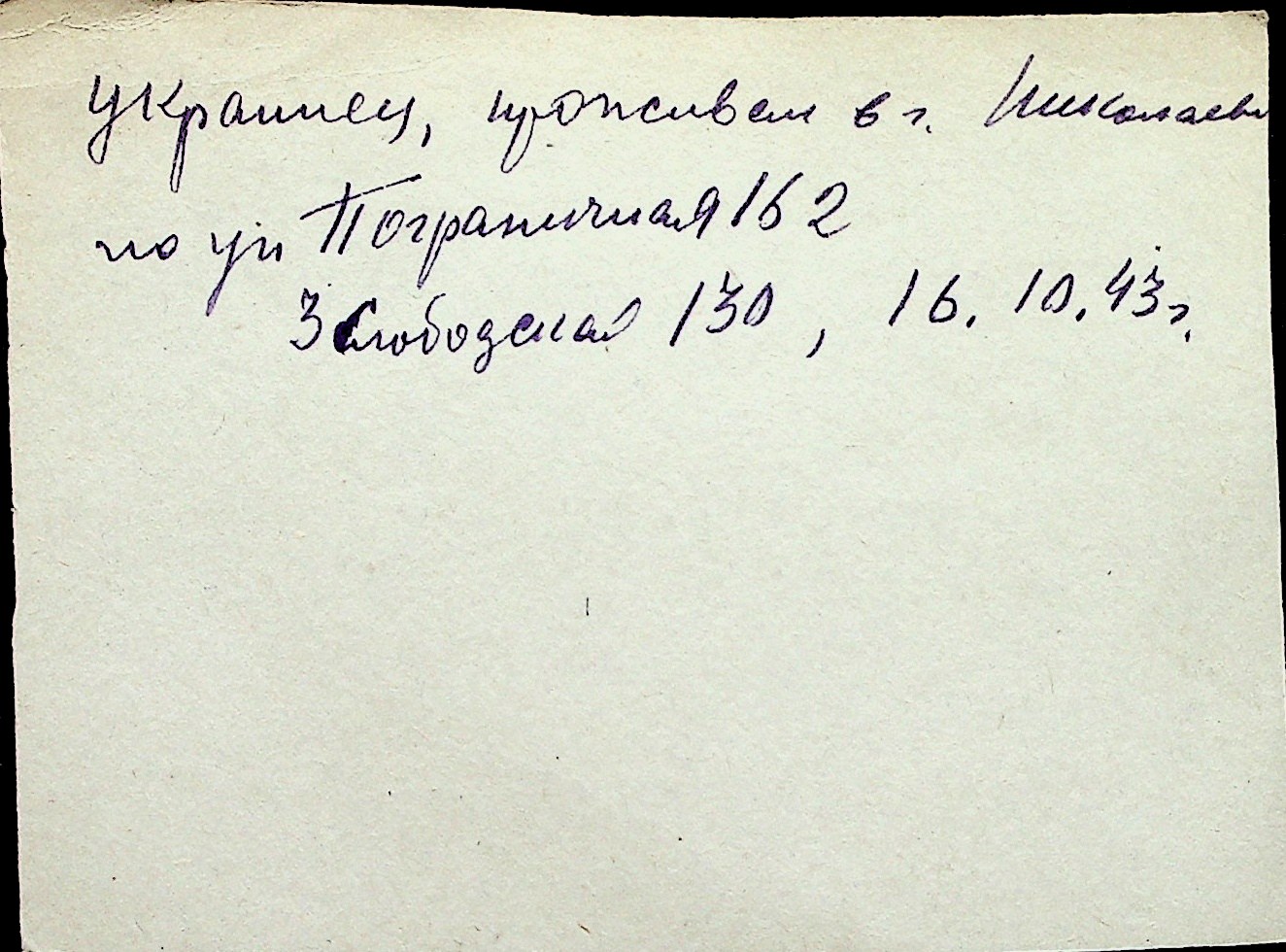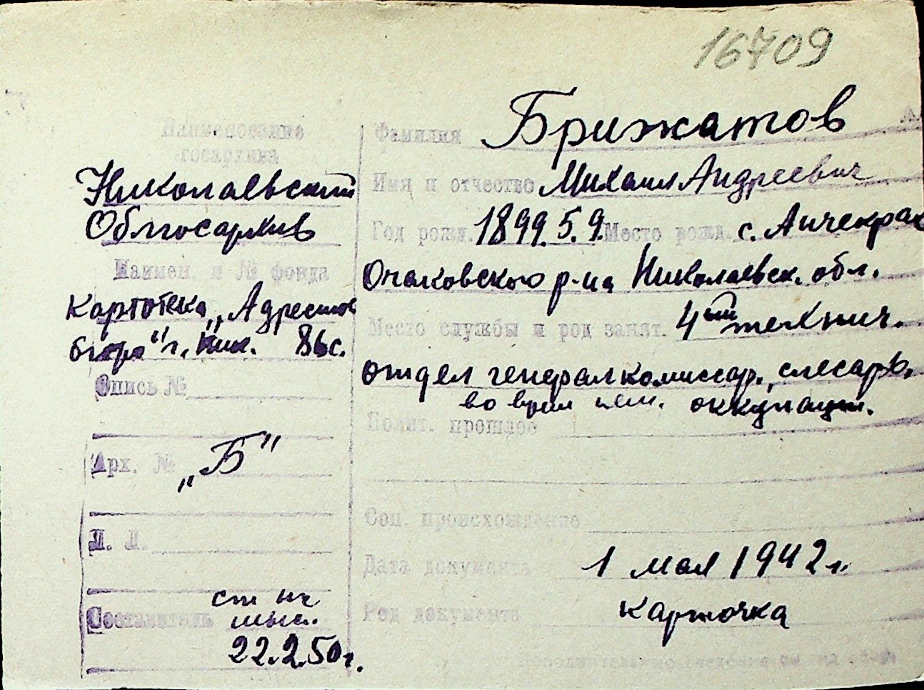 ◦ ◦ Перелік карток на осіб, які мешкали у м. Миколаїв у період окупації 1941–1944 років