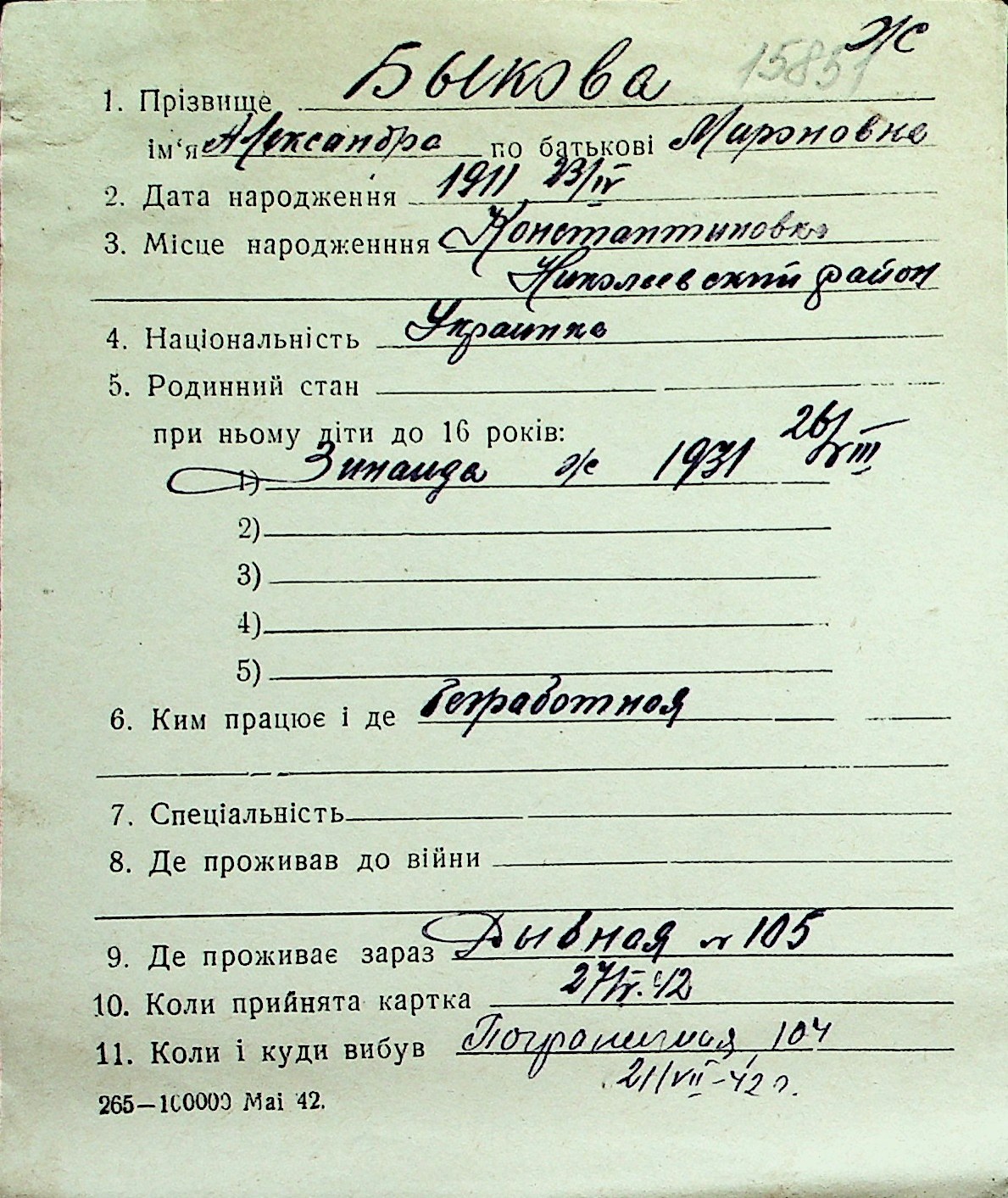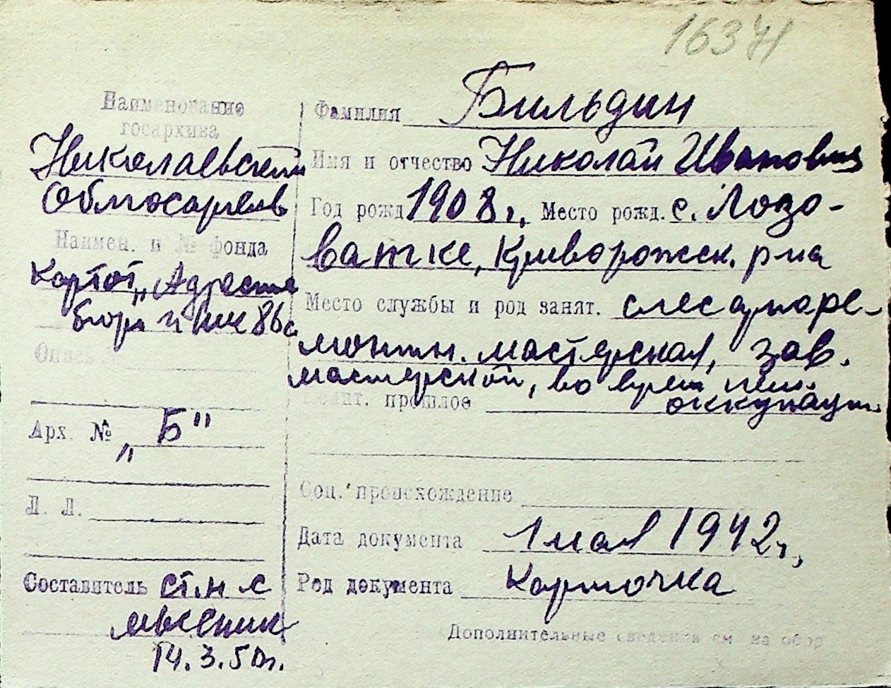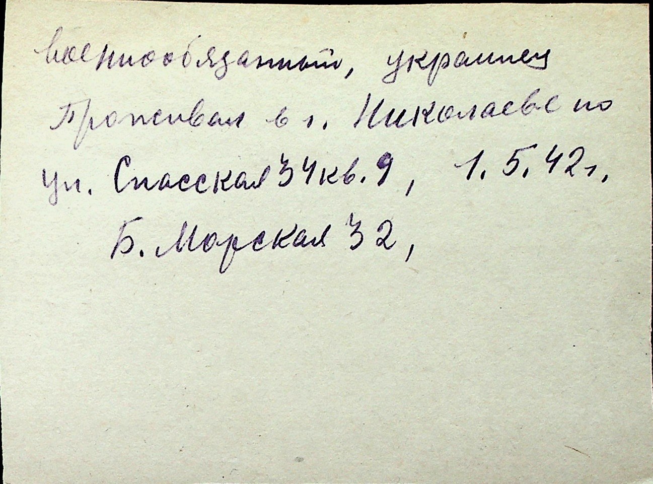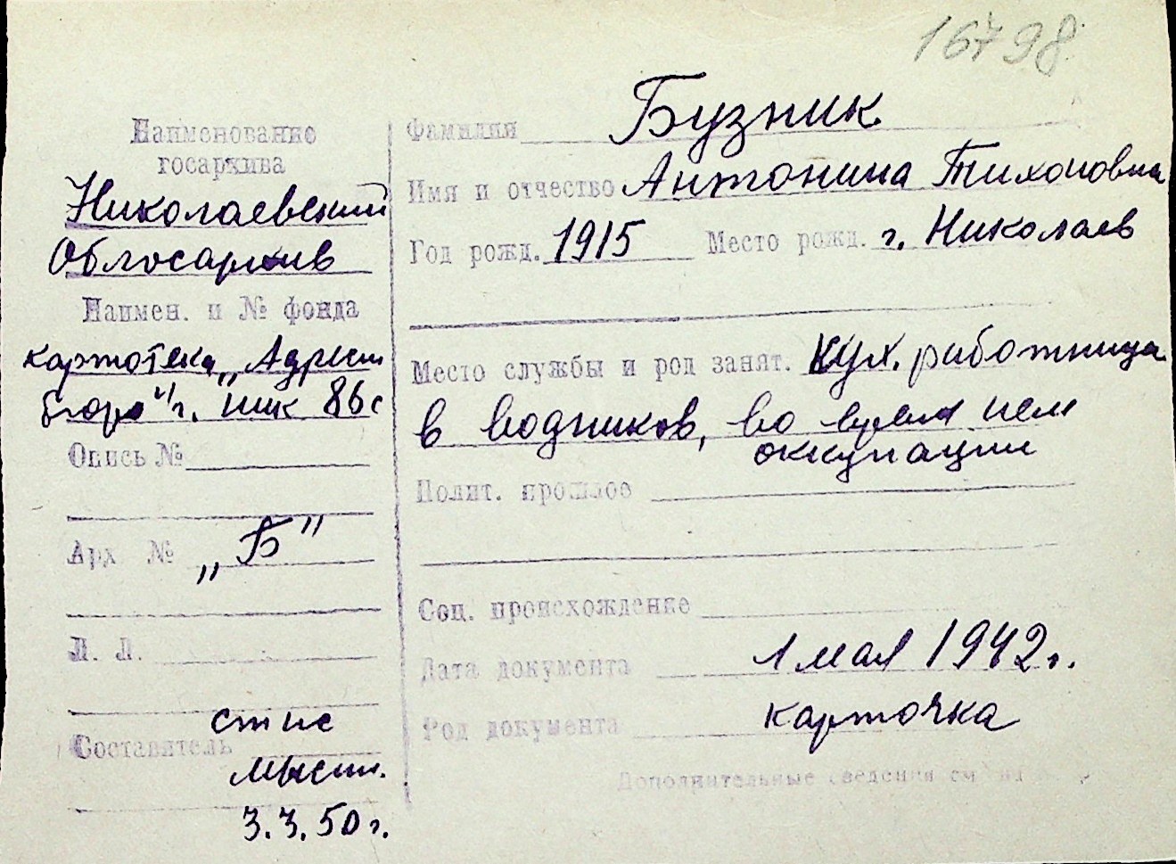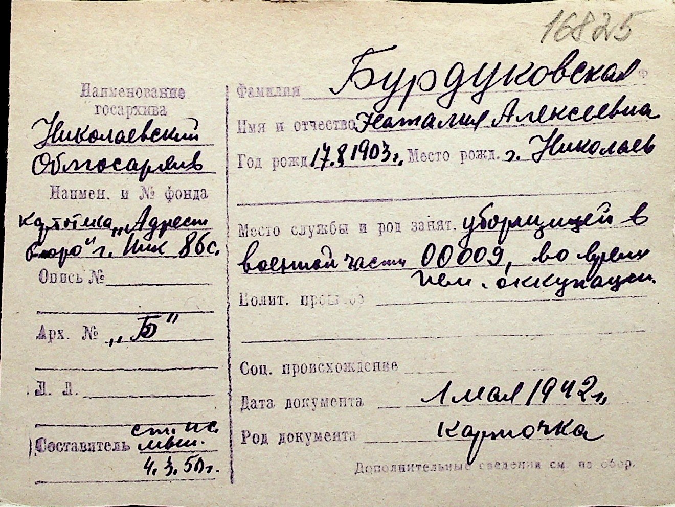 ◦ ◦ Перелік карток на осіб, які мешкали у м. Миколаїв у період окупації 1941–1944 років