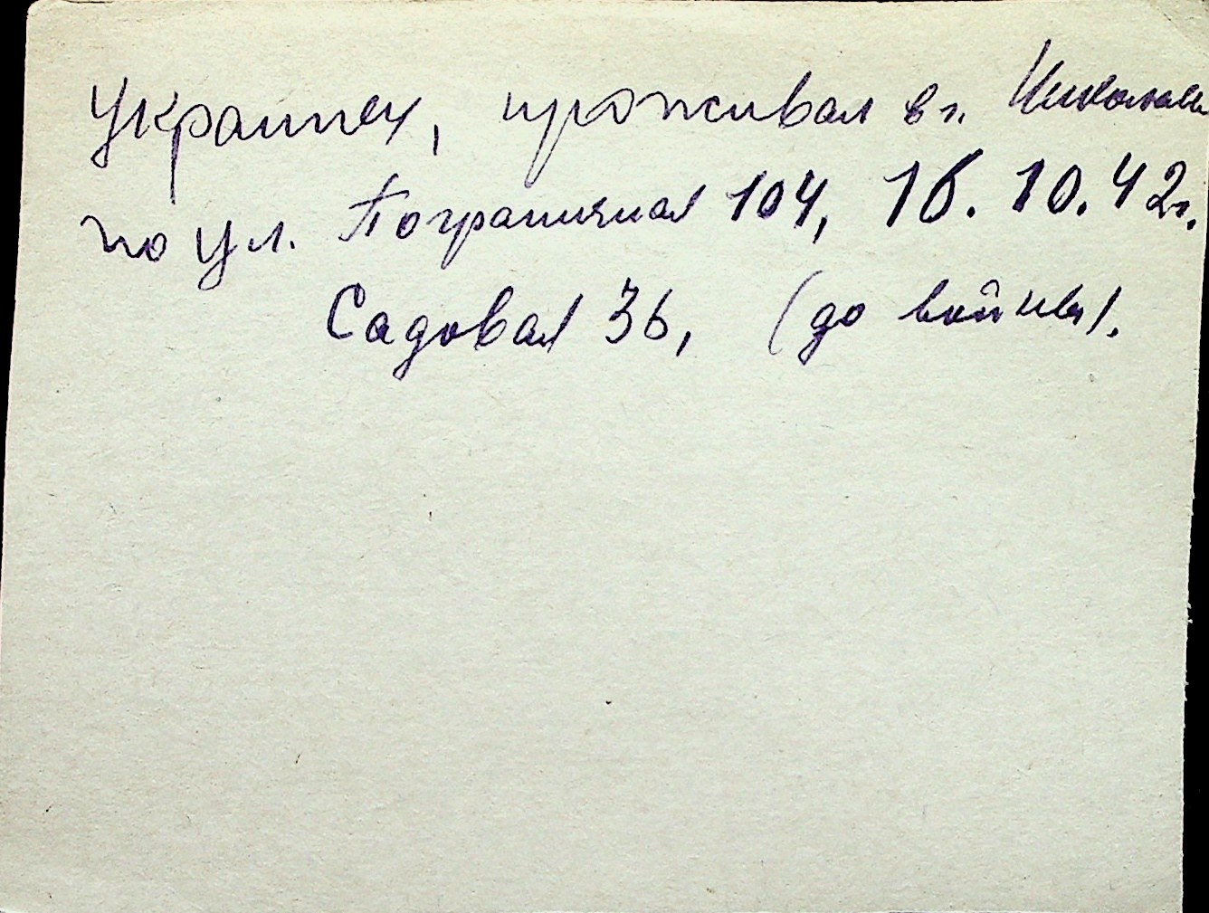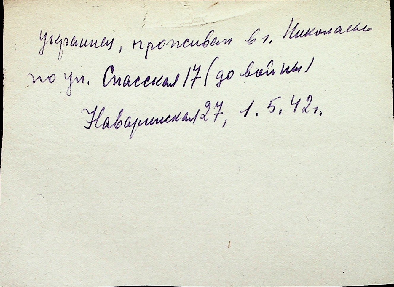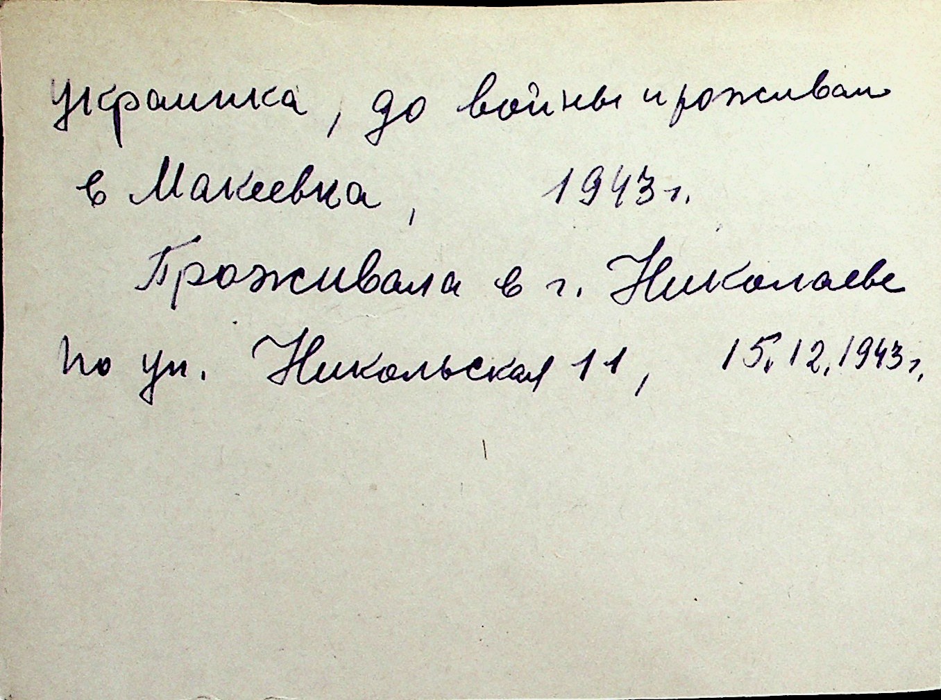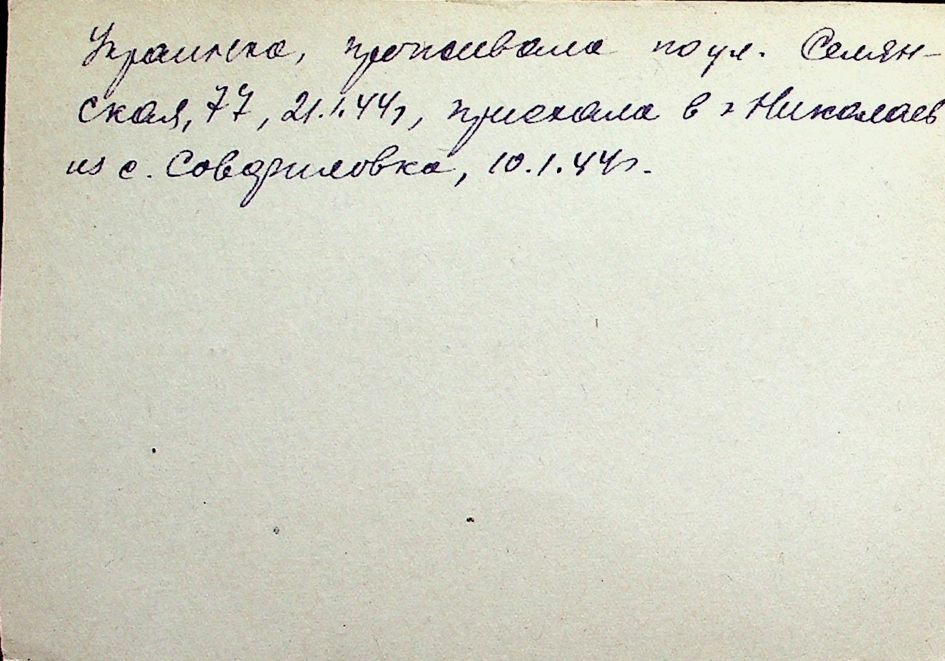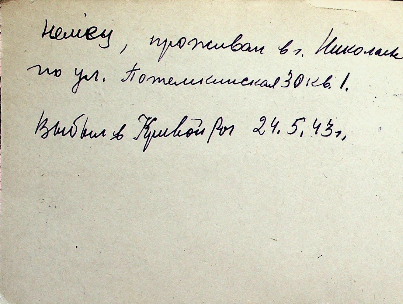 ◦ ◦ Перелік карток на осіб, які мешкали у м. Миколаїв у період окупації 1941–1944 років