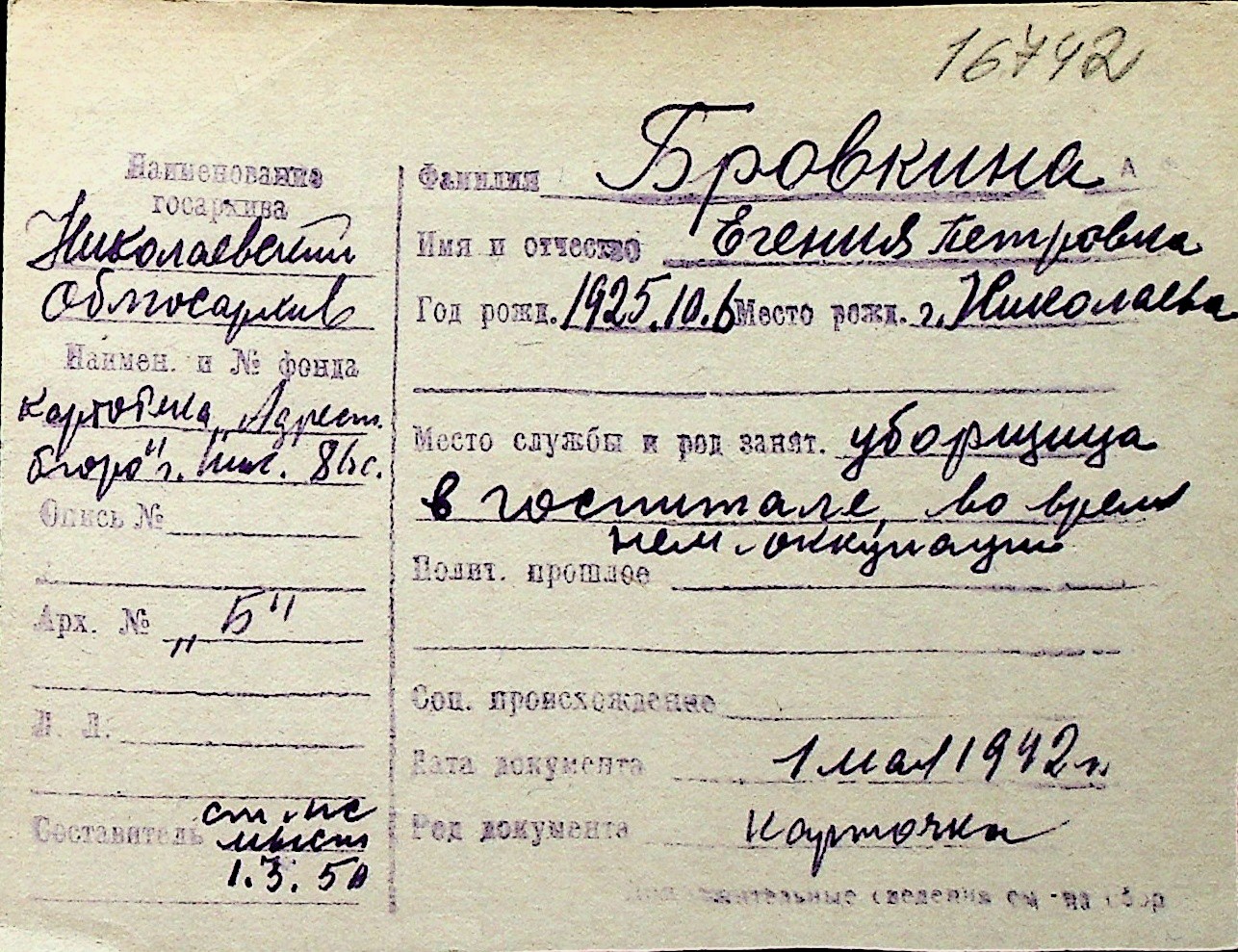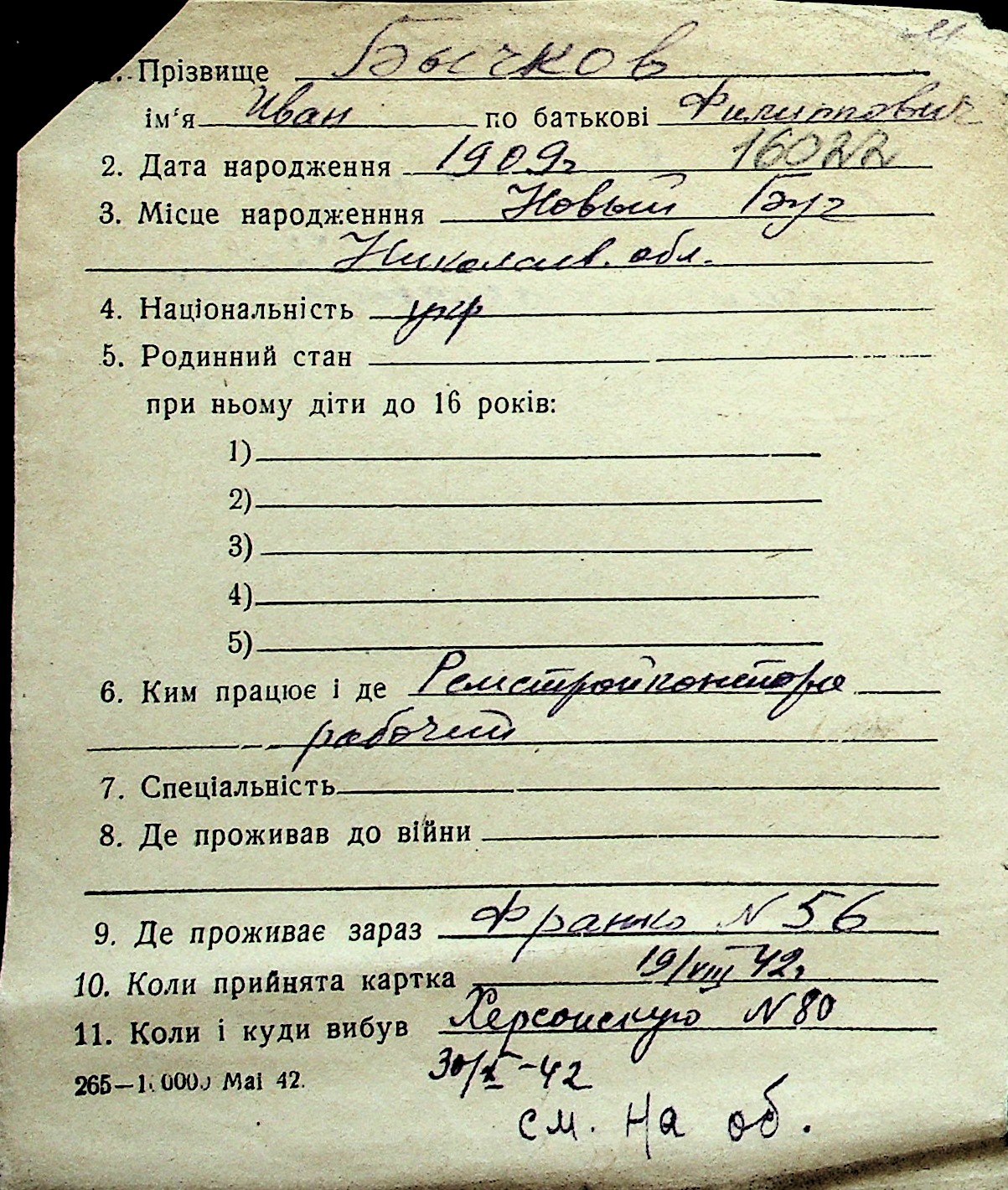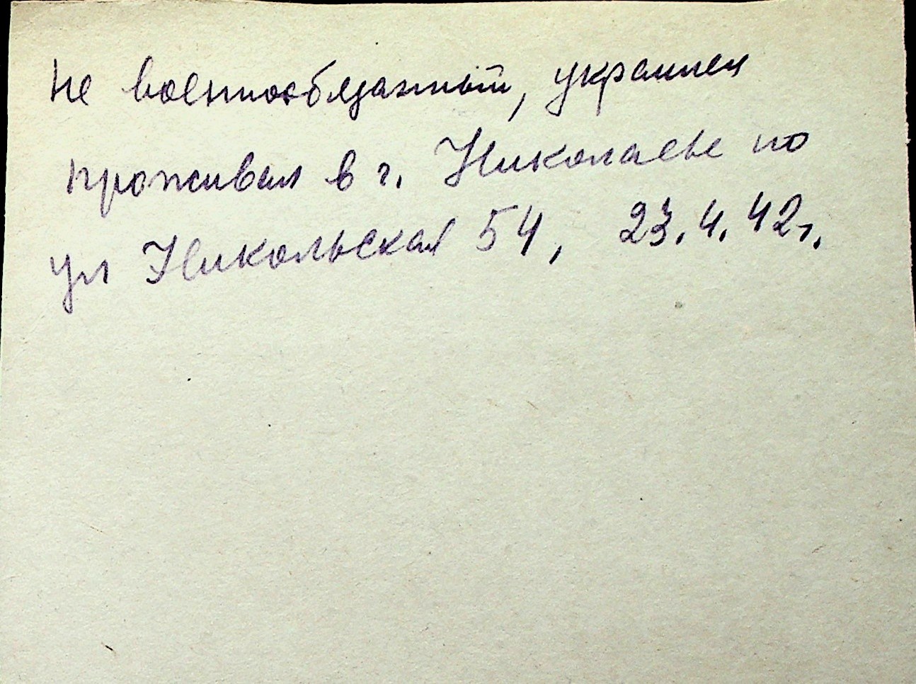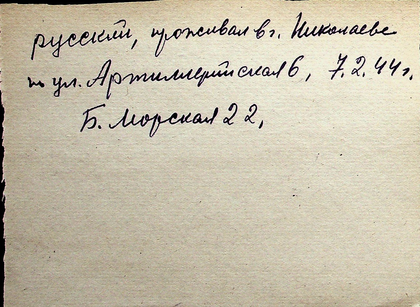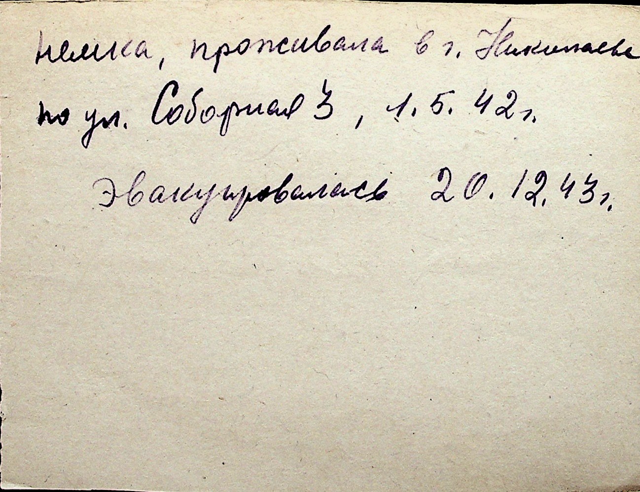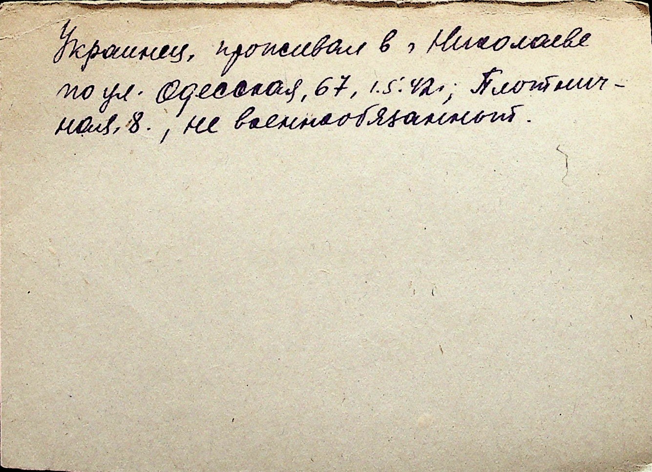 ◦ ◦ Перелік карток на осіб, які мешкали у м. Миколаїв у період окупації 1941–1944 років