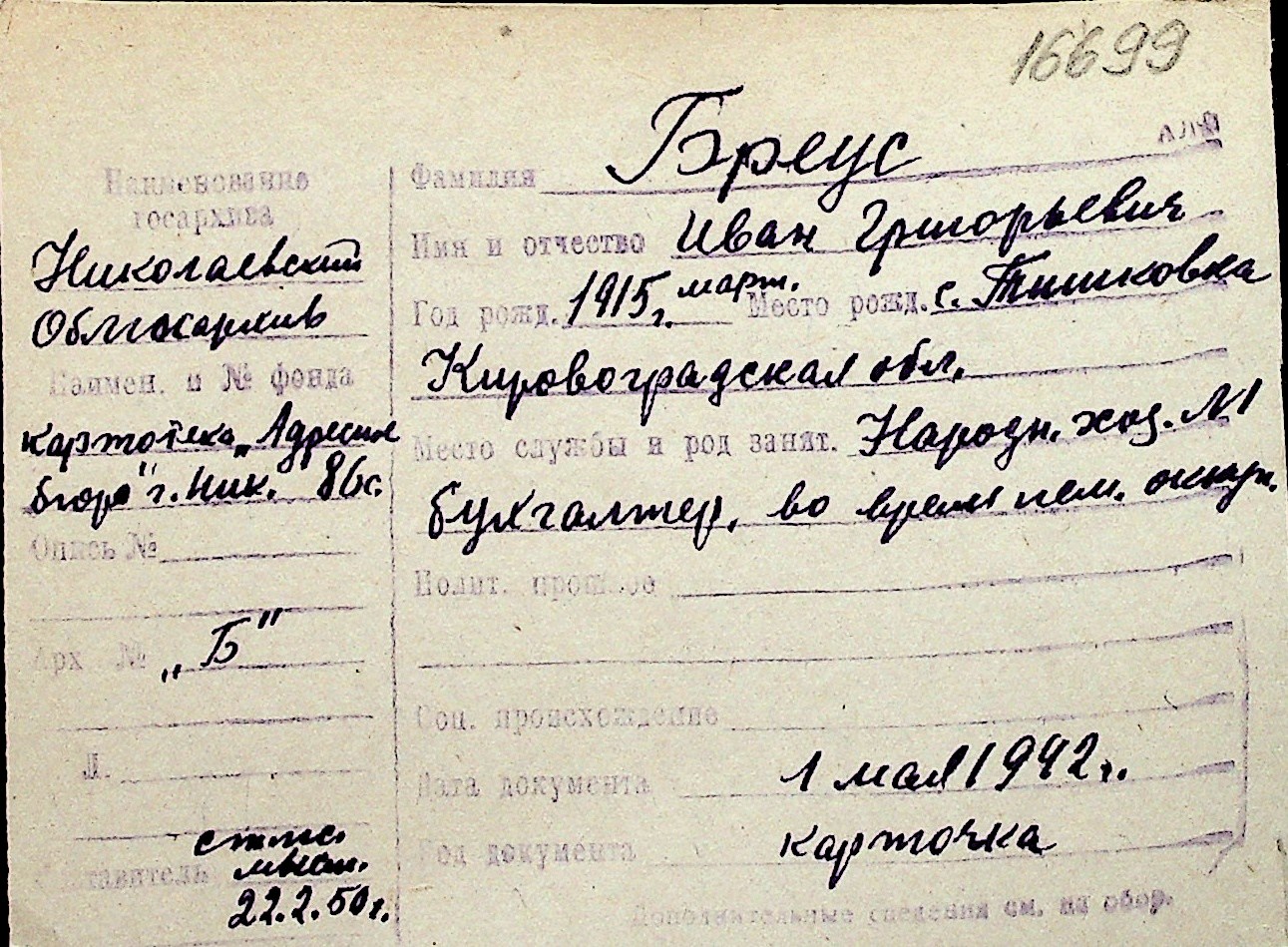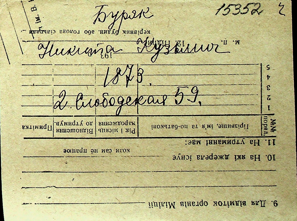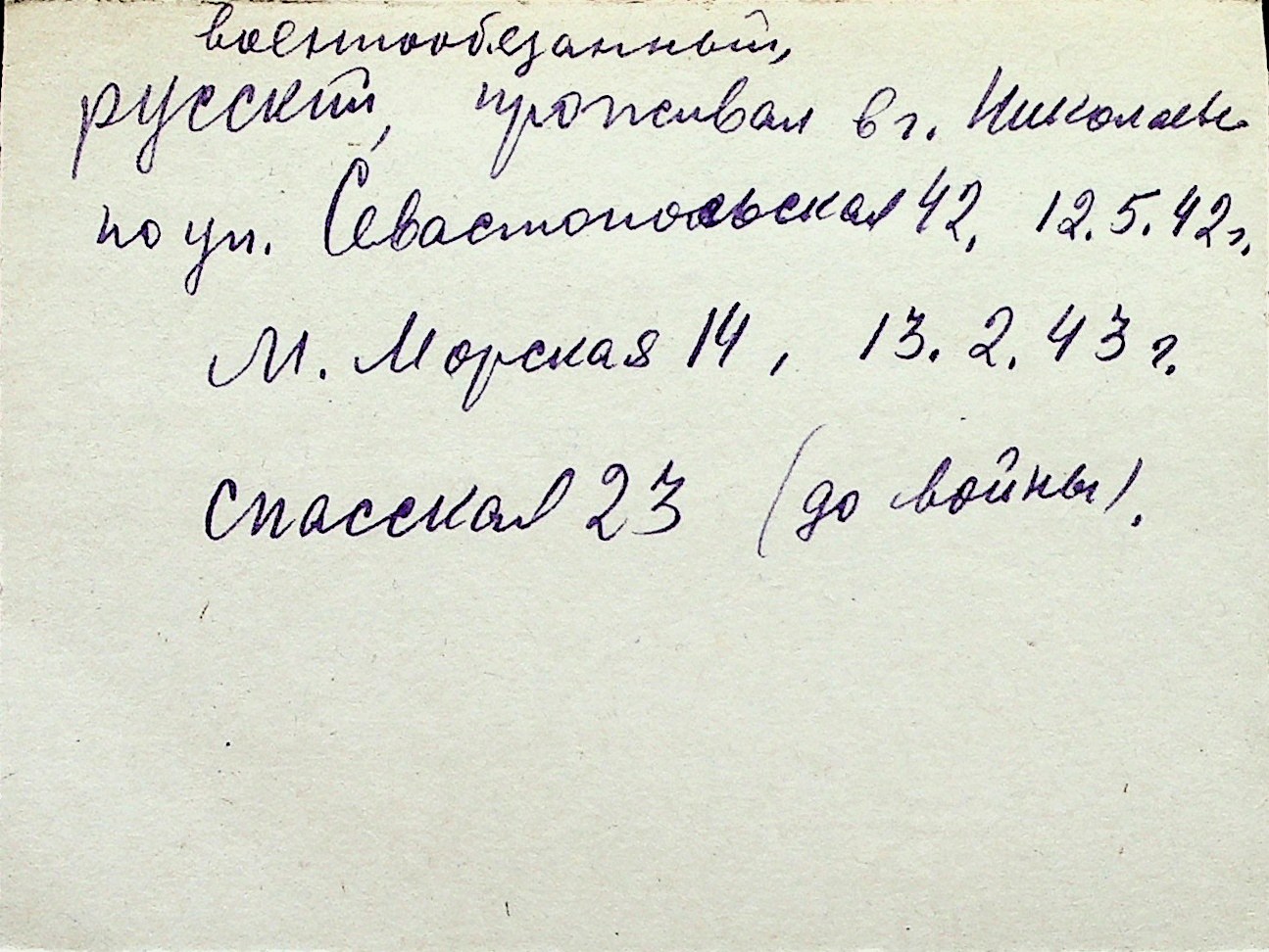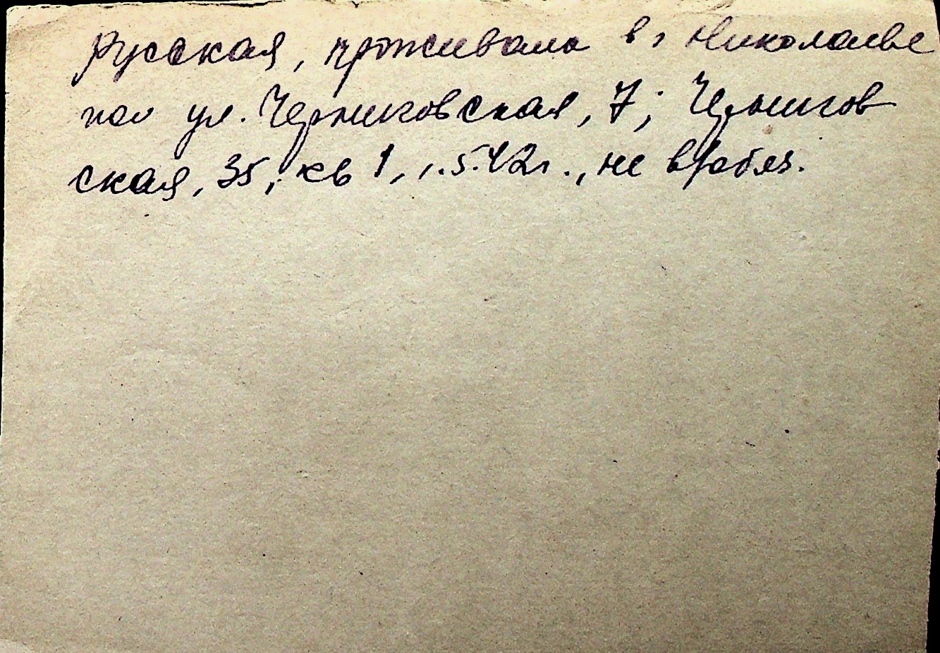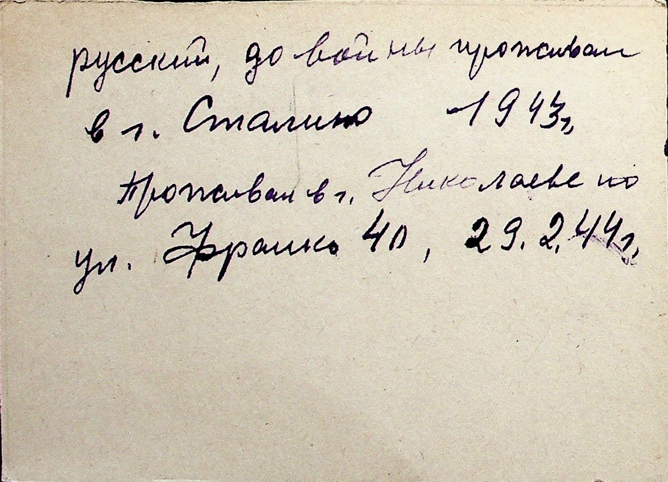 ◦ ◦ Перелік карток на осіб, які мешкали у м. Миколаїв у період окупації 1941–1944 років