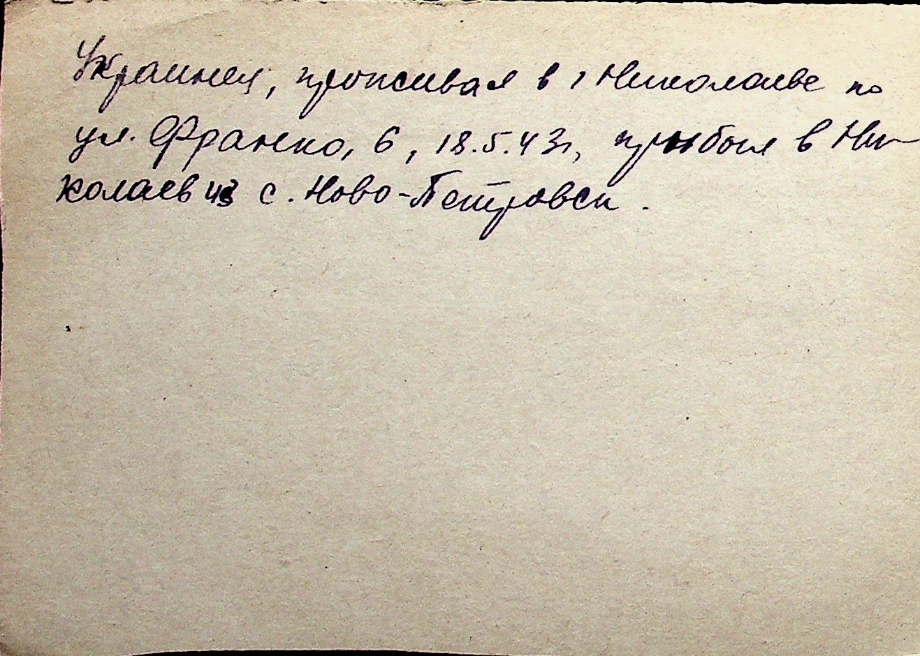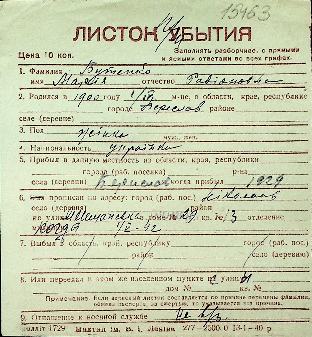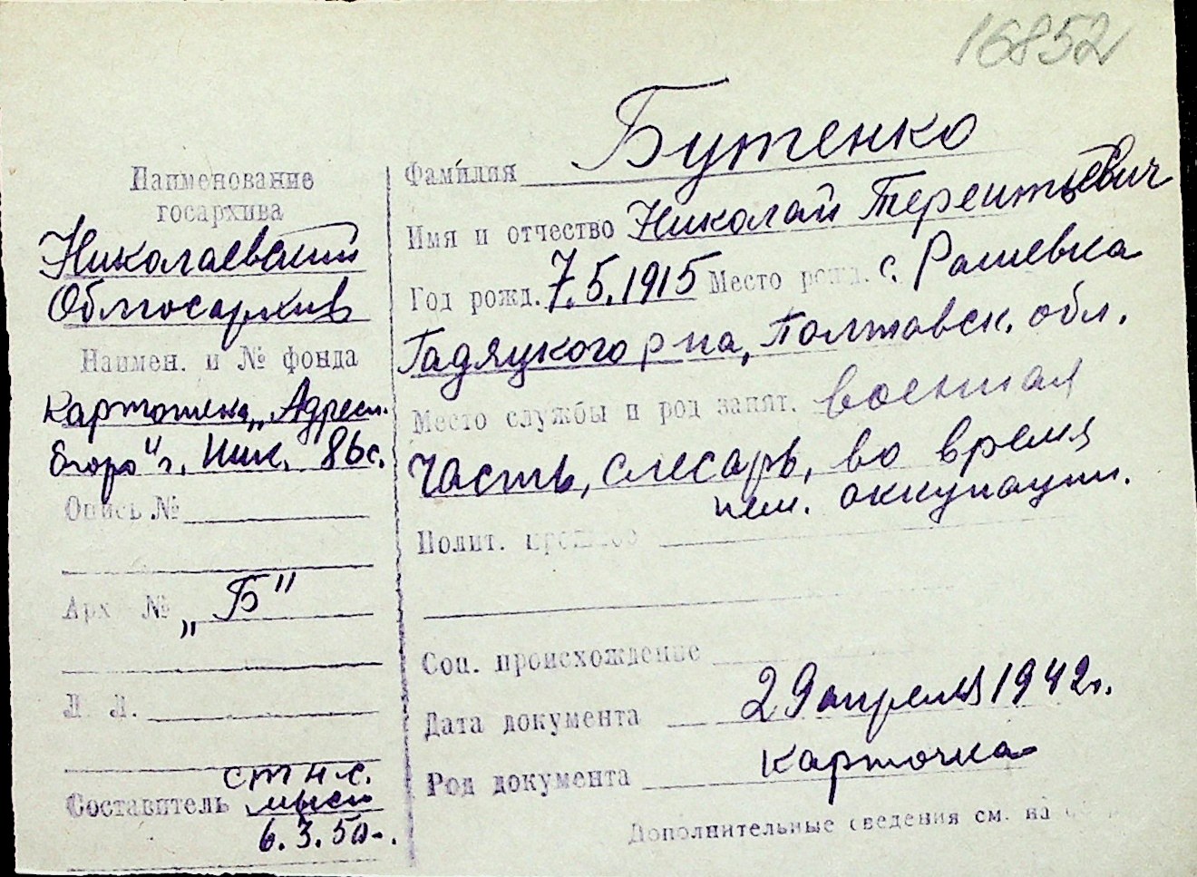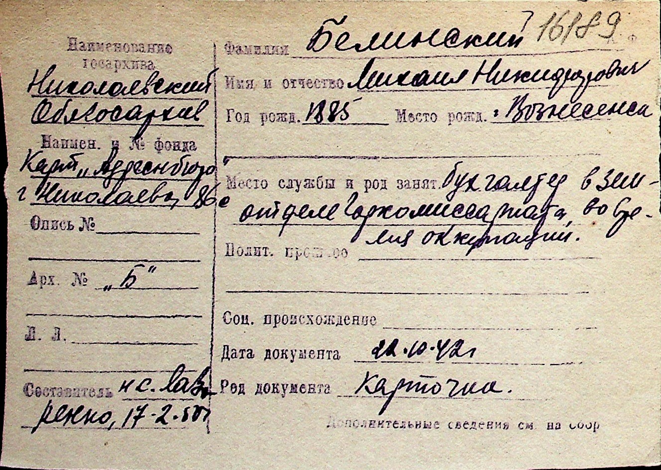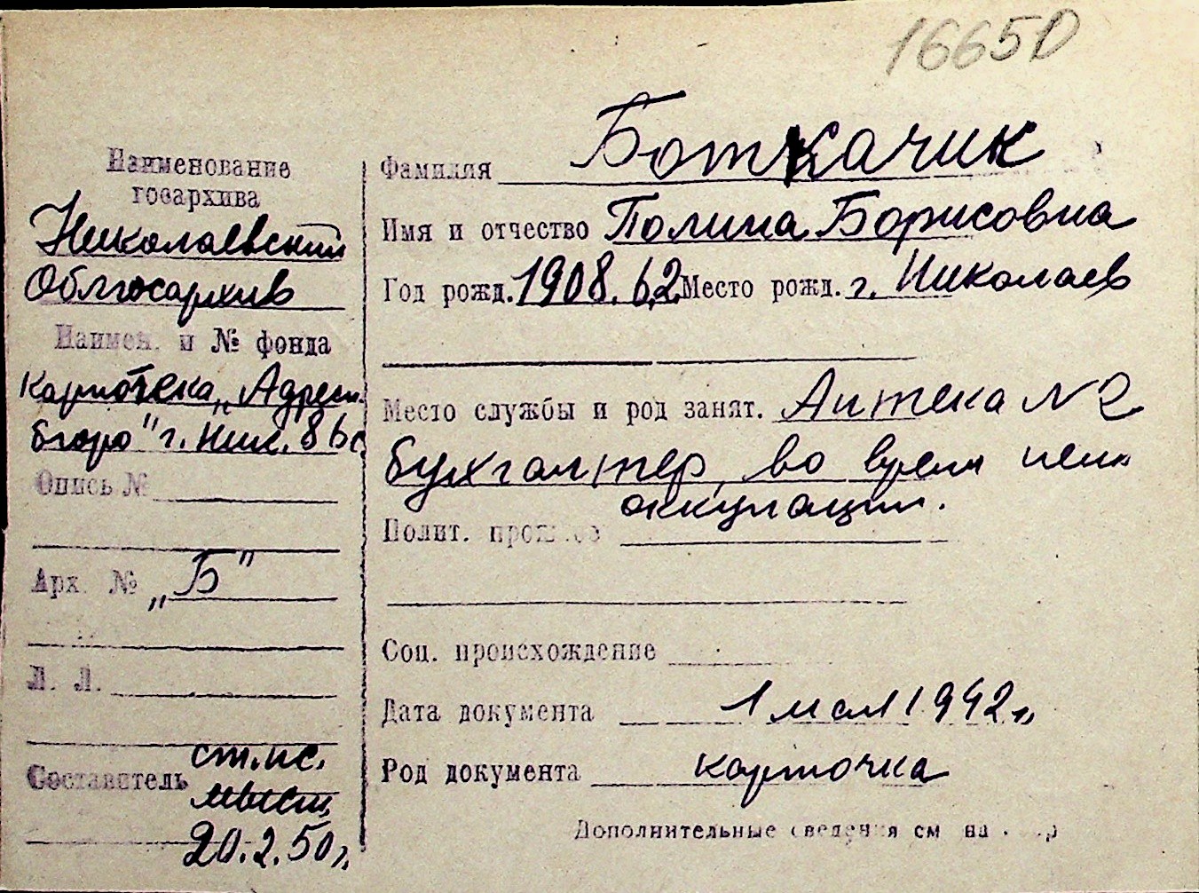 ◦ ◦ Перелік карток на осіб, які мешкали у м. Миколаїв у період окупації 1941–1944 років