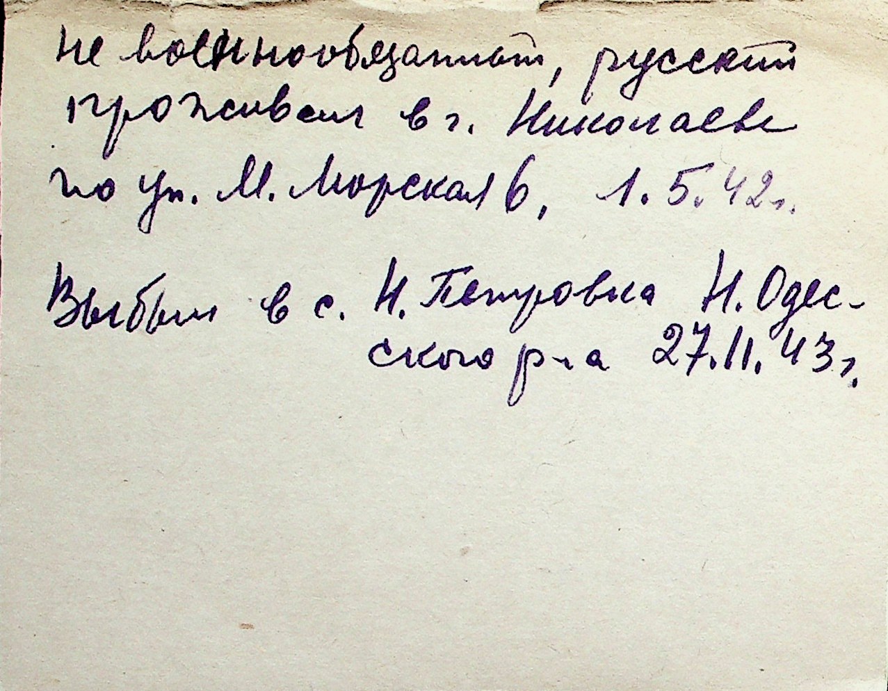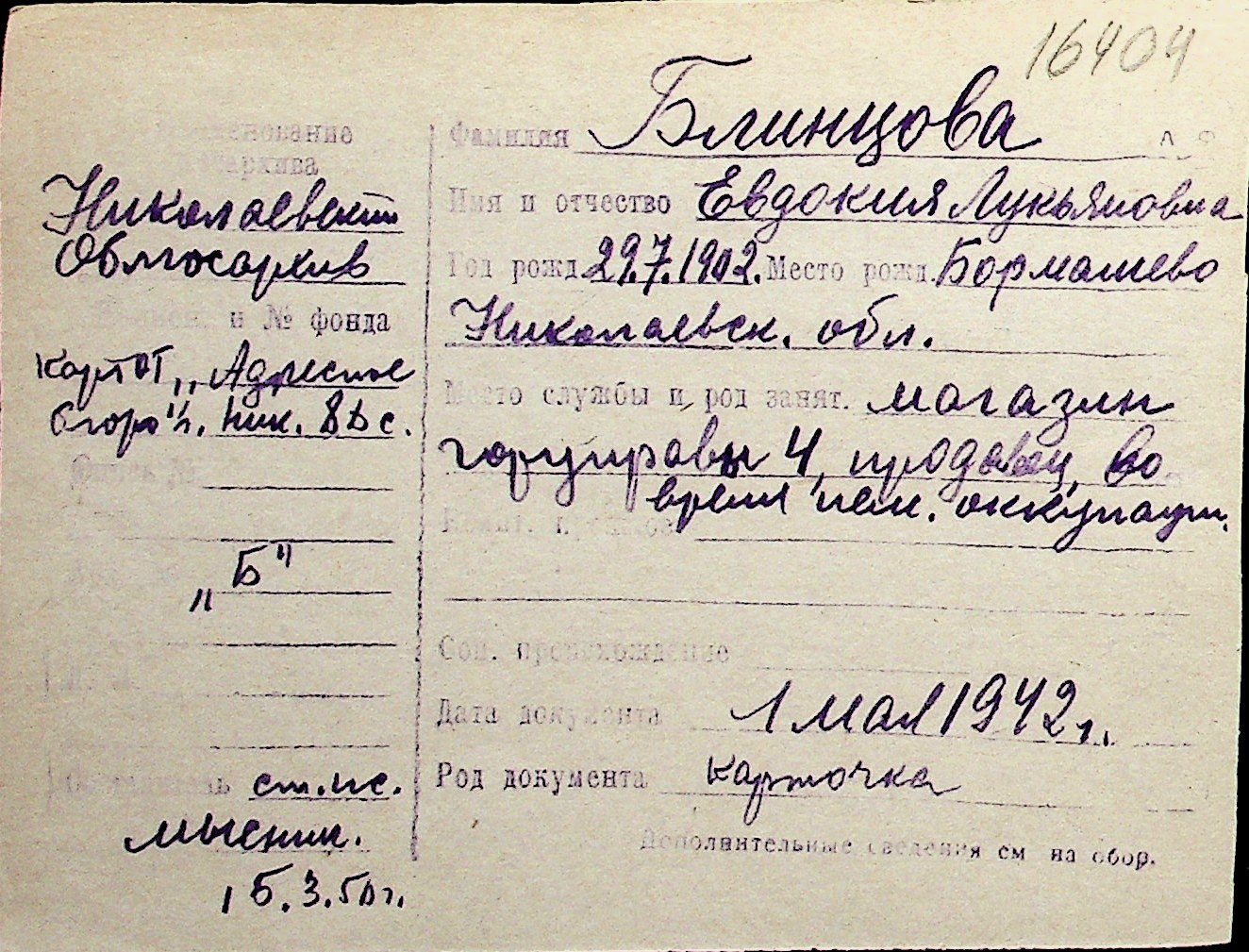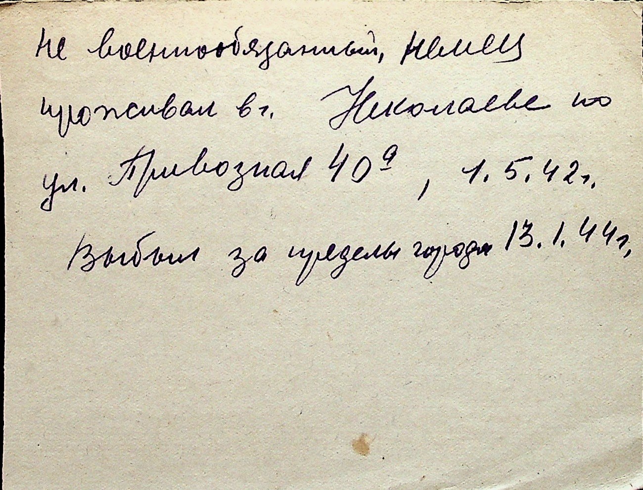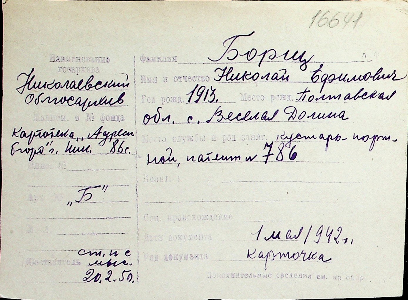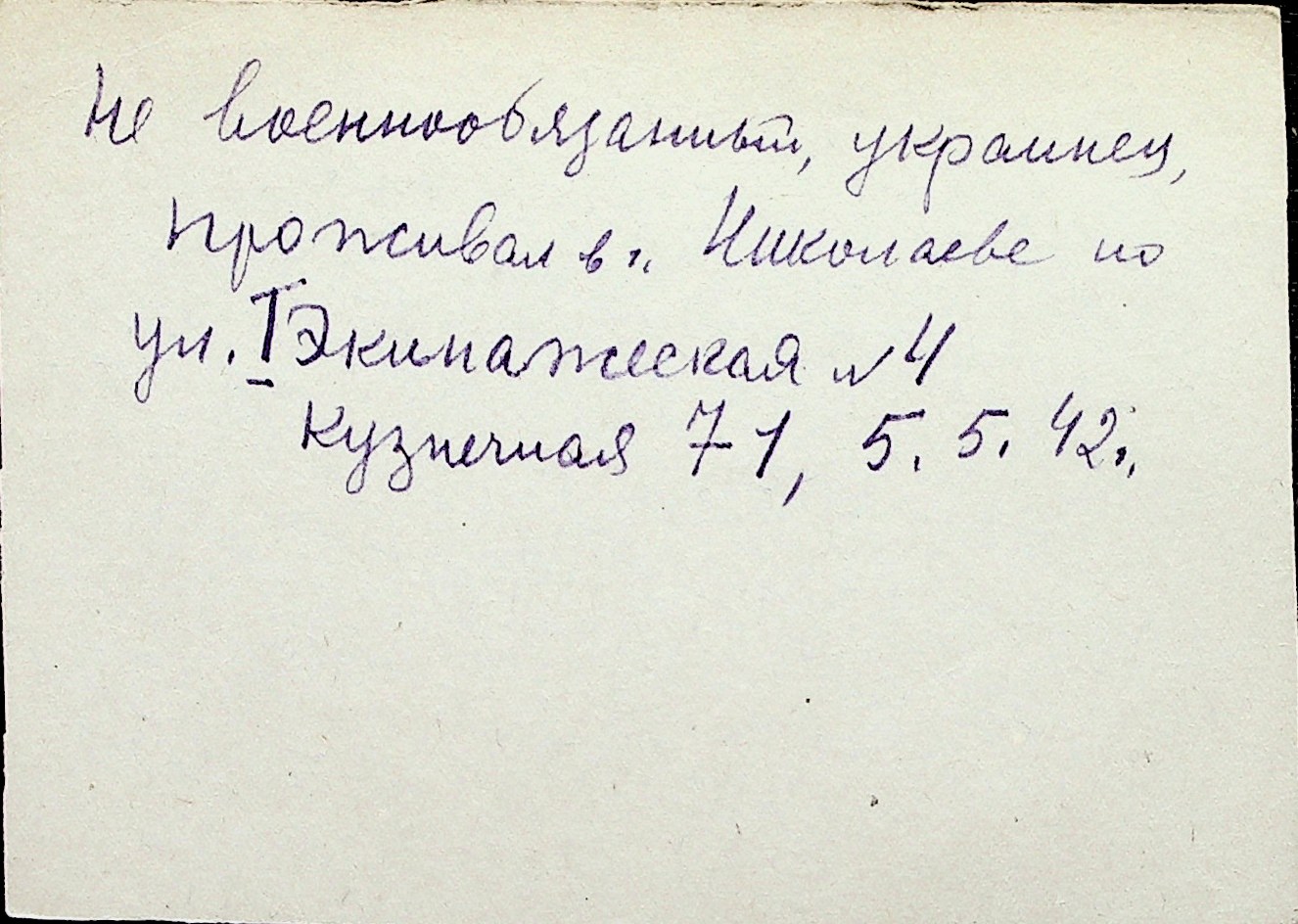 ◦ ◦ Перелік карток на осіб, які мешкали у м. Миколаїв у період окупації 1941–1944 років