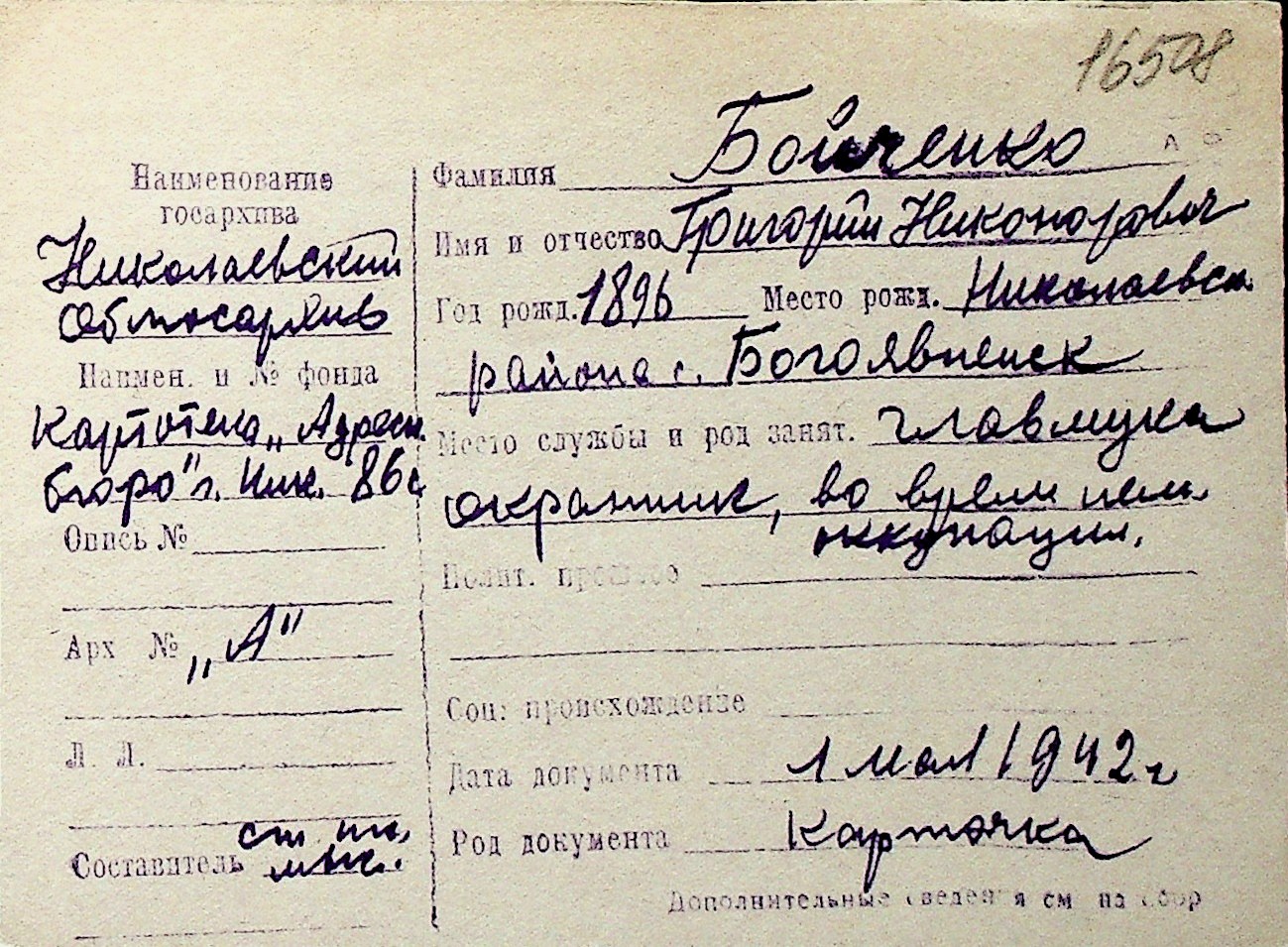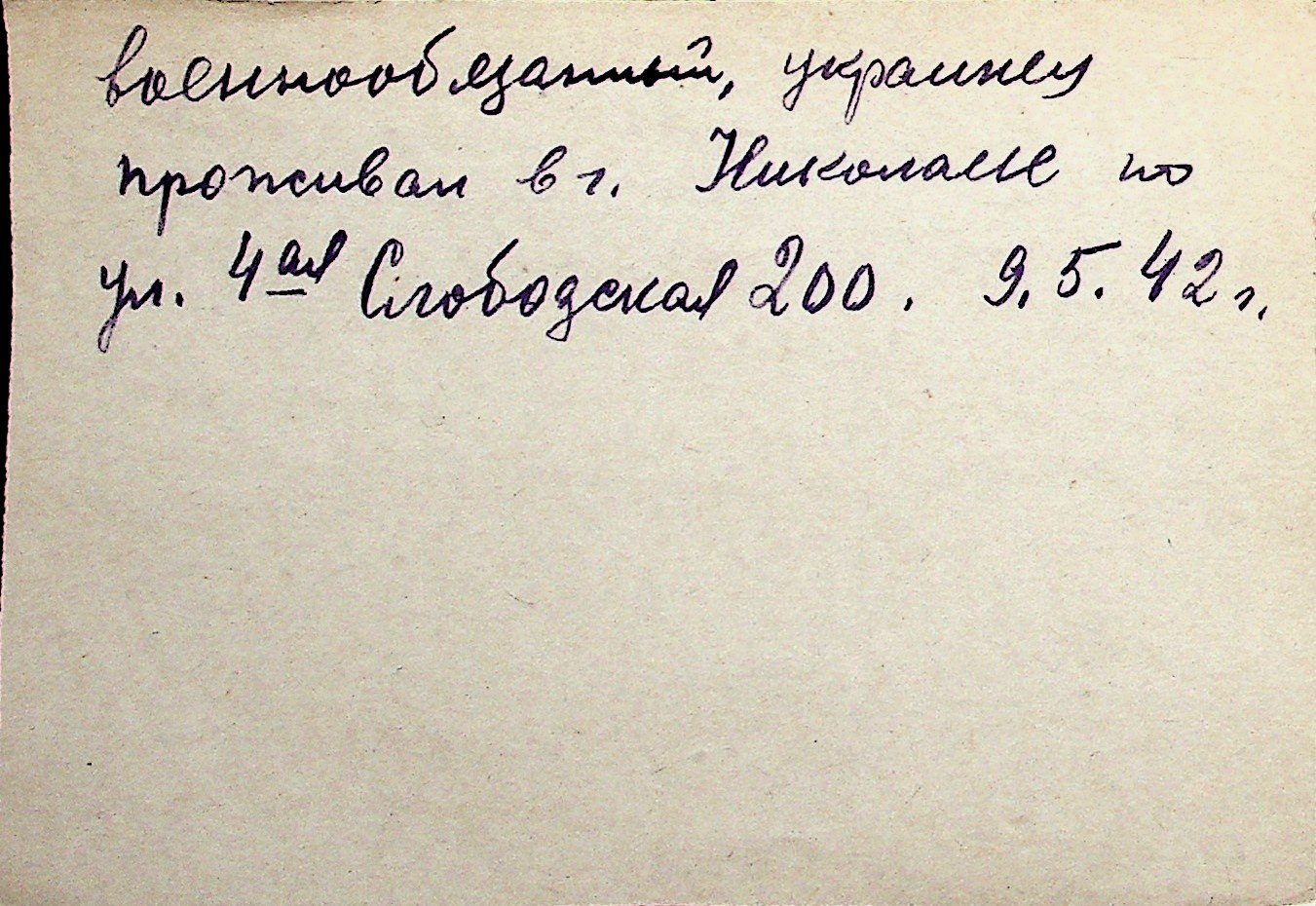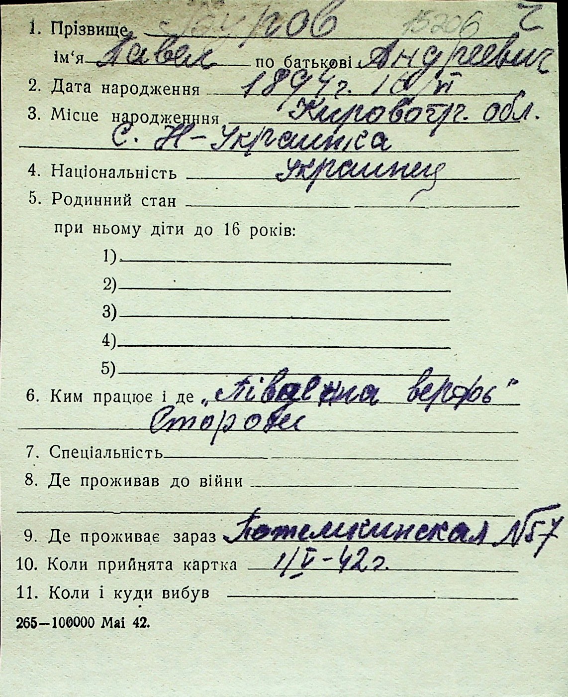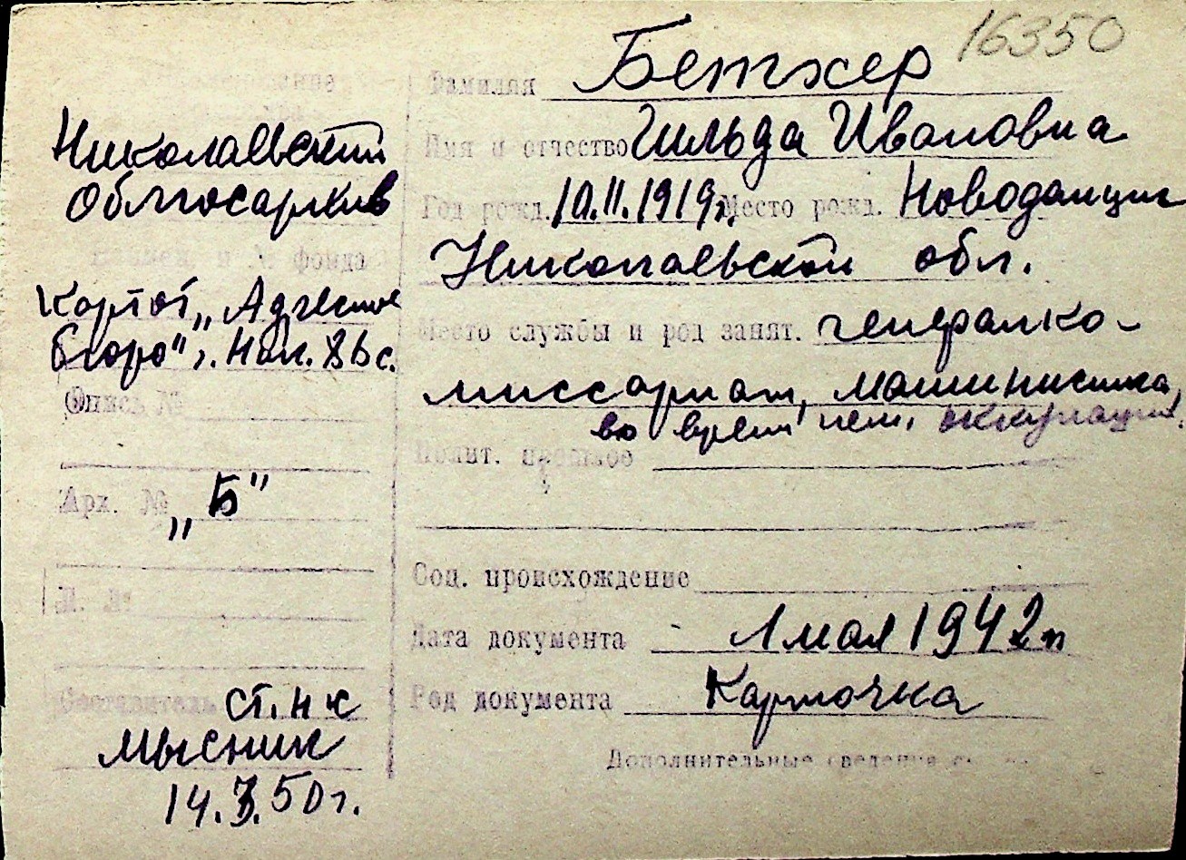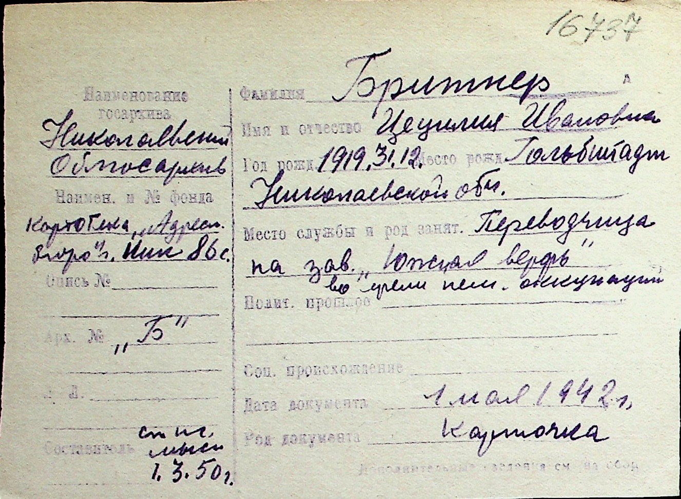 ◦ ◦ Перелік карток на осіб, які мешкали у м. Миколаїв у період окупації 1941–1944 років