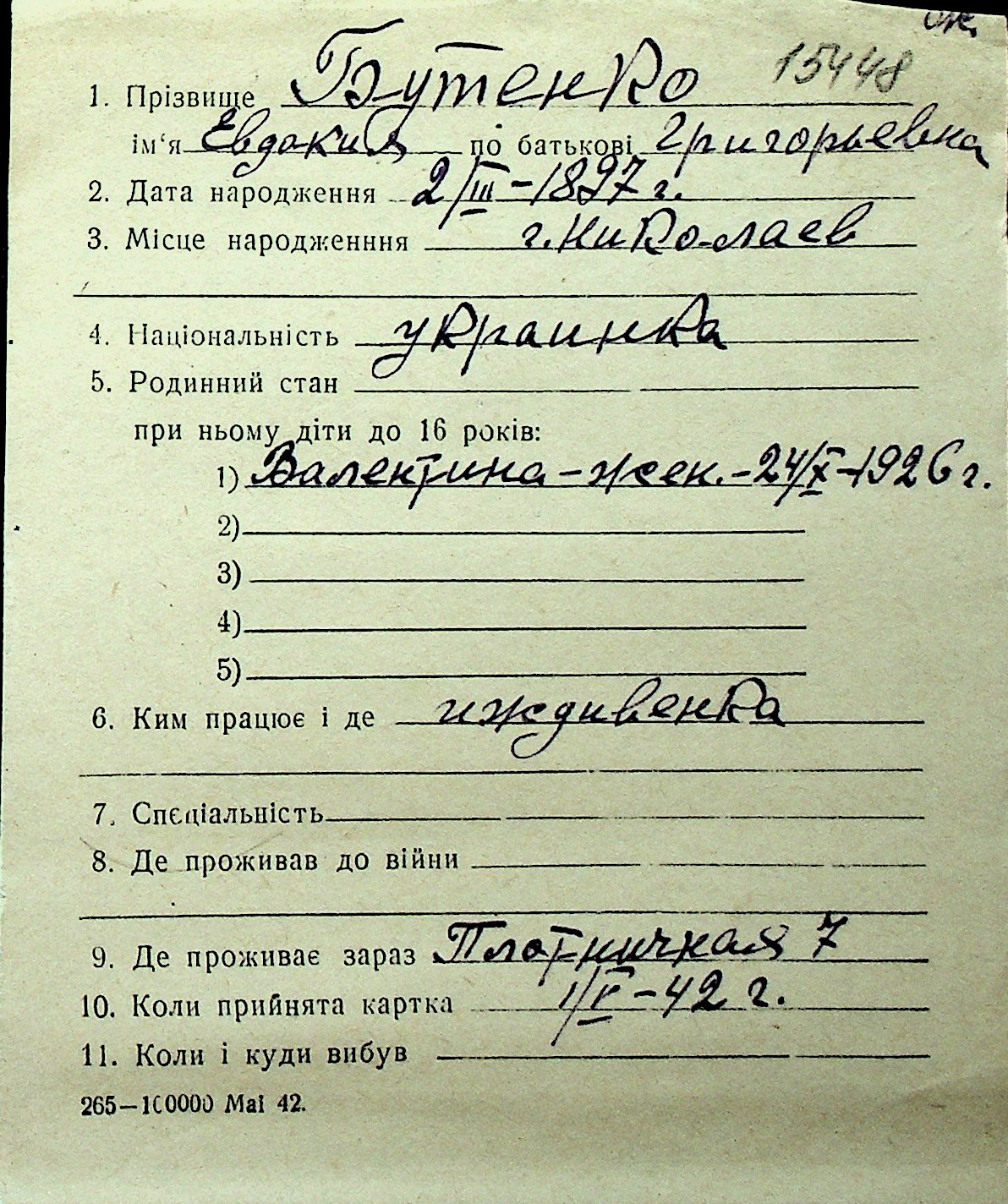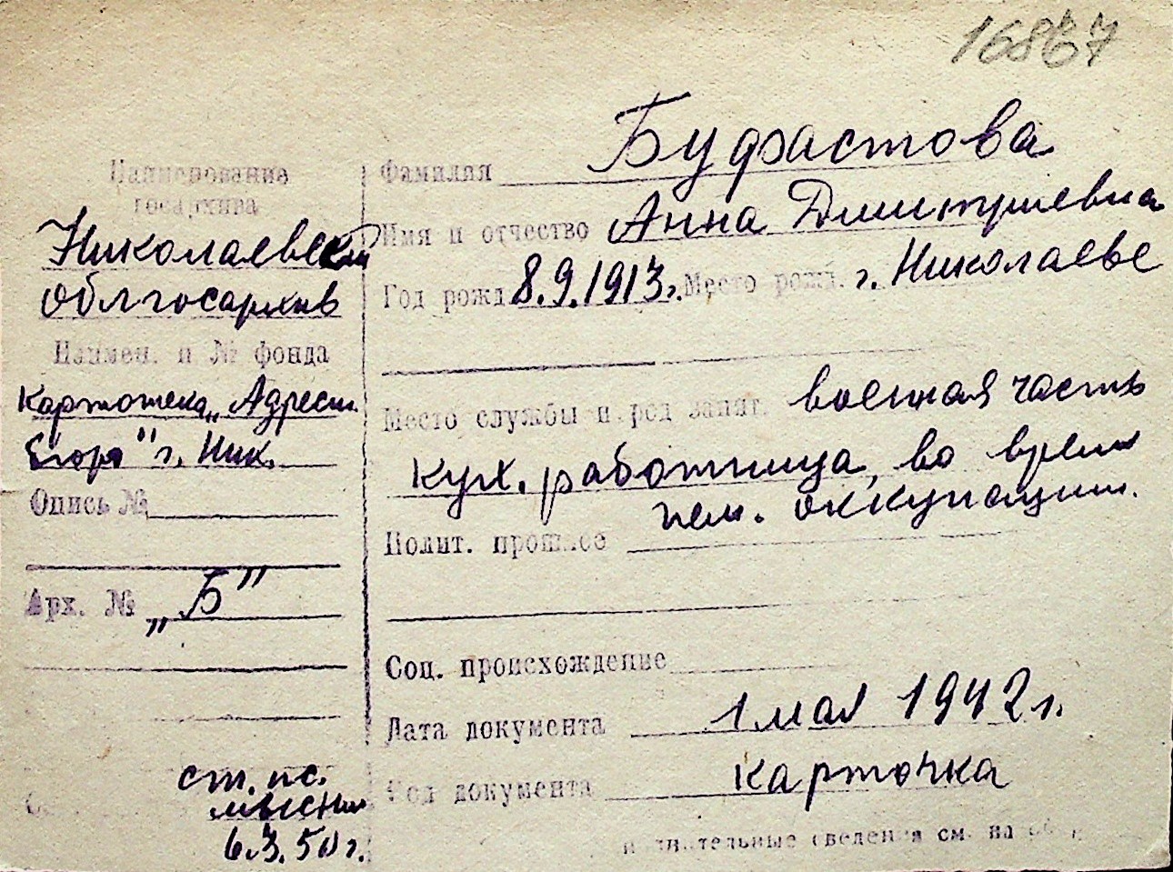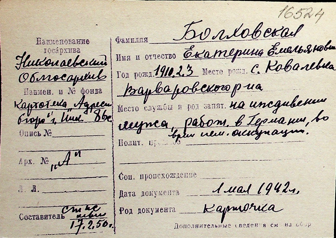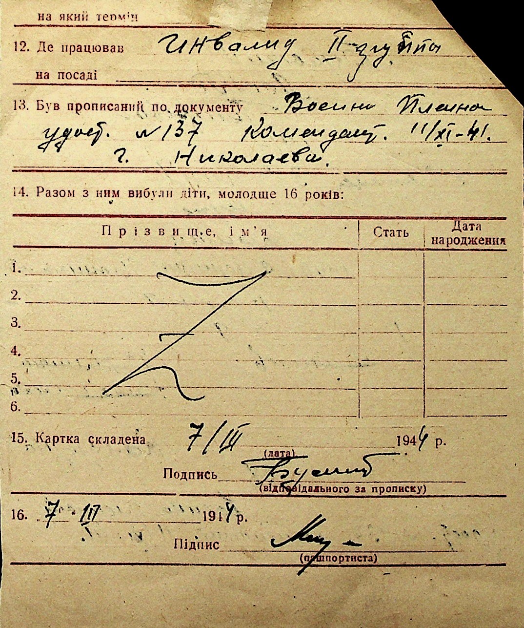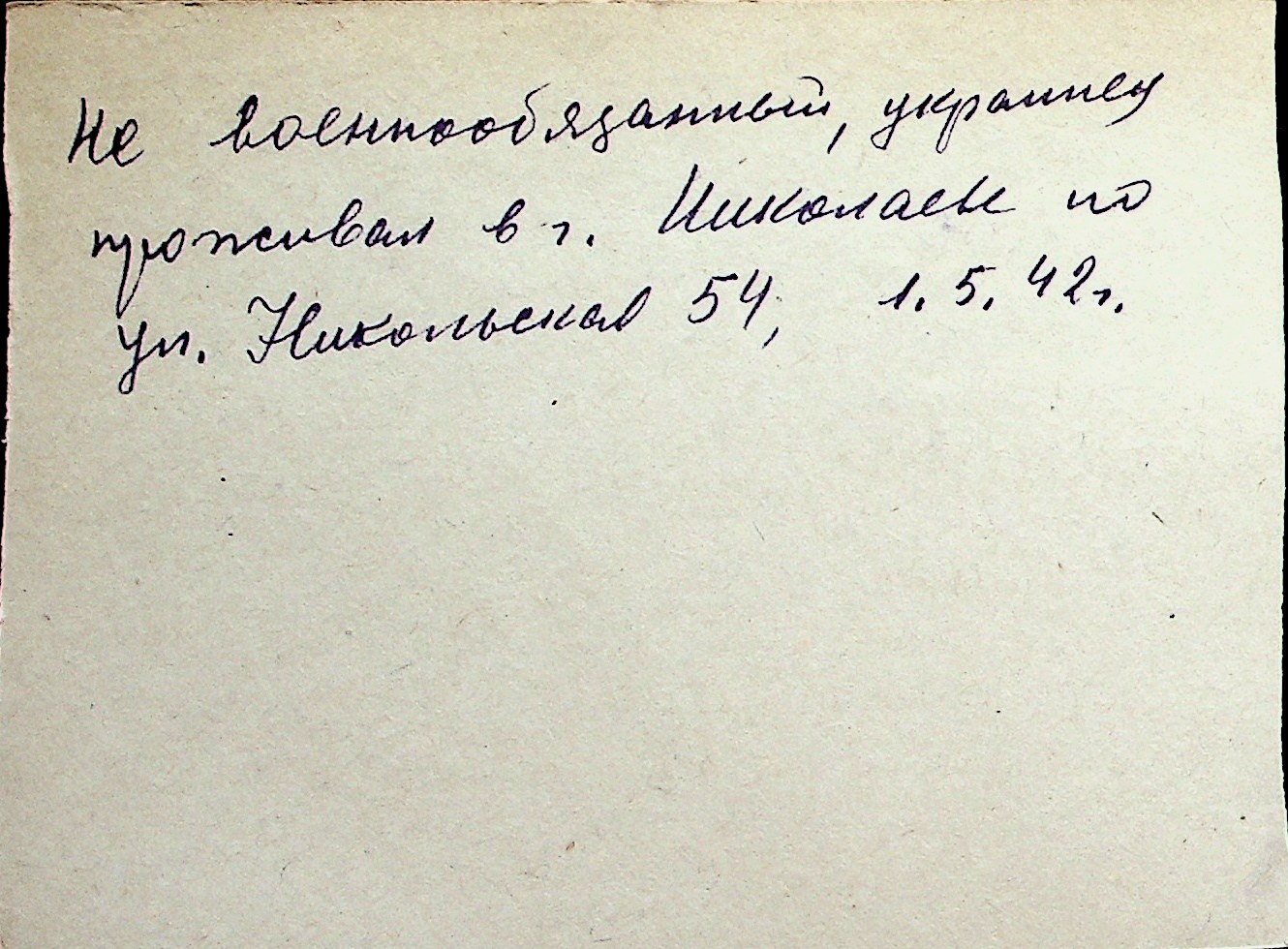 ◦ ◦ Перелік карток на осіб, які мешкали у м. Миколаїв у період окупації 1941–1944 років