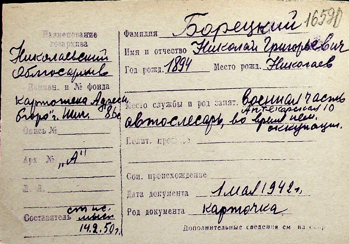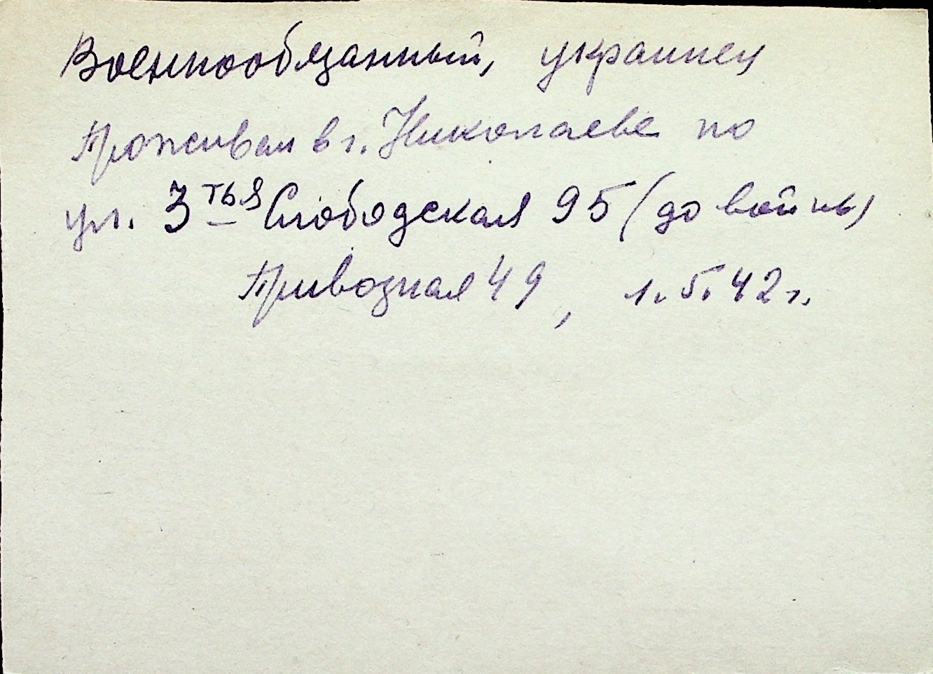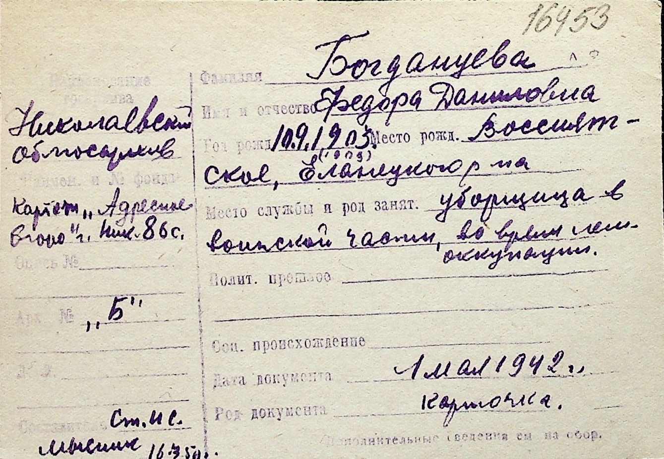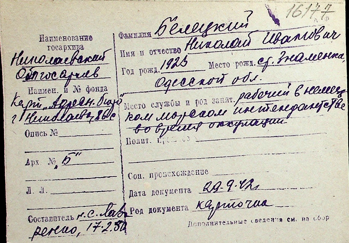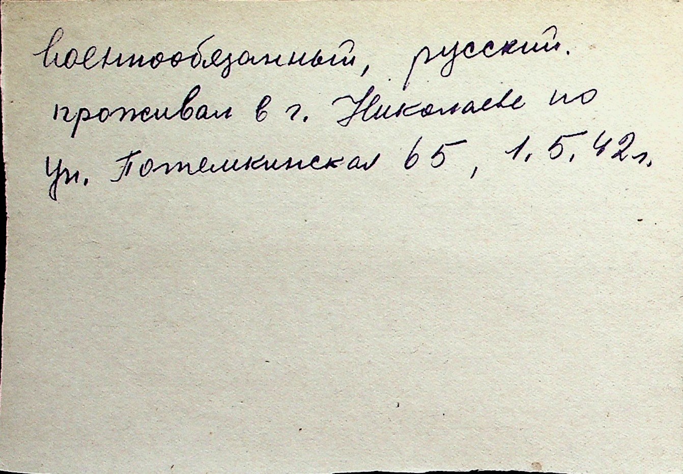 ◦ ◦ Перелік карток на осіб, які мешкали у м. Миколаїв у період окупації 1941–1944 років