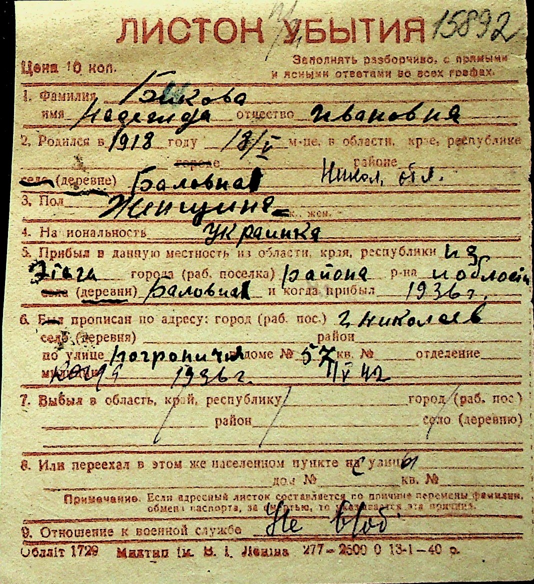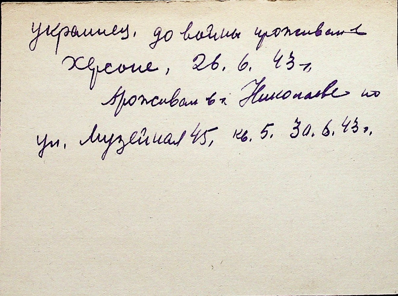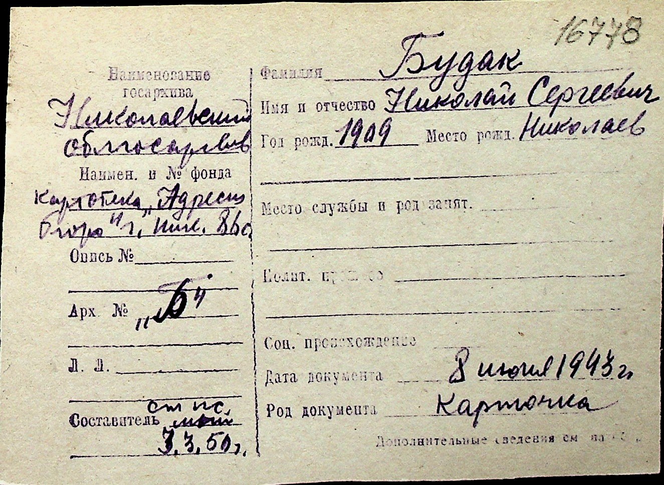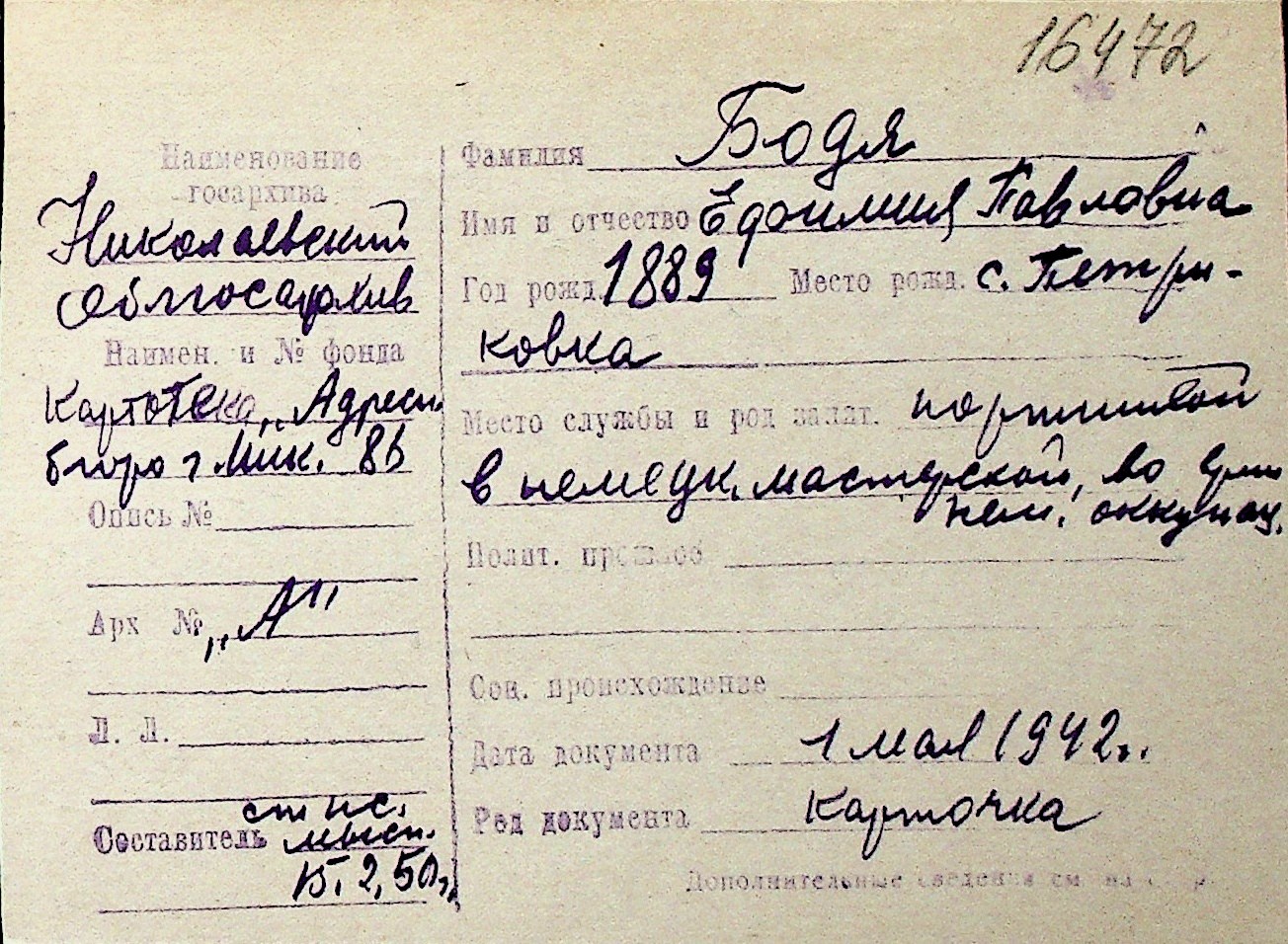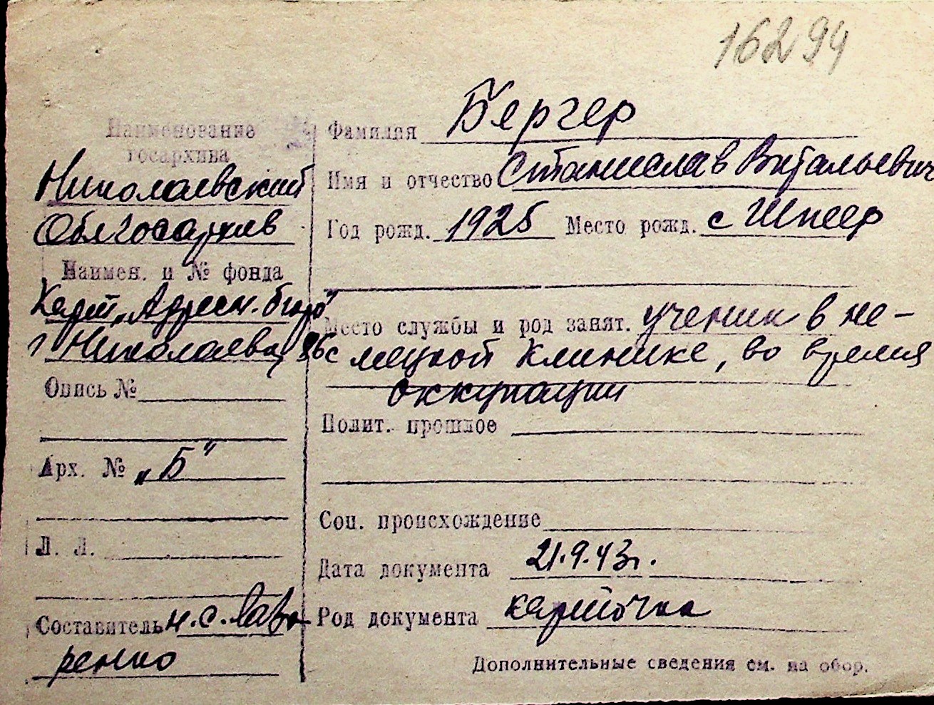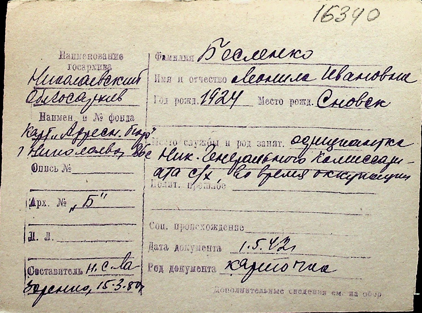 ◦ ◦ Перелік карток на осіб, які мешкали у м. Миколаїв у період окупації 1941–1944 років