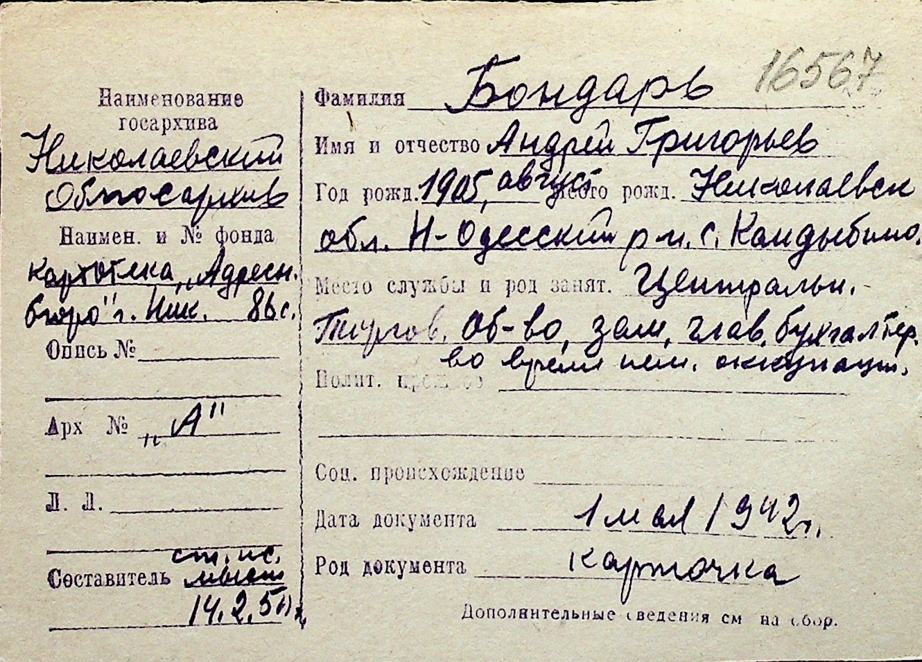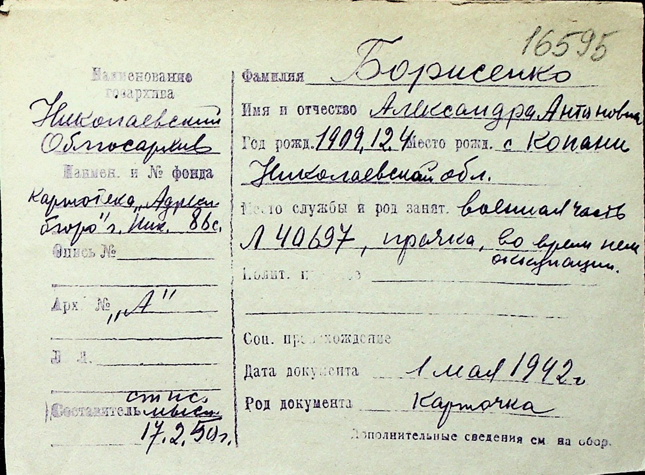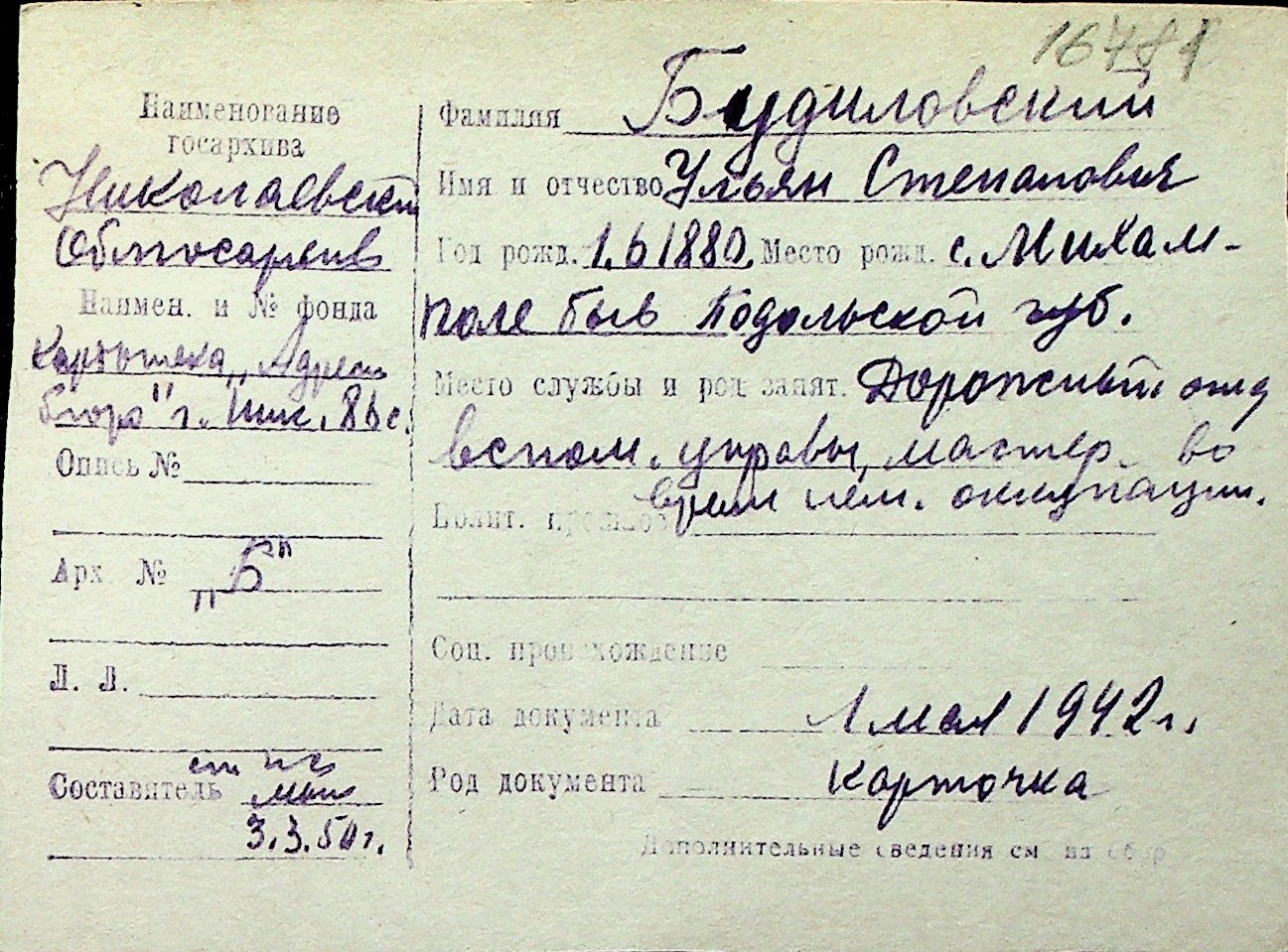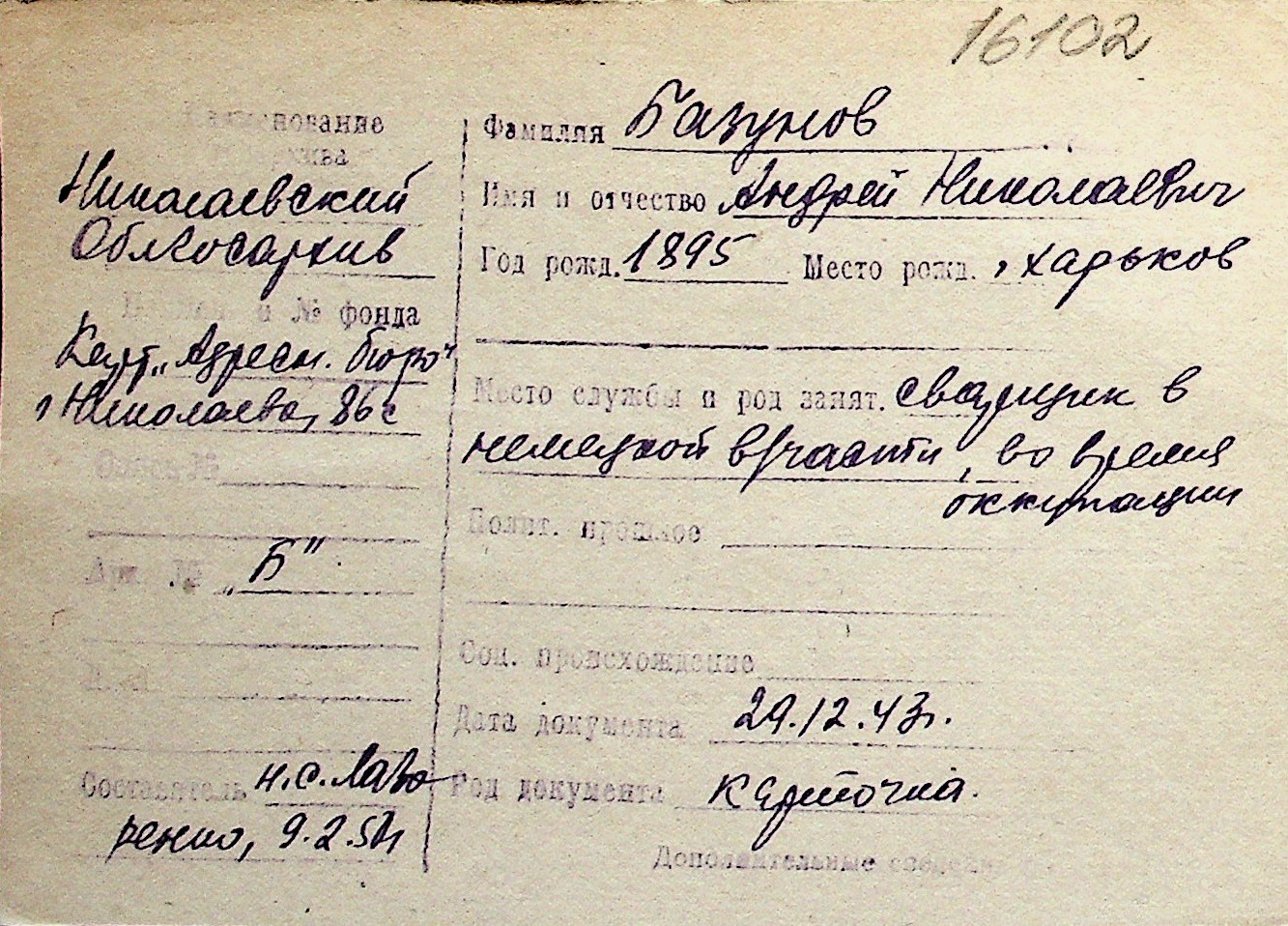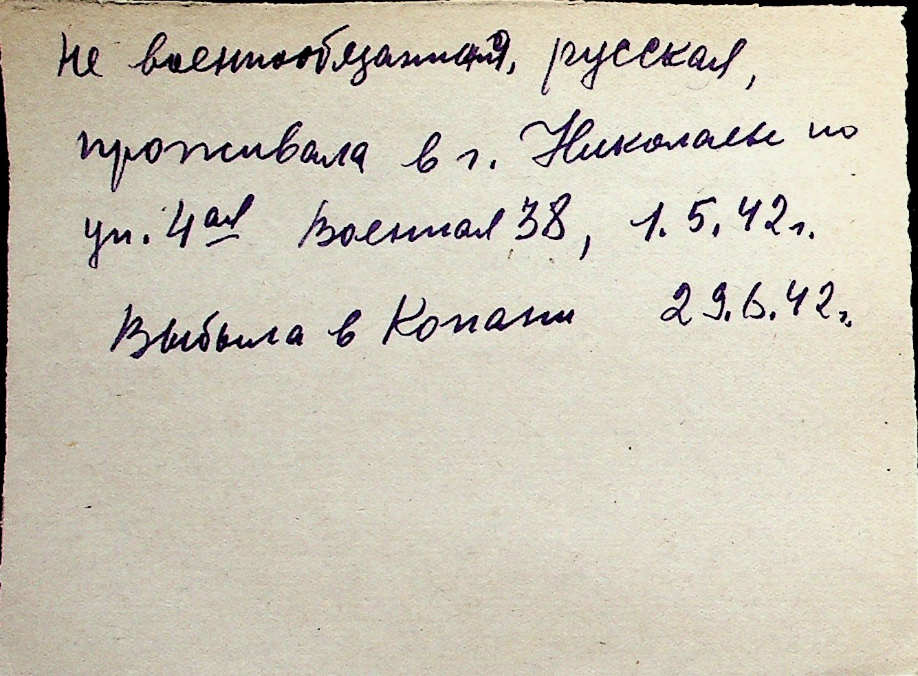 ◦ ◦ Перелік карток на осіб, які мешкали у м. Миколаїв у період окупації 1941–1944 років