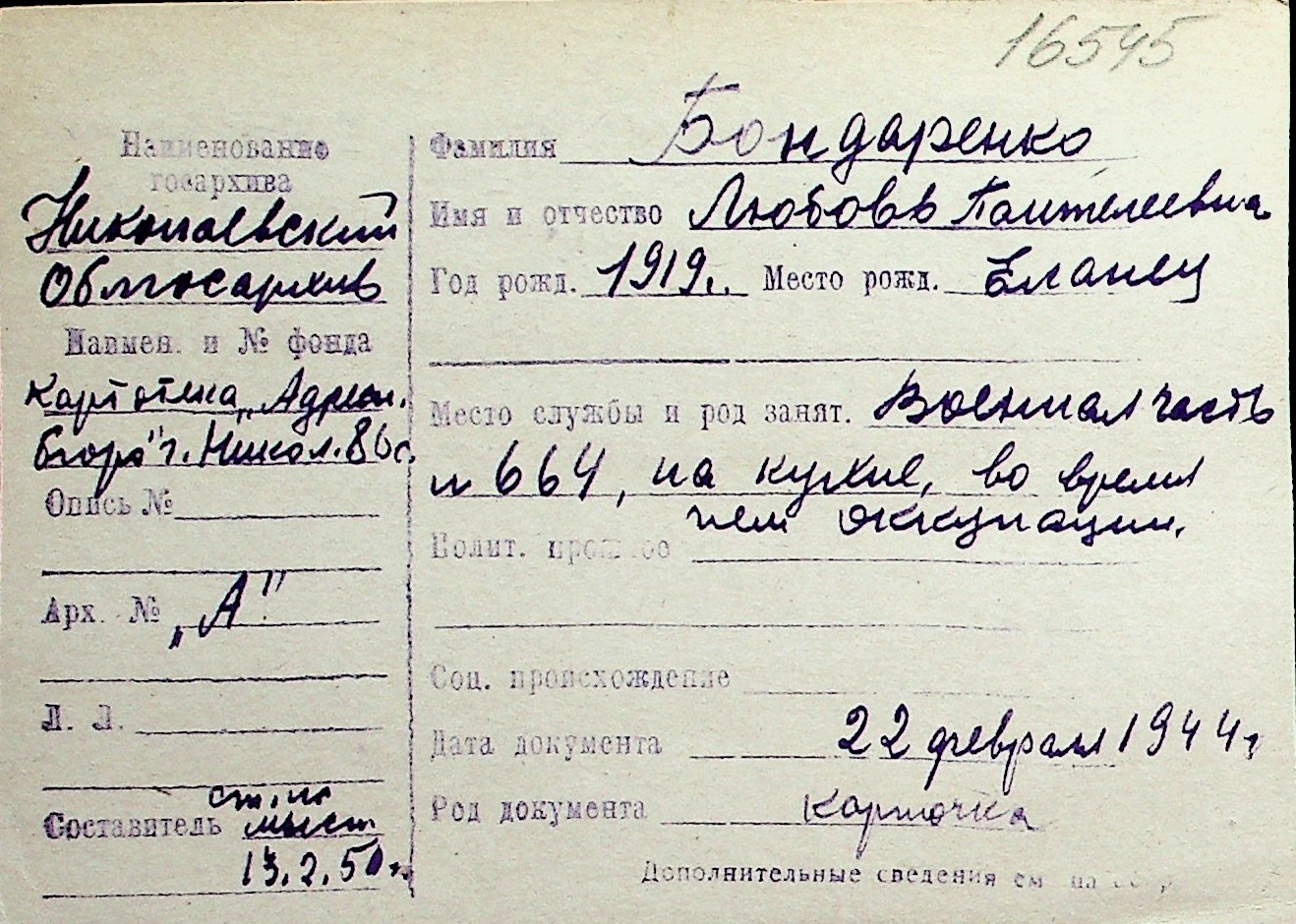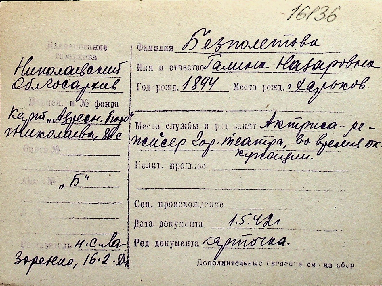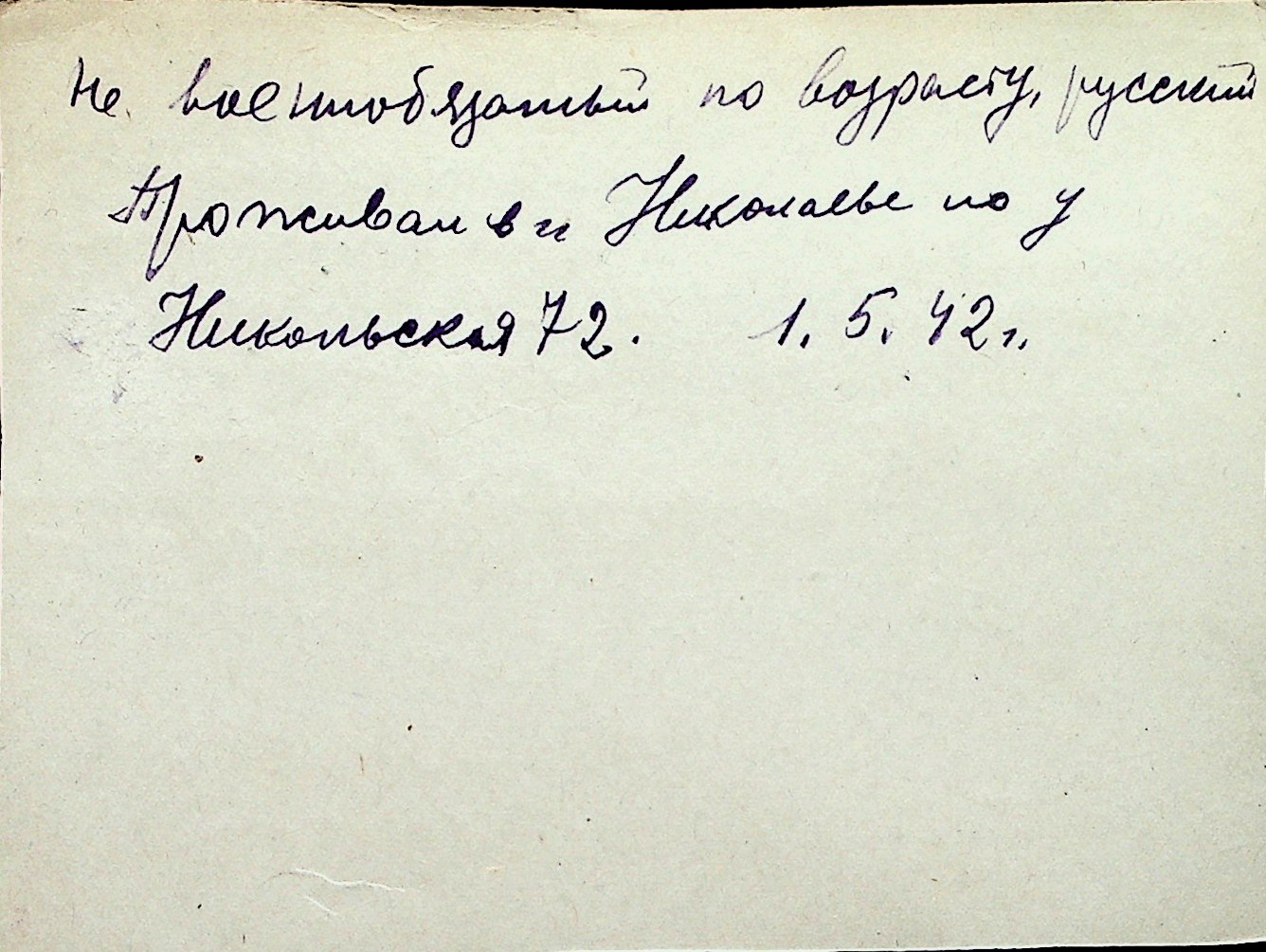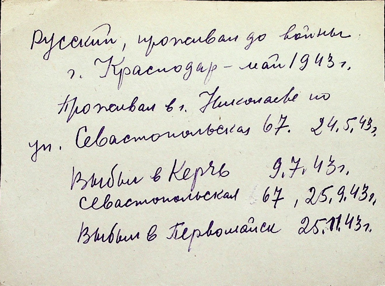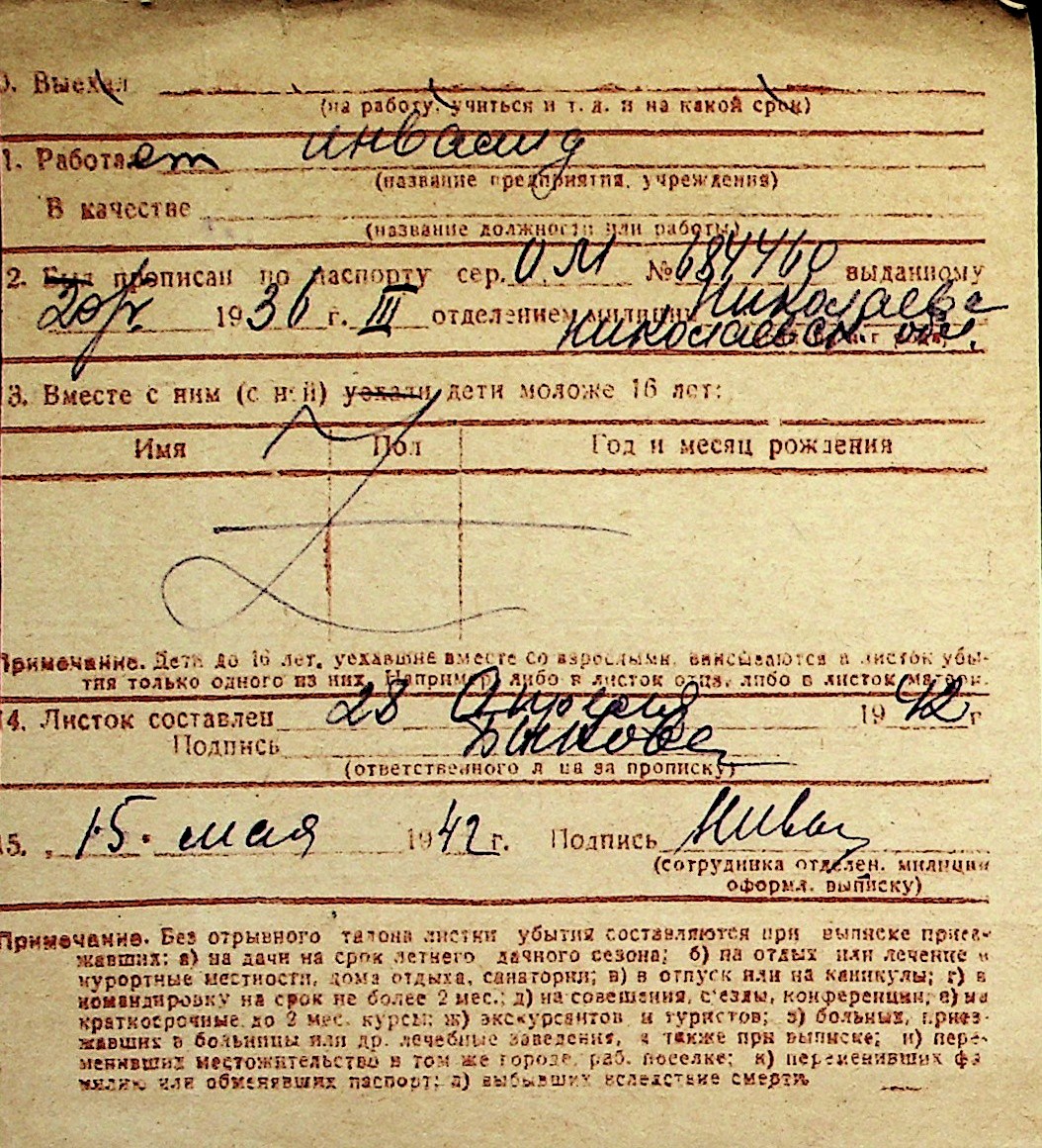 ◦ ◦ Перелік карток на осіб, які мешкали у м. Миколаїв у період окупації 1941–1944 років
