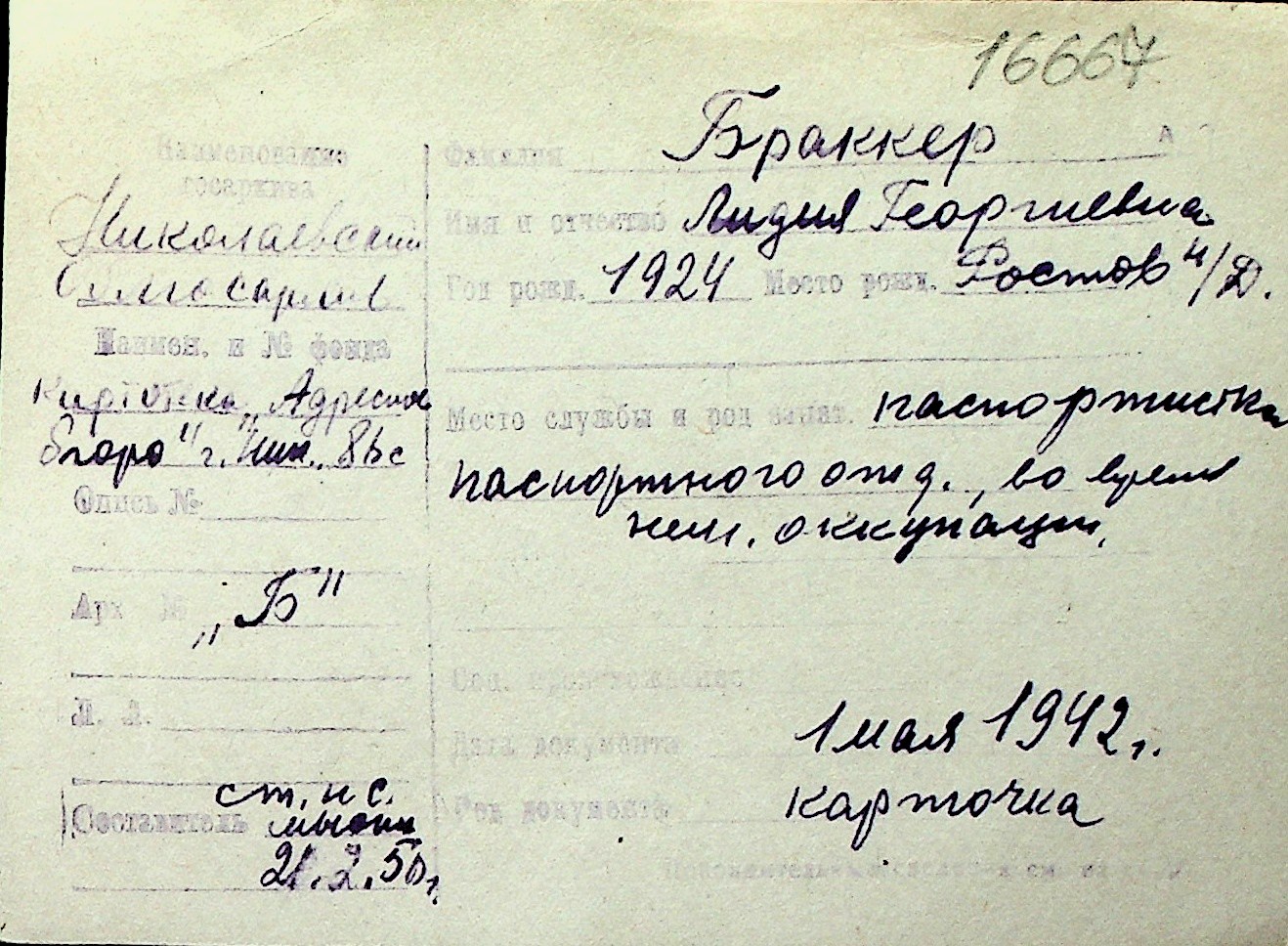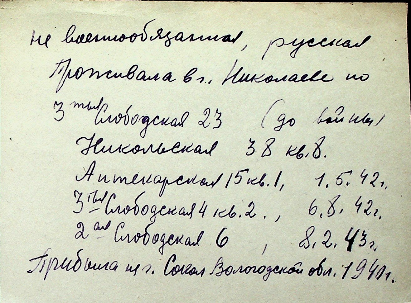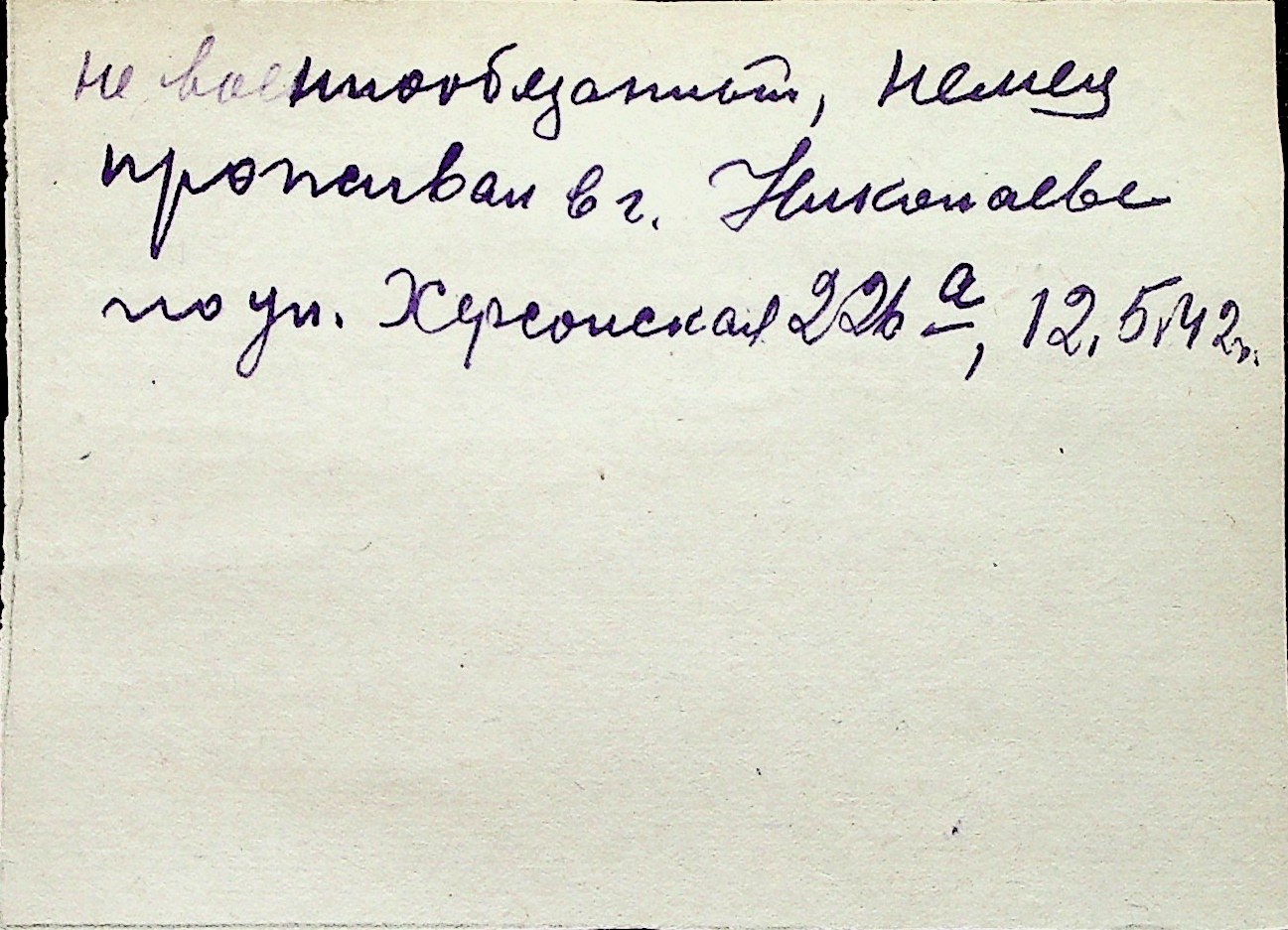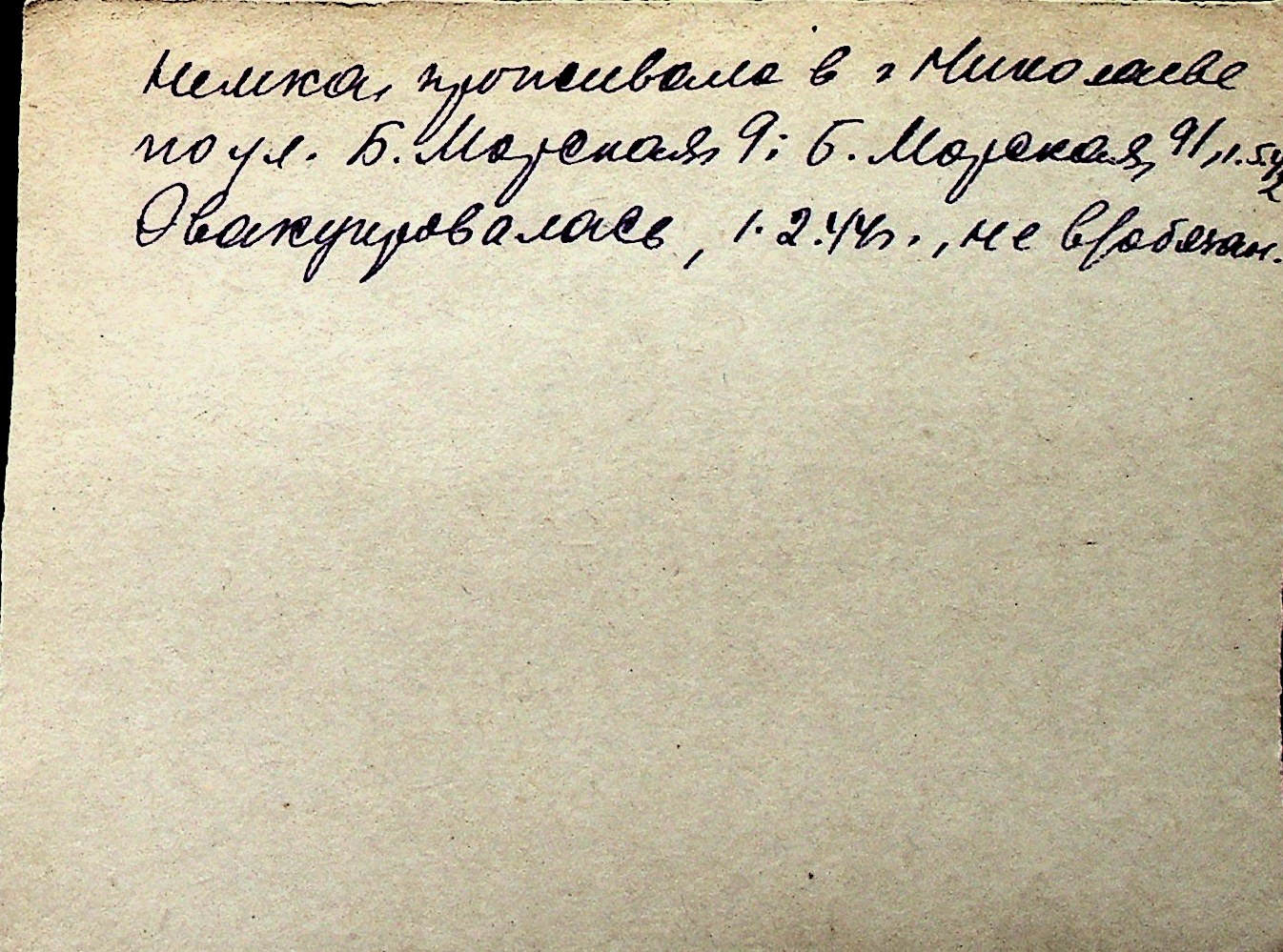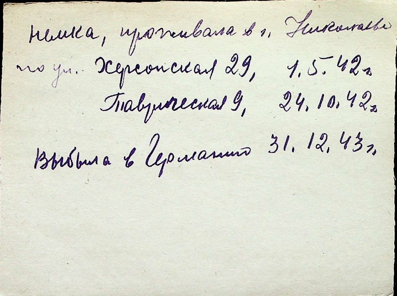 ◦ ◦ Перелік карток на осіб, які мешкали у м. Миколаїв у період окупації 1941–1944 років