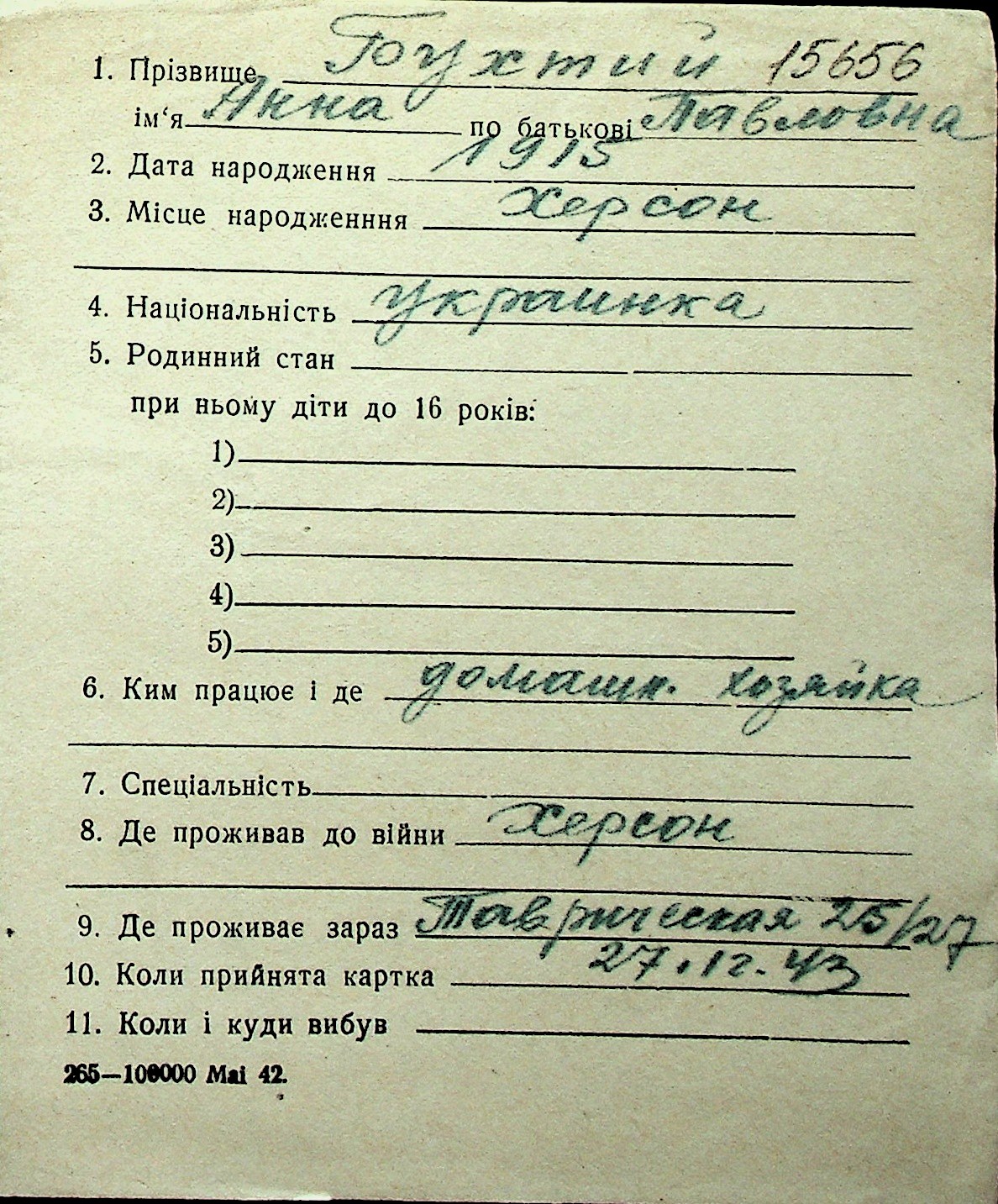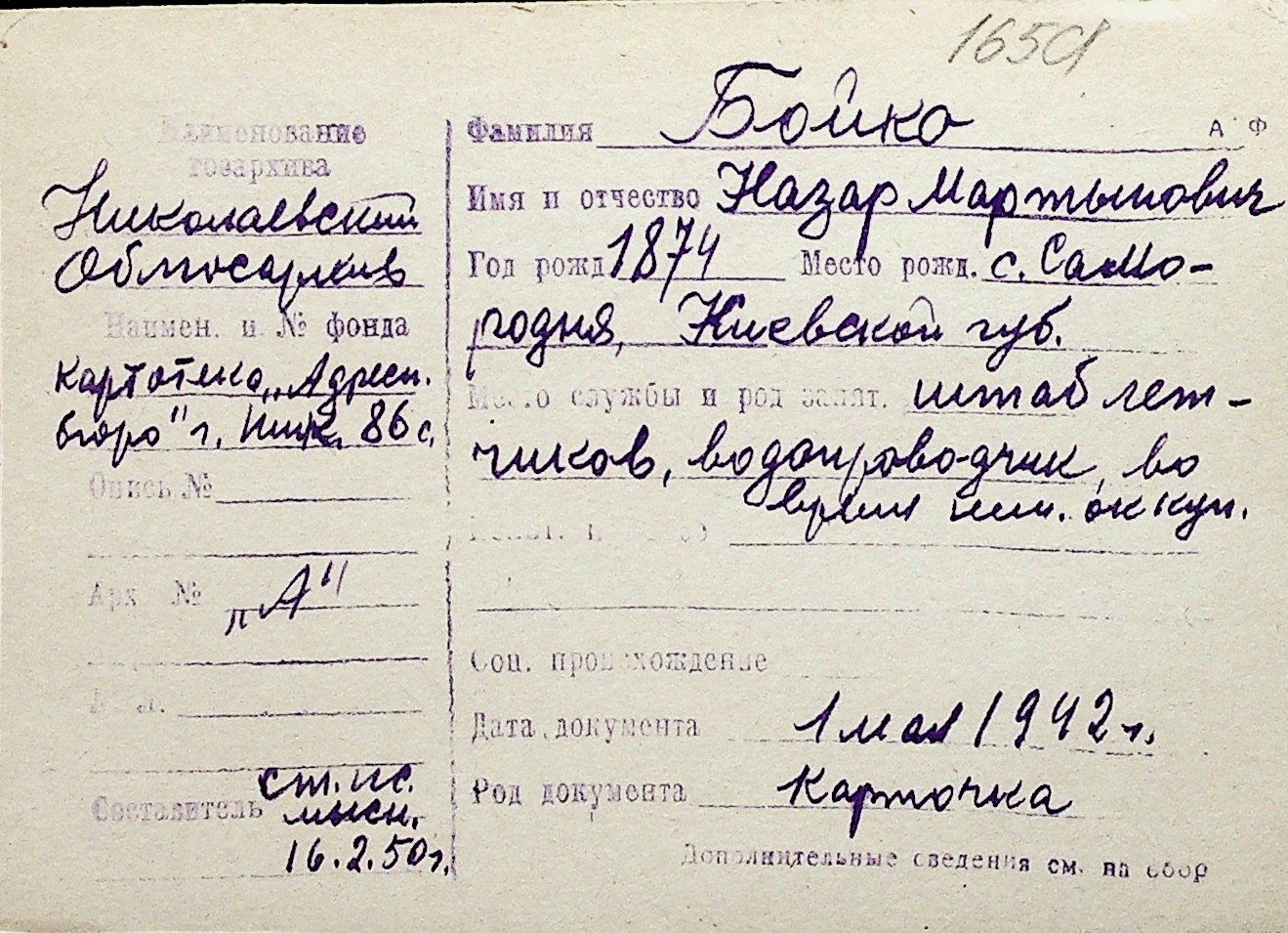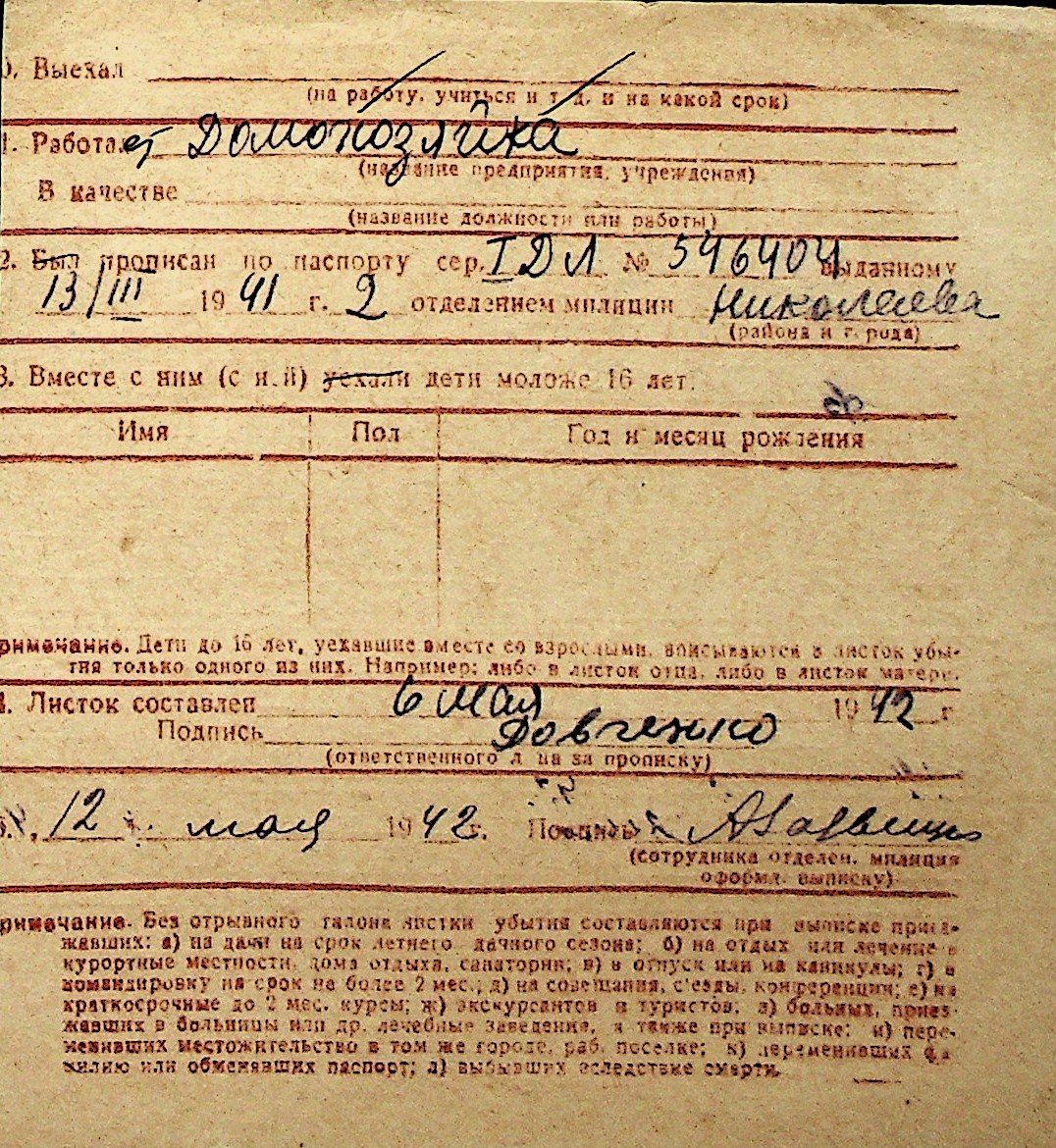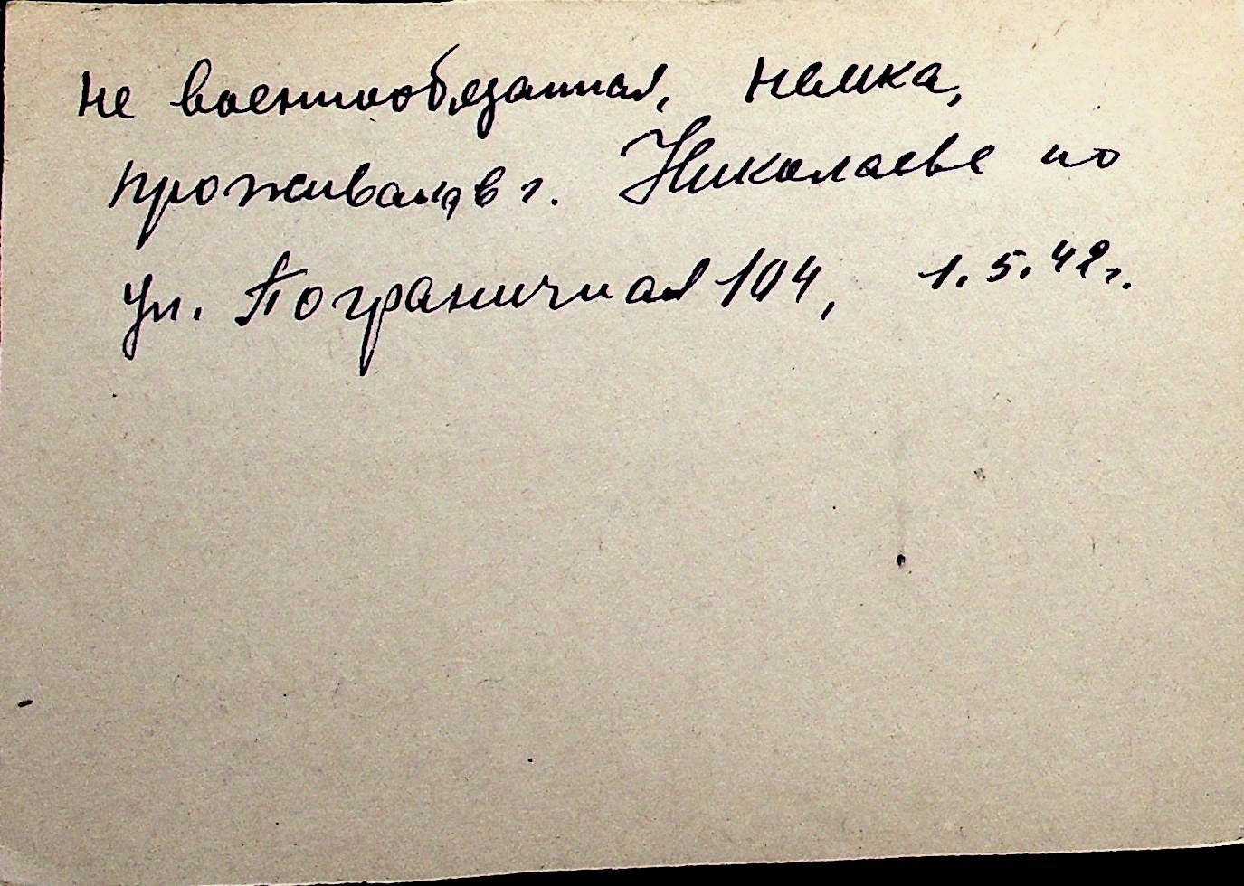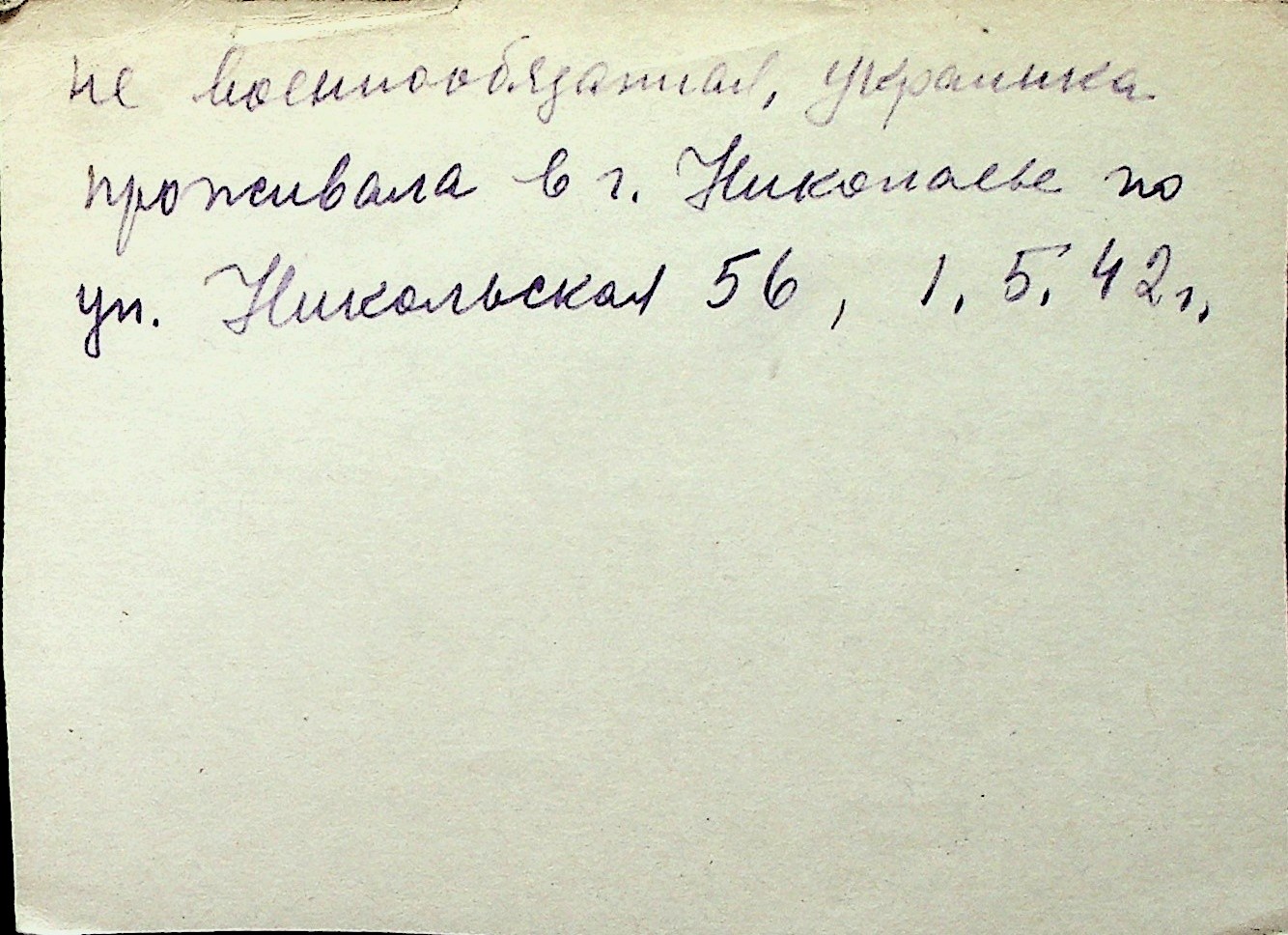 ◦ ◦ Перелік карток на осіб, які мешкали у м. Миколаїв у період окупації 1941–1944 років