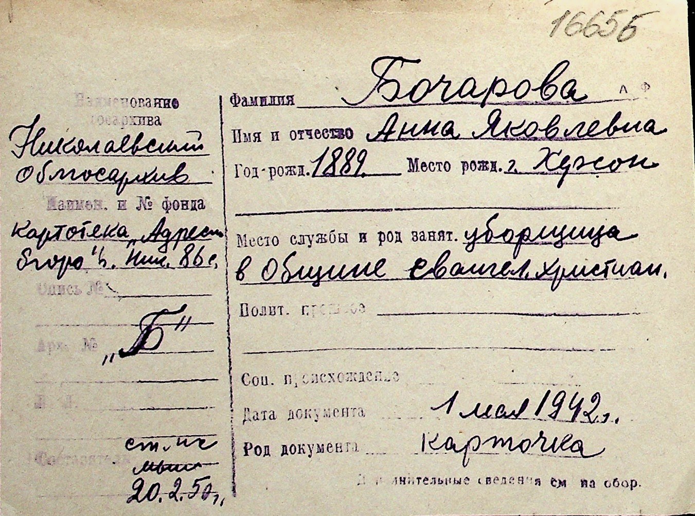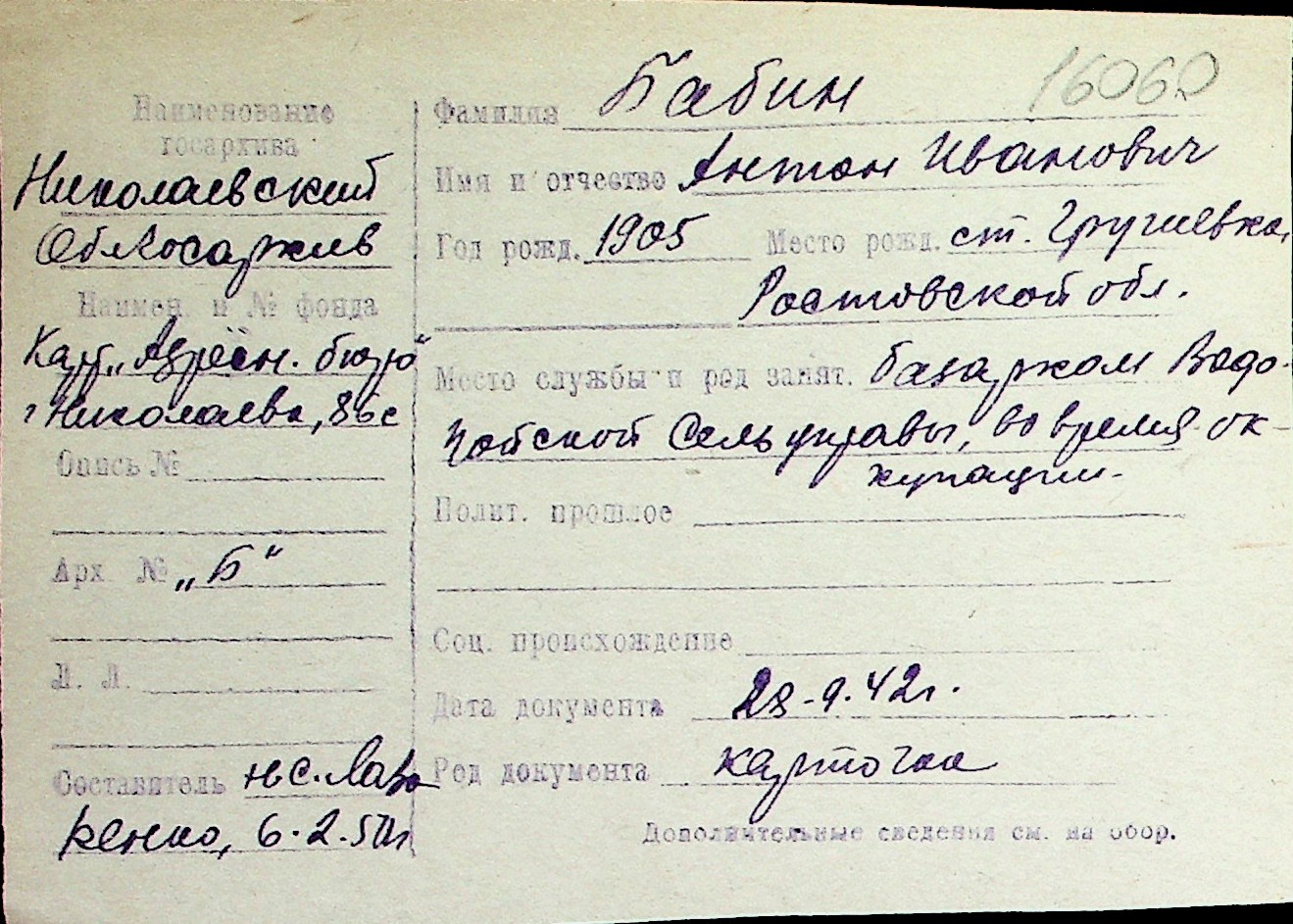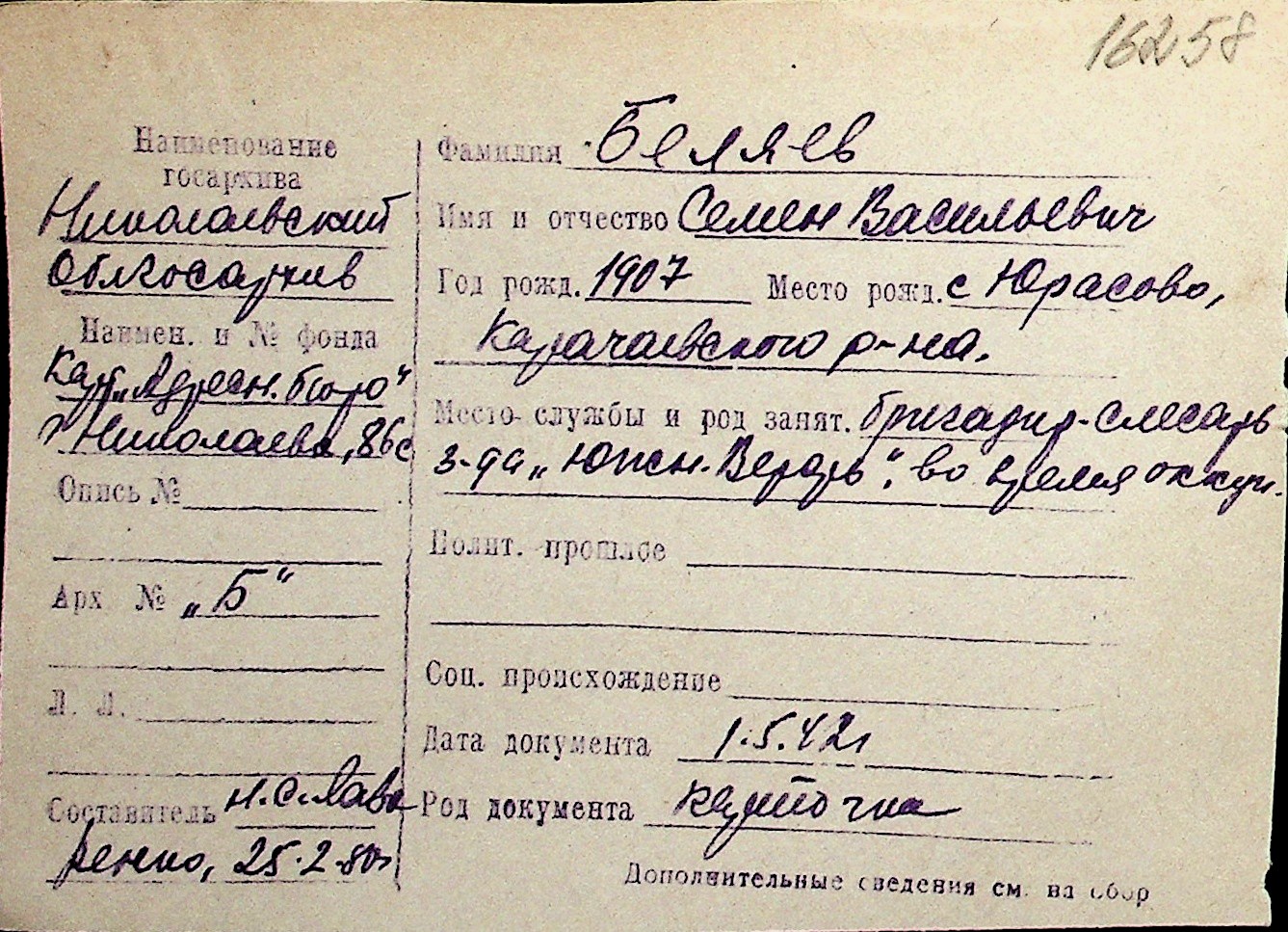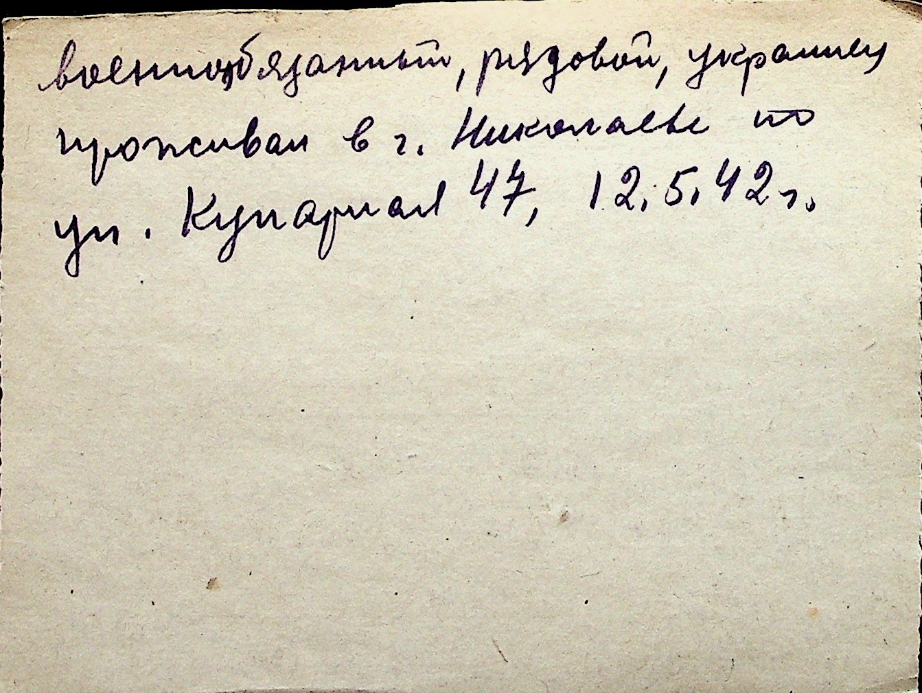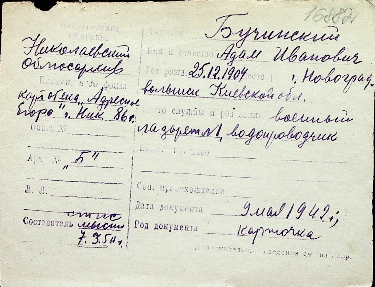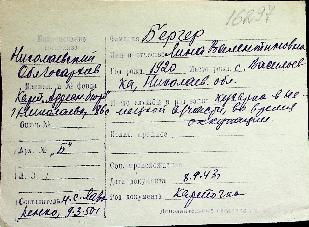 ◦ ◦ Перелік карток на осіб, які мешкали у м. Миколаїв у період окупації 1941–1944 років