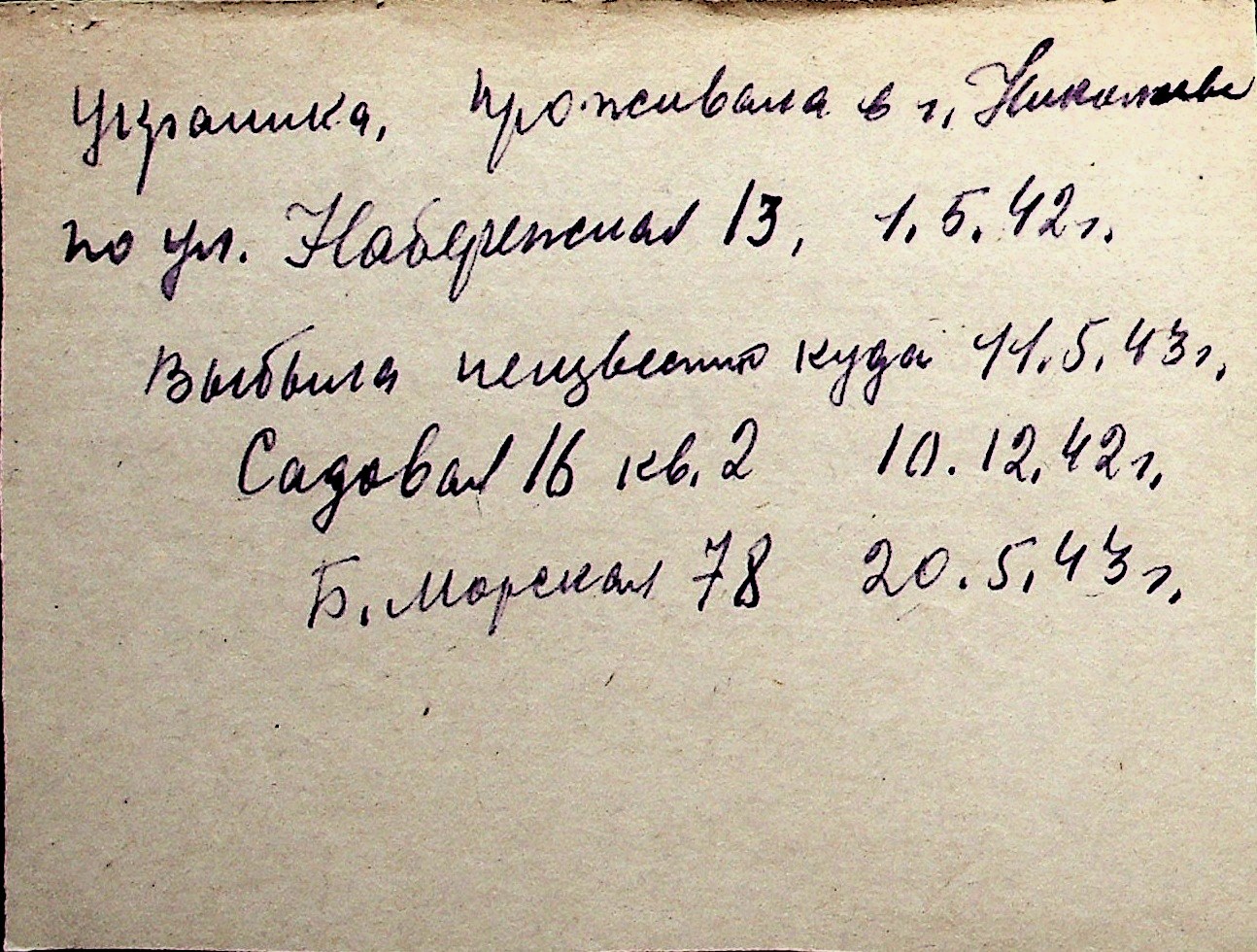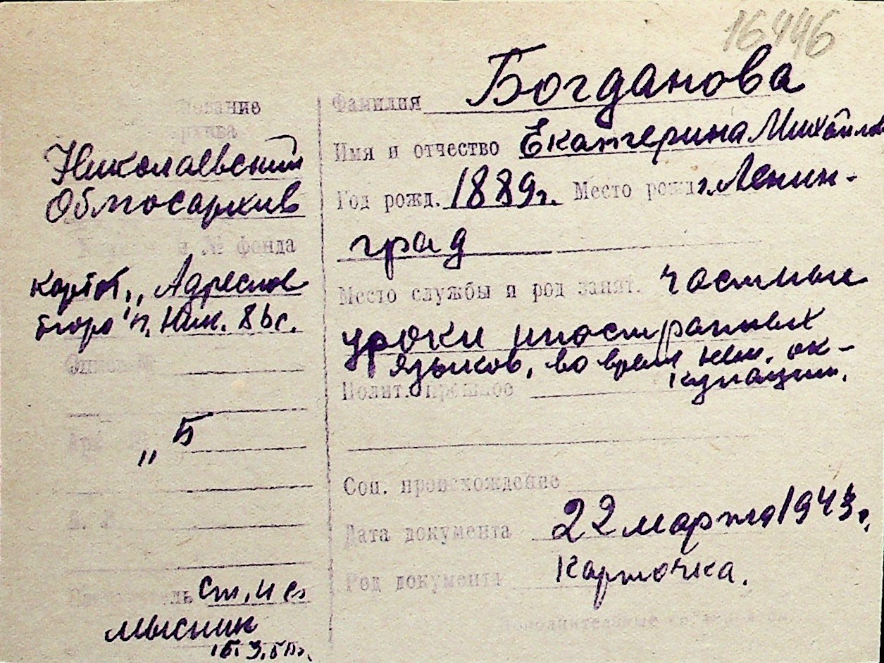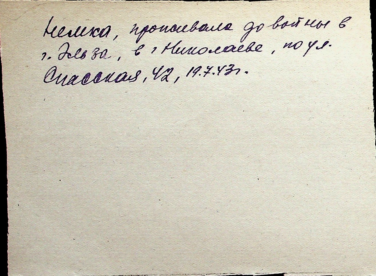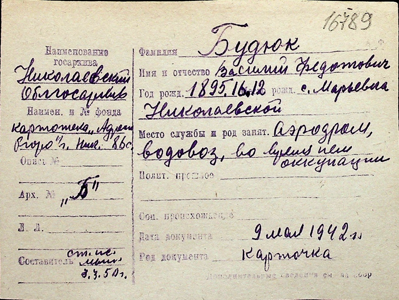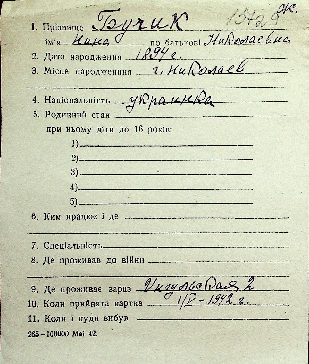 ◦ ◦ Перелік карток на осіб, які мешкали у м. Миколаїв у період окупації 1941–1944 років