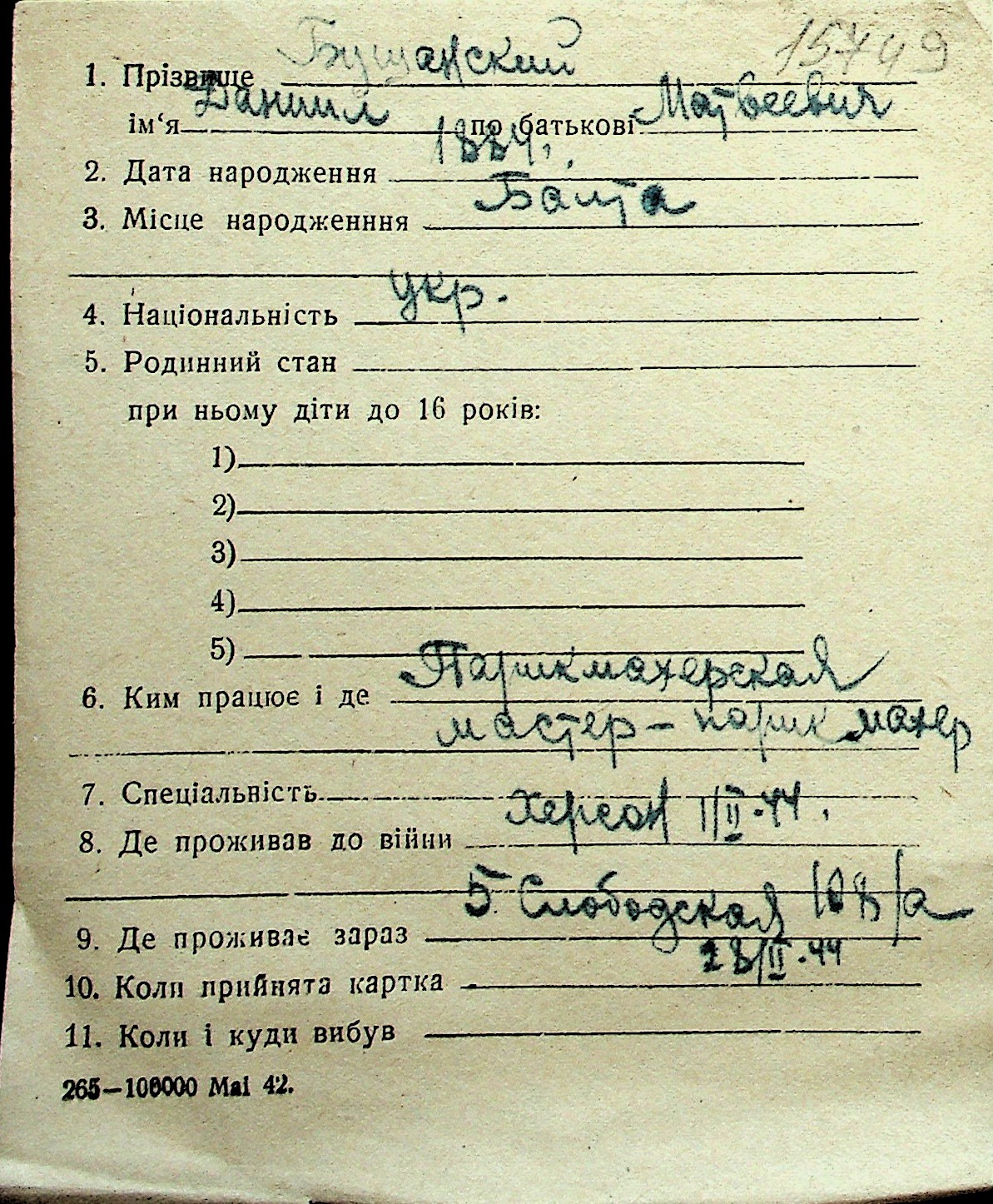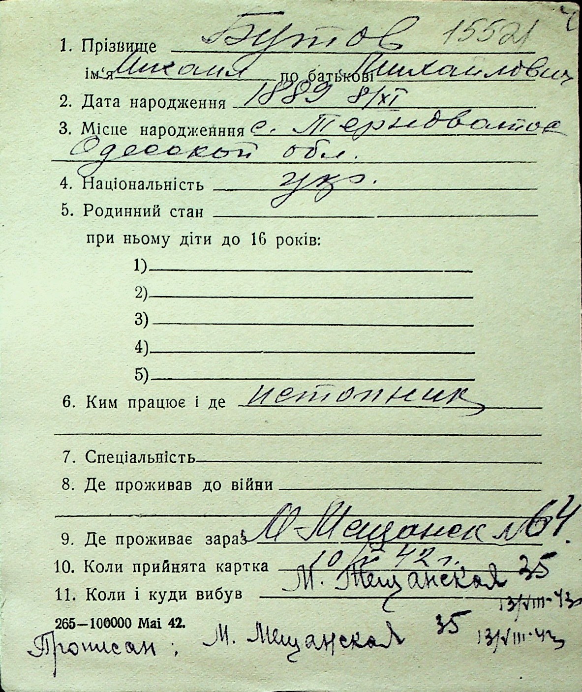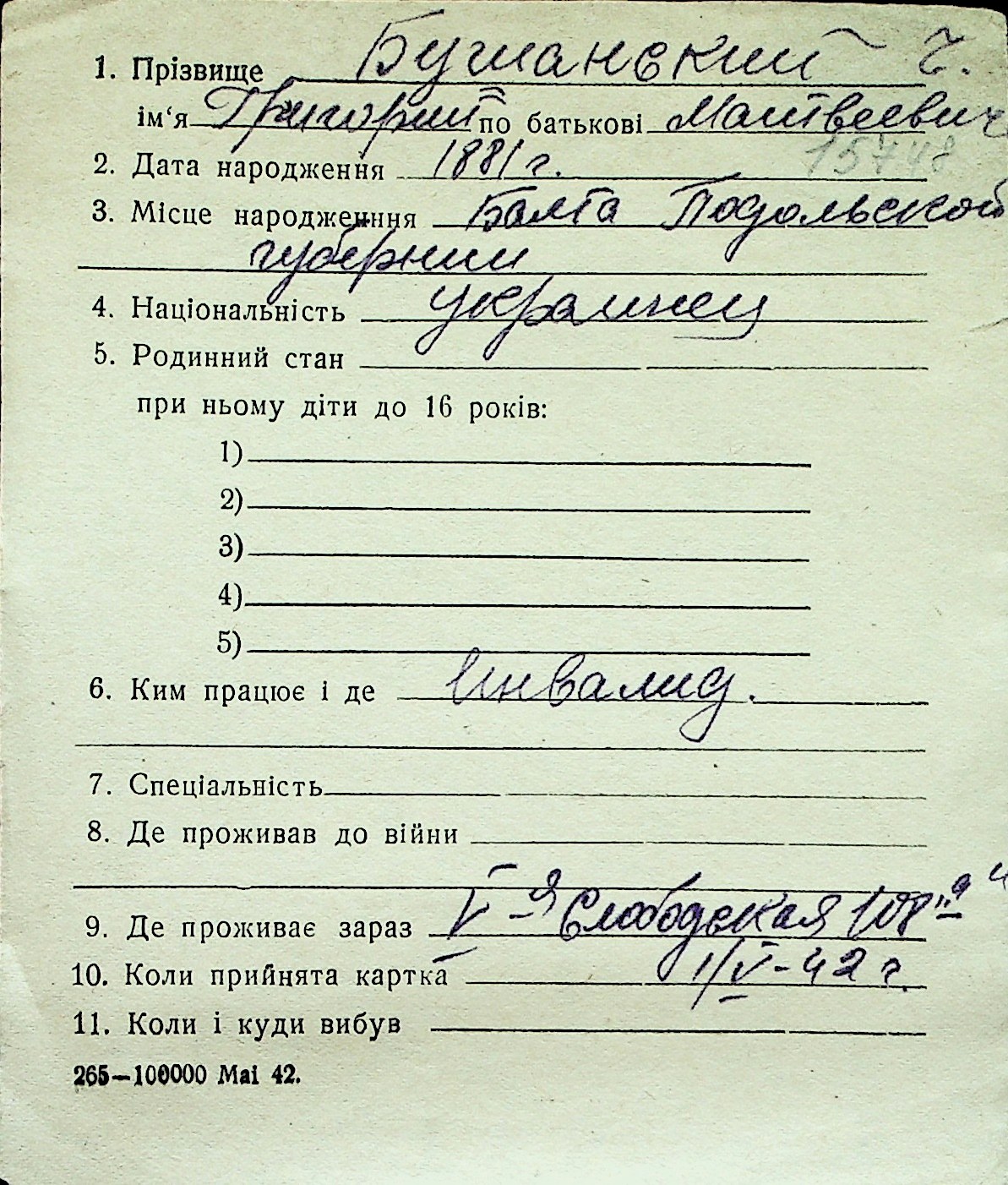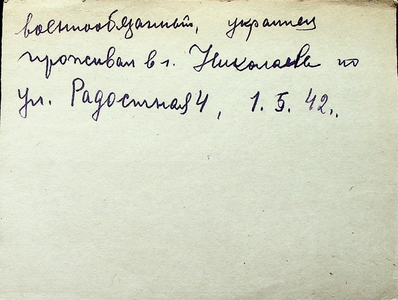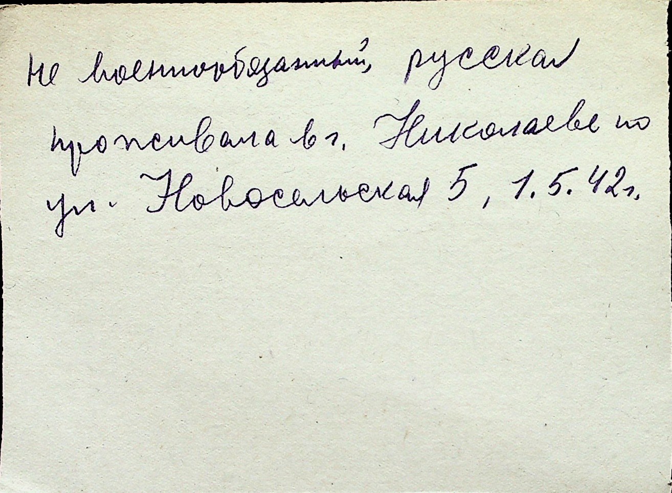◦ ◦ Перелік карток на осіб, які мешкали у м. Миколаїв у період окупації 1941–1944 років