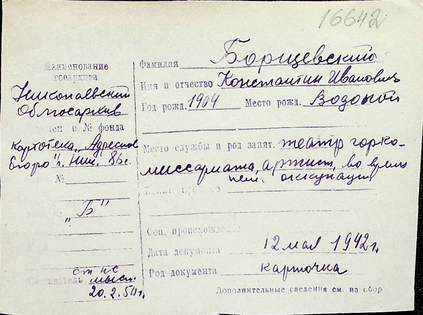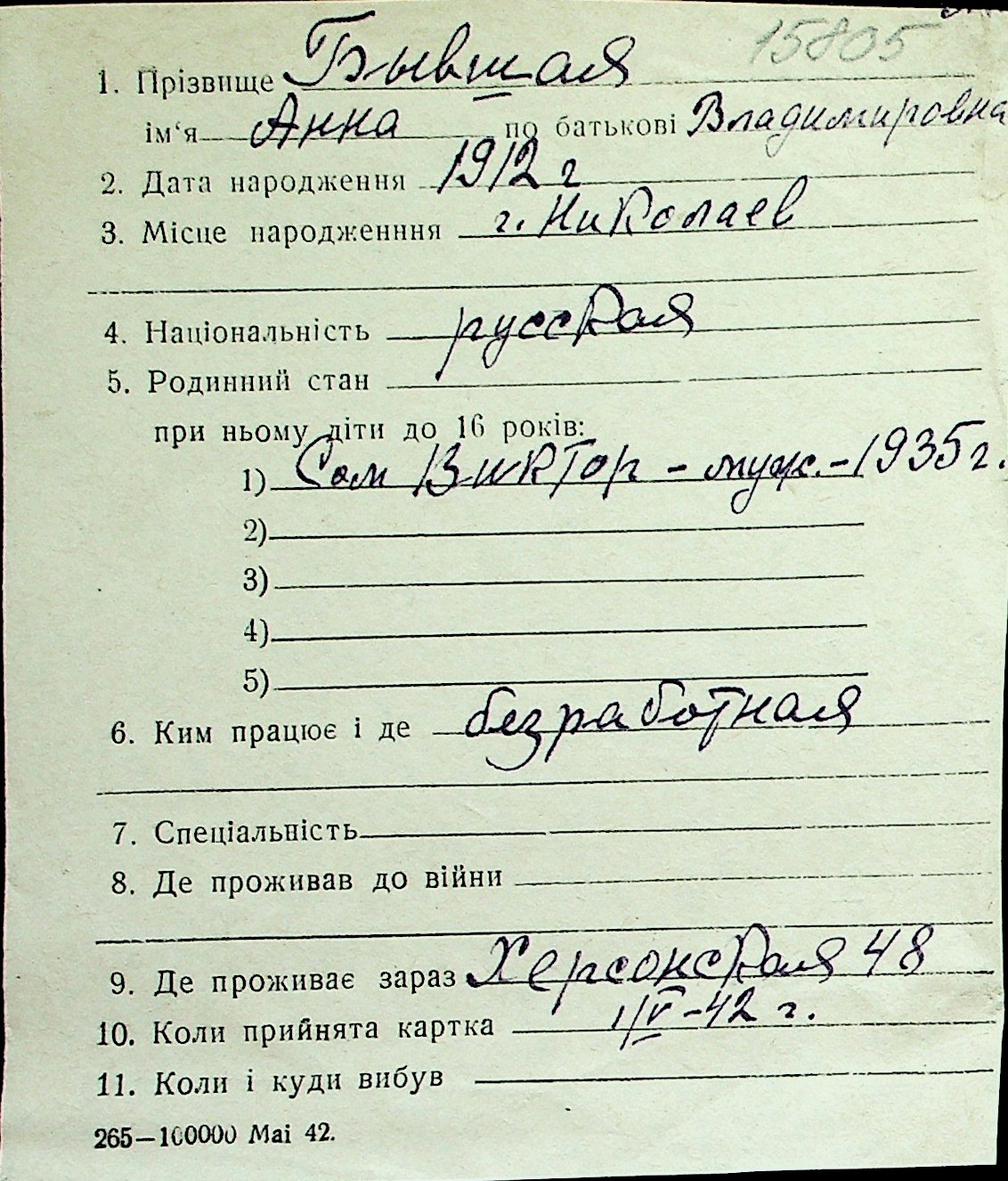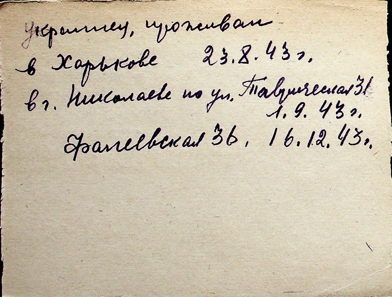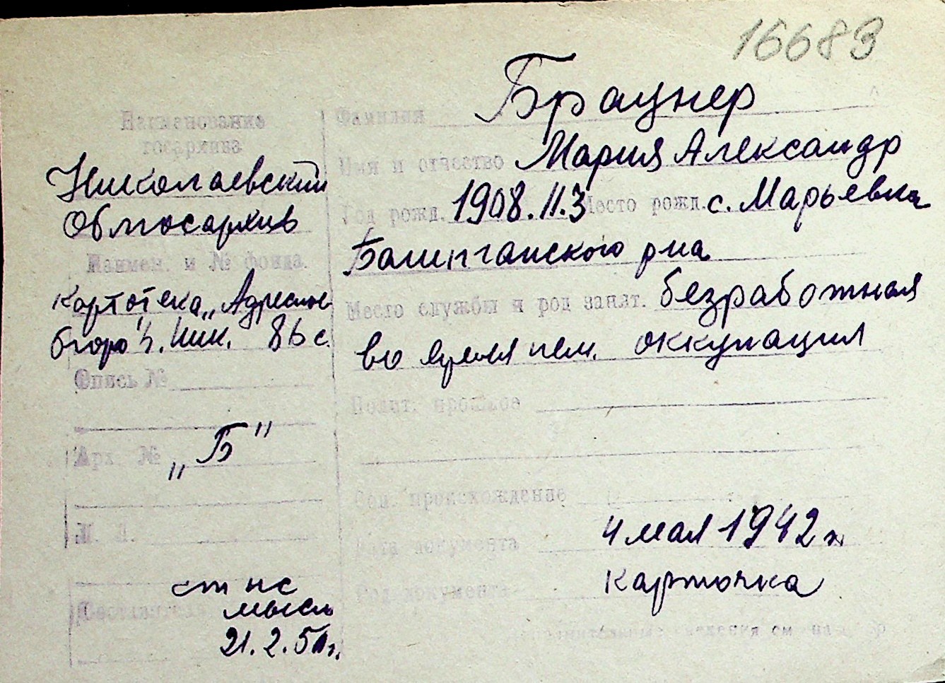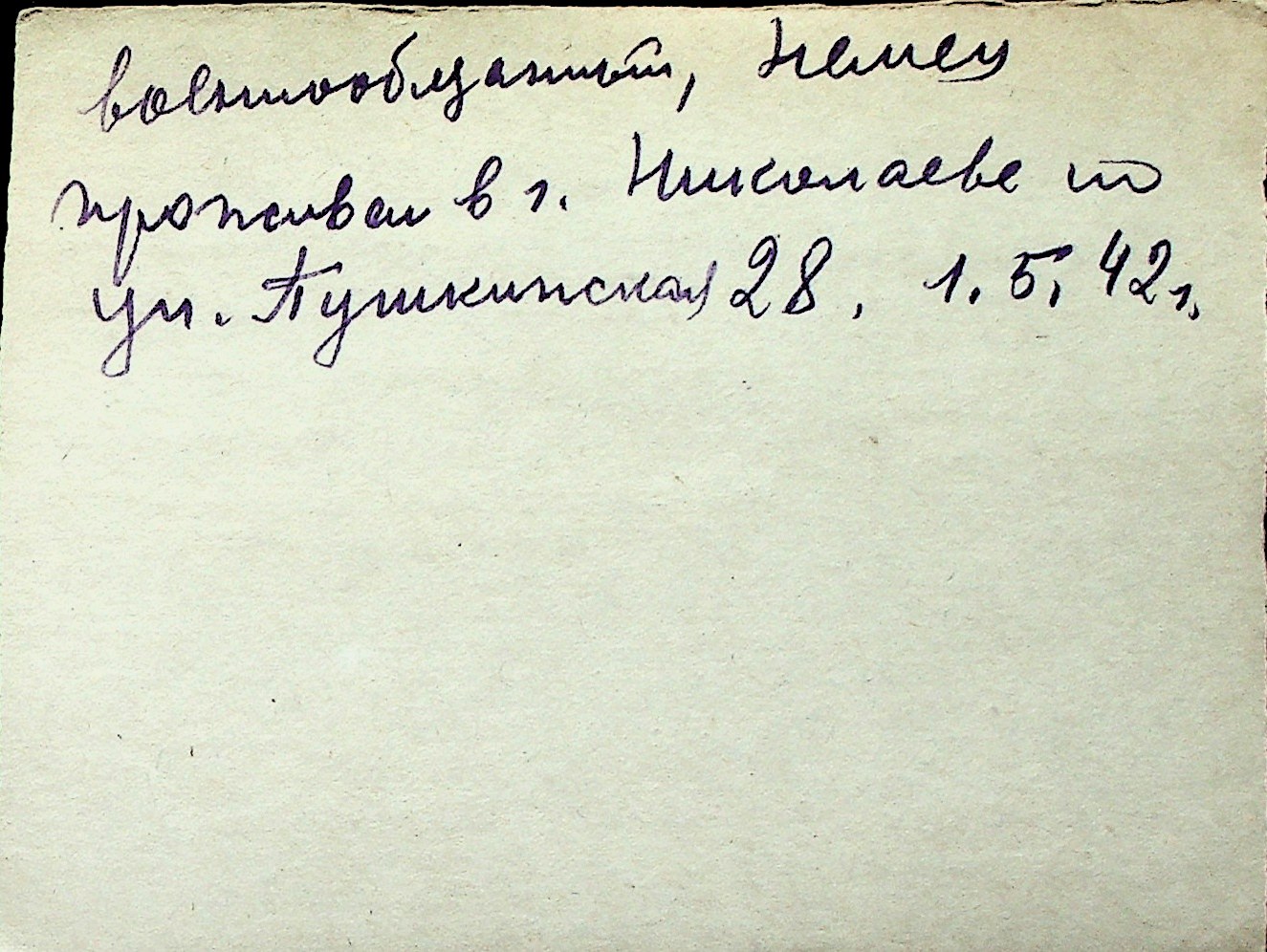 ◦ ◦ Перелік карток на осіб, які мешкали у м. Миколаїв у період окупації 1941–1944 років