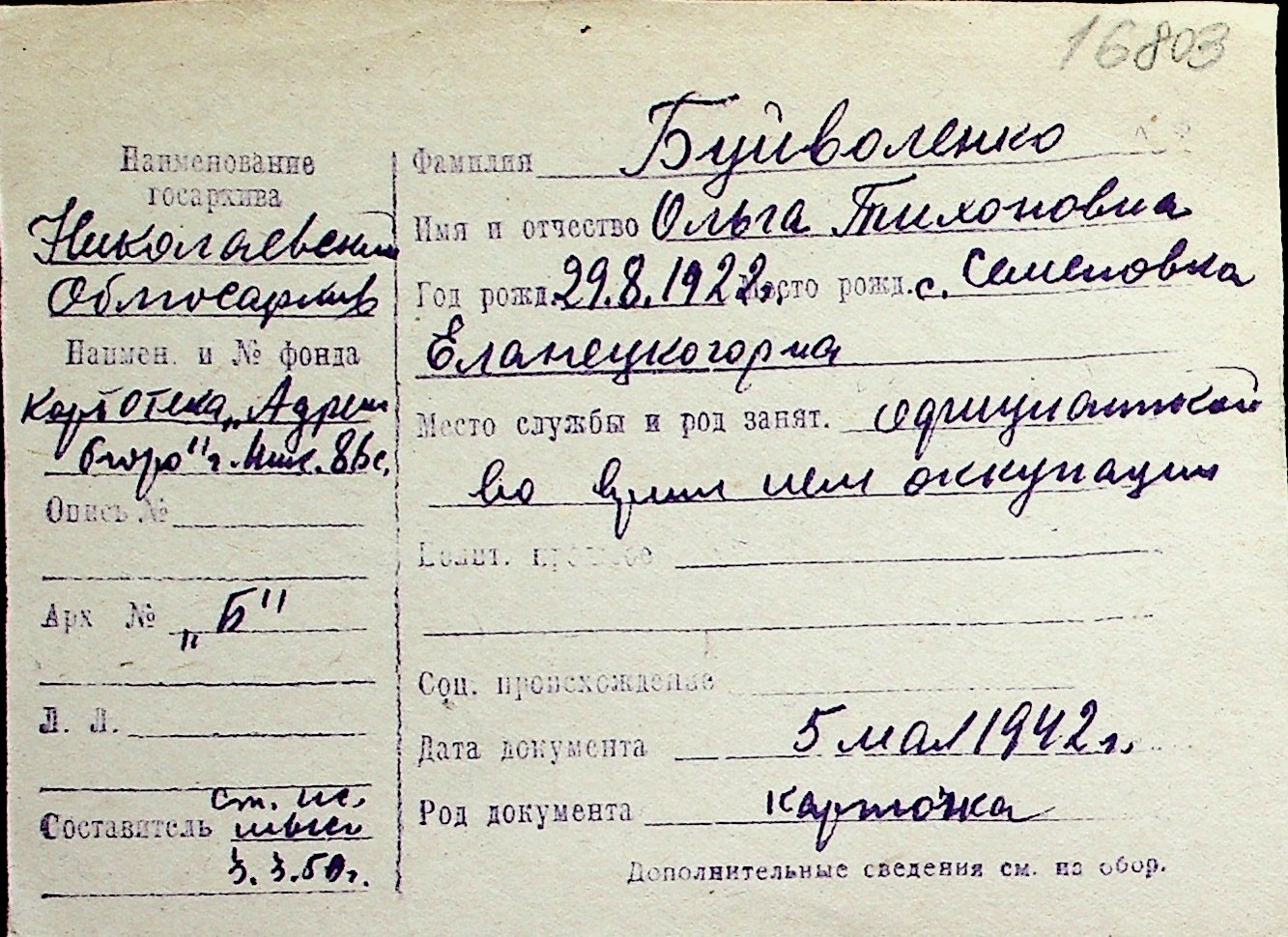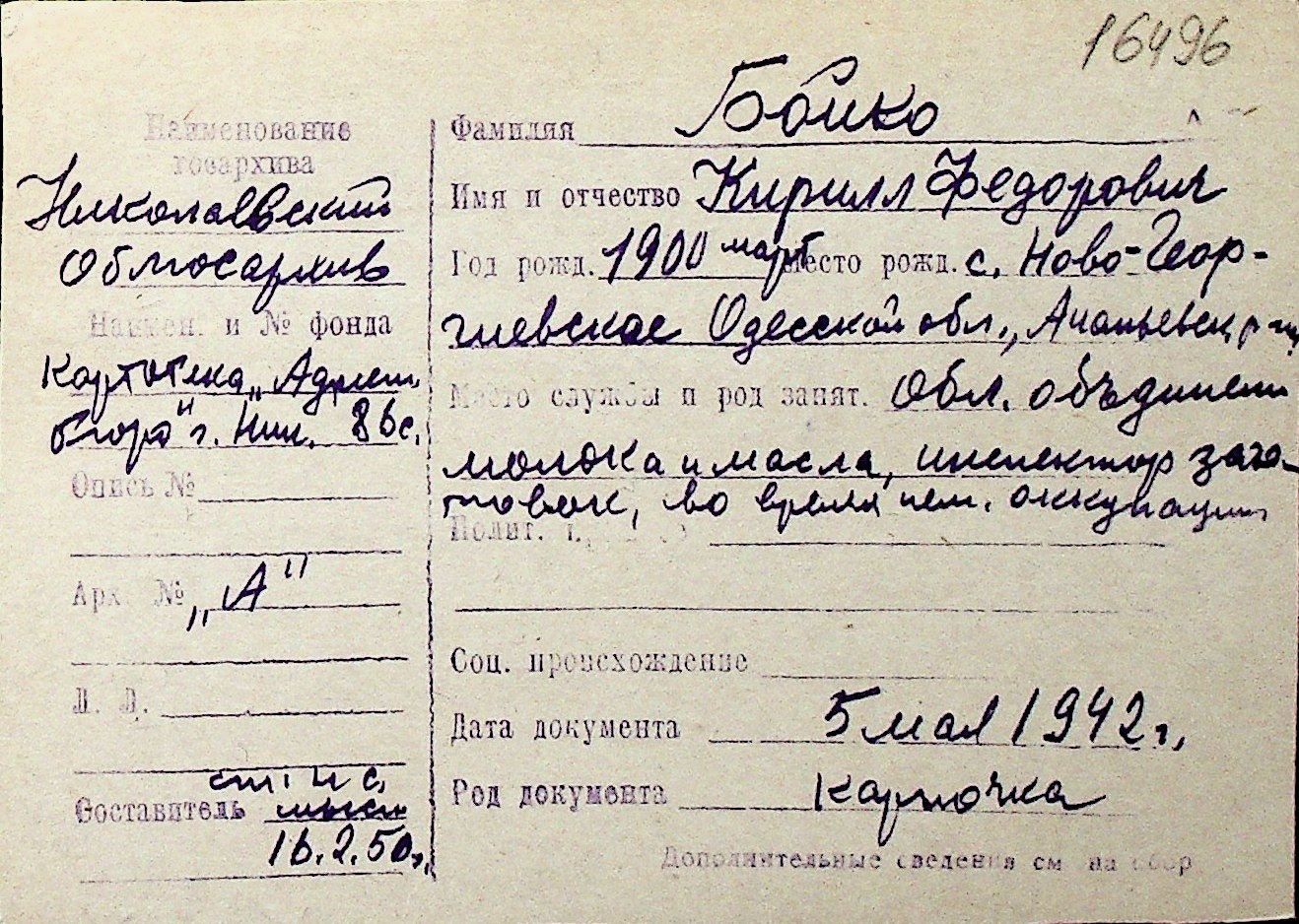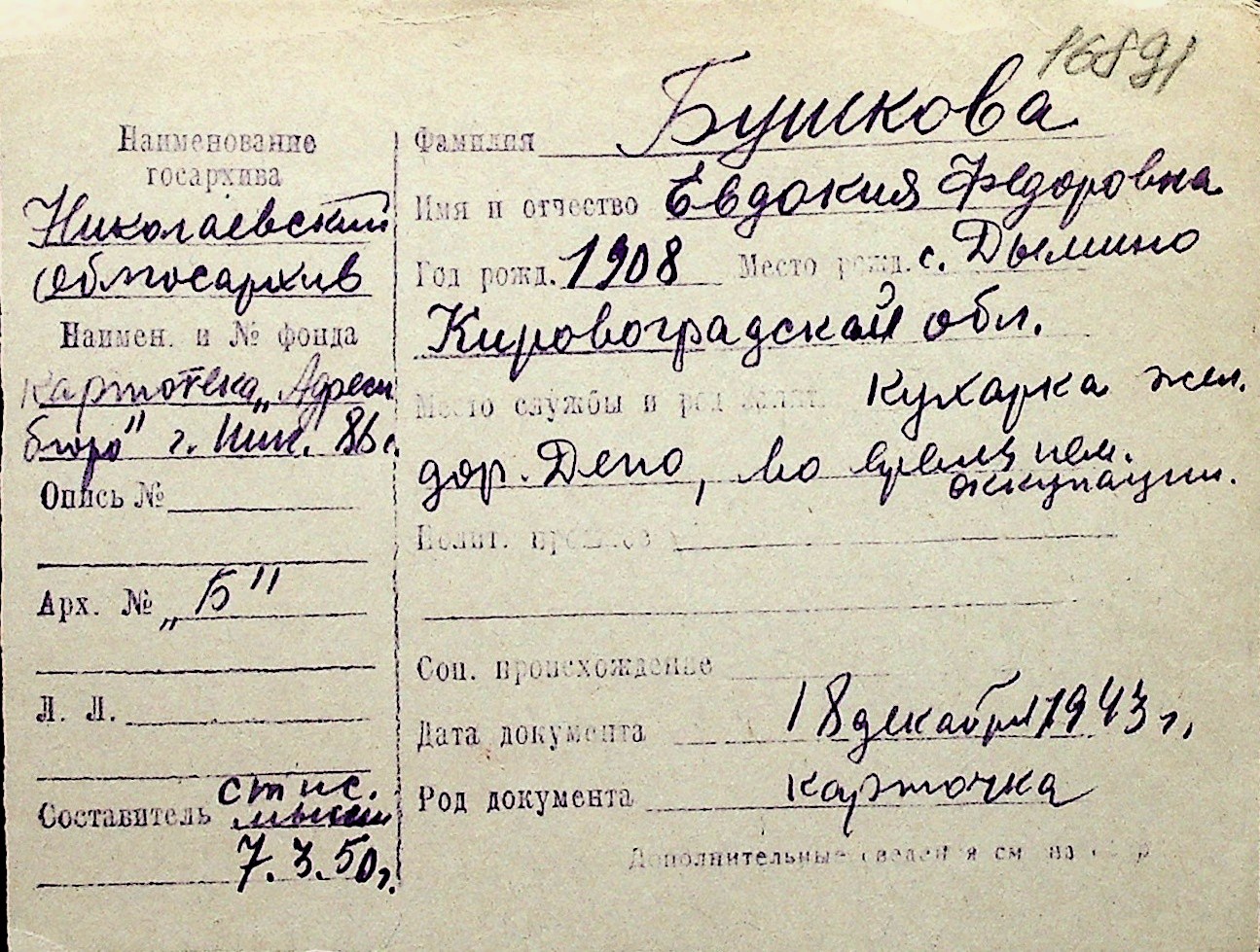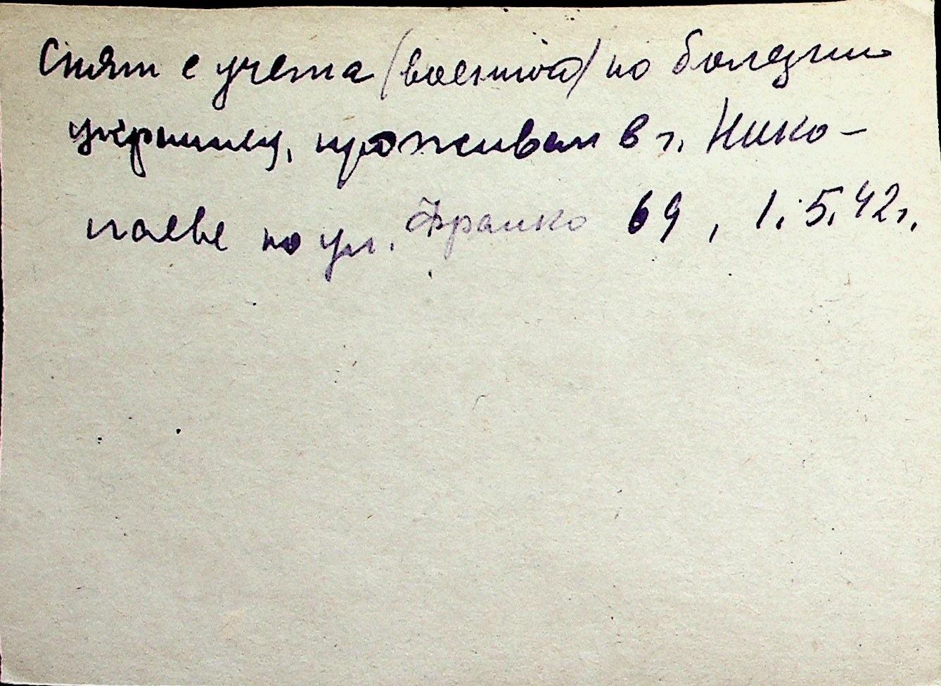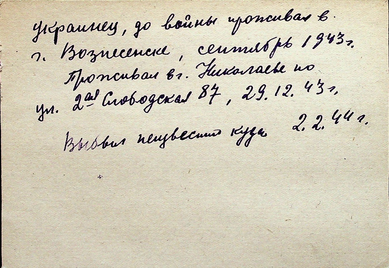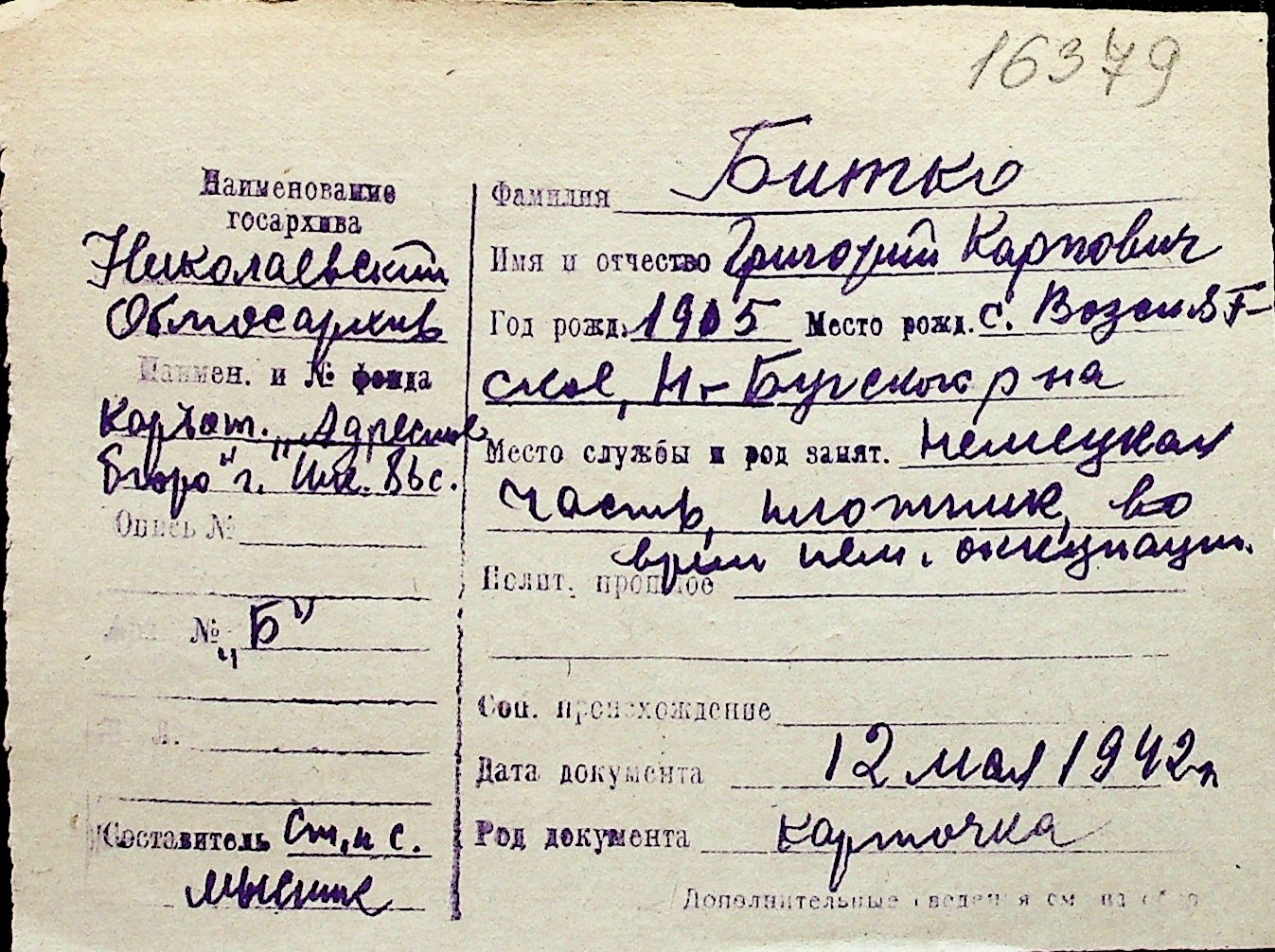 ◦ ◦ Перелік карток на осіб, які мешкали у м. Миколаїв у період окупації 1941–1944 років