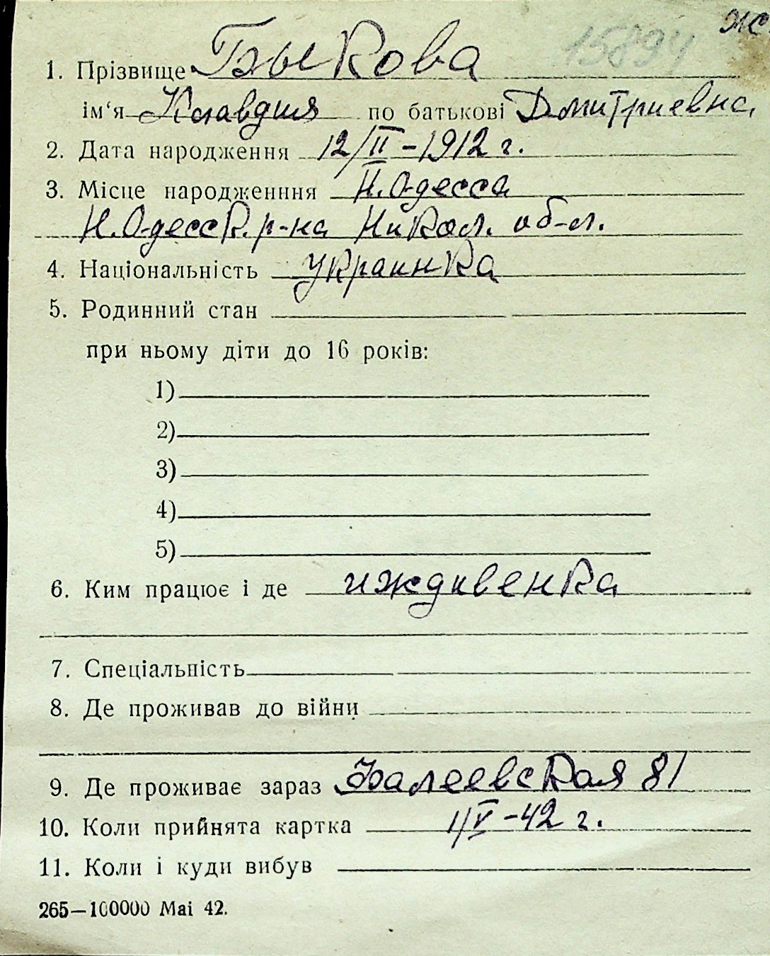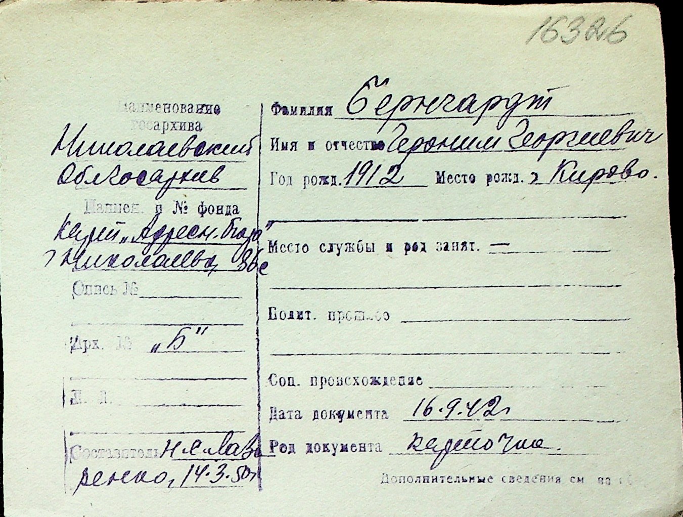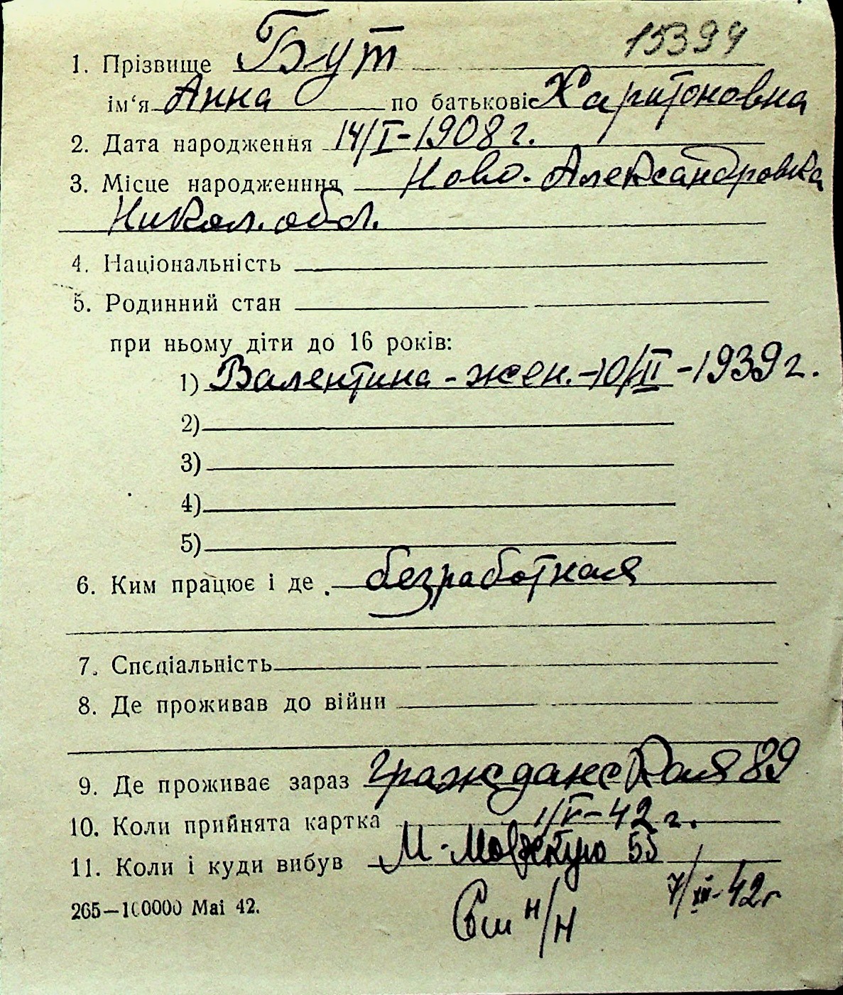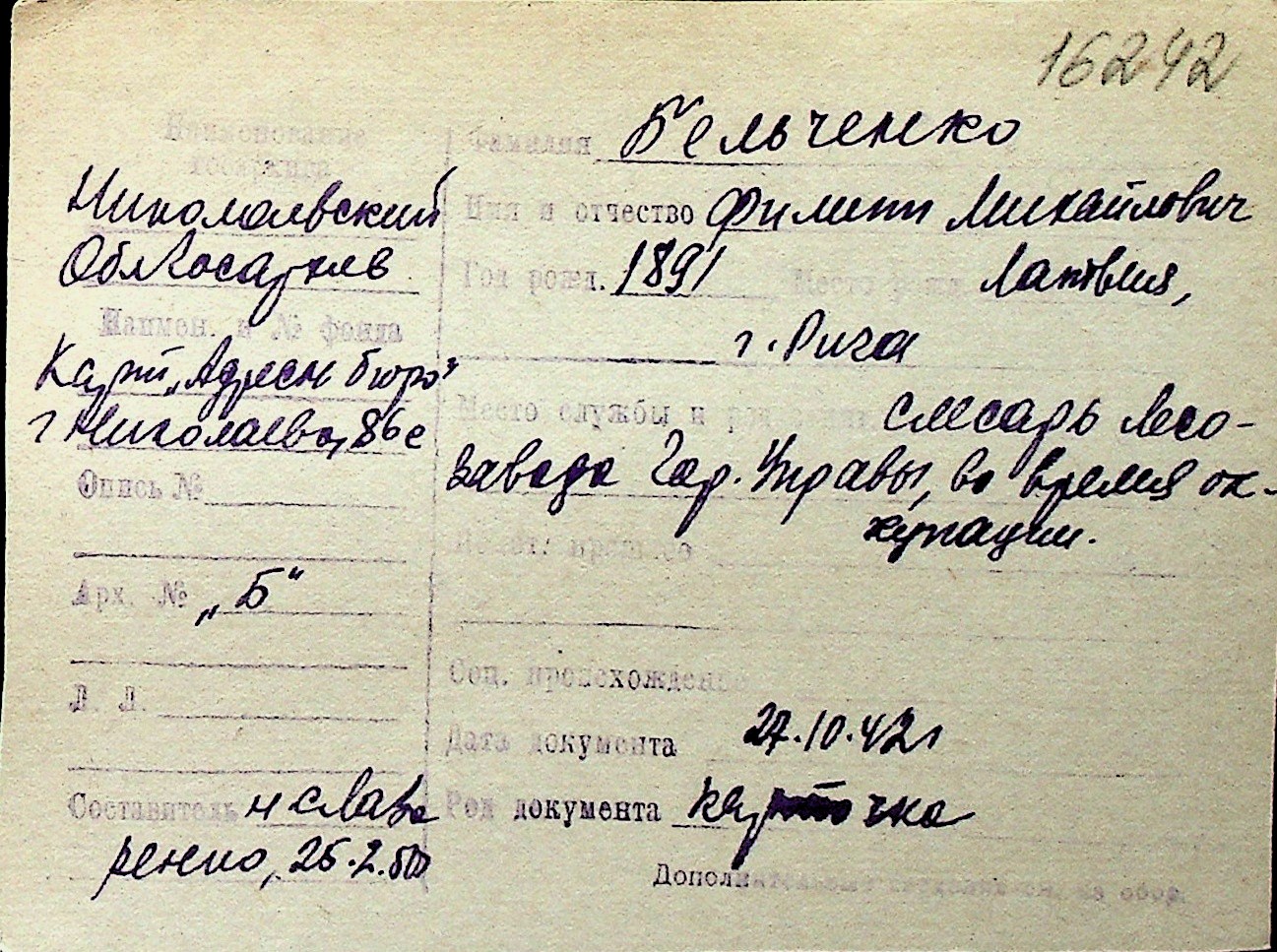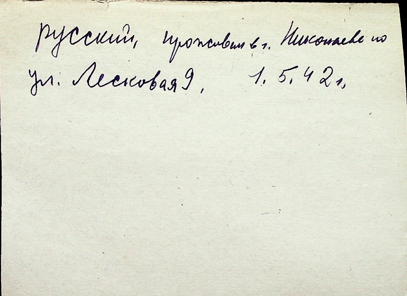 ◦ ◦ Перелік карток на осіб, які мешкали у м. Миколаїв у період окупації 1941–1944 років
