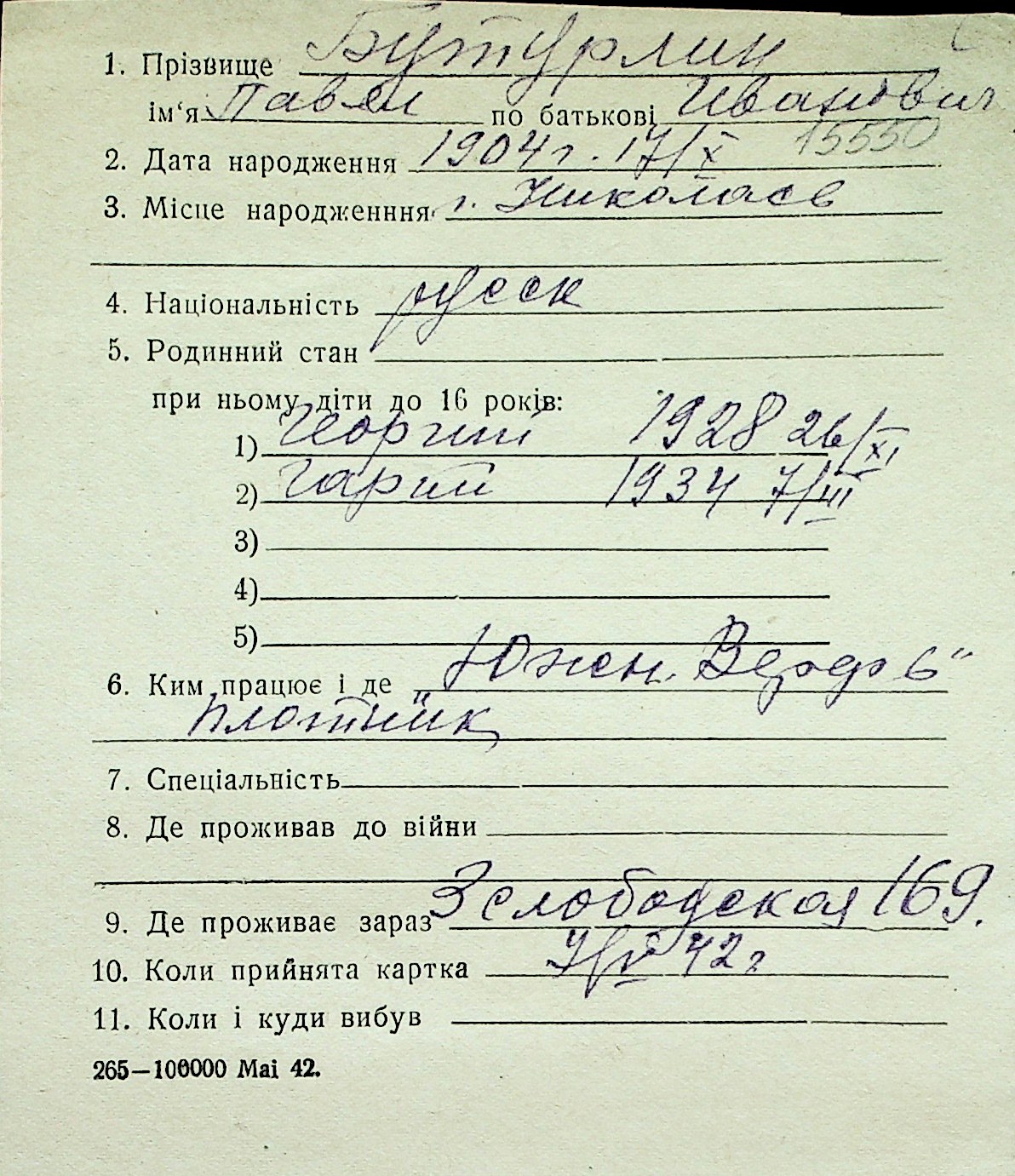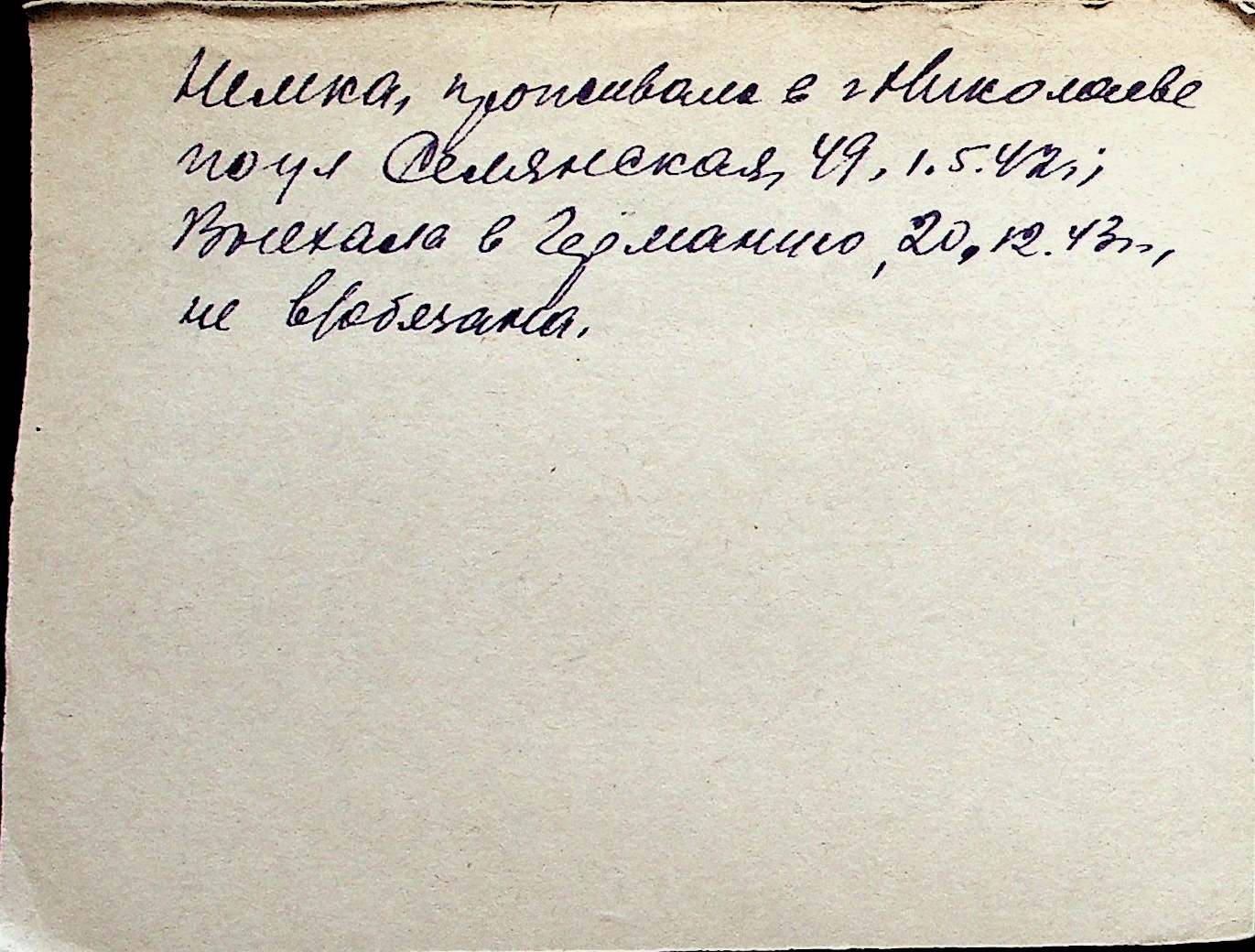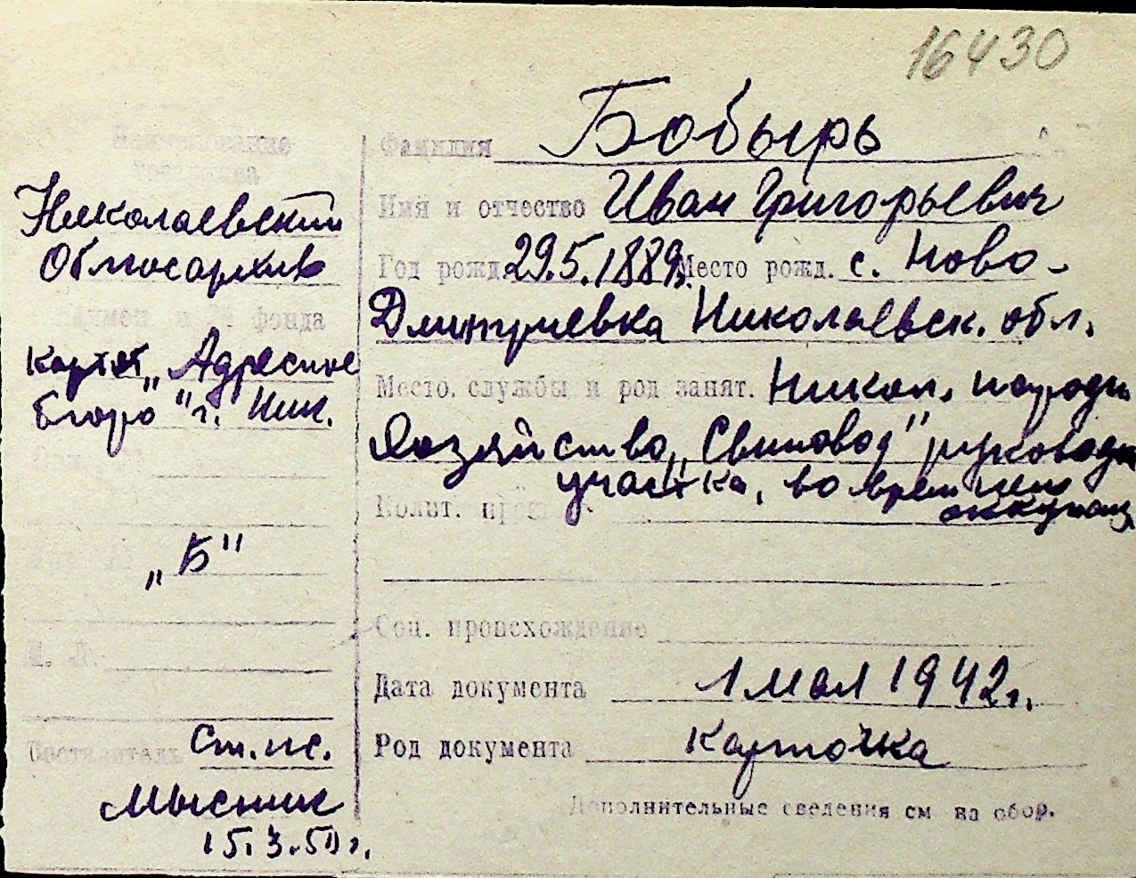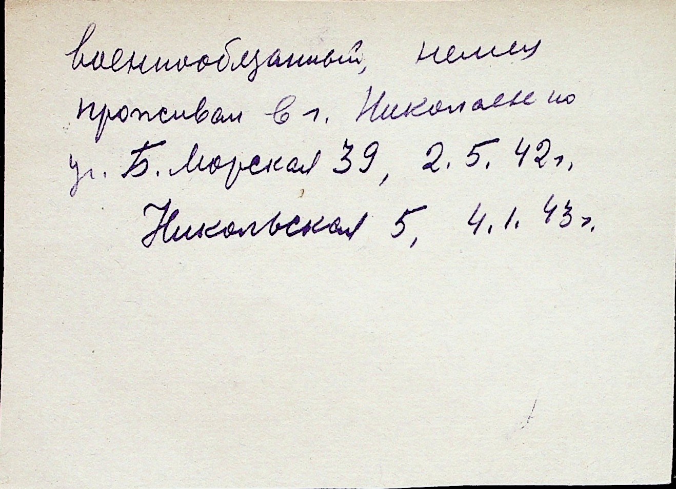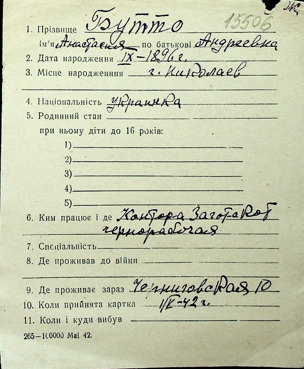 ◦ ◦ Перелік карток на осіб, які мешкали у м. Миколаїв у період окупації 1941–1944 років