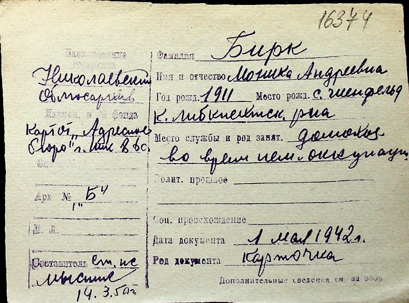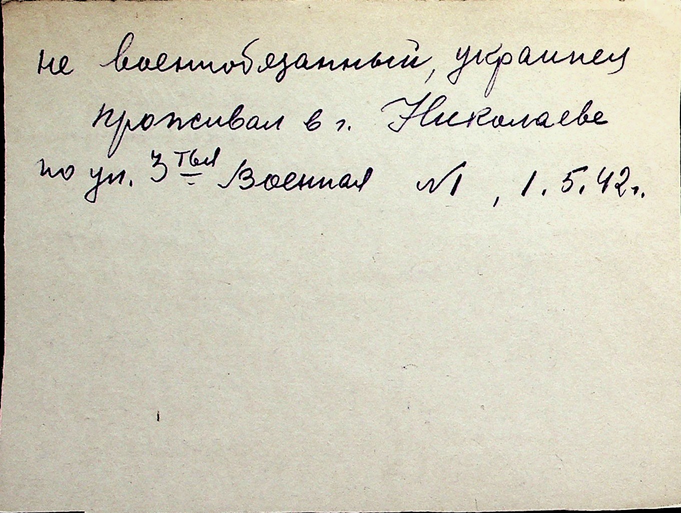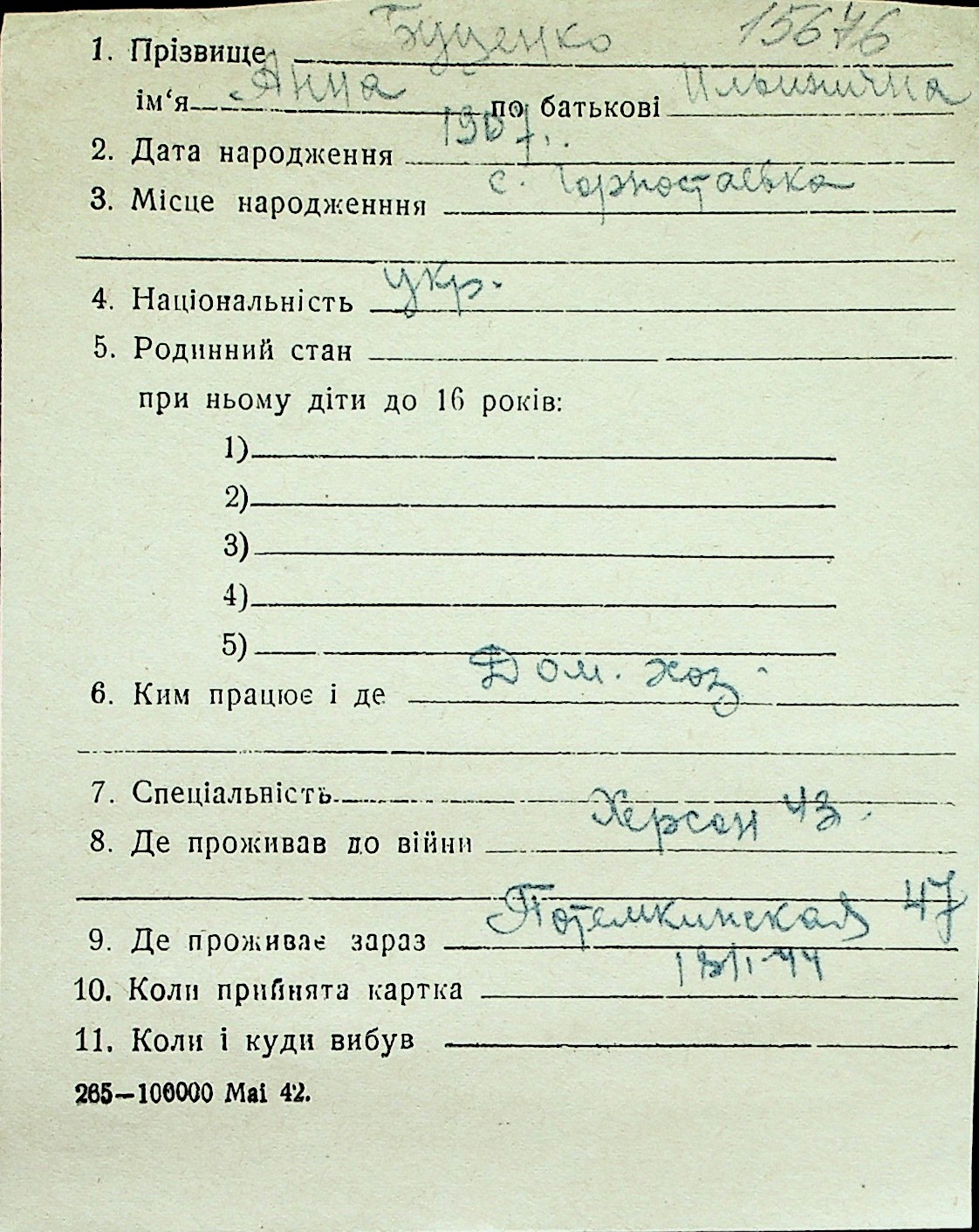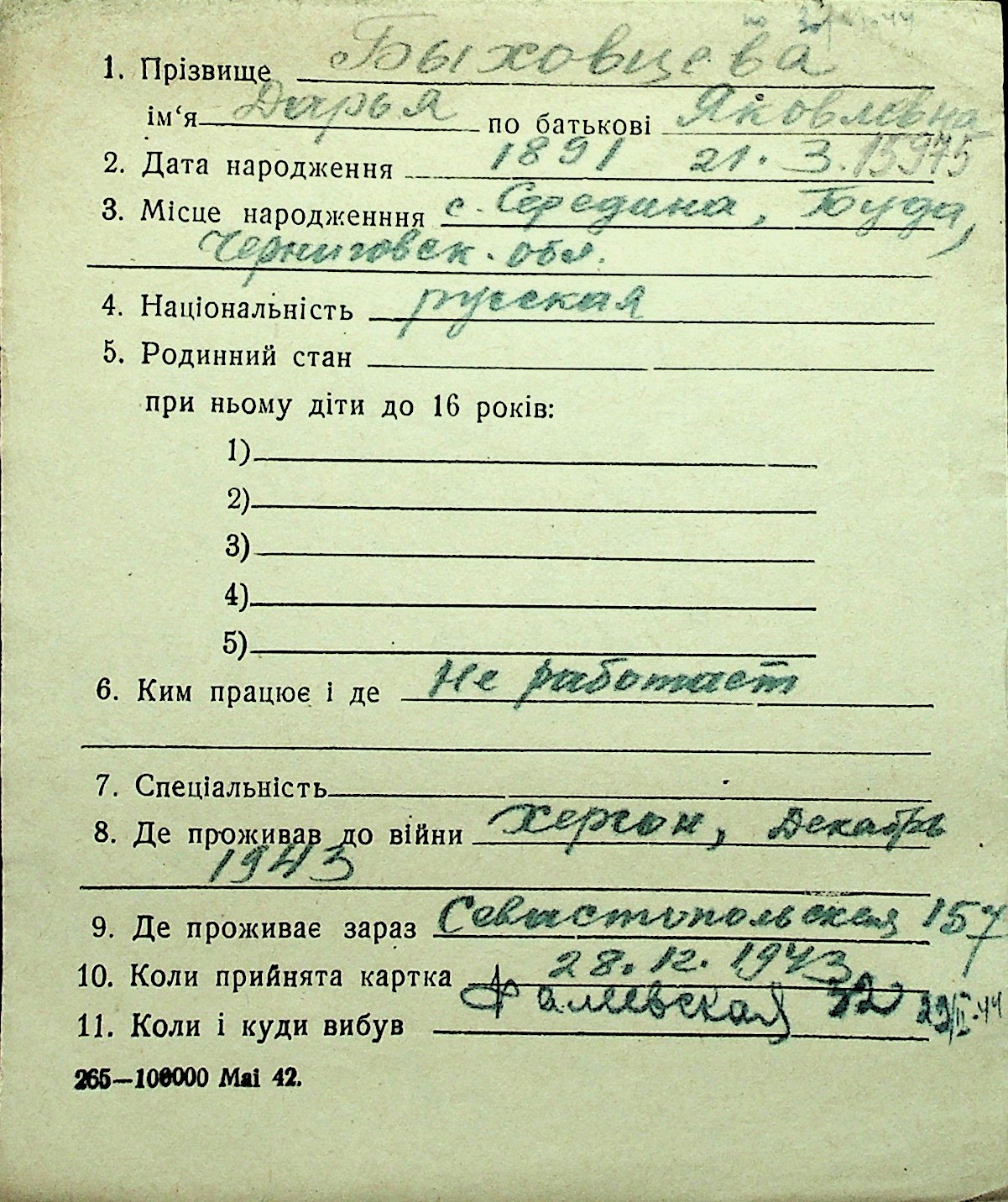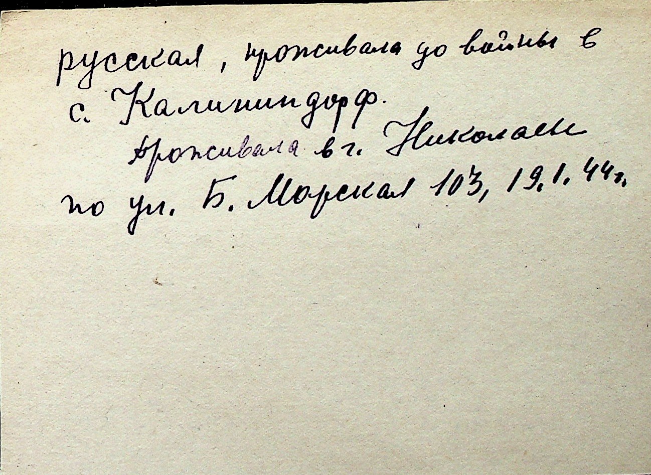 ◦ ◦ Перелік карток на осіб, які мешкали у м. Миколаїв у період окупації 1941–1944 років