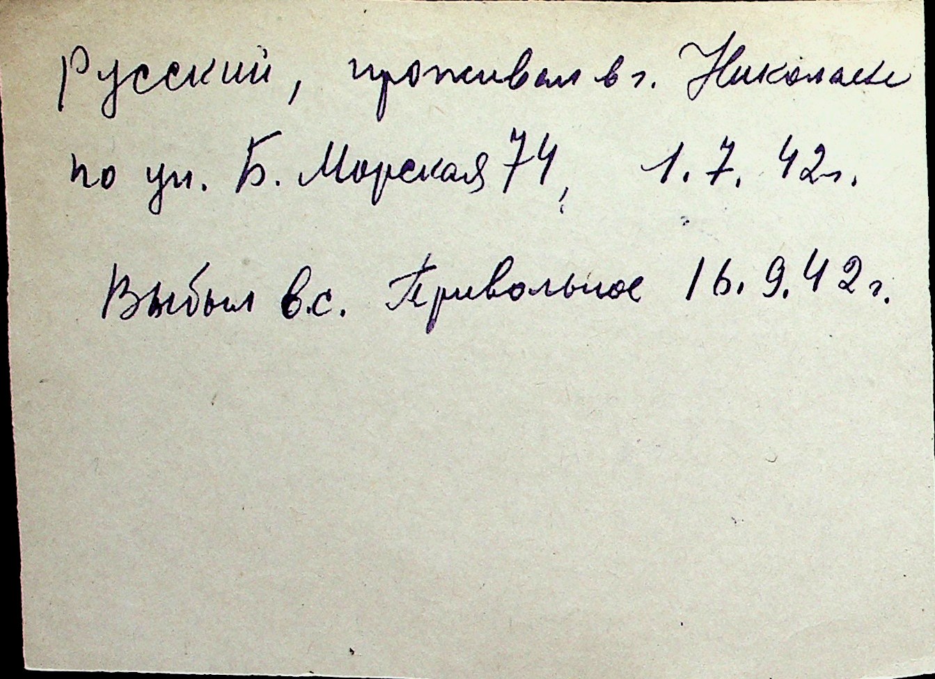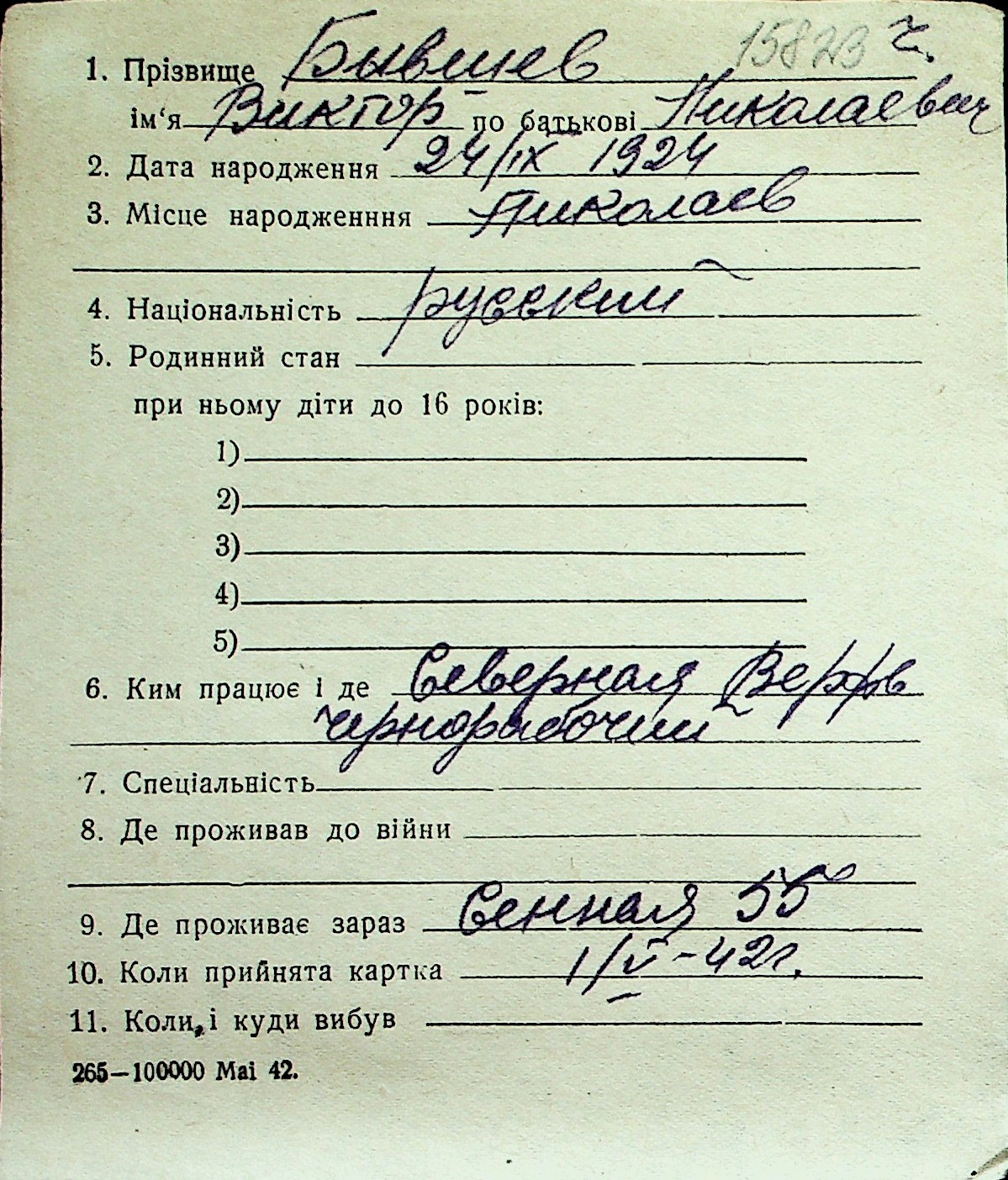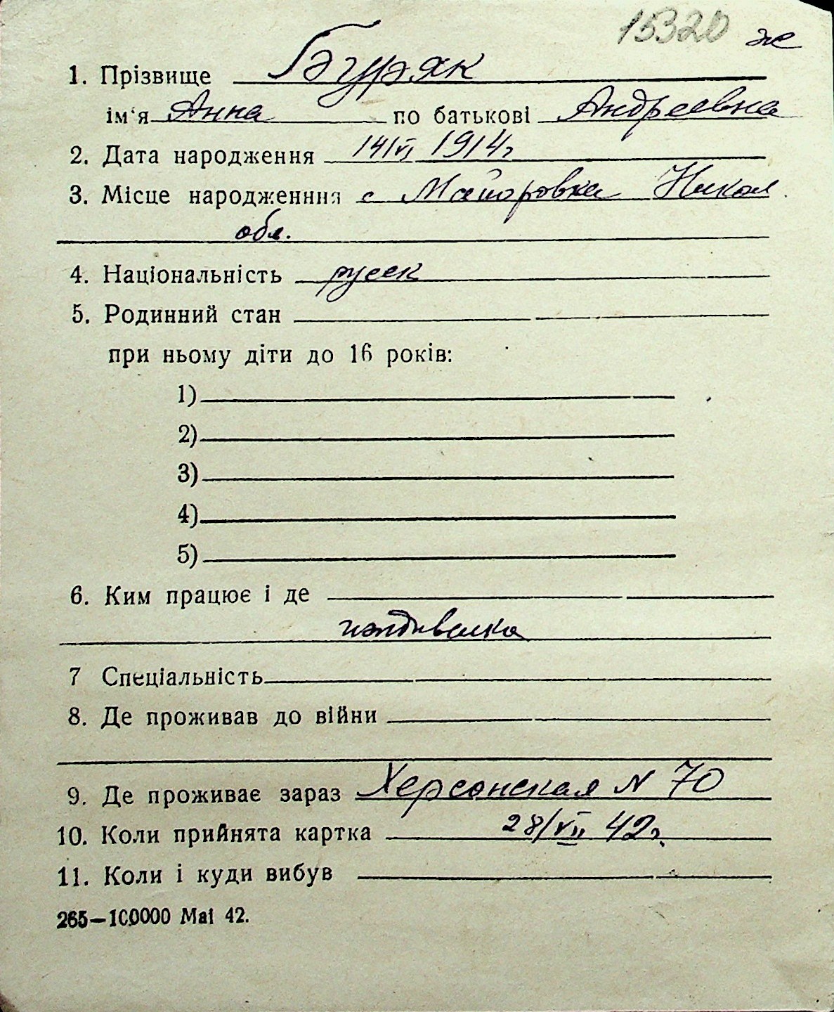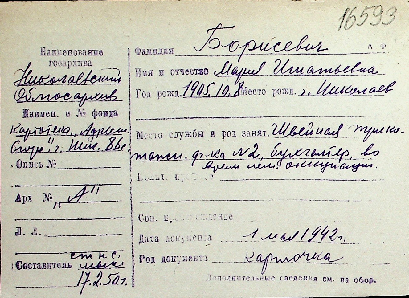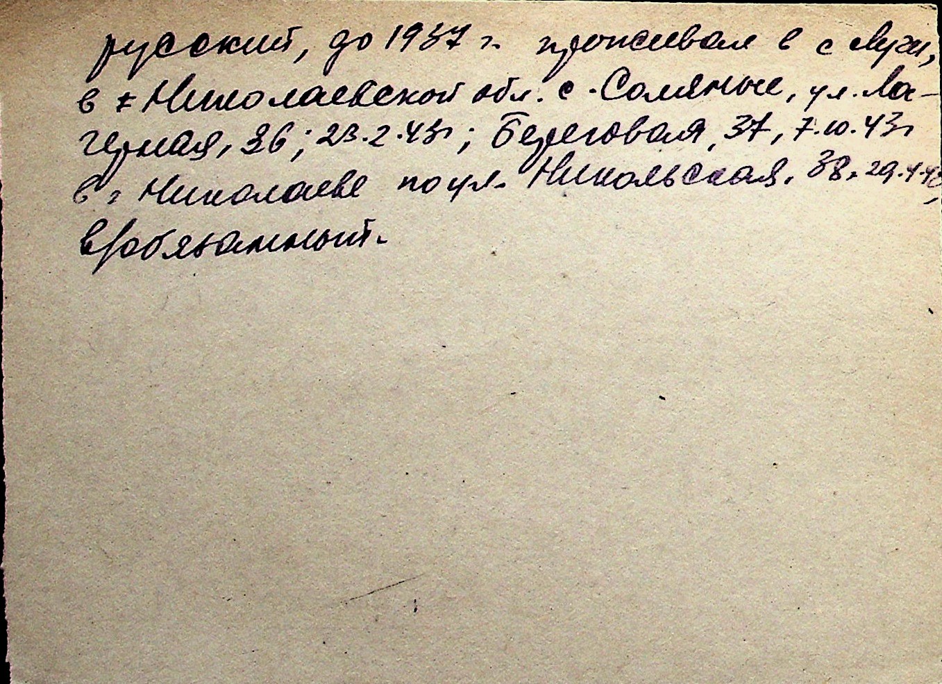 ◦ ◦ Перелік карток на осіб, які мешкали у м. Миколаїв у період окупації 1941–1944 років