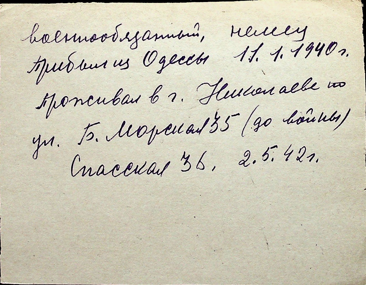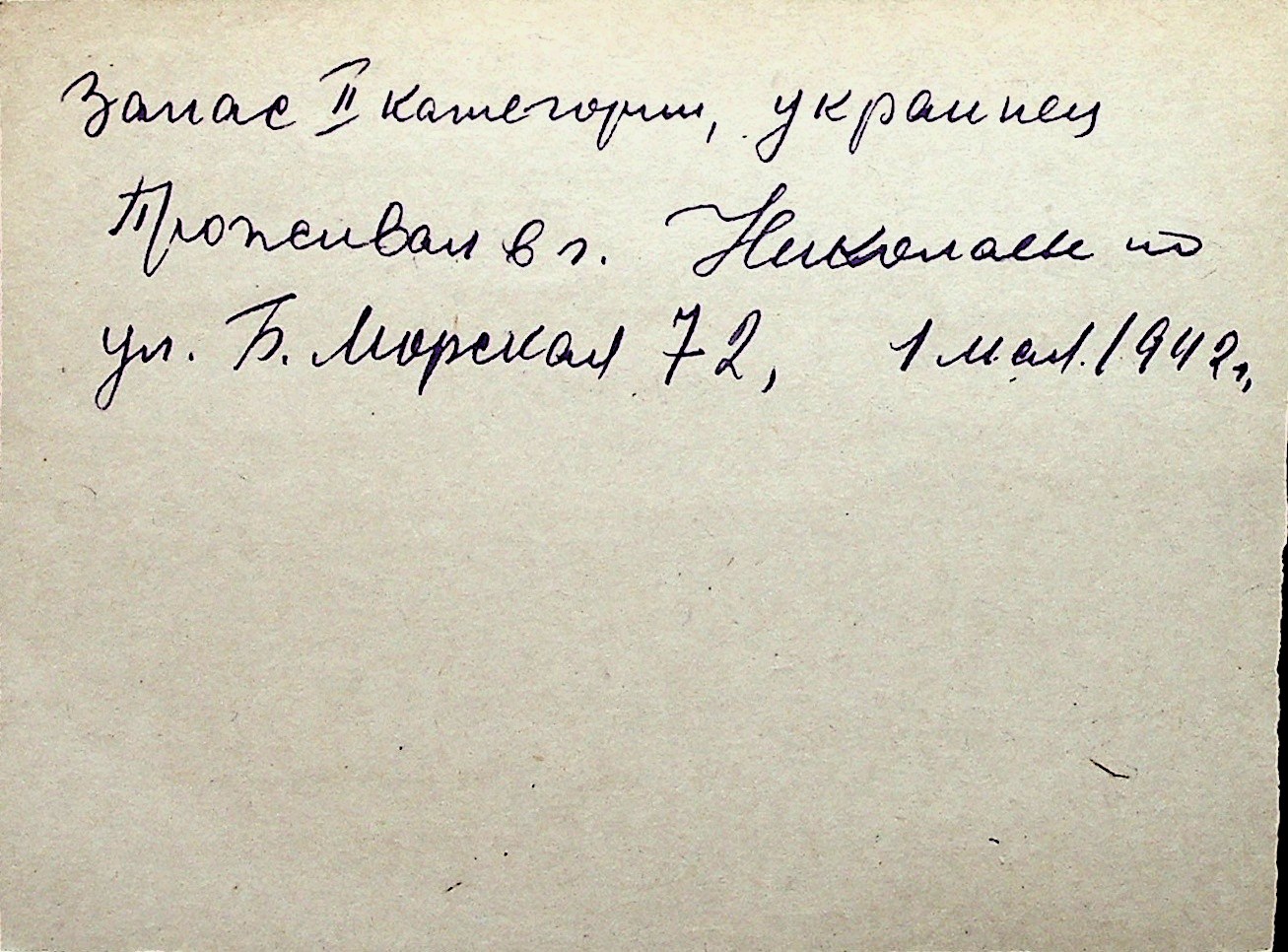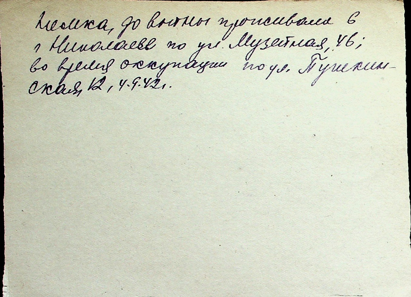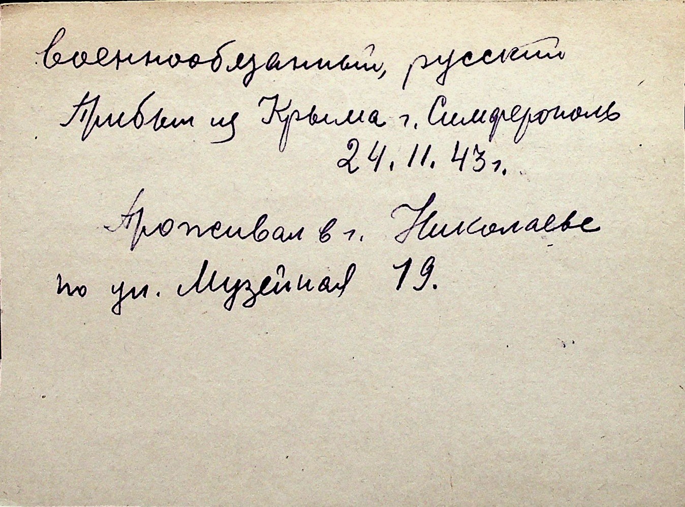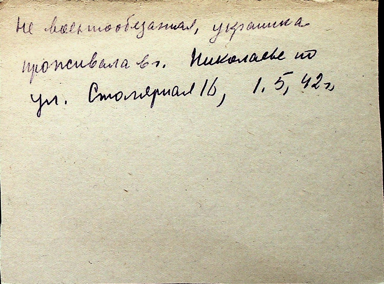 ◦ ◦ Перелік карток на осіб, які мешкали у м. Миколаїв у період окупації 1941–1944 років