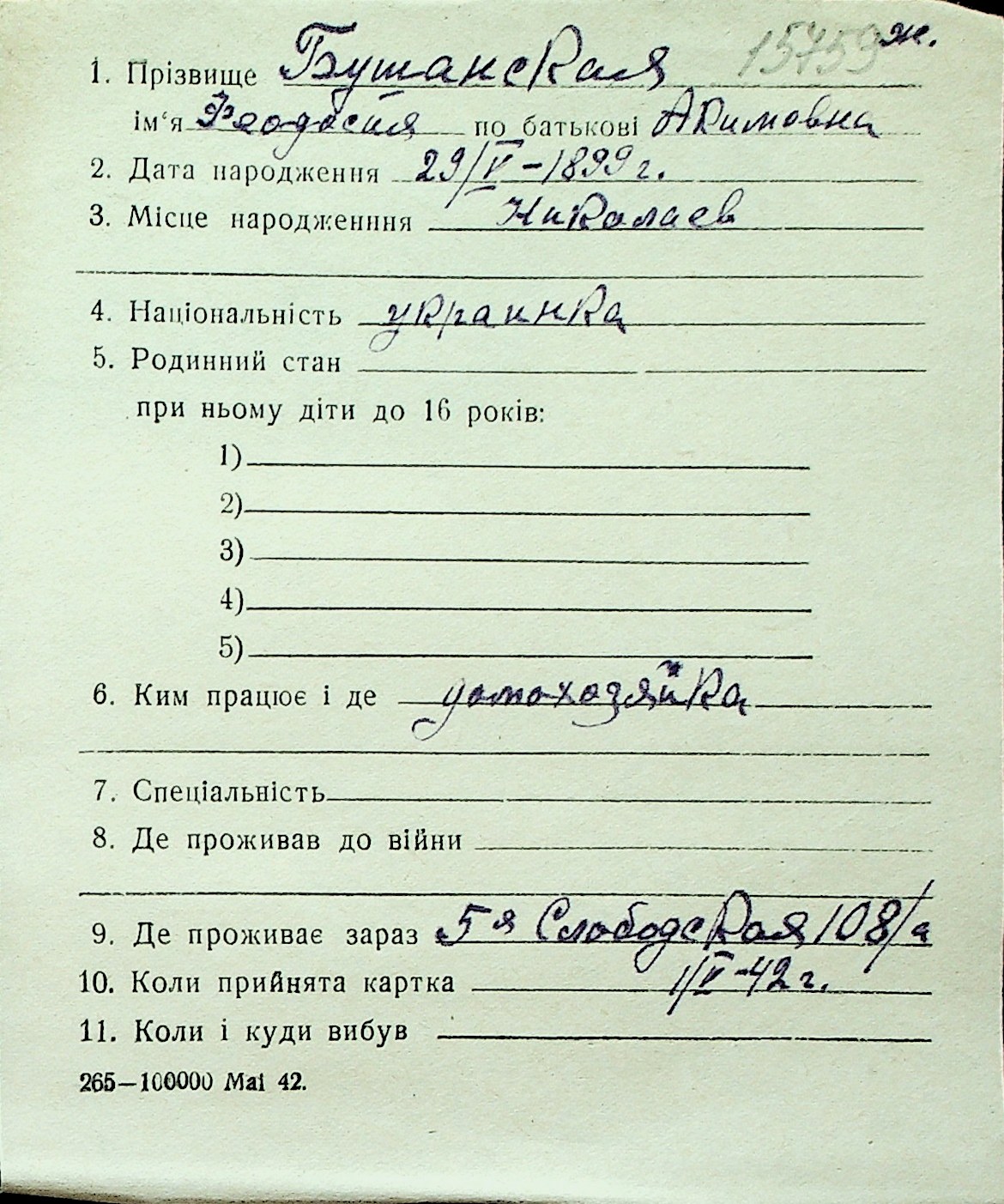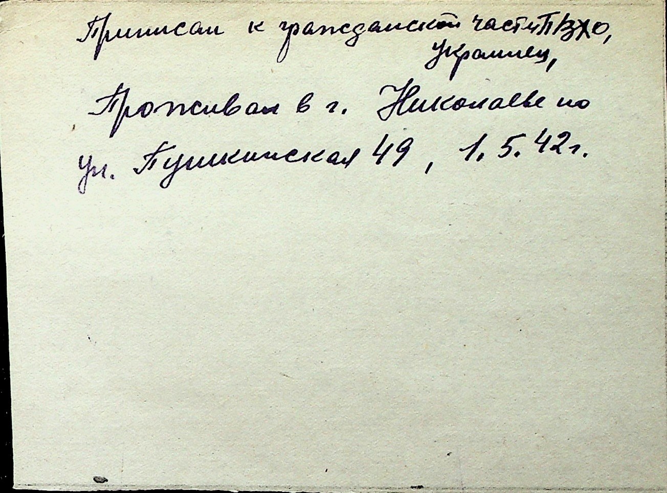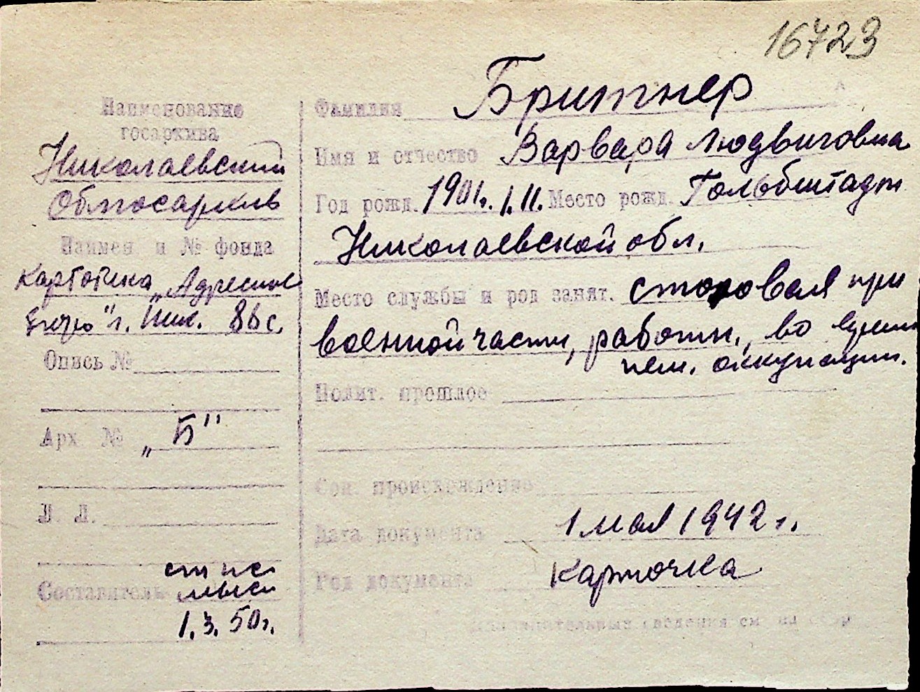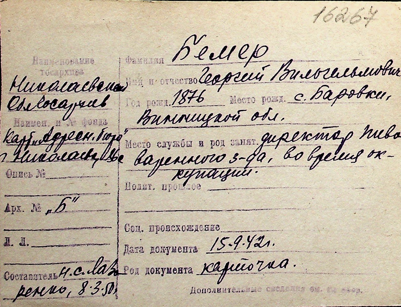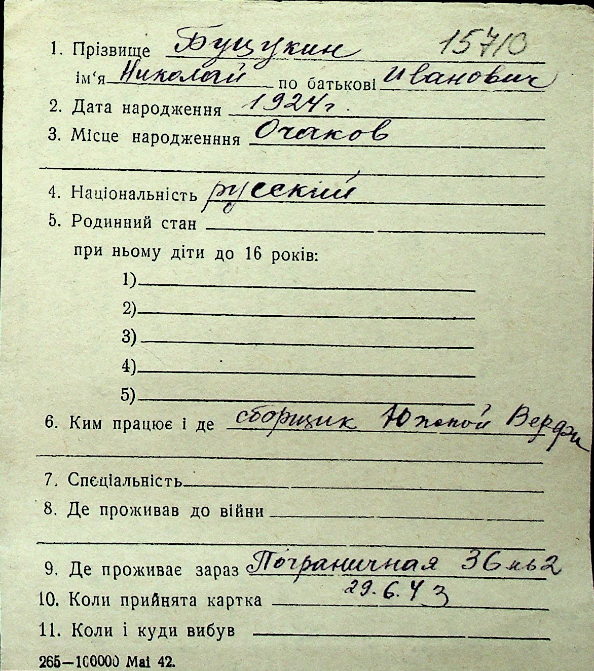 ◦ ◦ Перелік карток на осіб, які мешкали у м. Миколаїв у період окупації 1941–1944 років