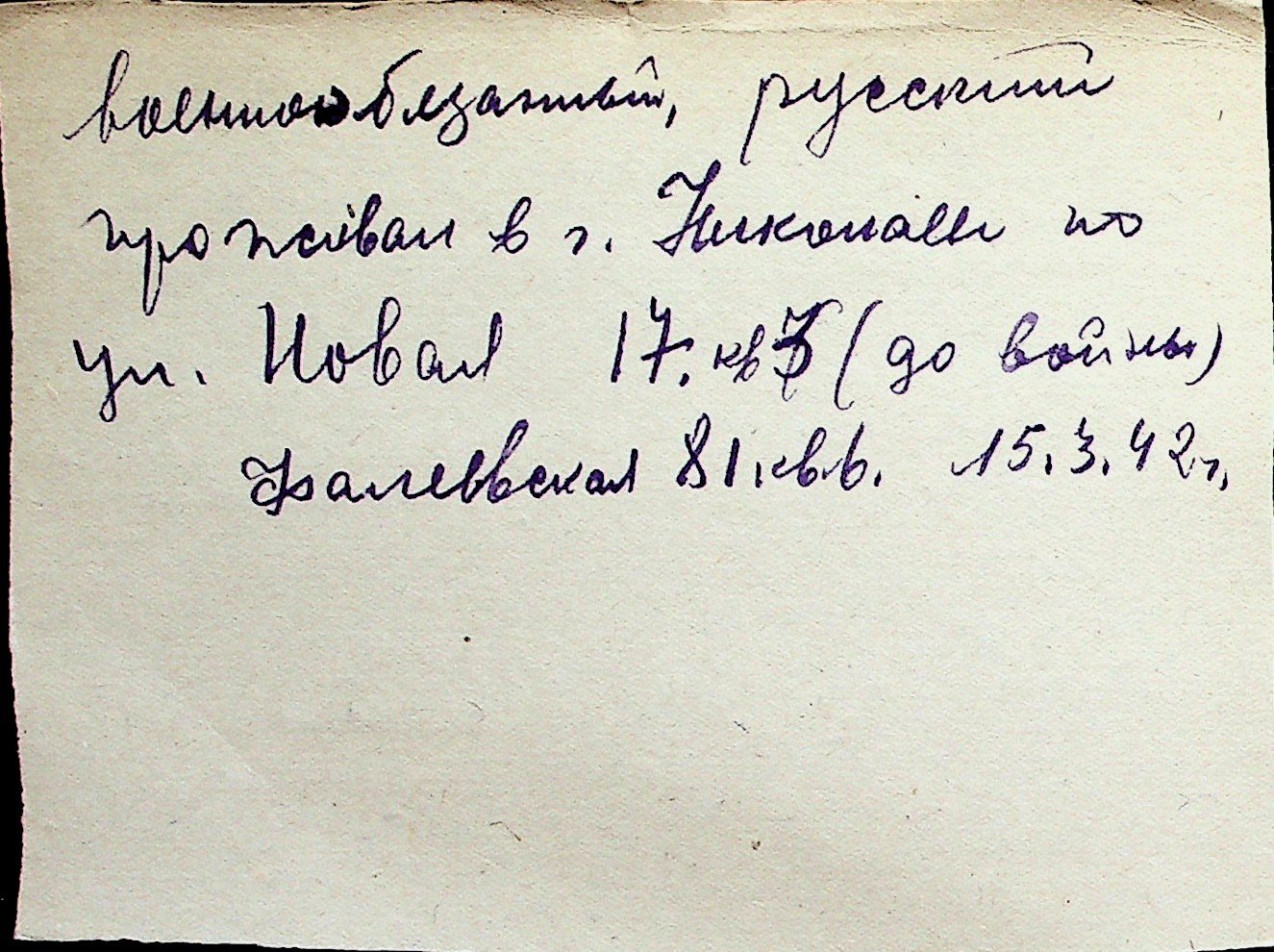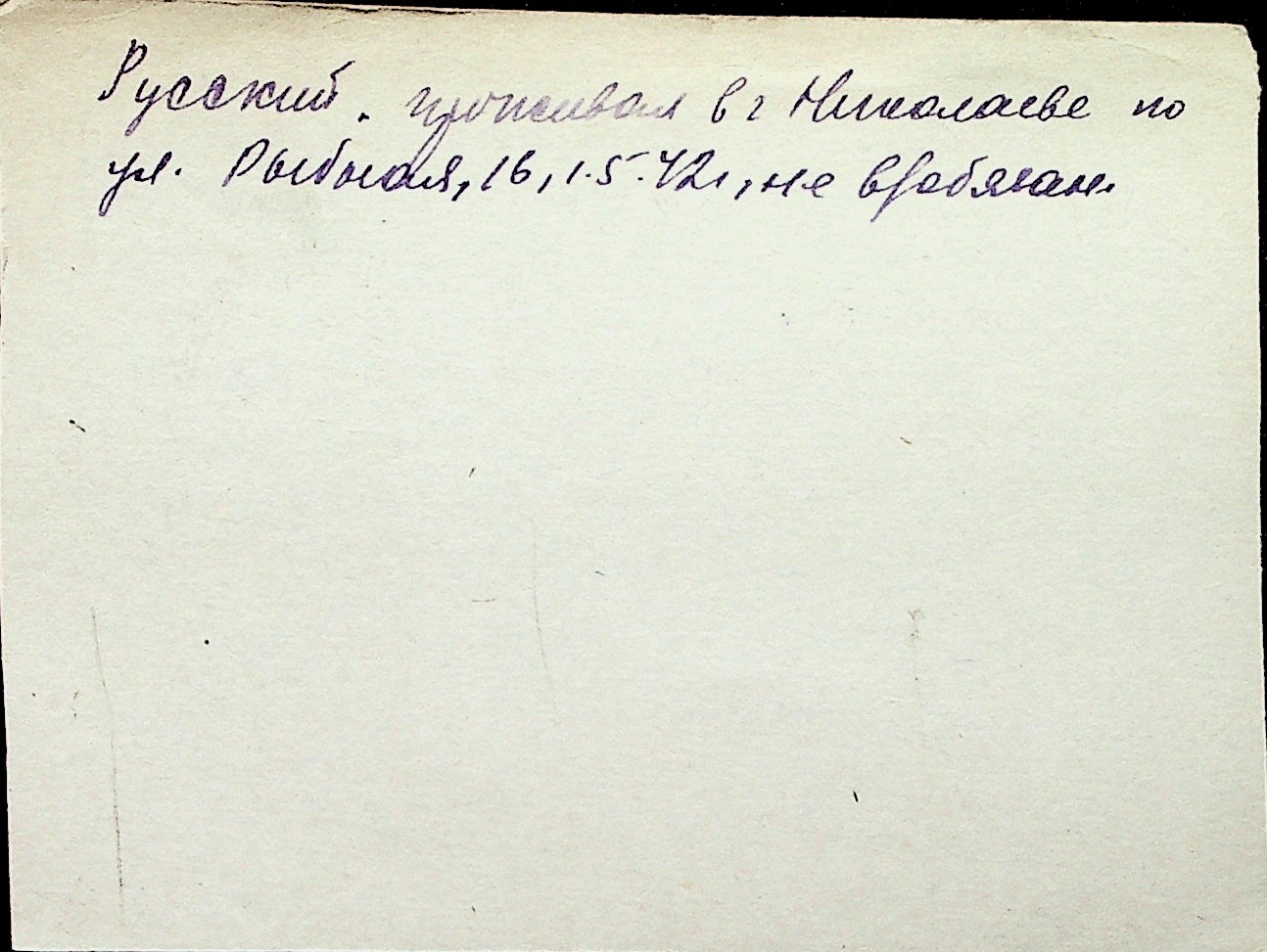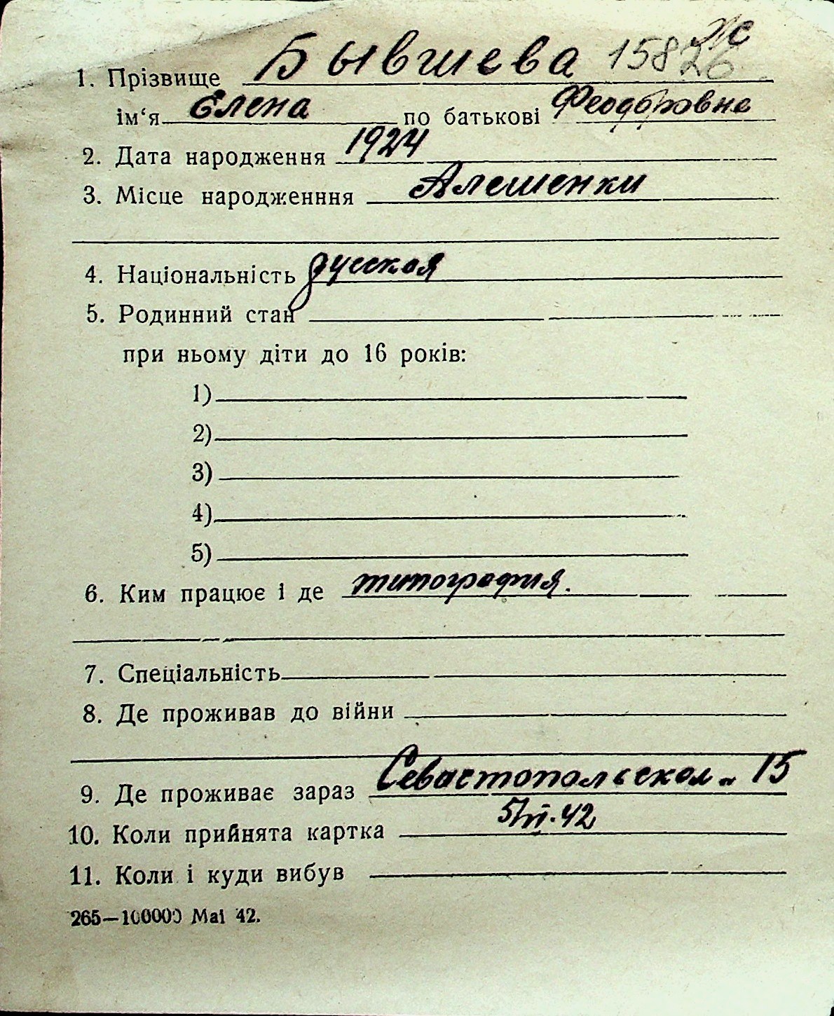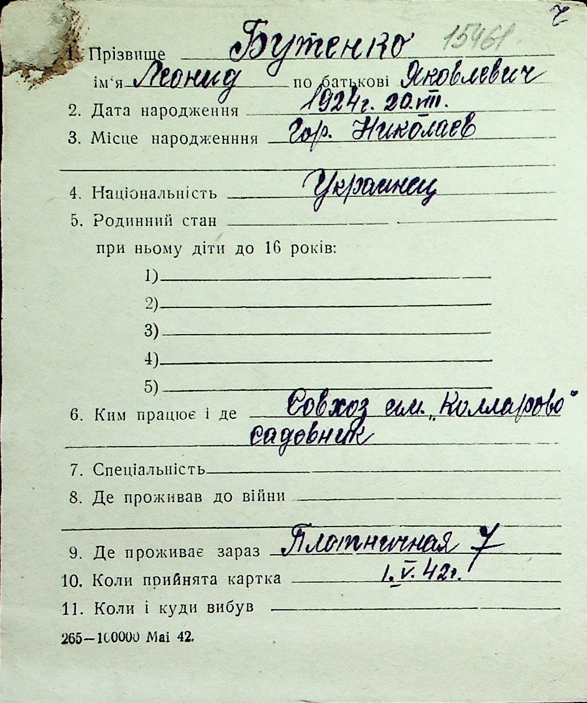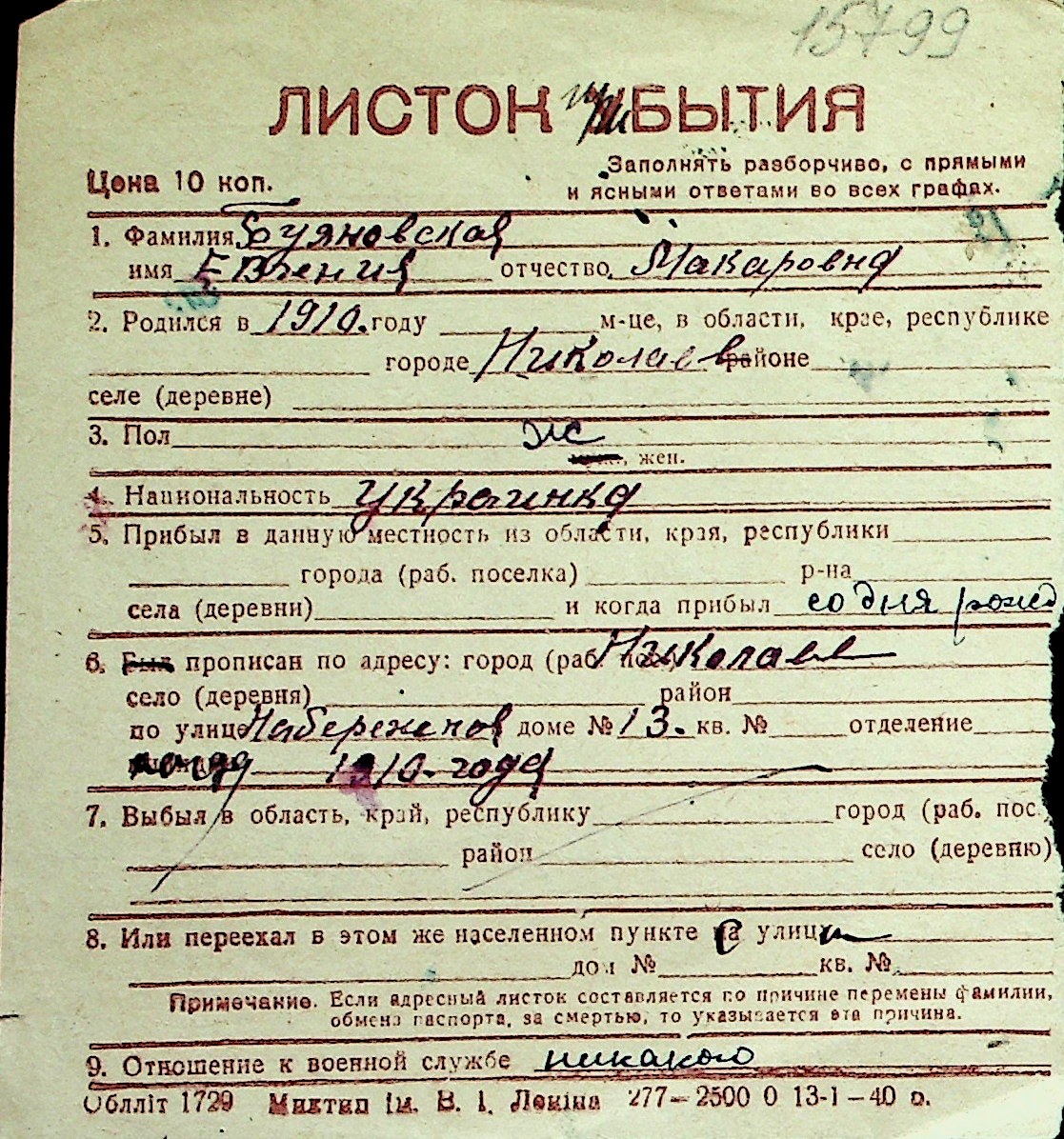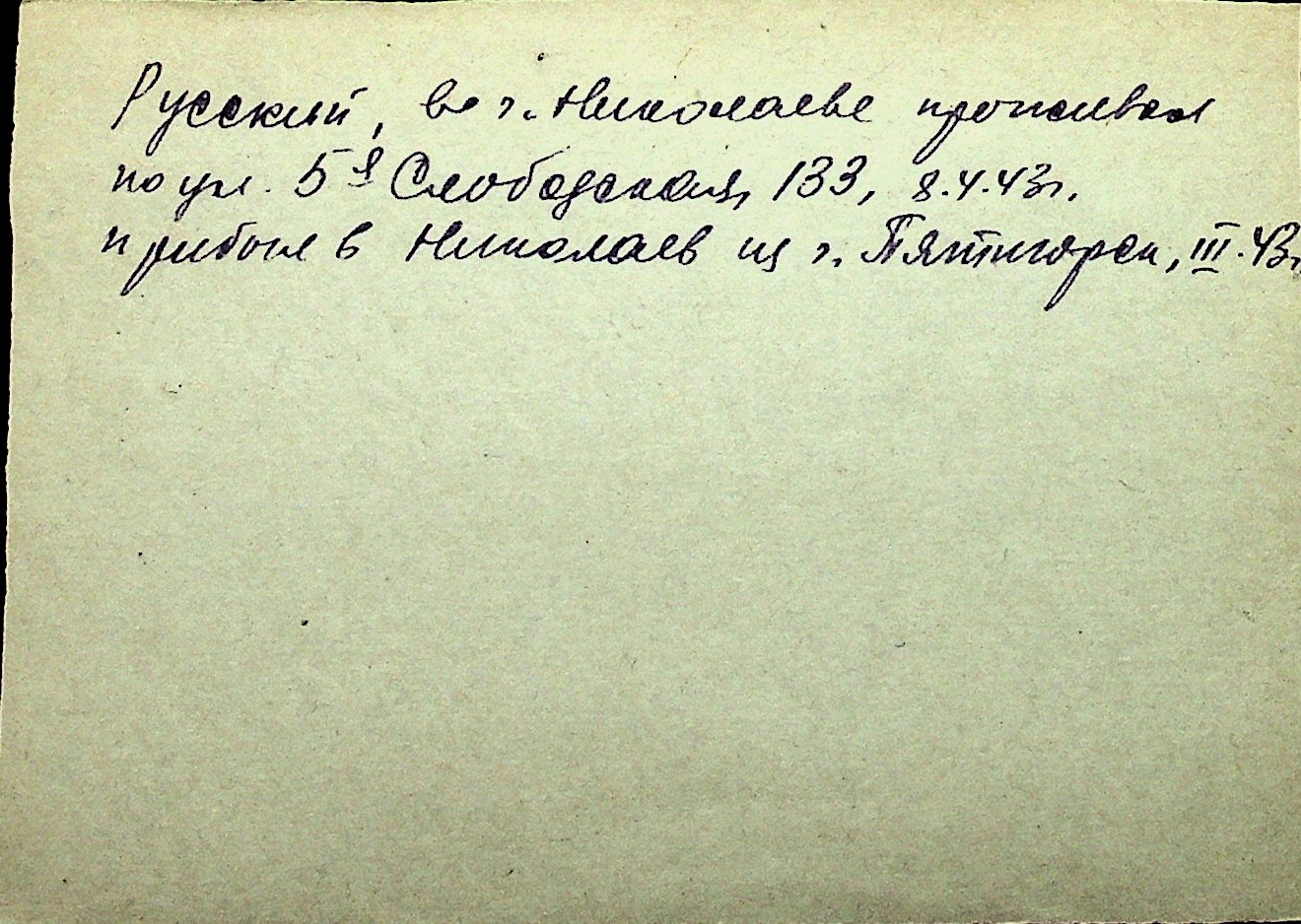◦ ◦ Перелік карток на осіб, які мешкали у м. Миколаїв у період окупації 1941–1944 років