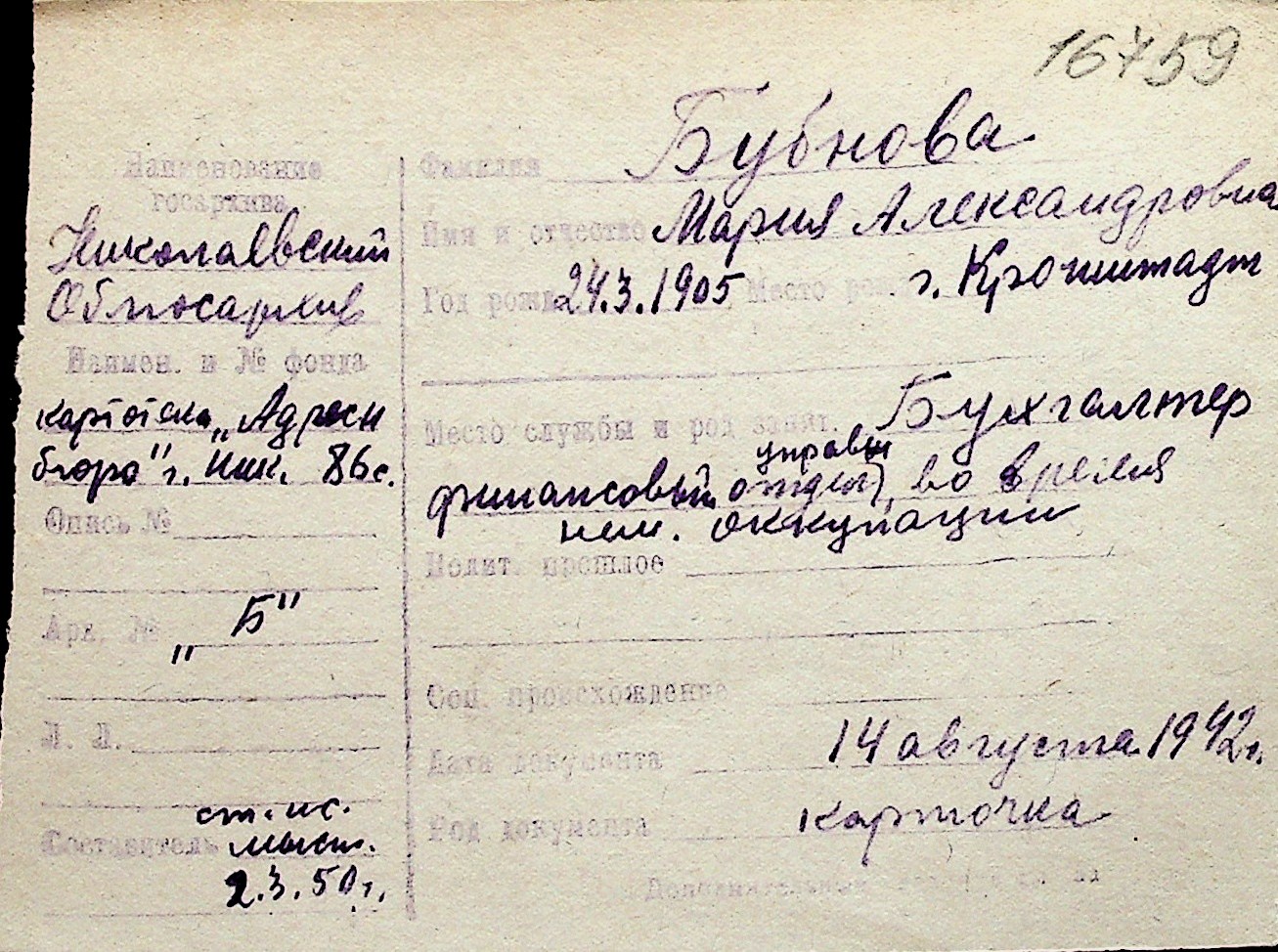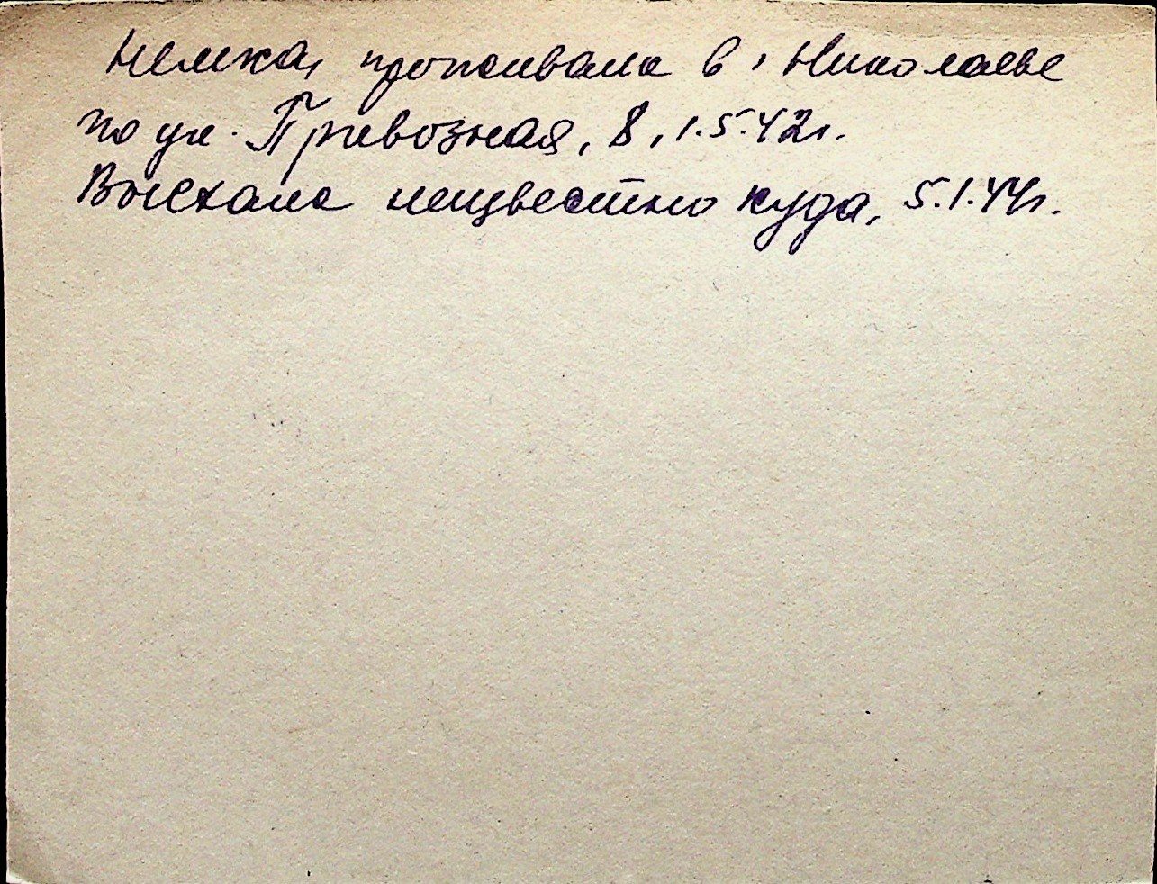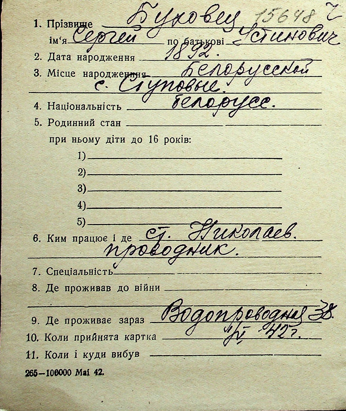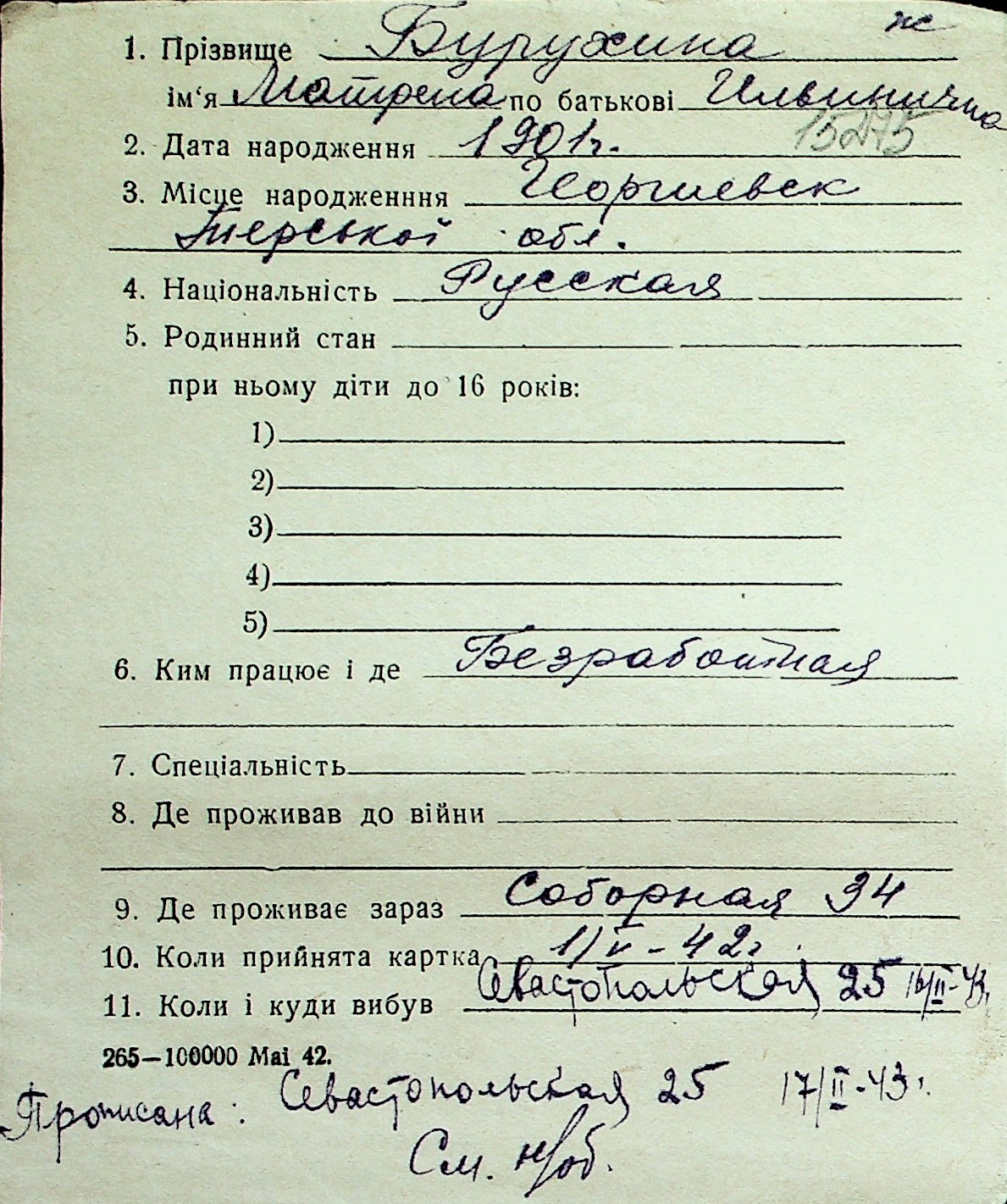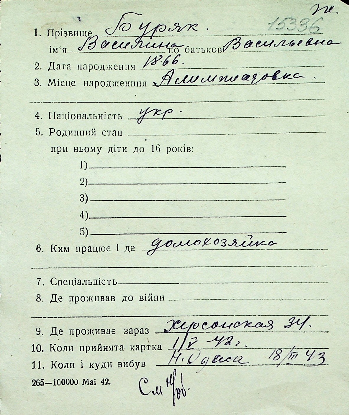 ◦ ◦ Перелік карток на осіб, які мешкали у м. Миколаїв у період окупації 1941–1944 років
