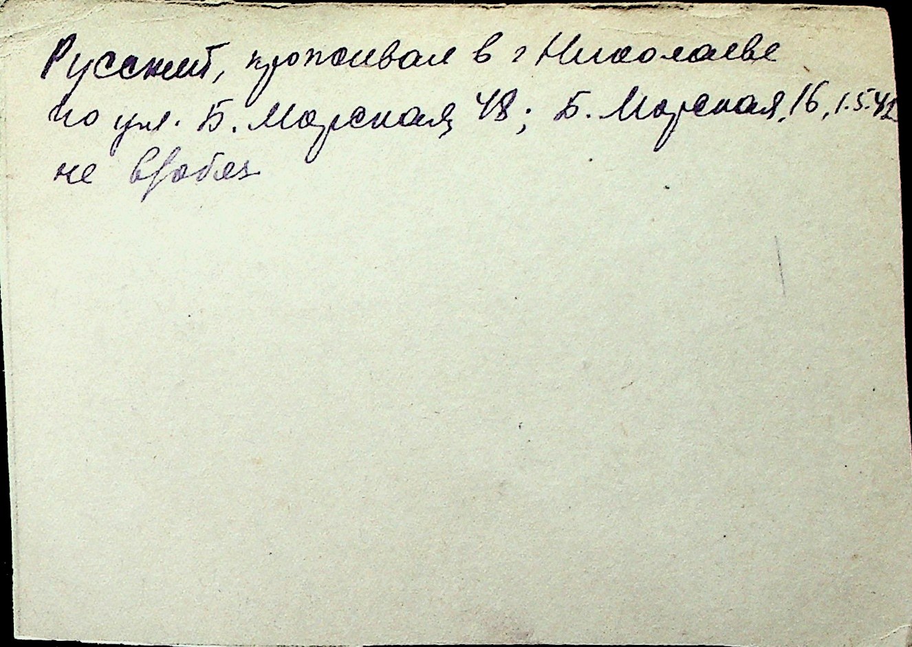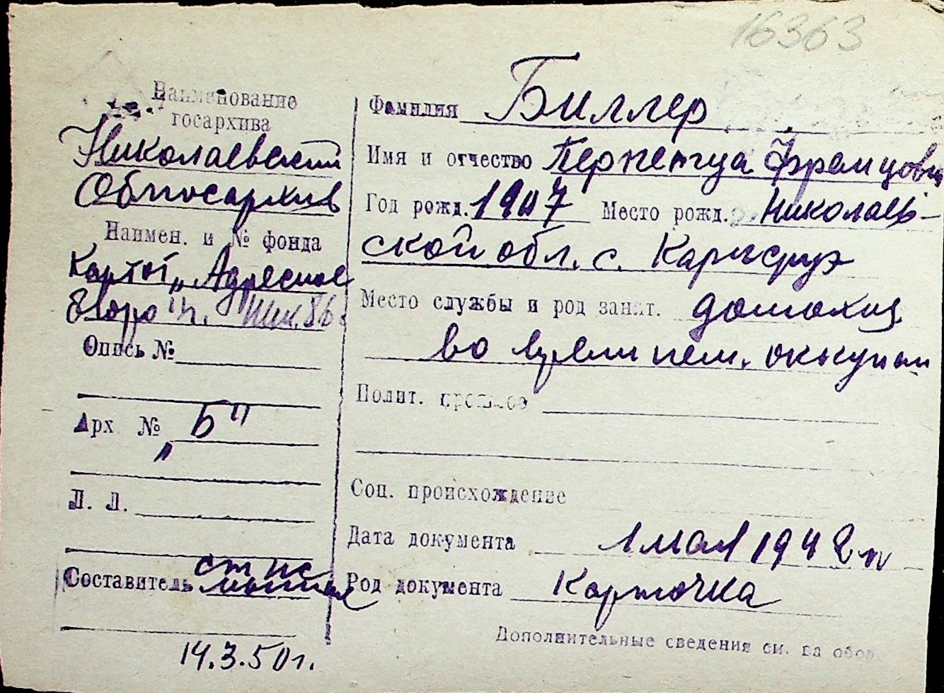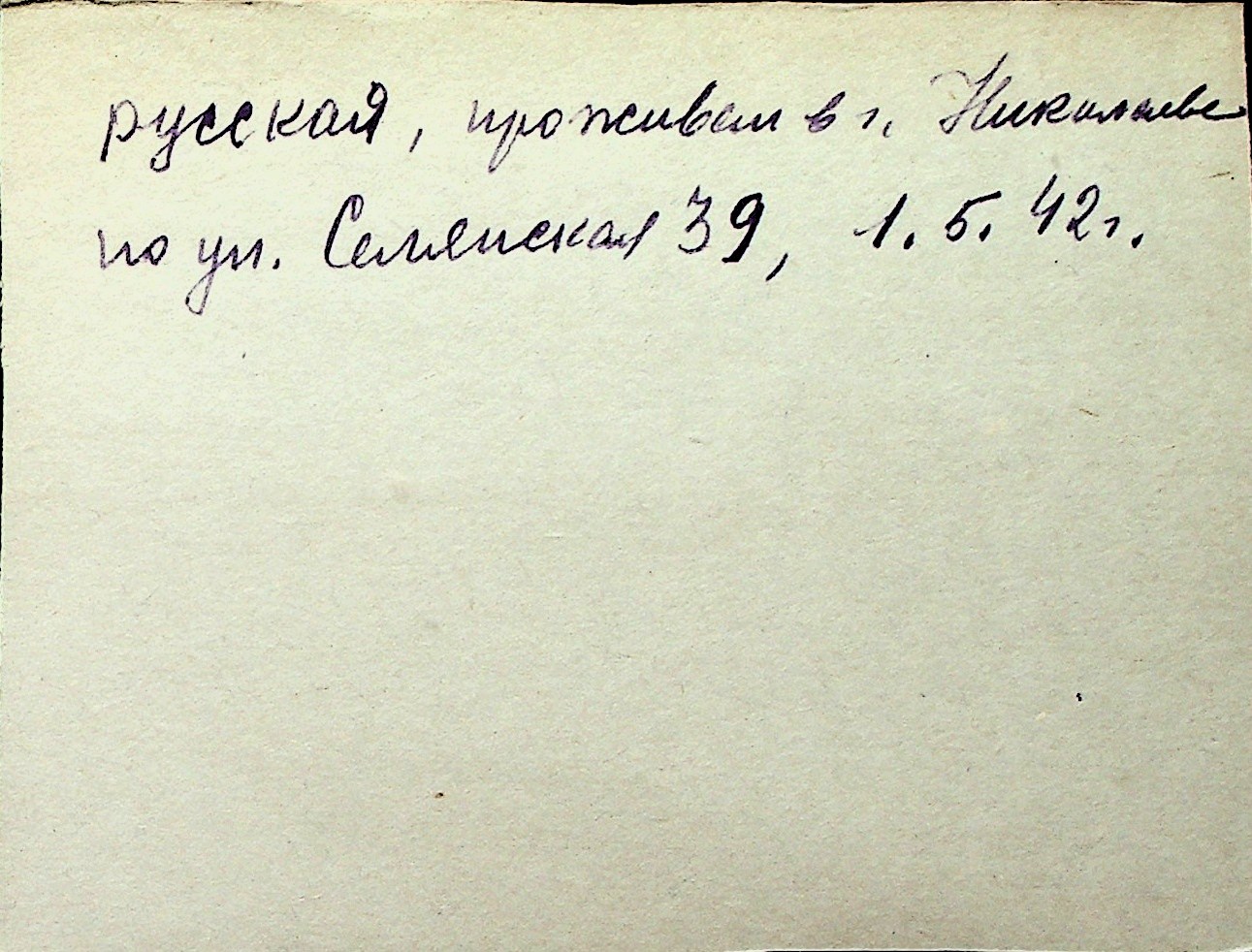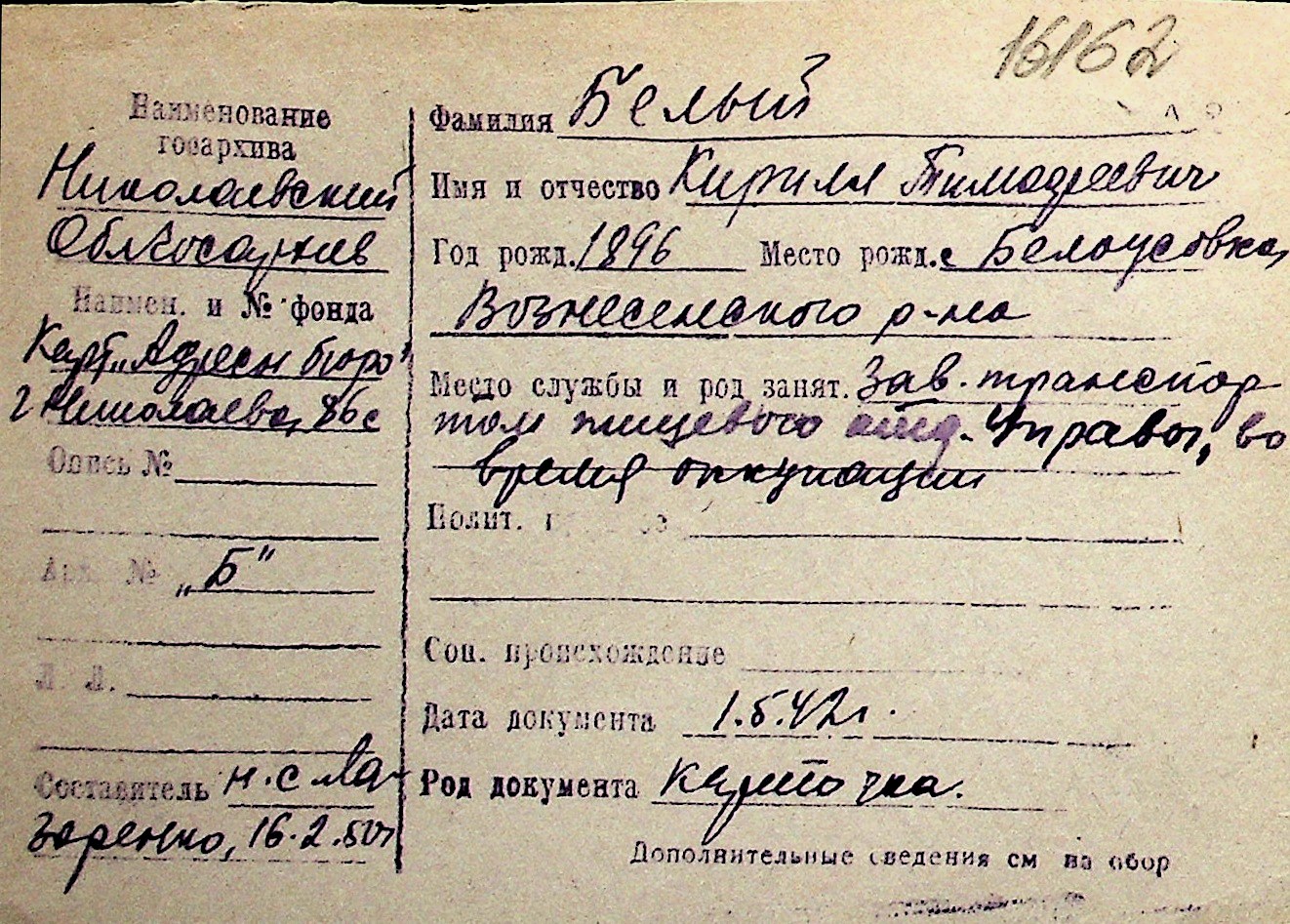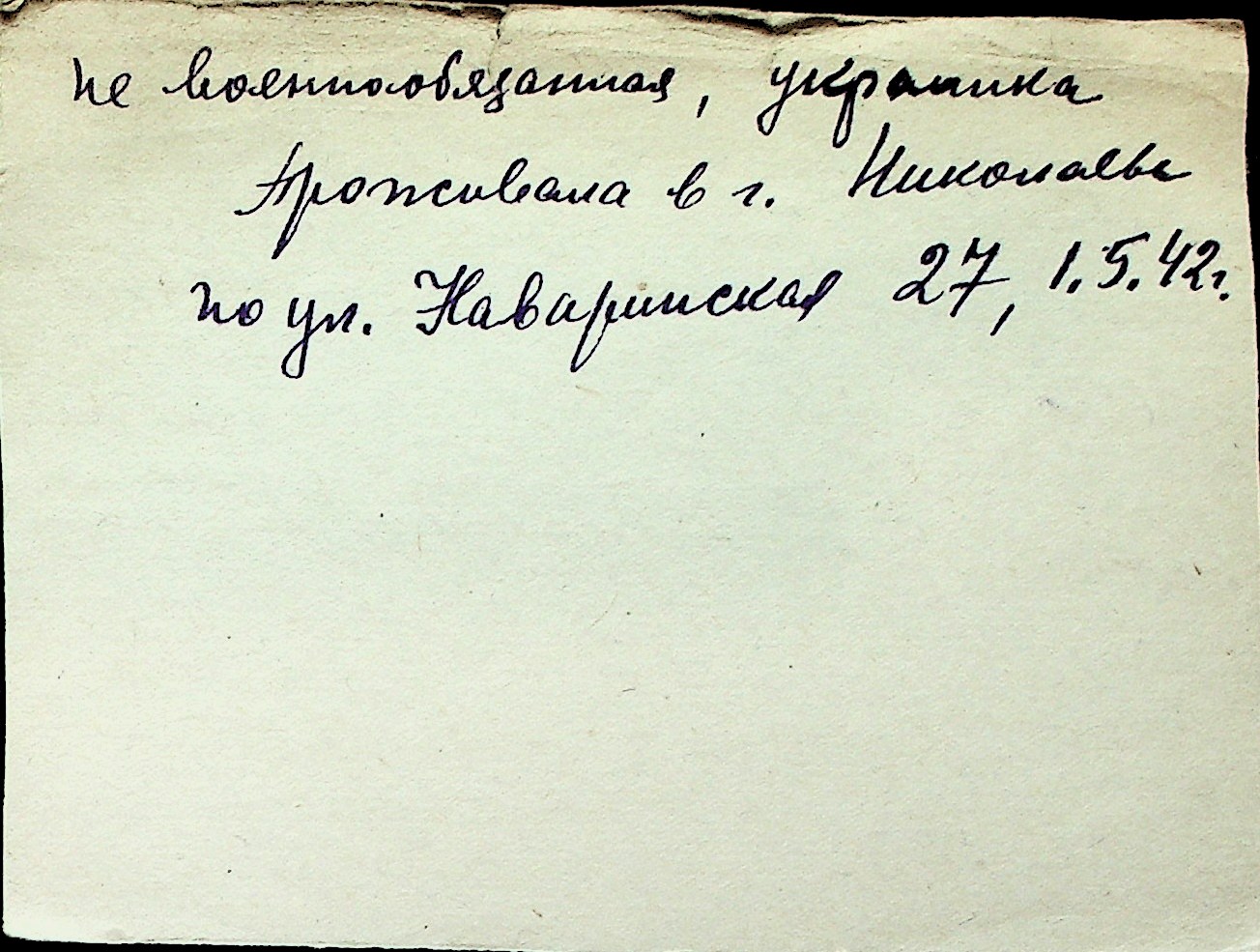 ◦ ◦ Перелік карток на осіб, які мешкали у м. Миколаїв у період окупації 1941–1944 років