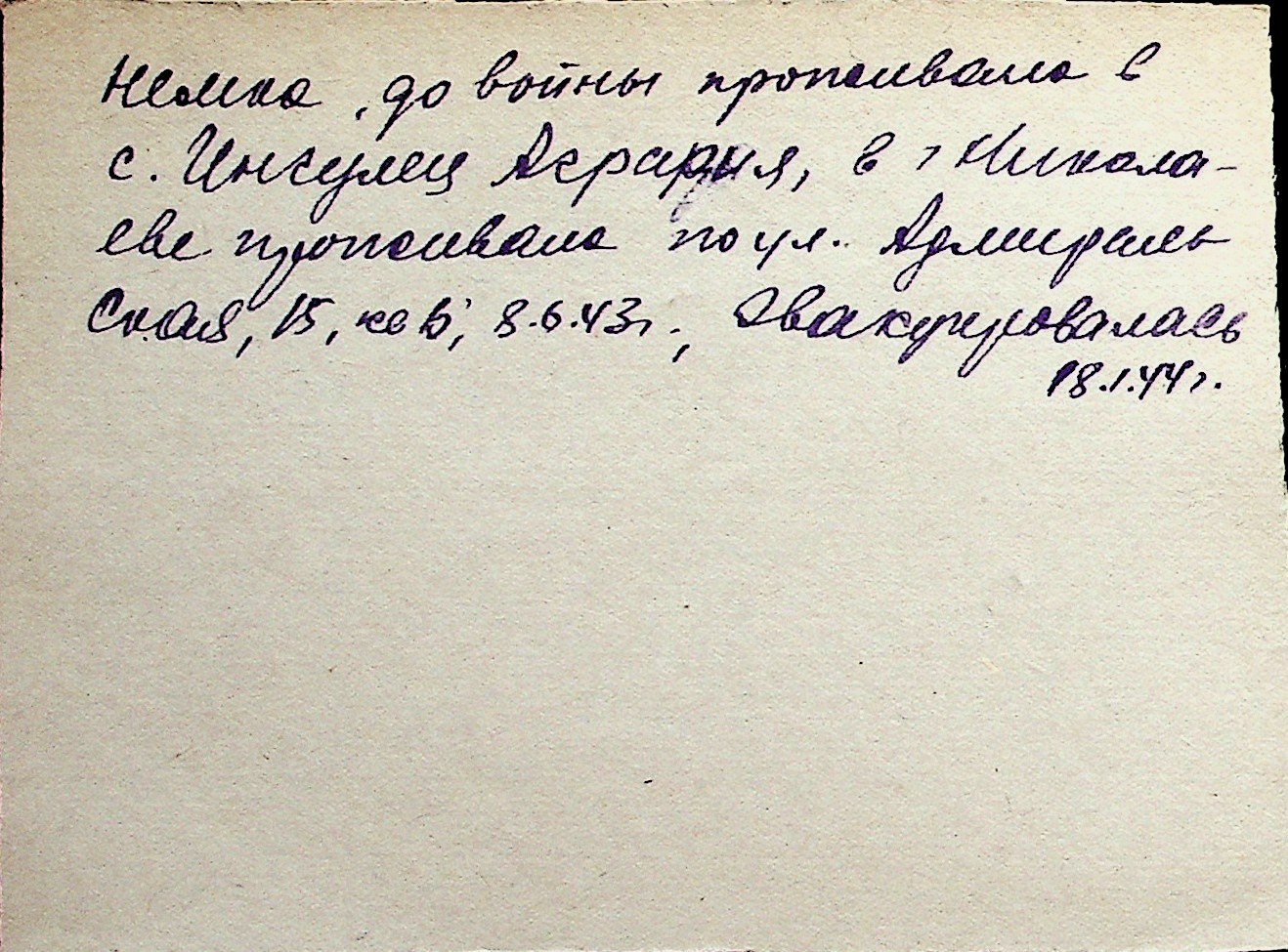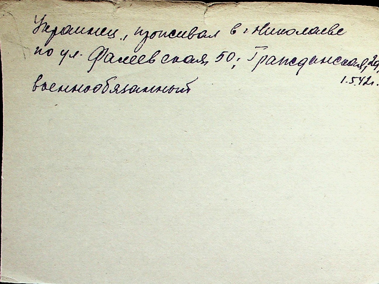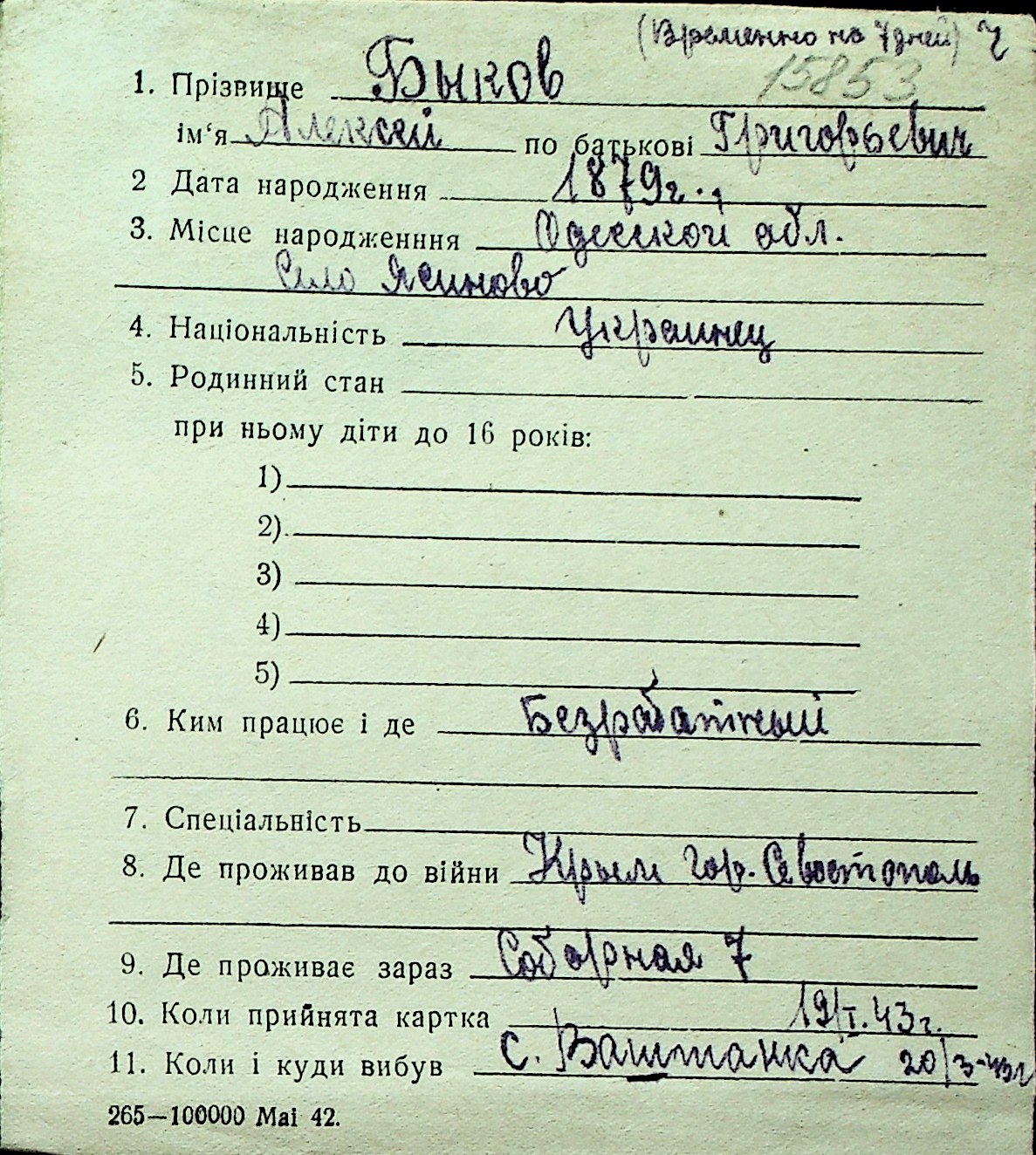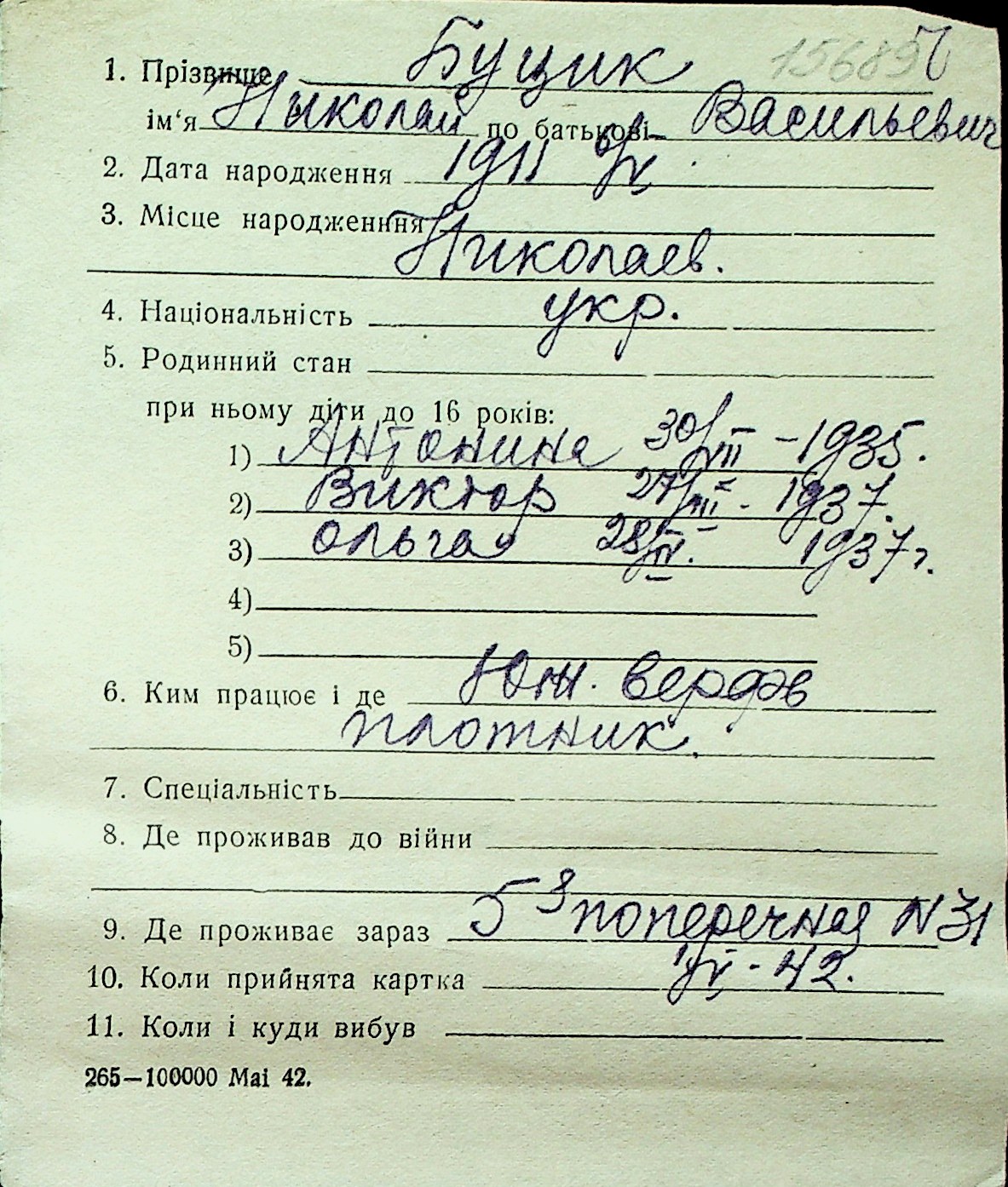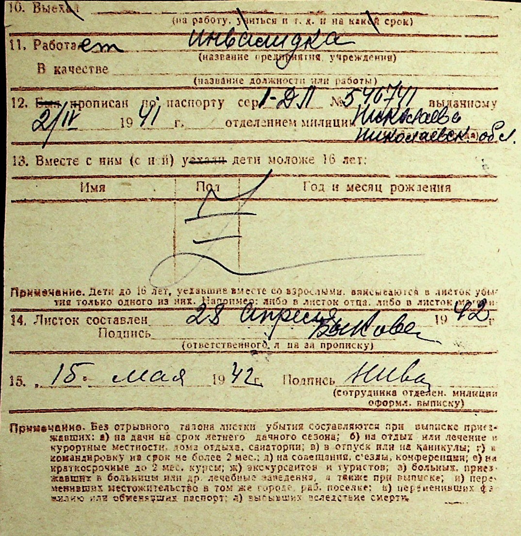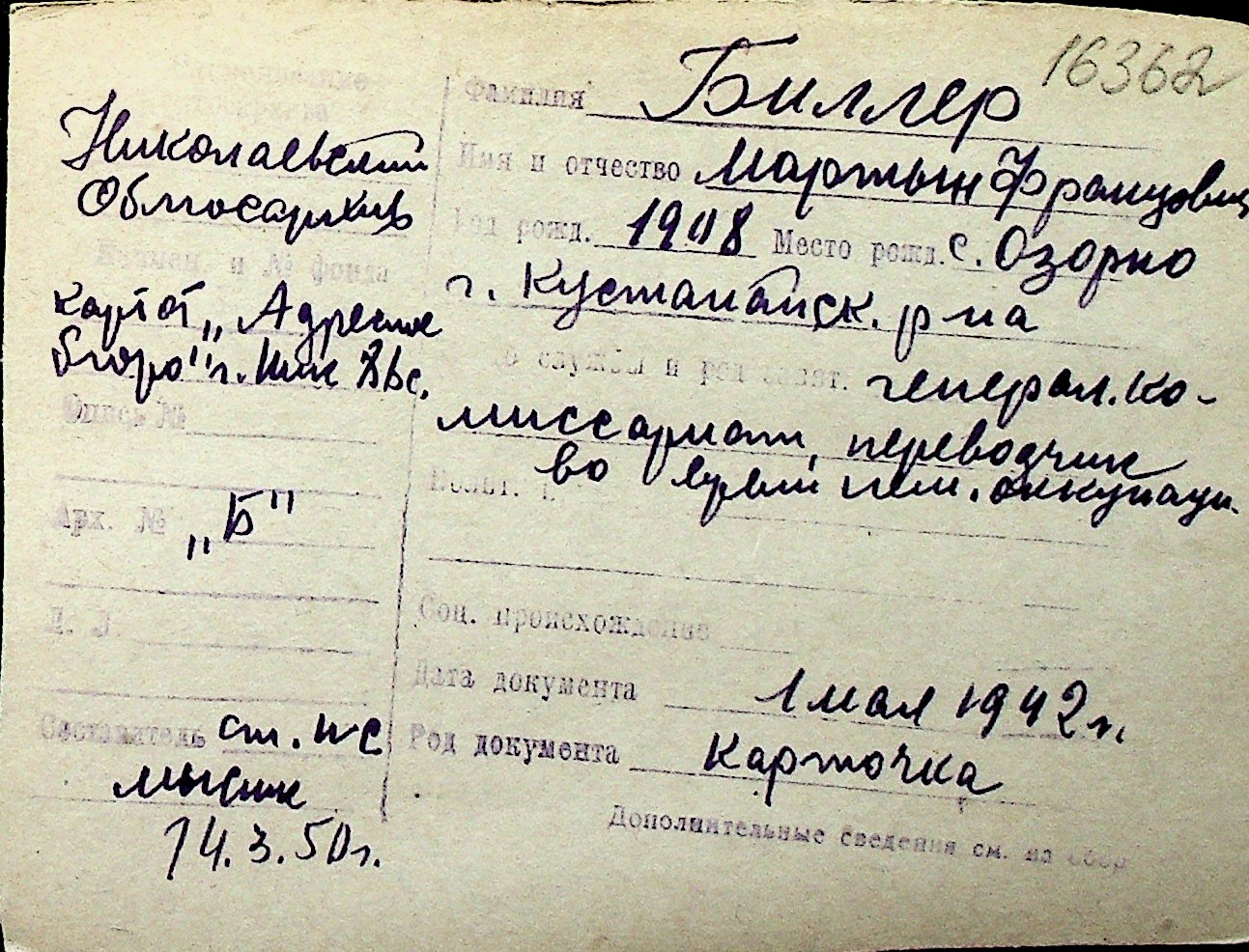 ◦ ◦ Перелік карток на осіб, які мешкали у м. Миколаїв у період окупації 1941–1944 років